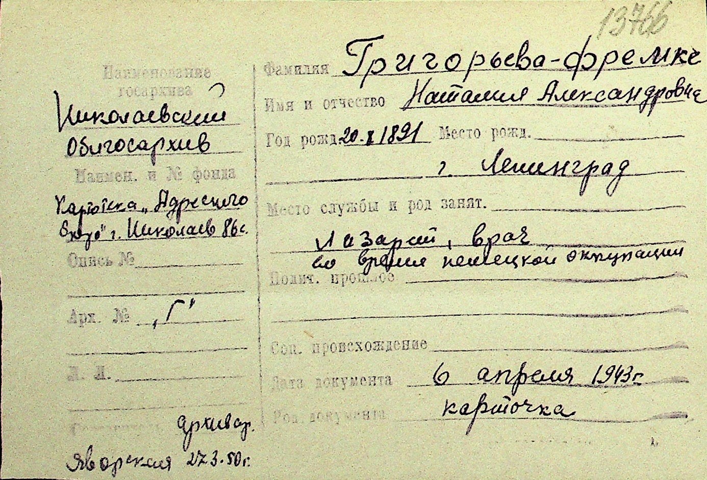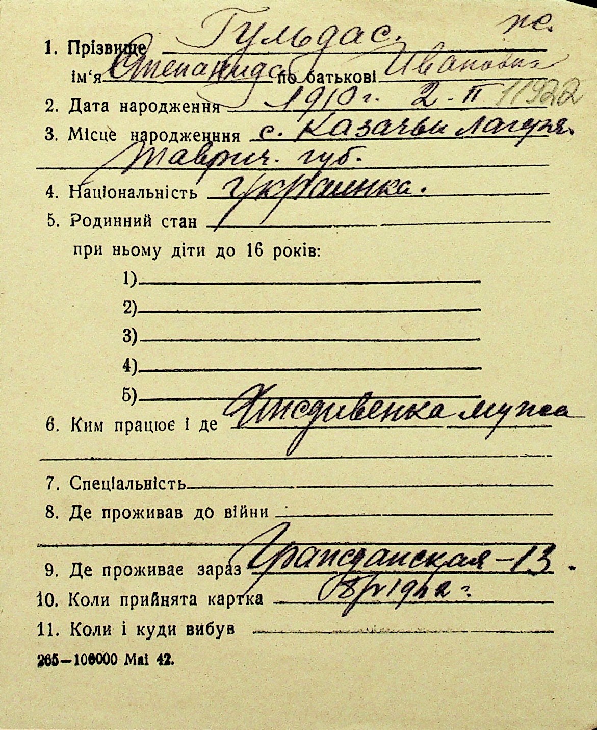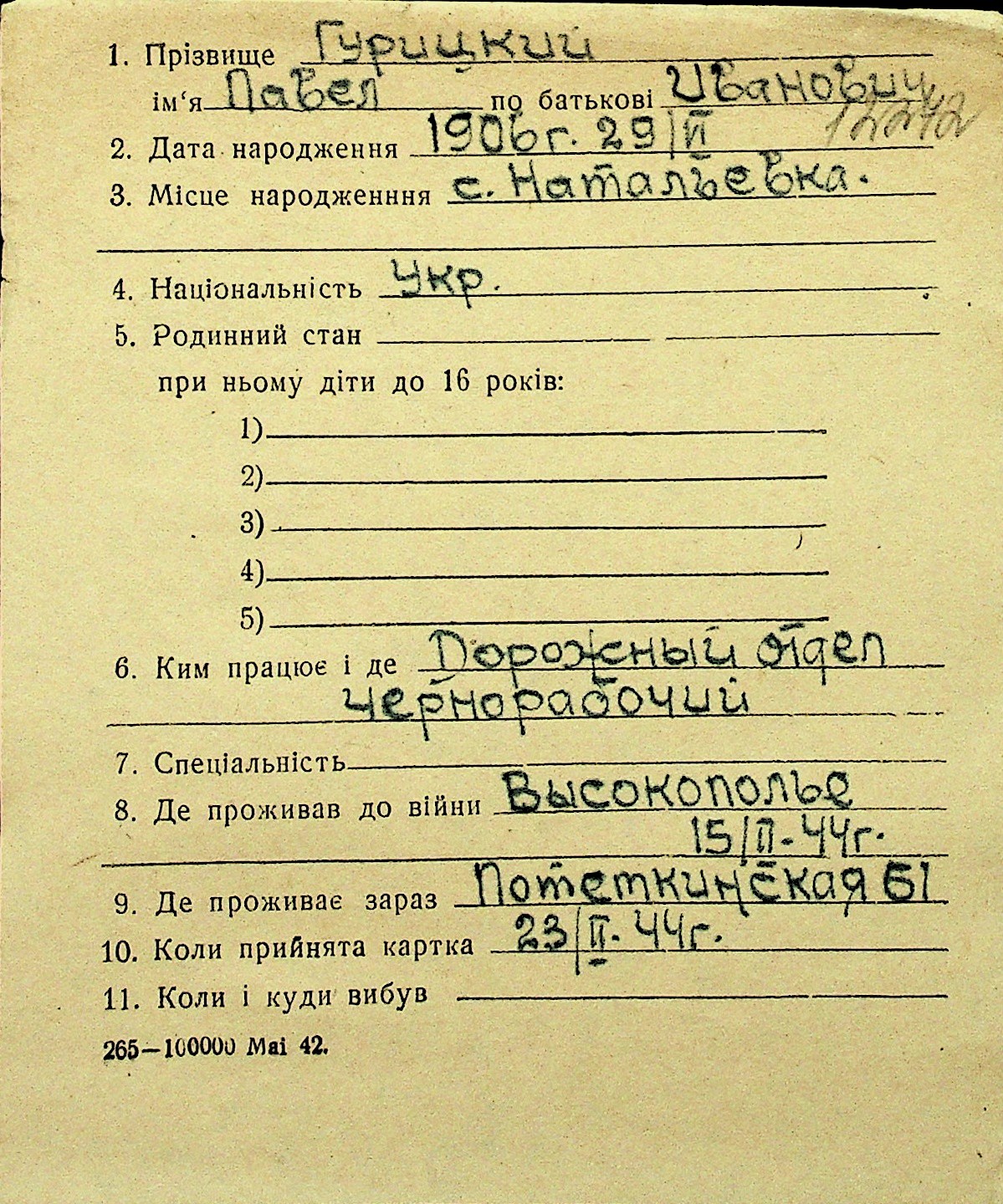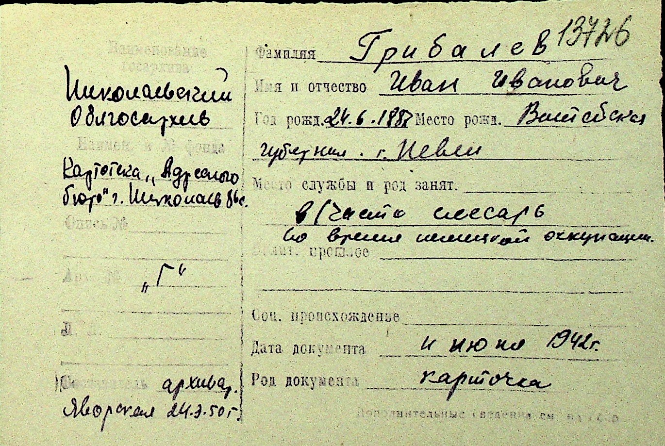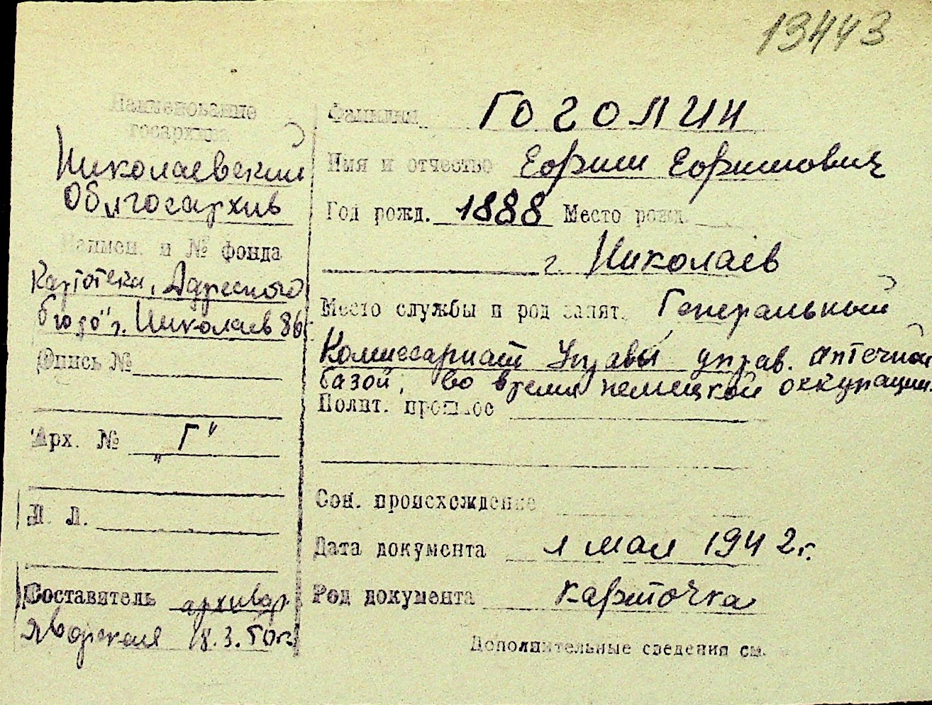 • • Перелік карток до фонду № Н-1016