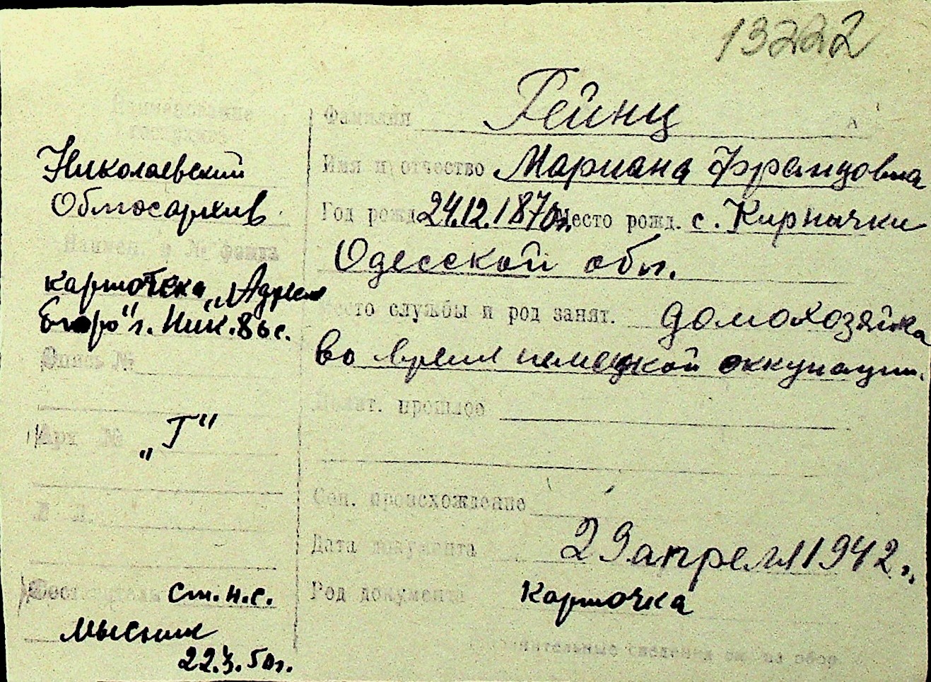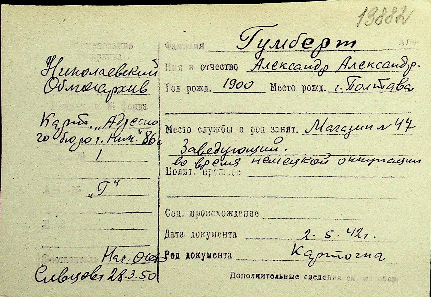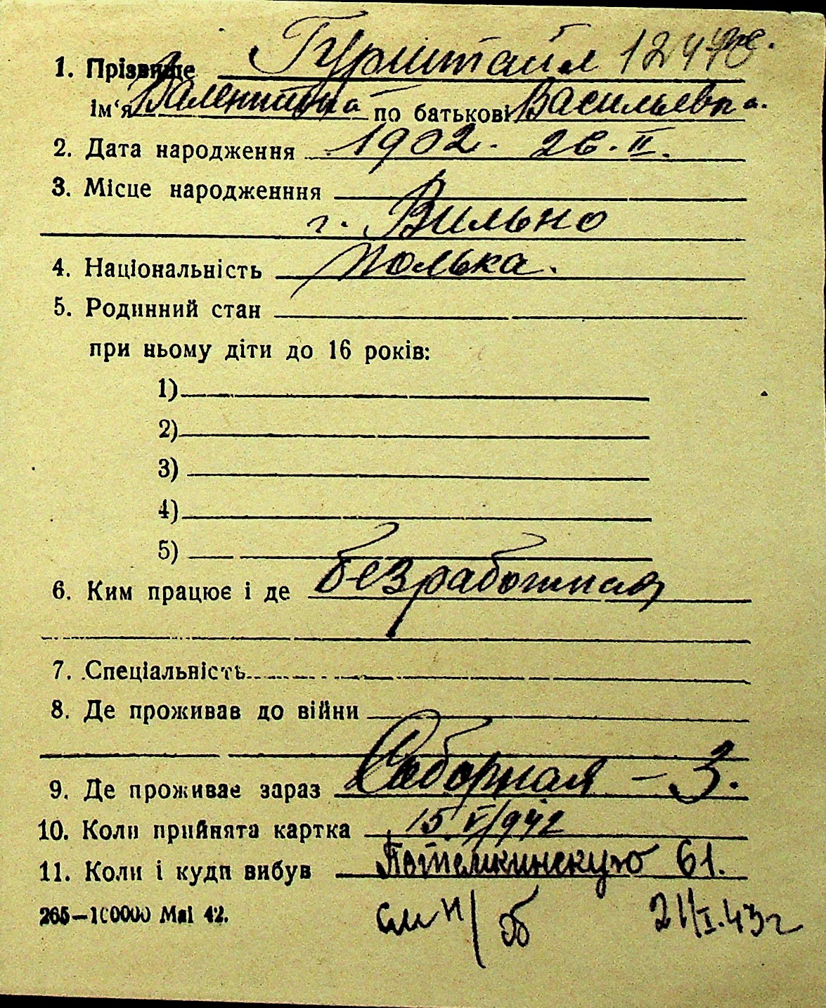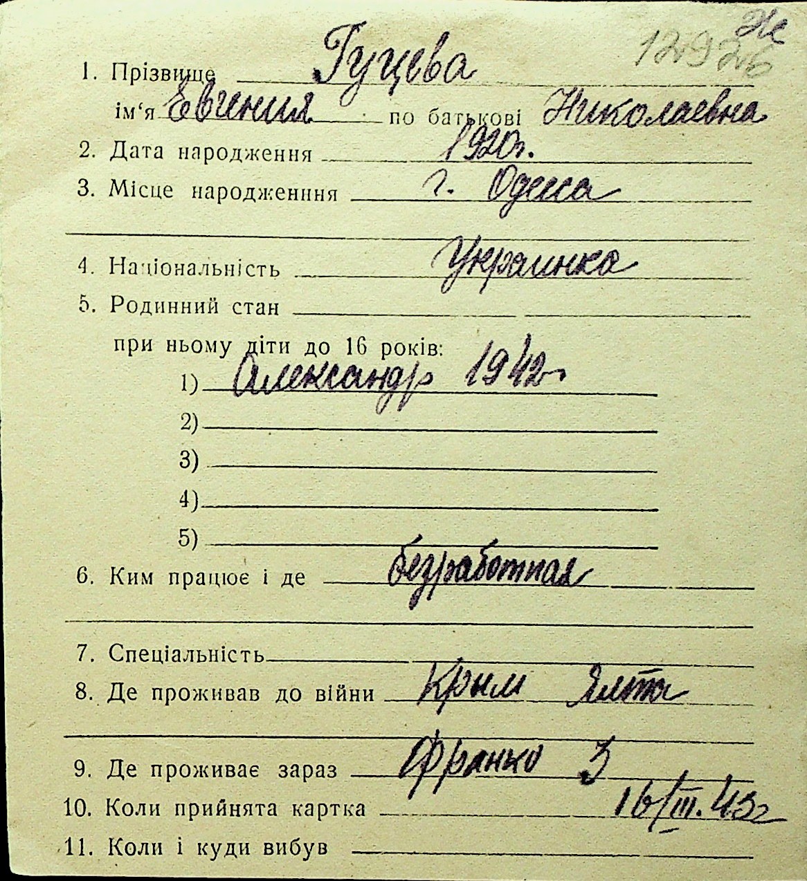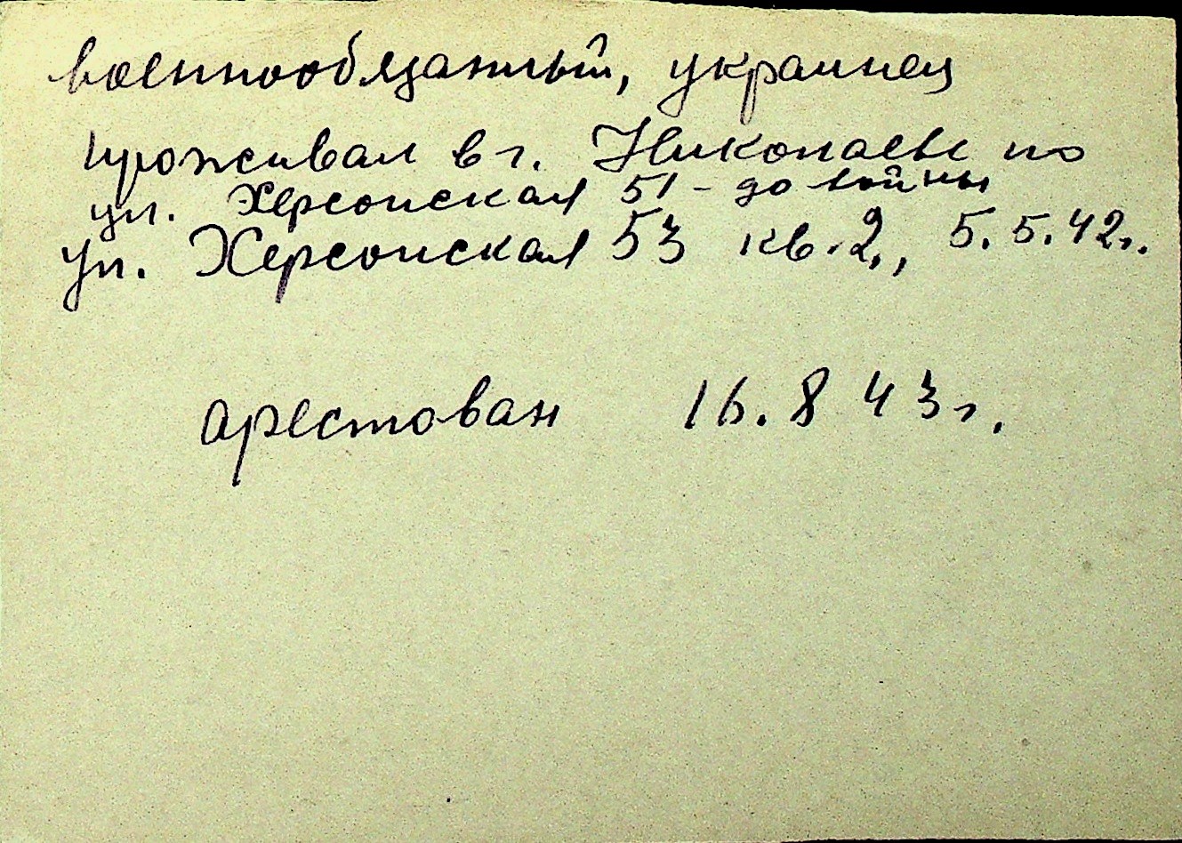• • Перелік карток до фонду № Н-1016