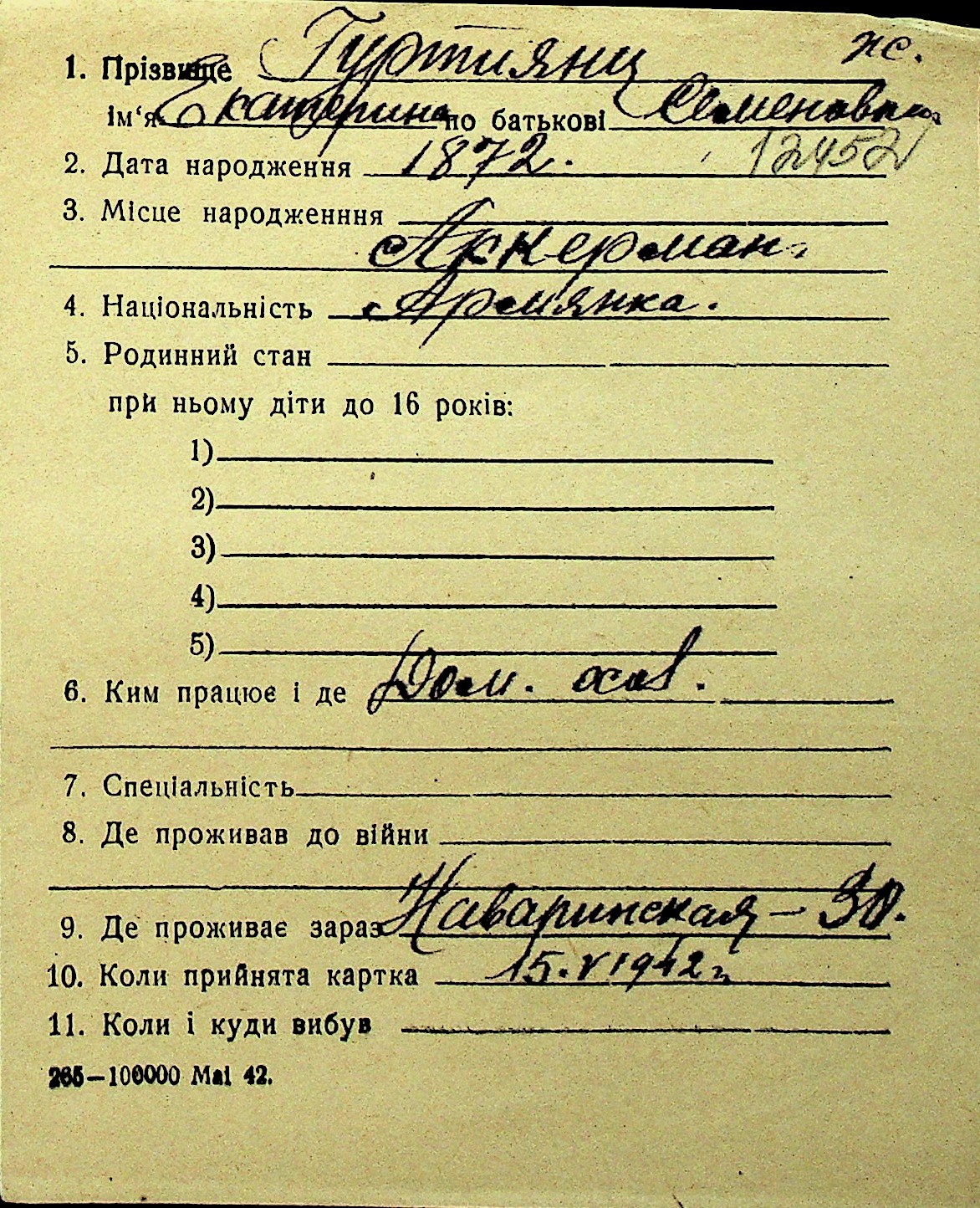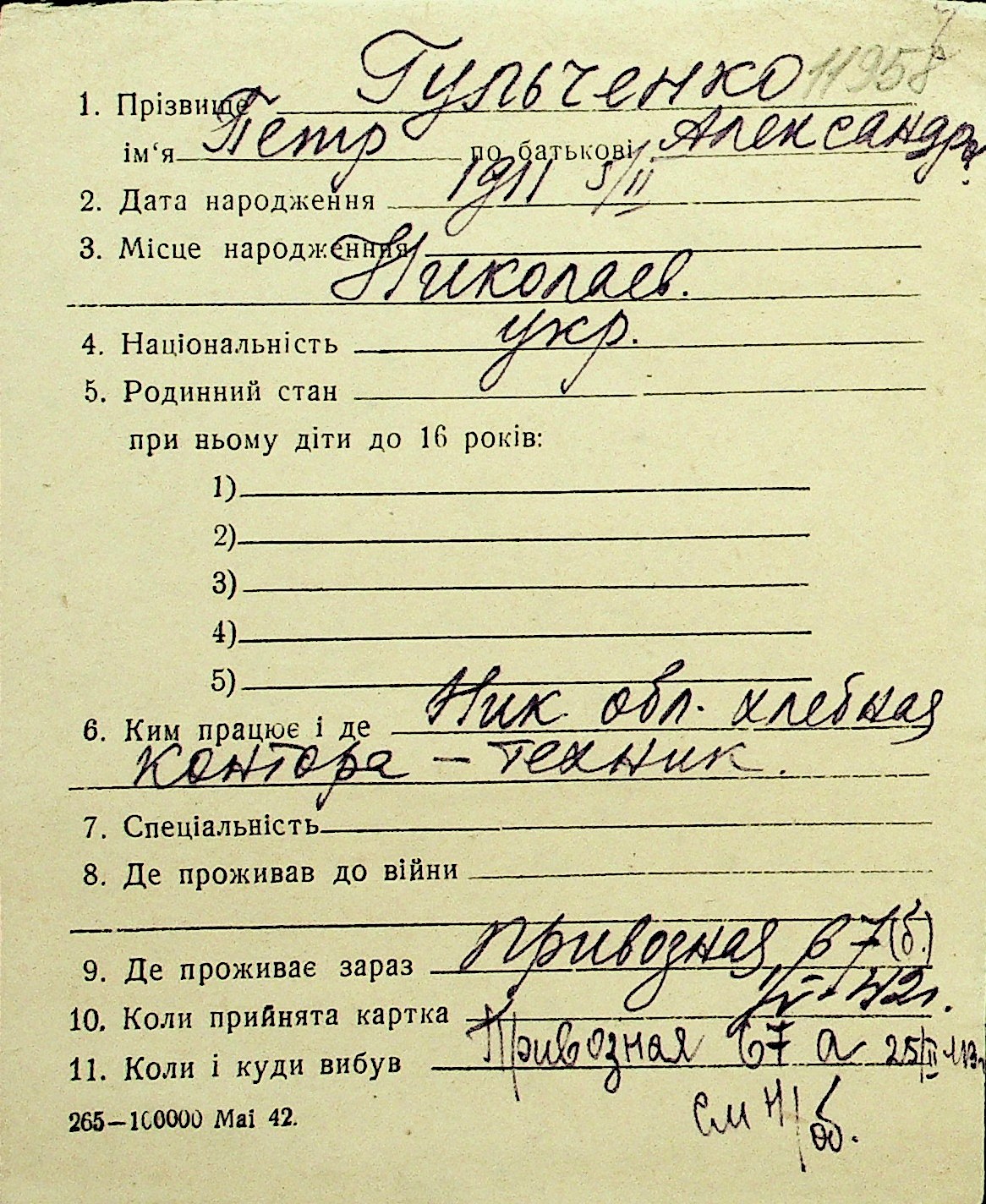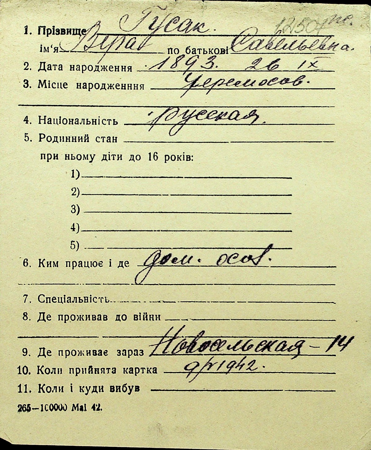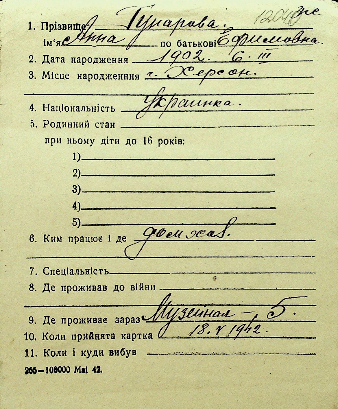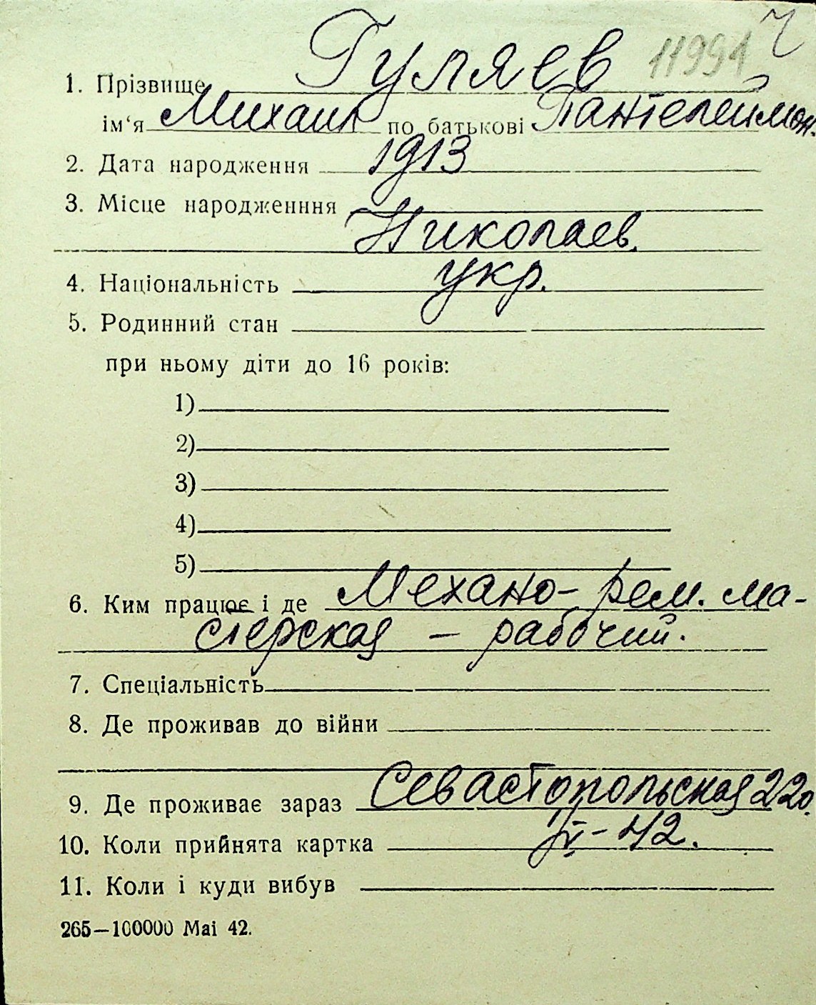 • • Перелік карток до фонду № Н-1016