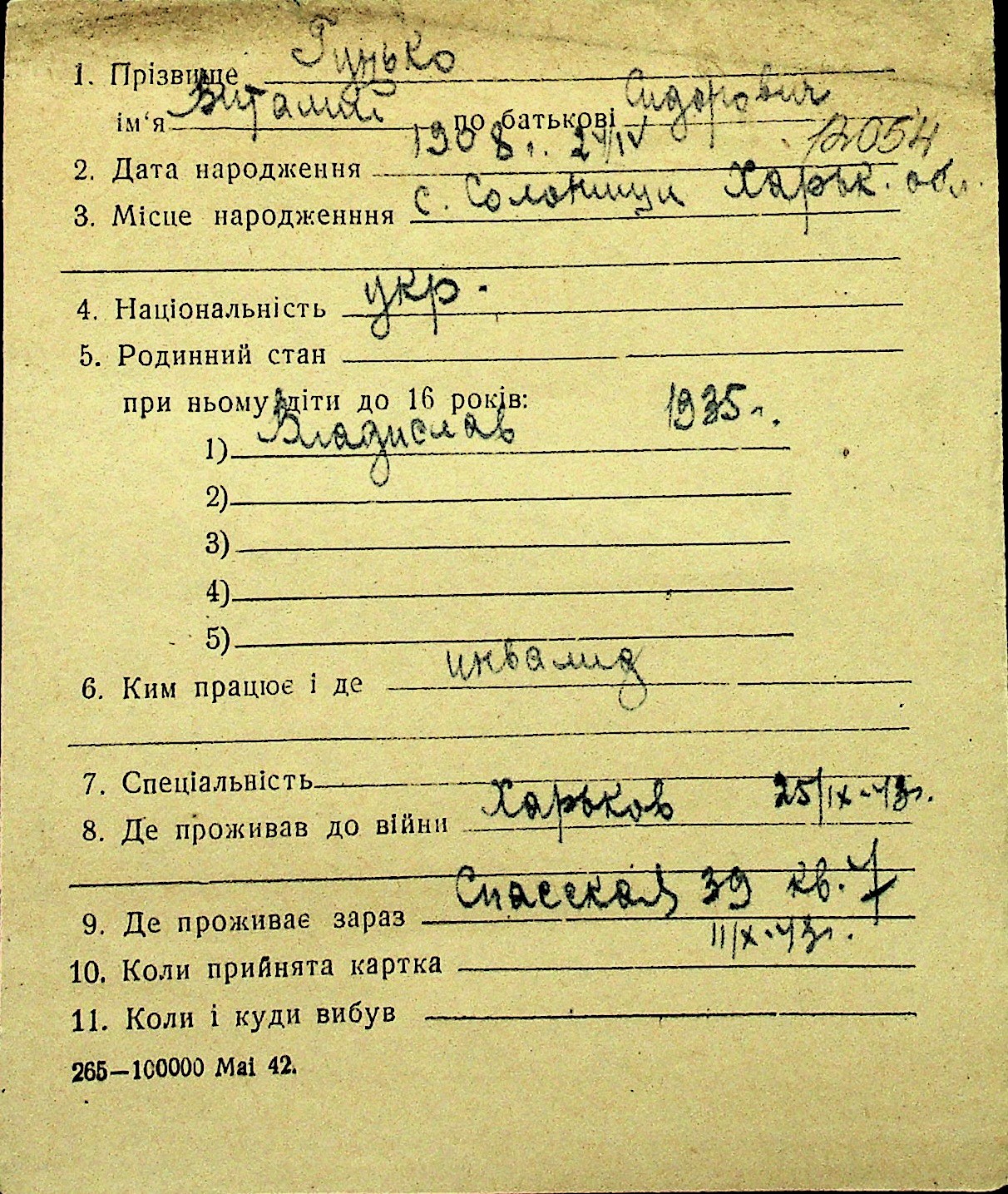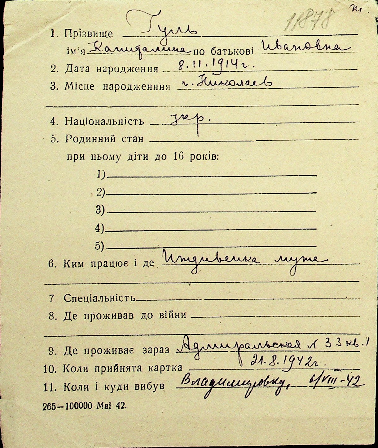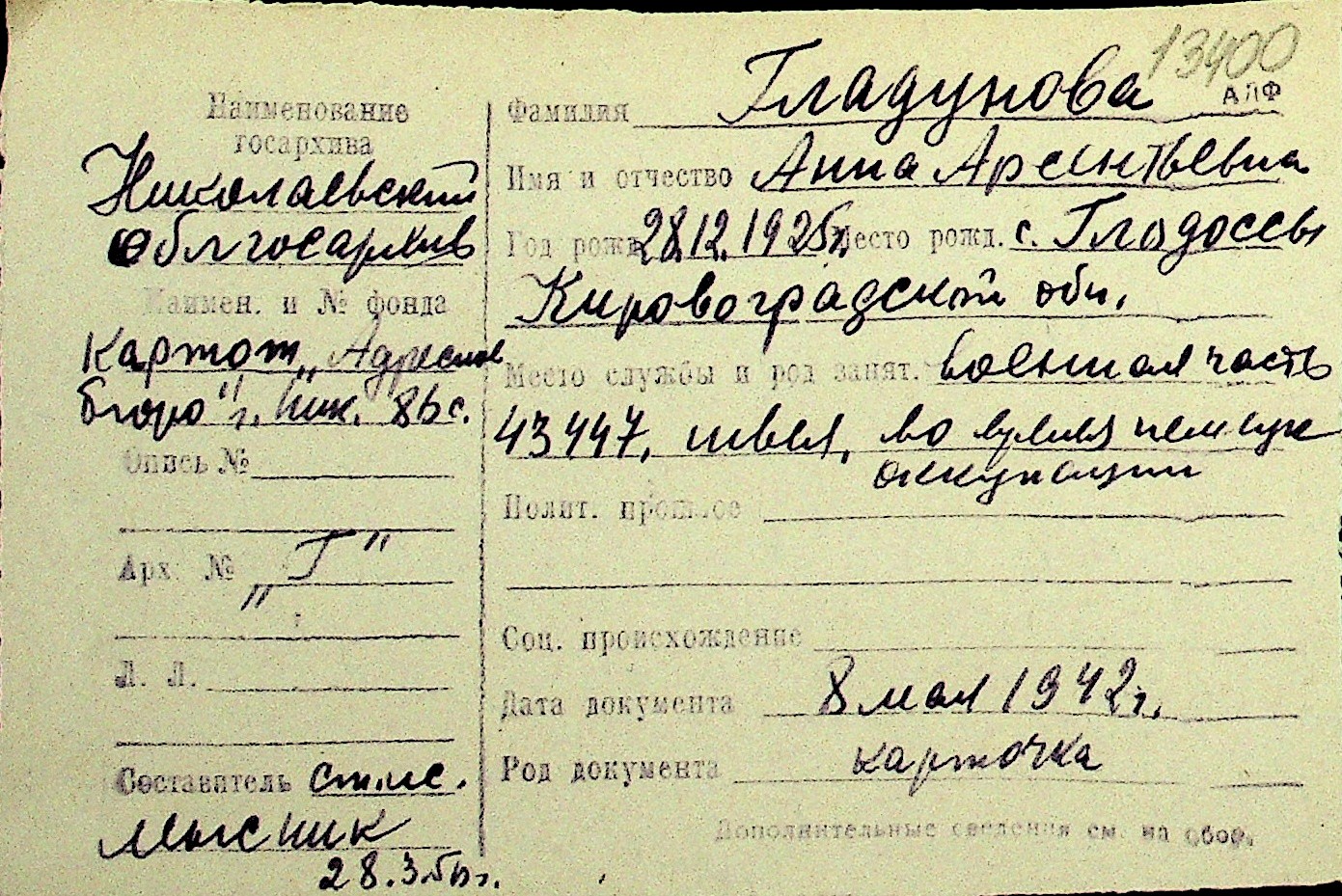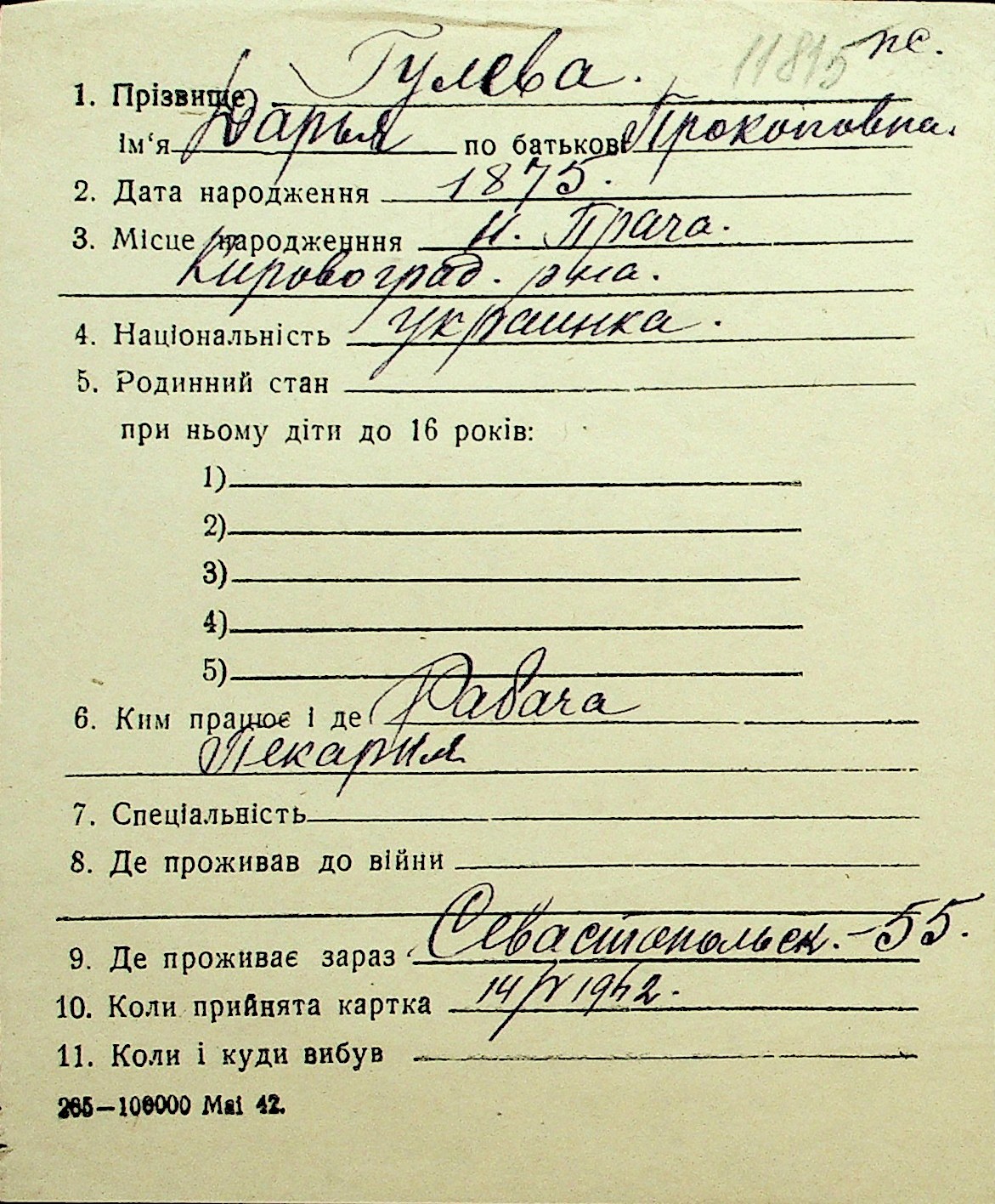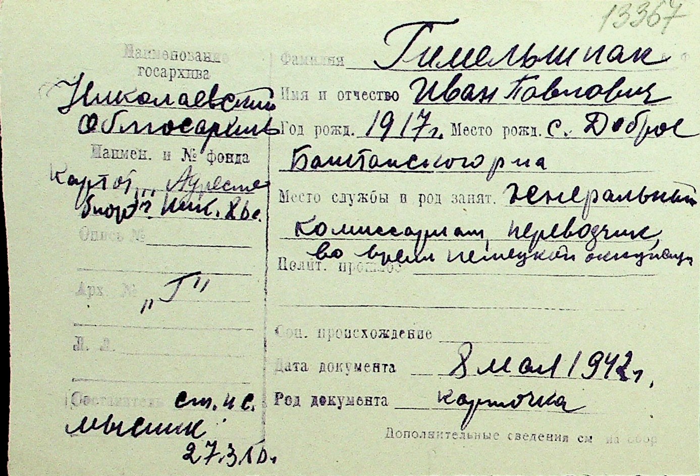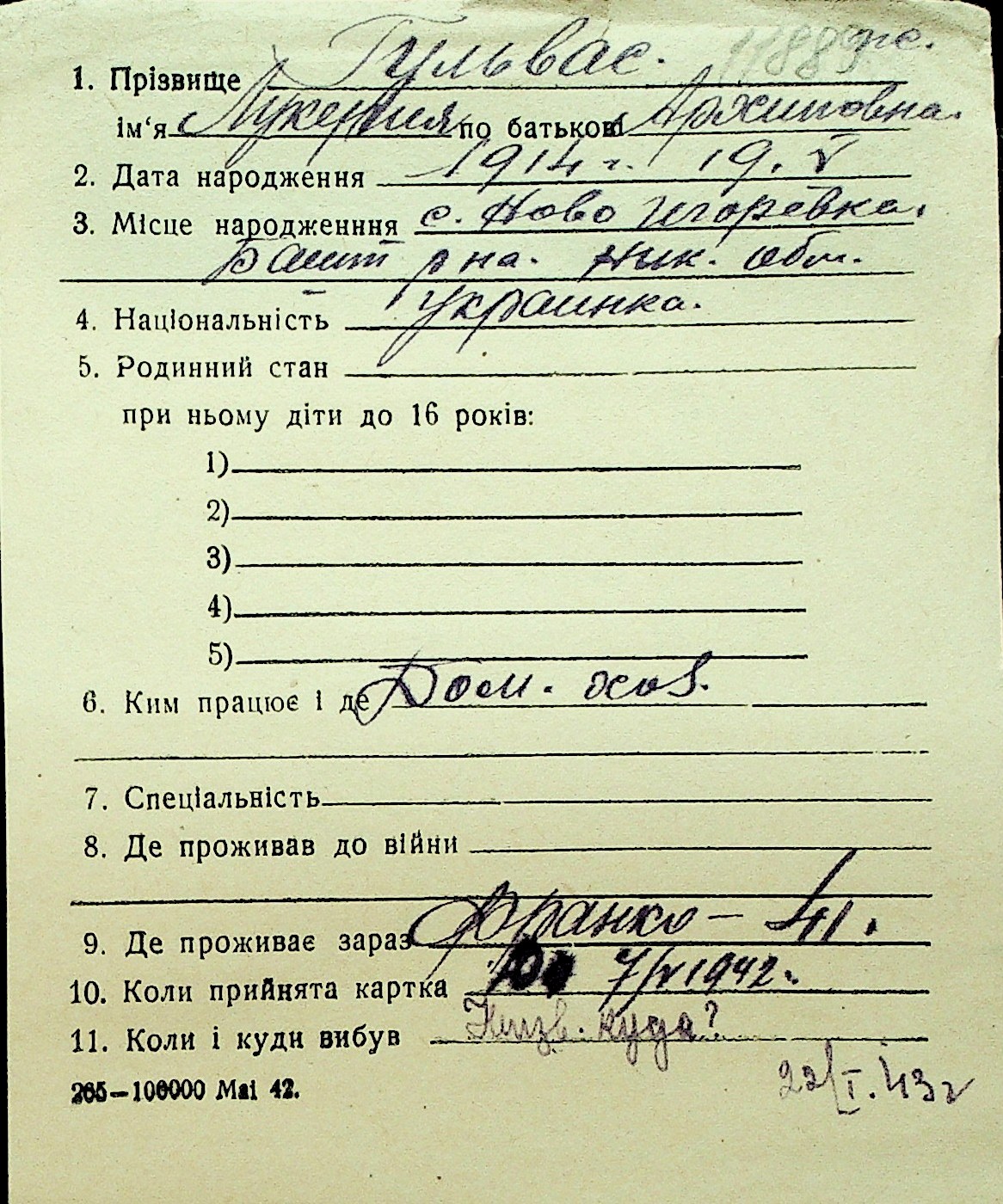 • • Перелік карток до фонду № Н-1016