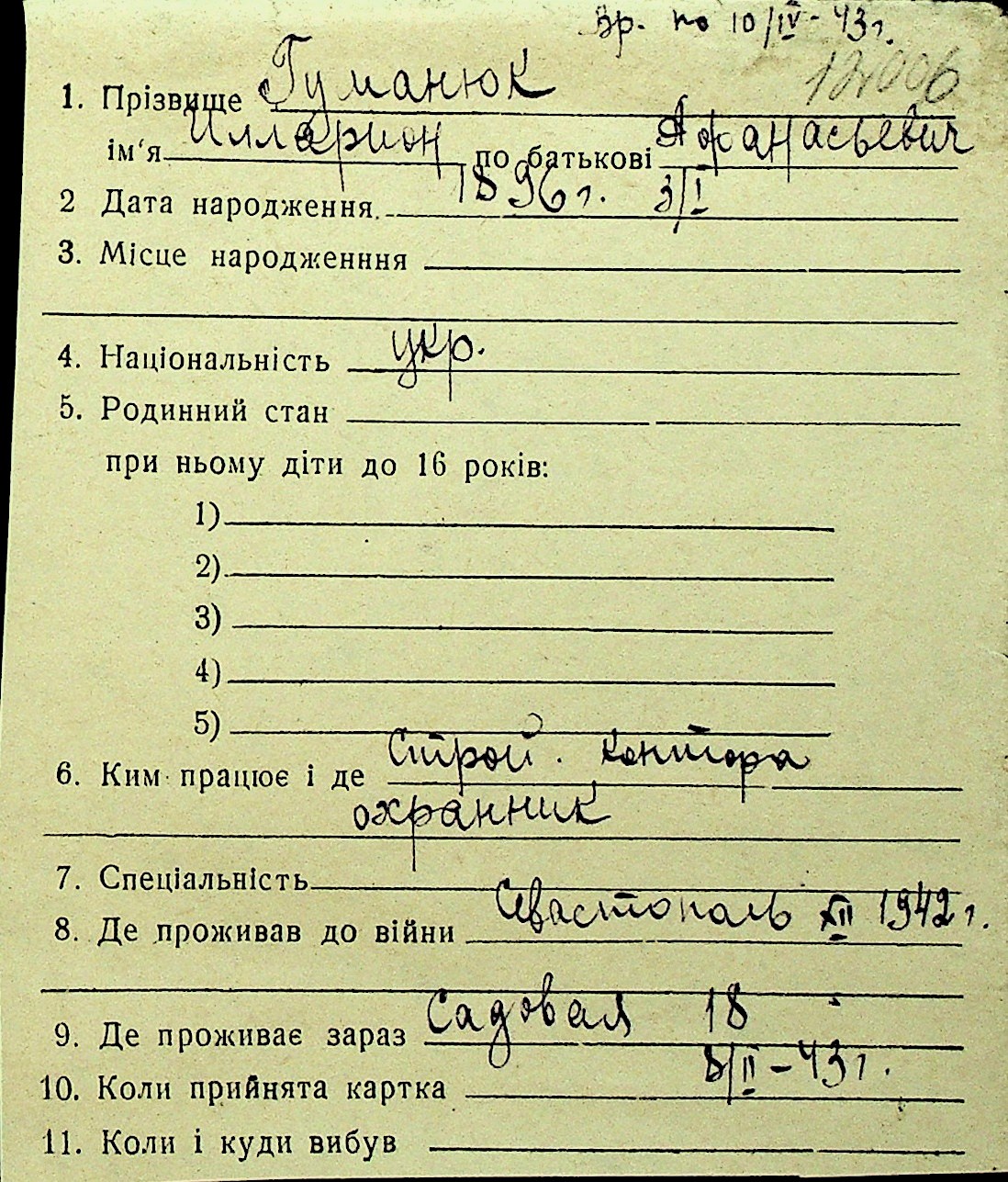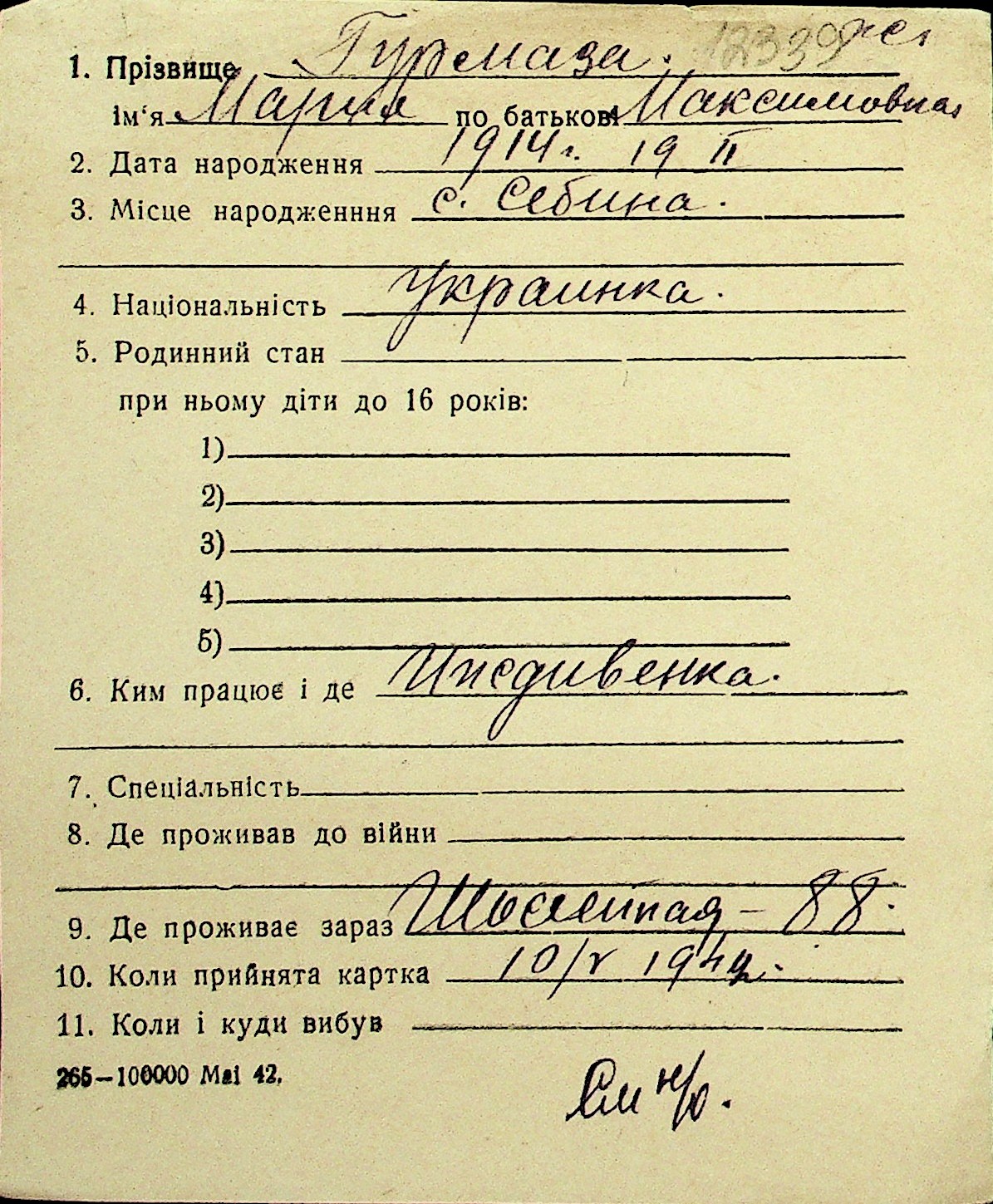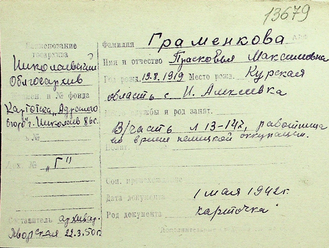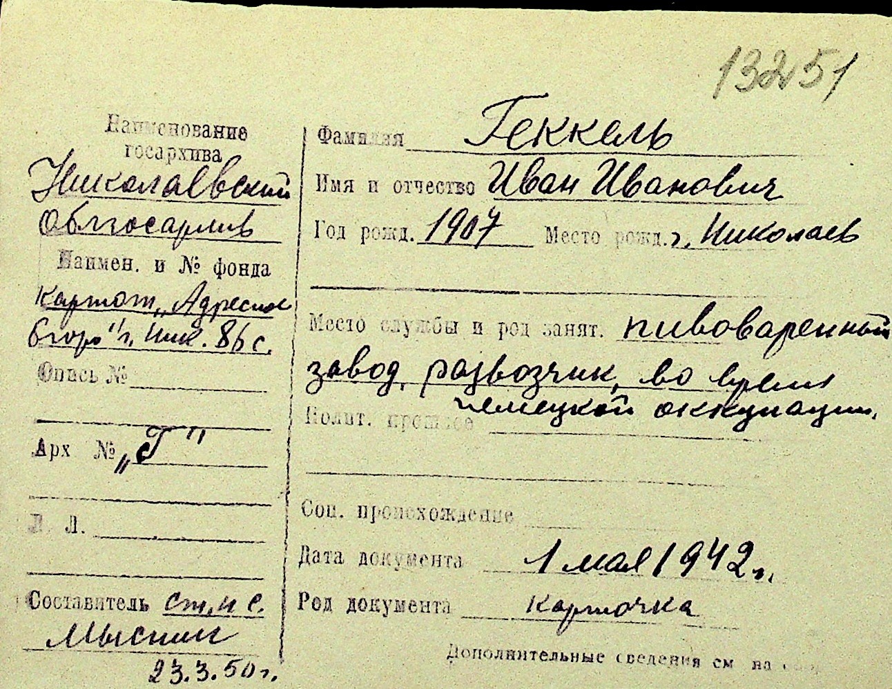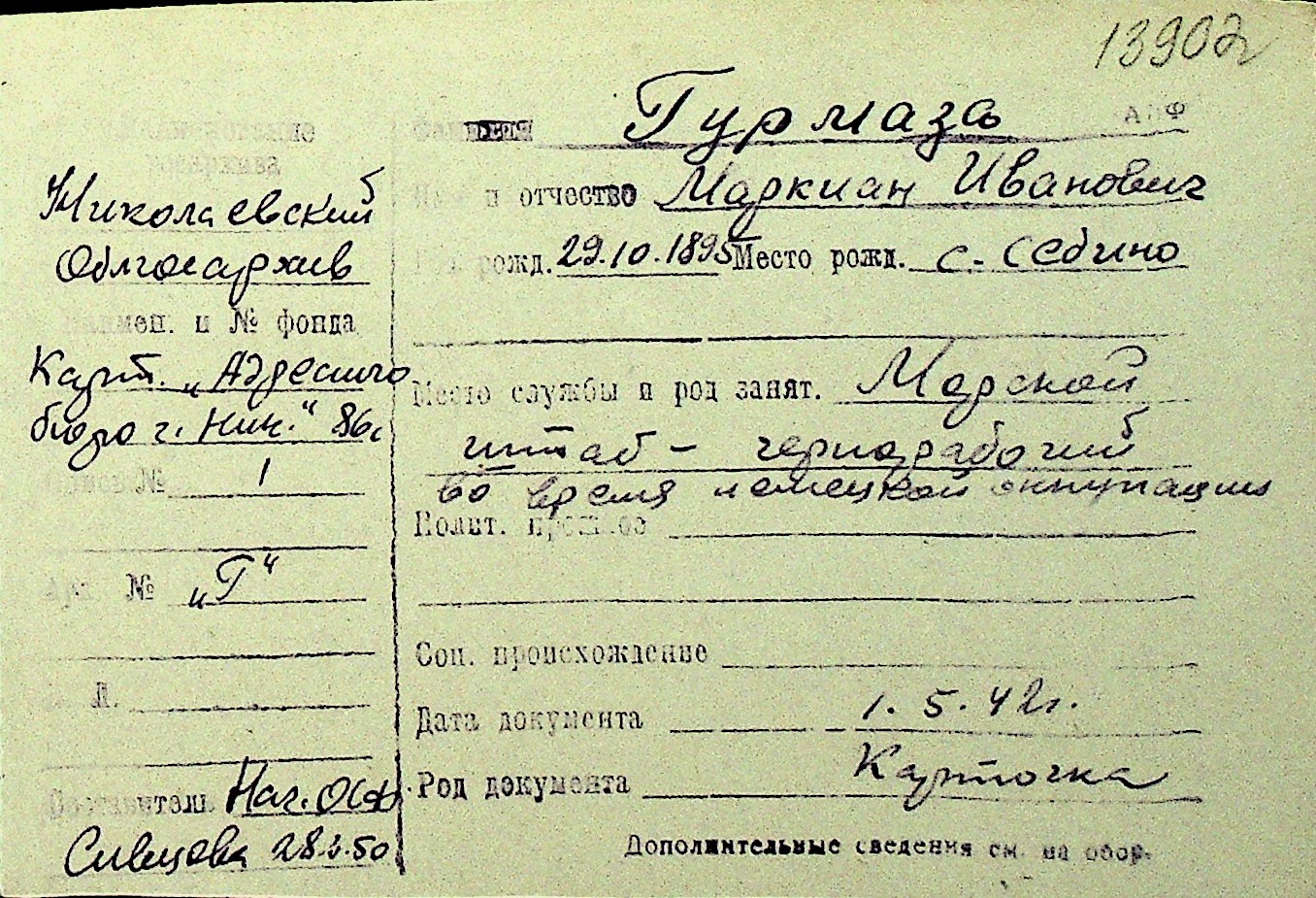 • • Перелік карток до фонду № Н-1016