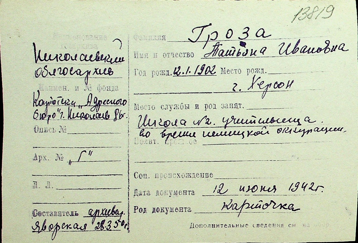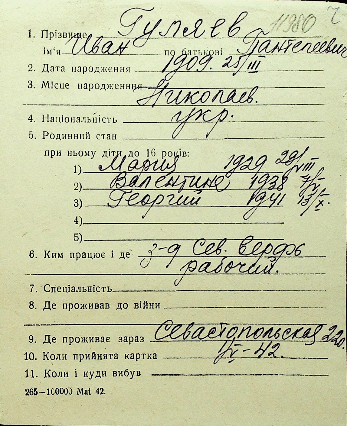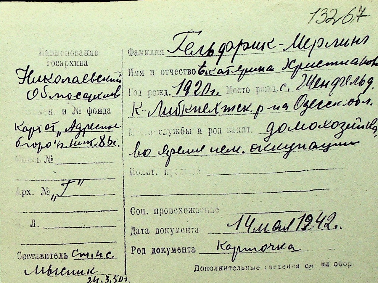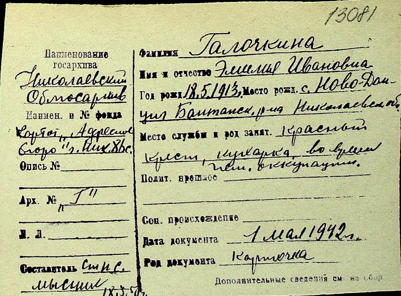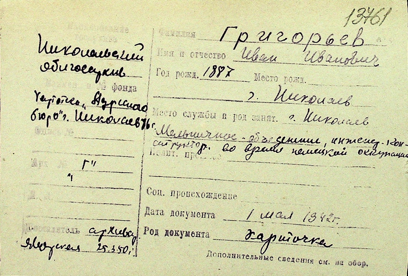 • • Перелік карток до фонду № Н-1016