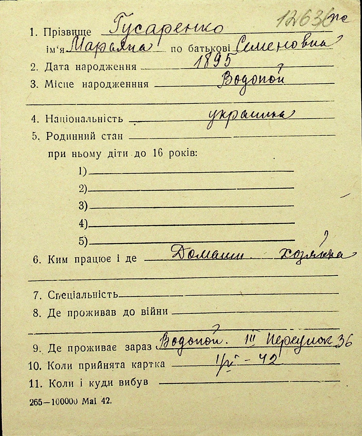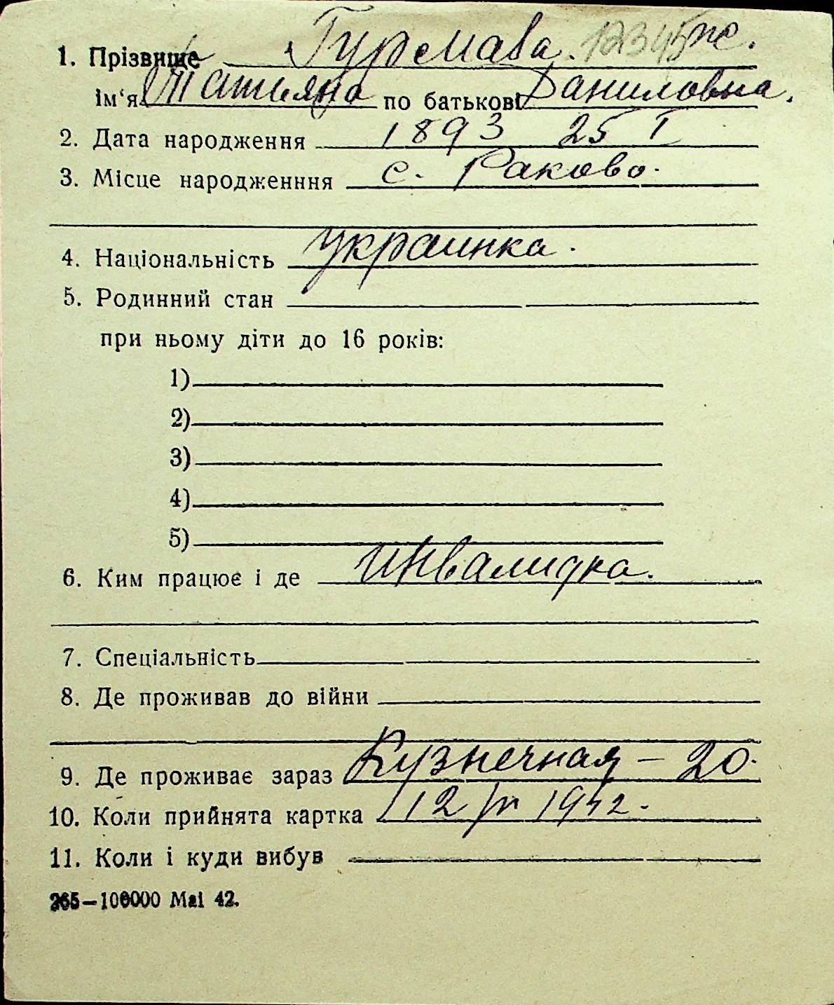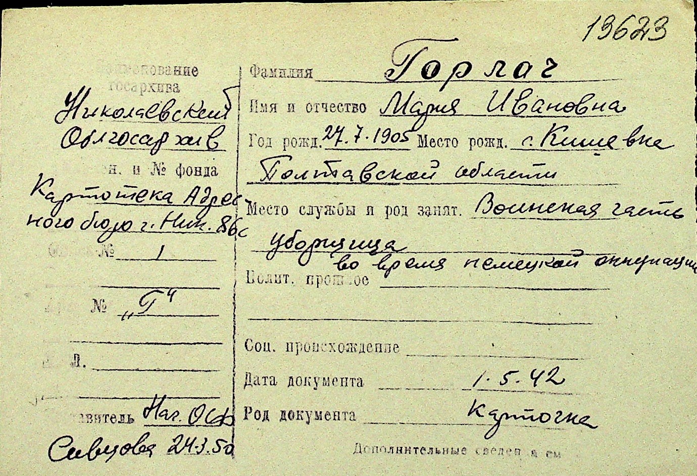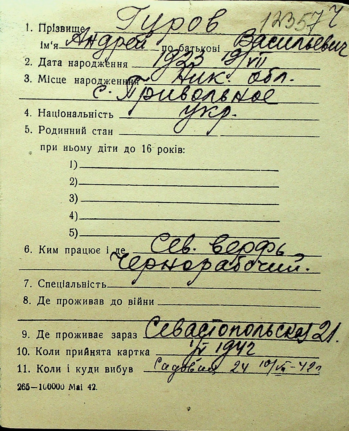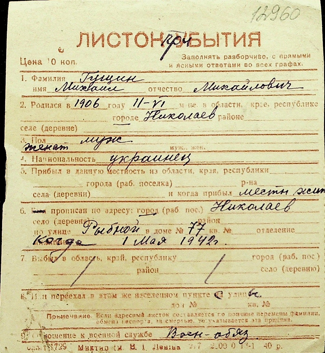 • • Перелік карток до фонду № Н-1016