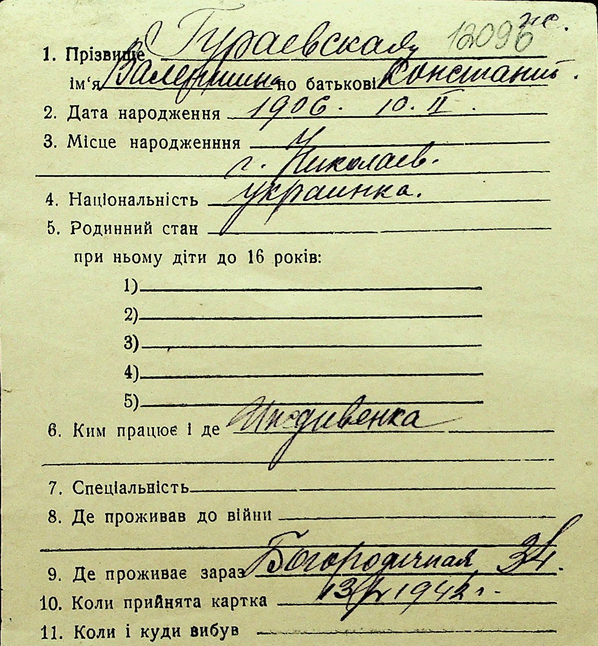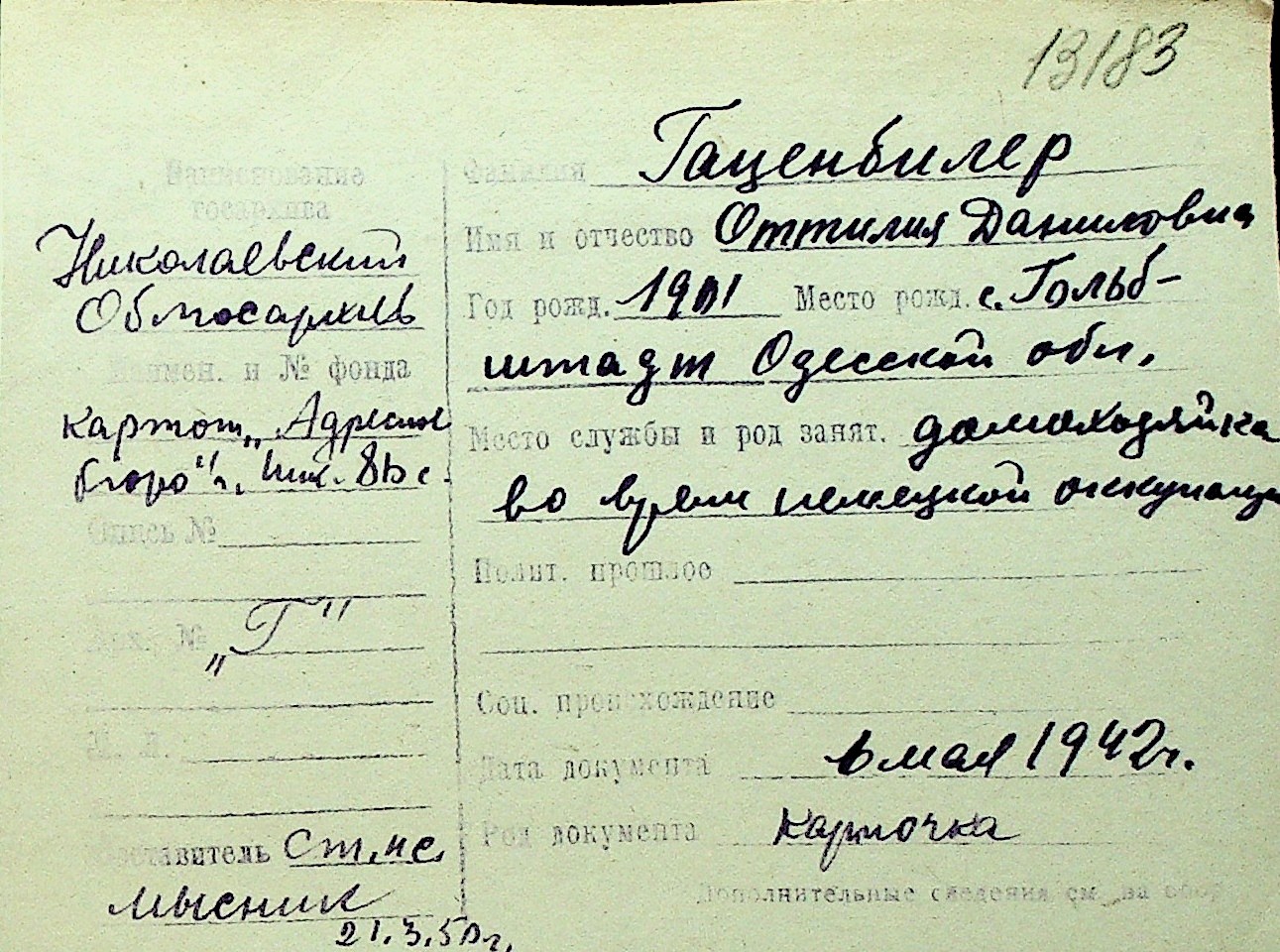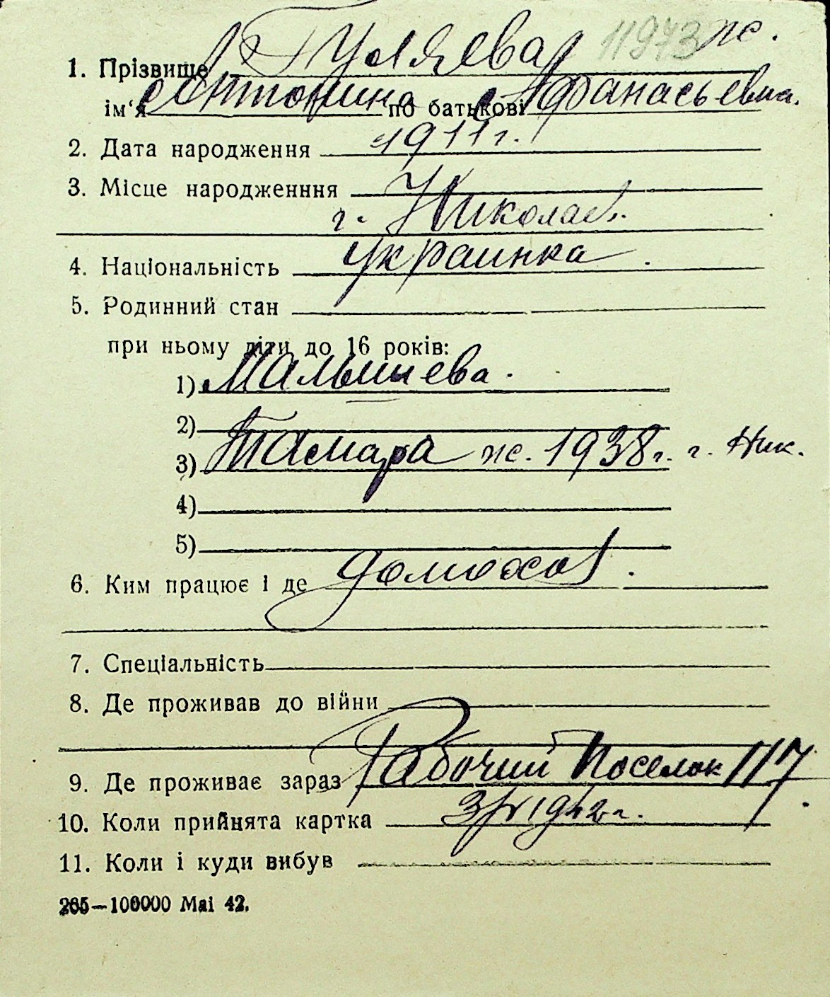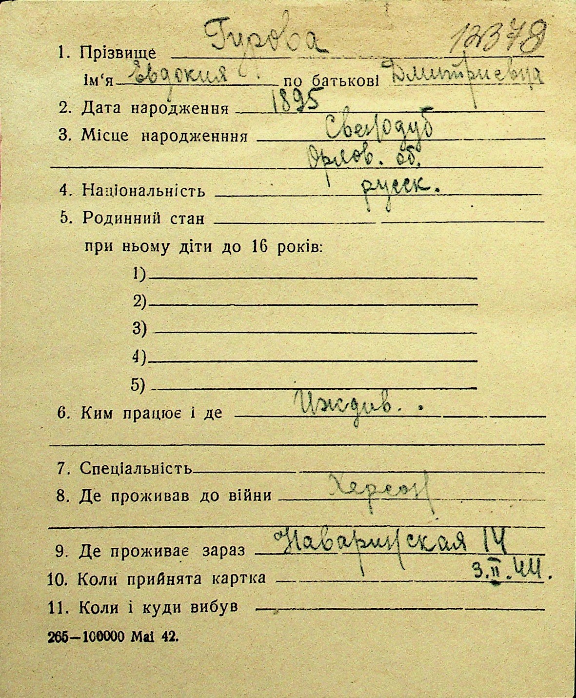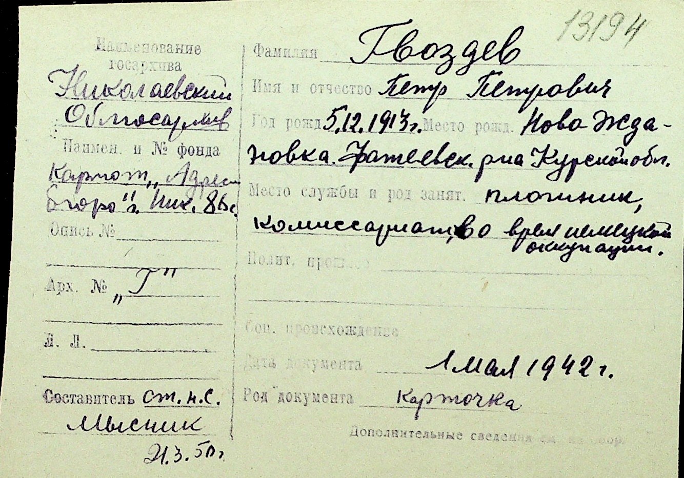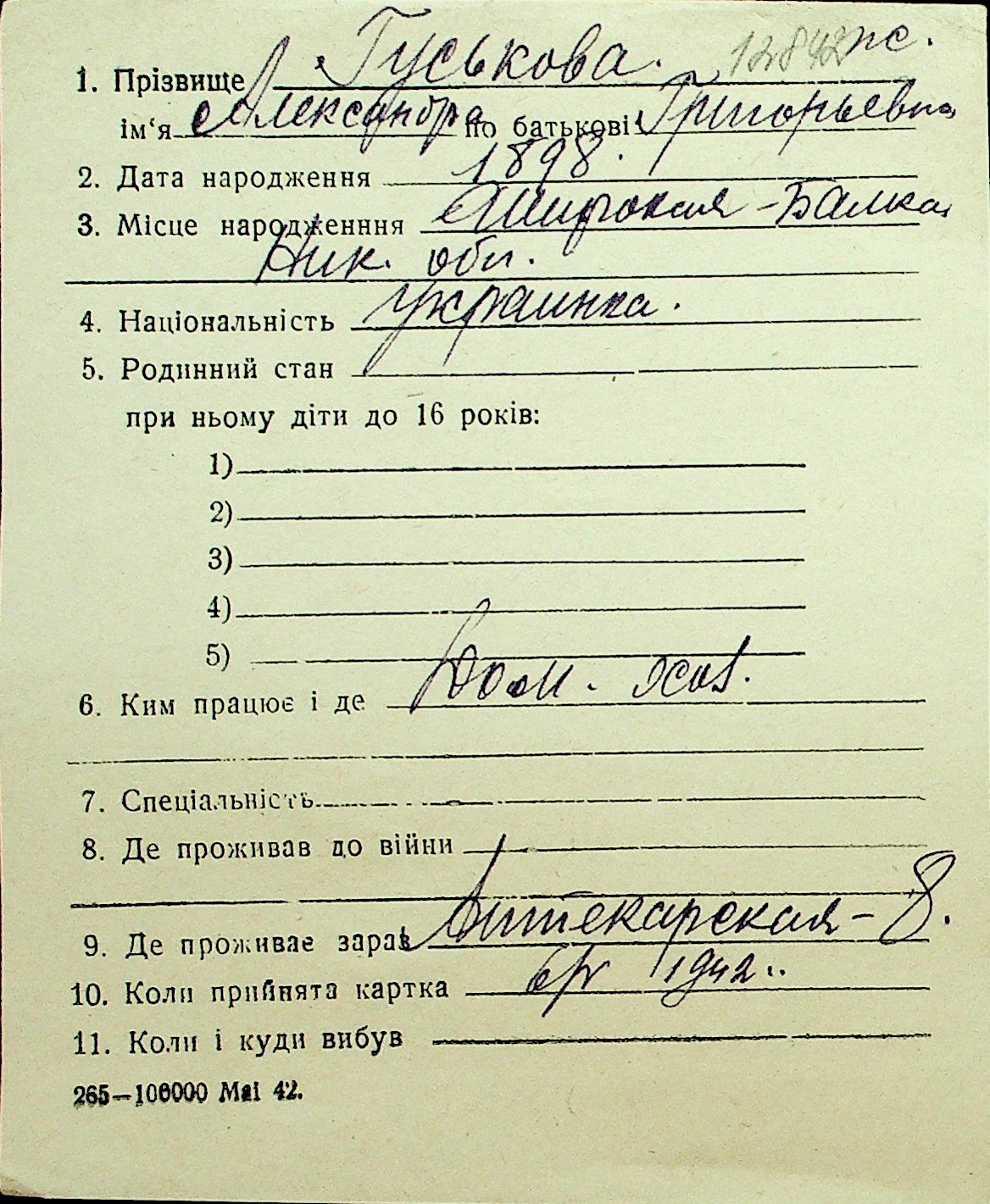 • • Перелік карток до фонду № Н-1016