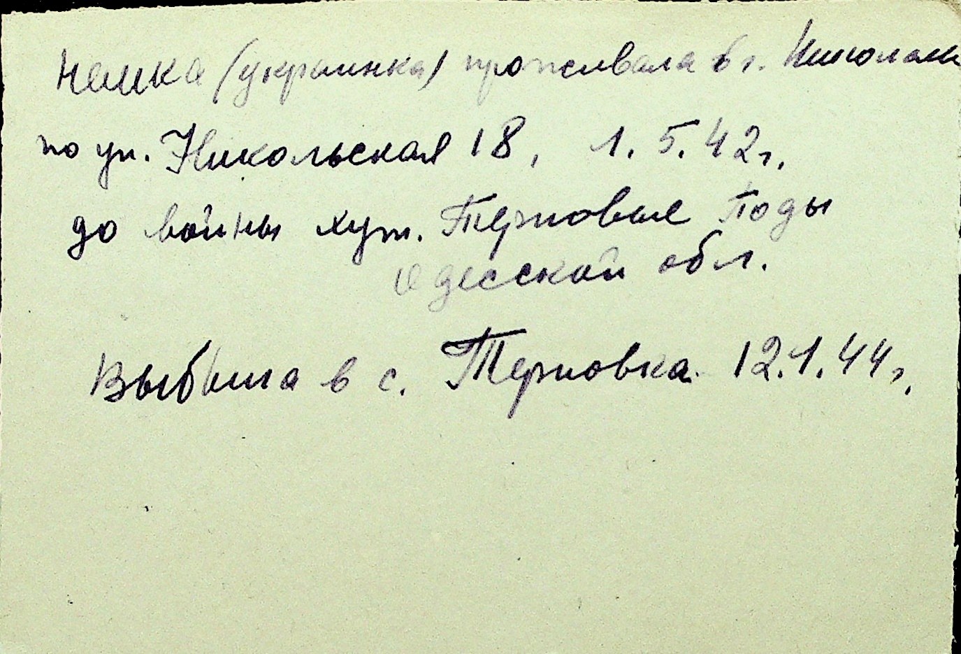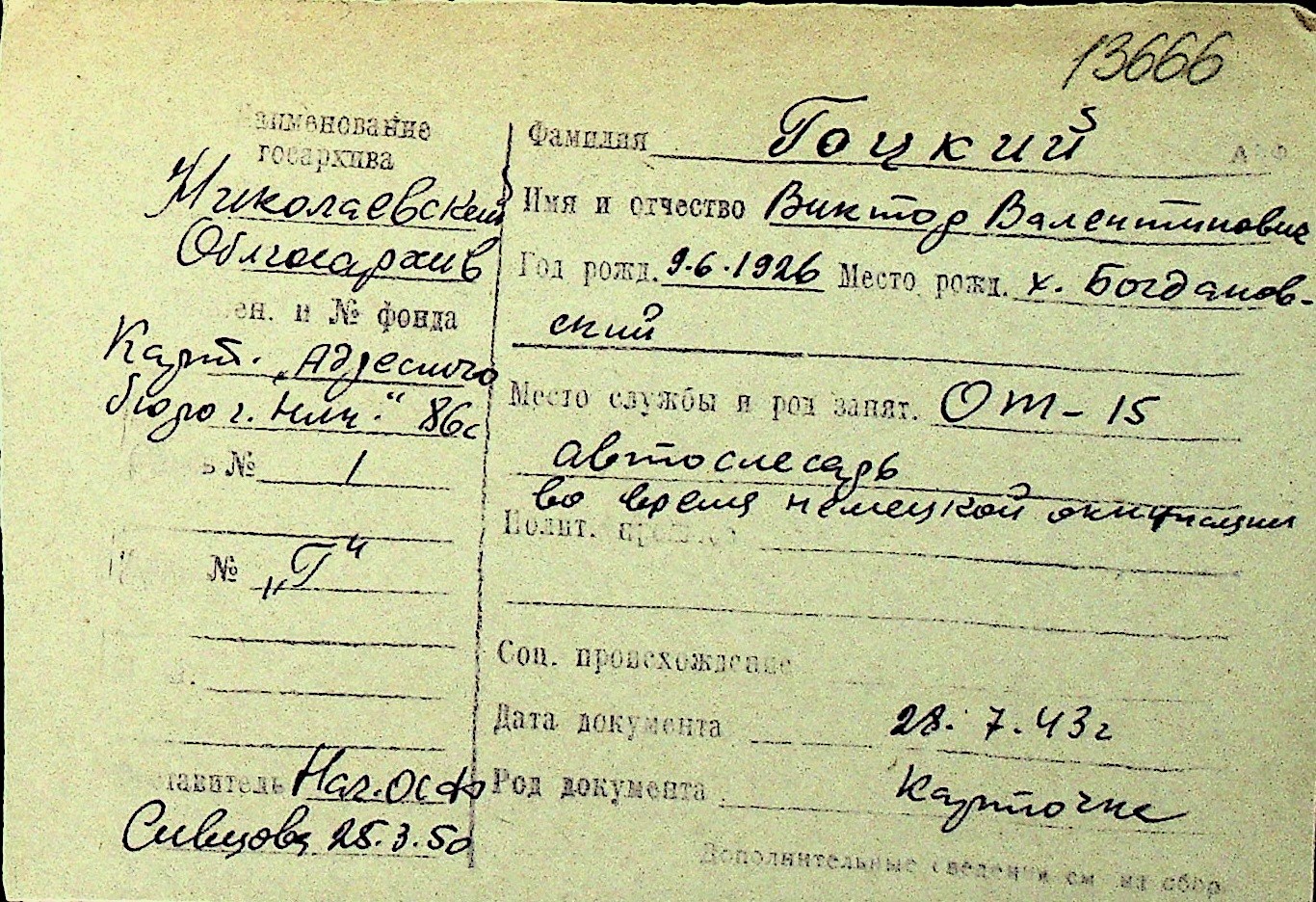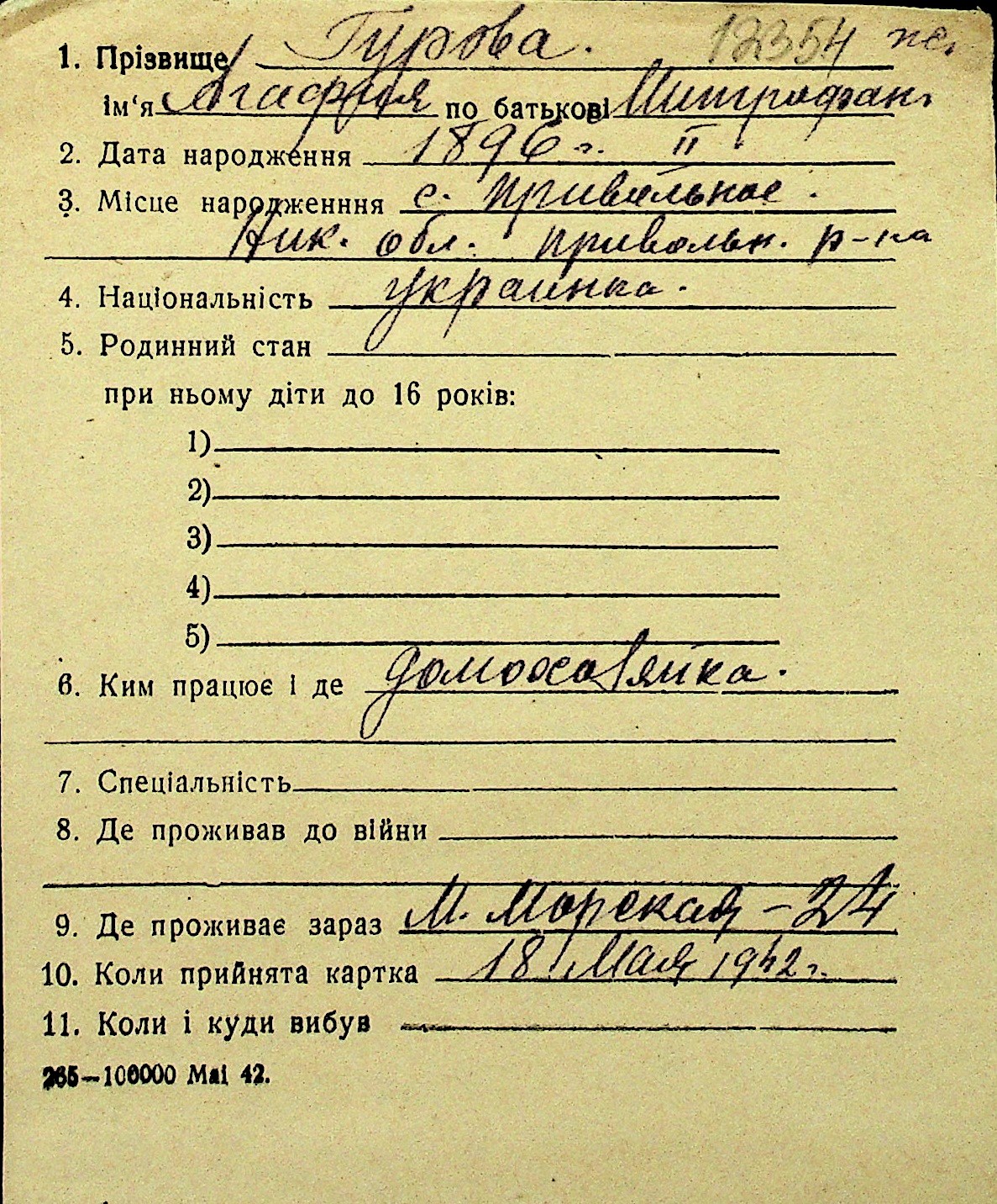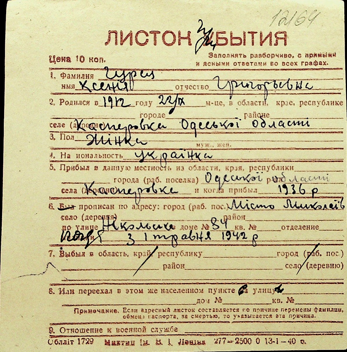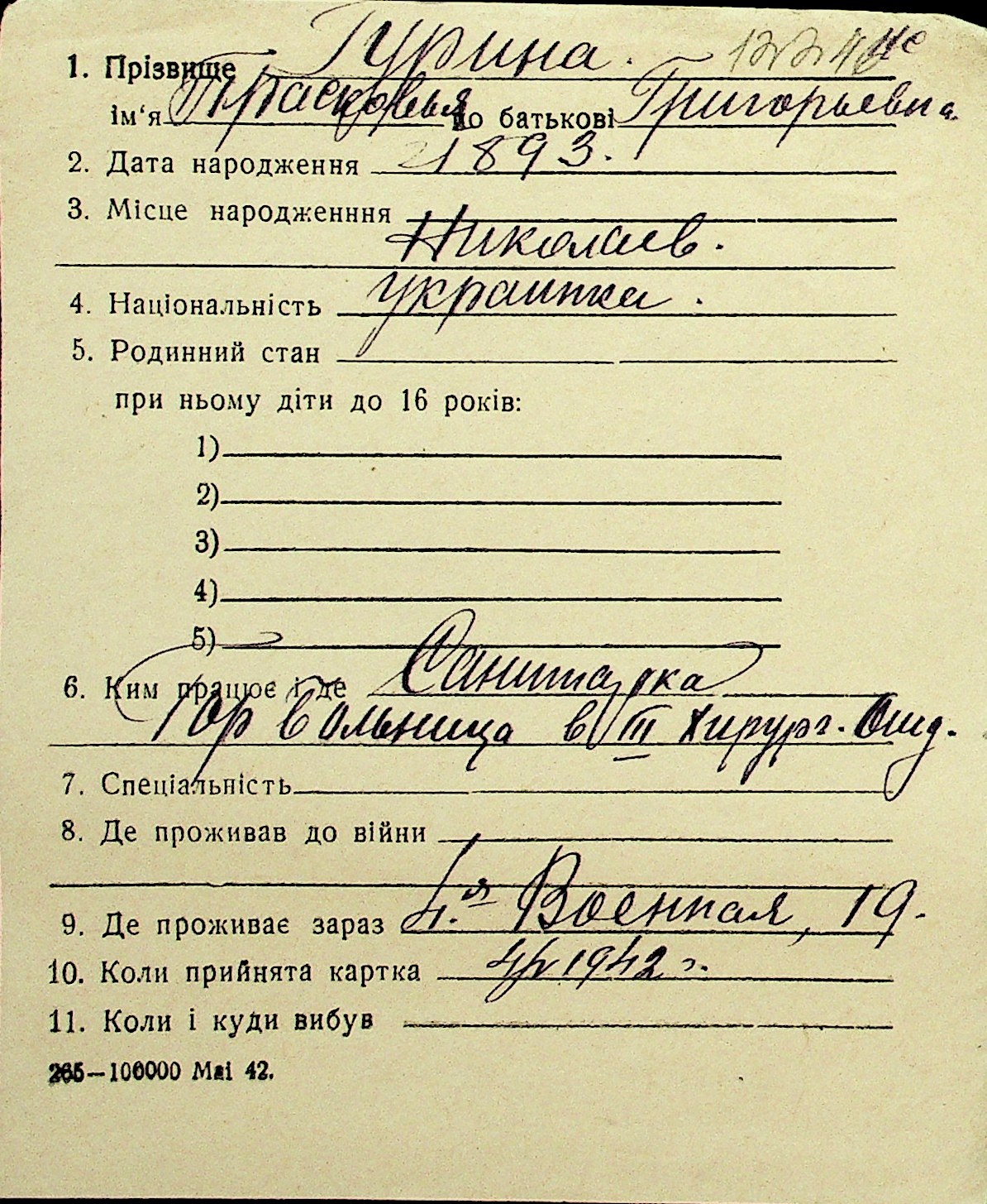 • • Перелік карток до фонду № Н-1016
