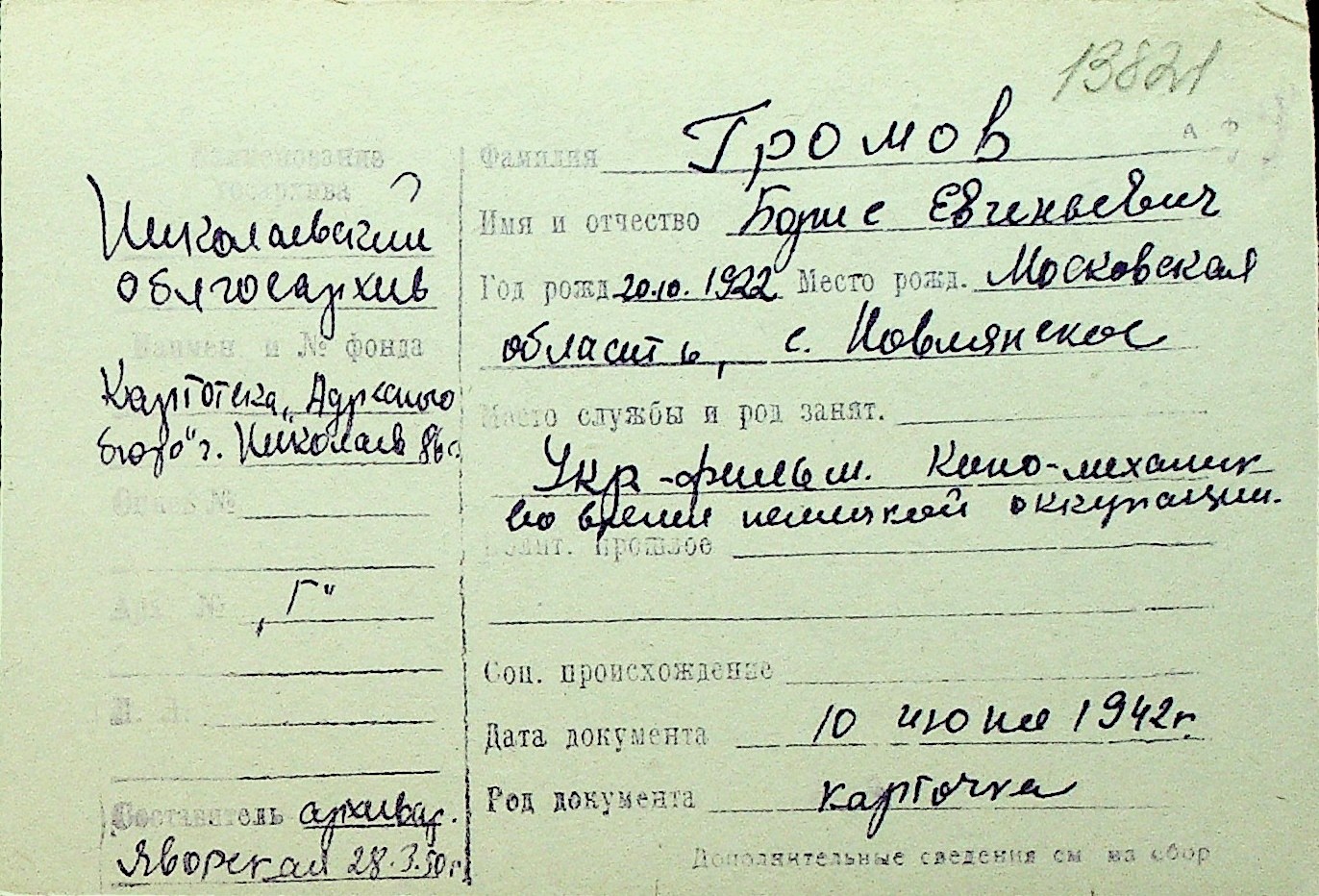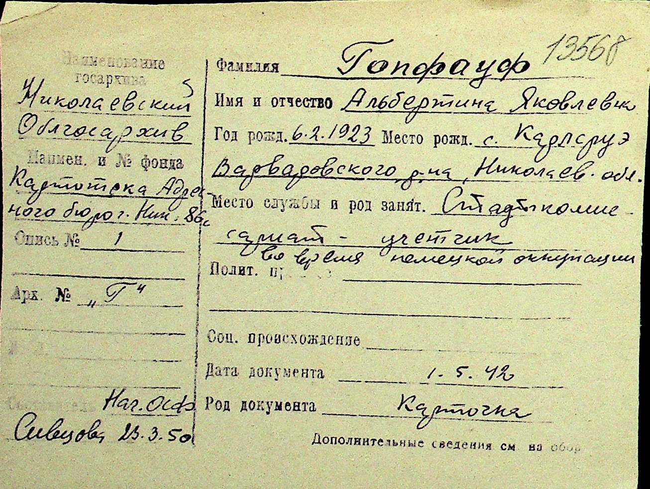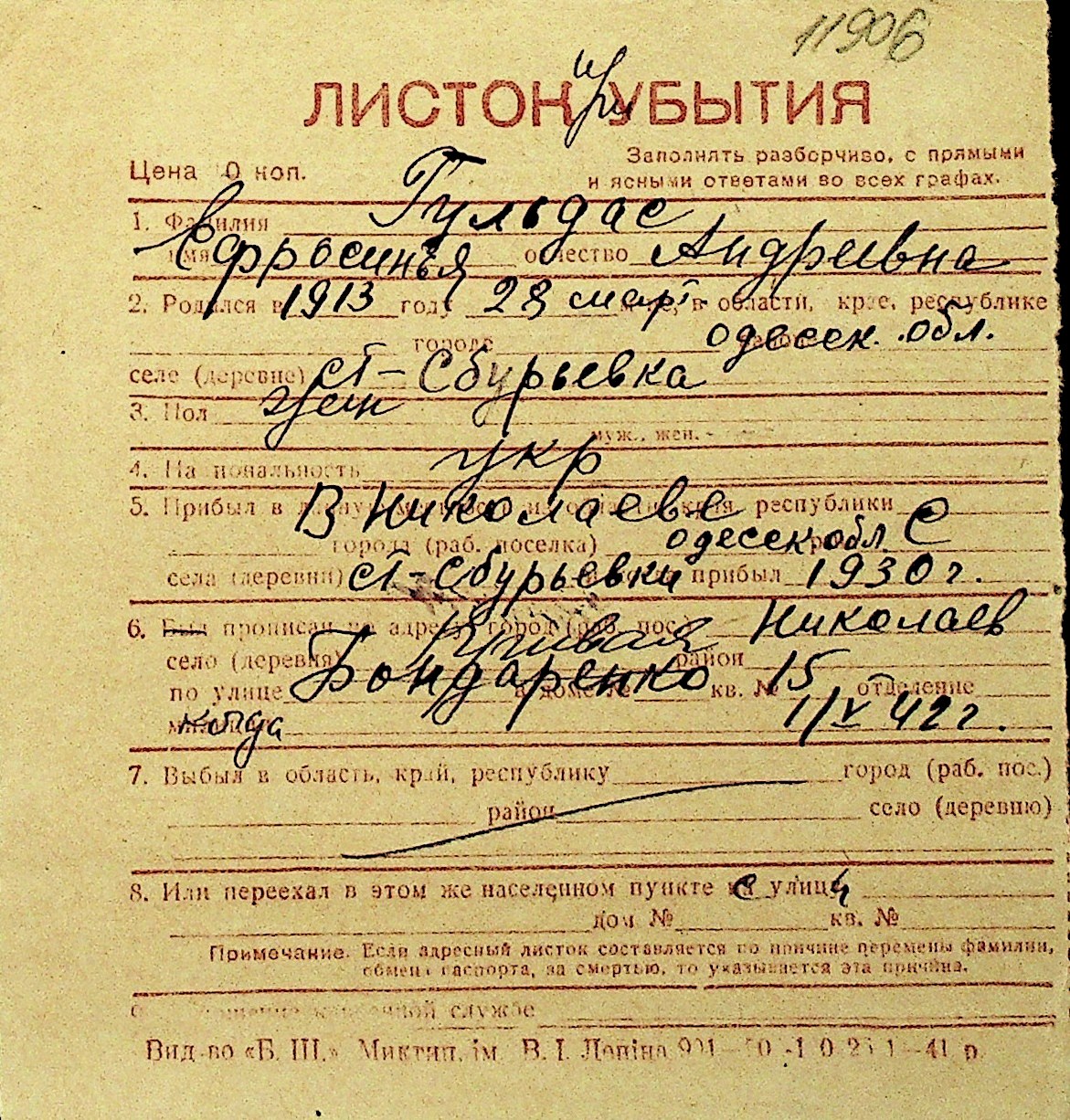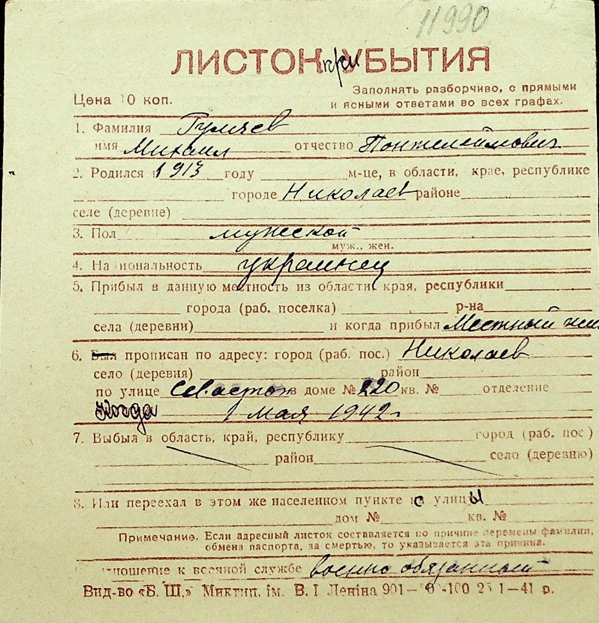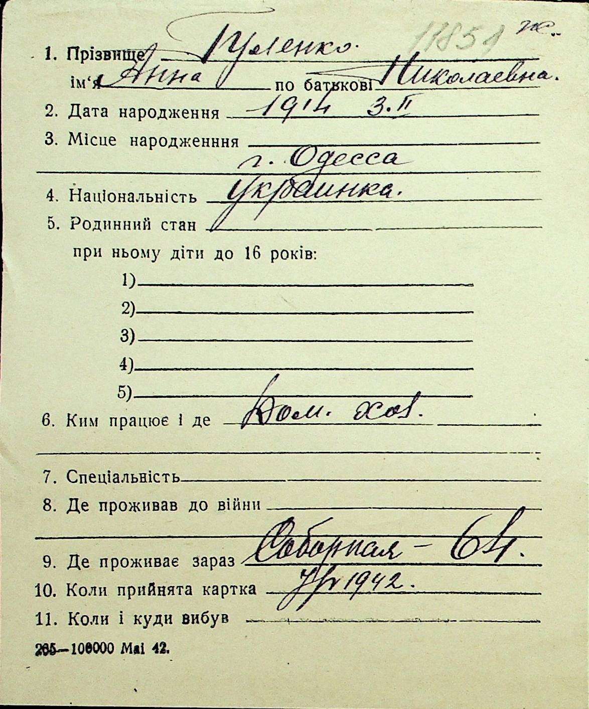 • • Перелік карток до фонду № Н-1016
