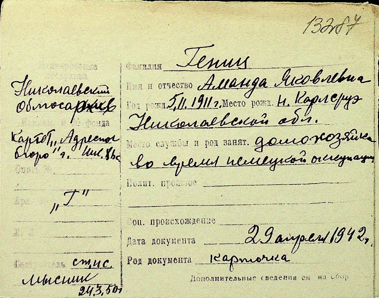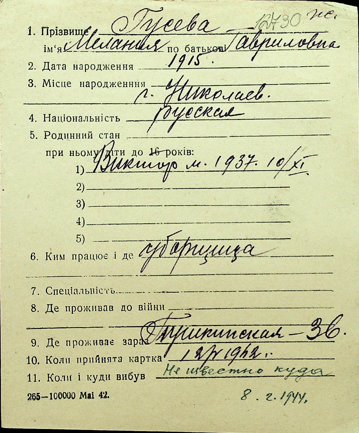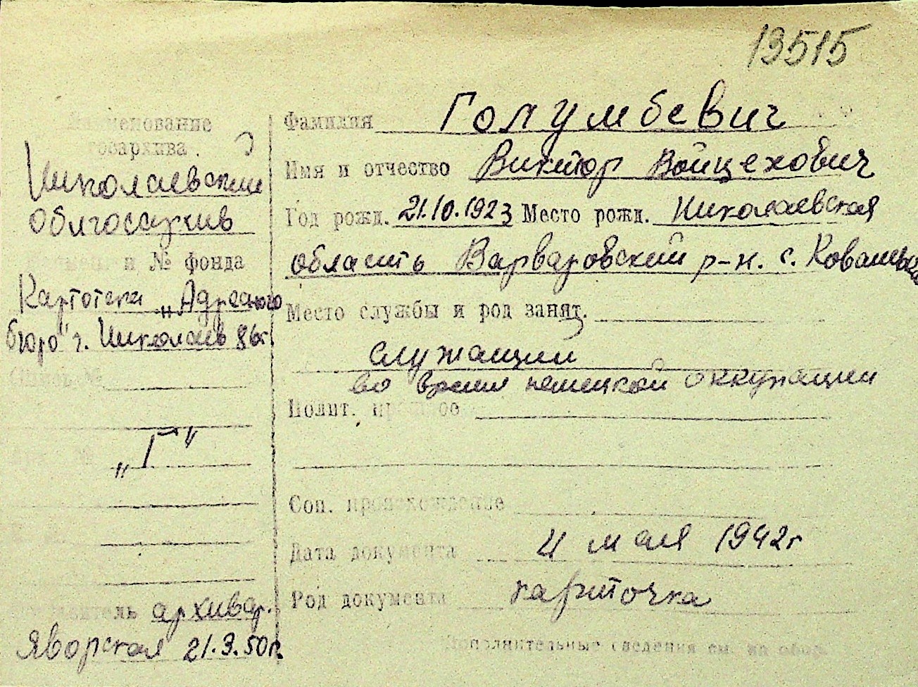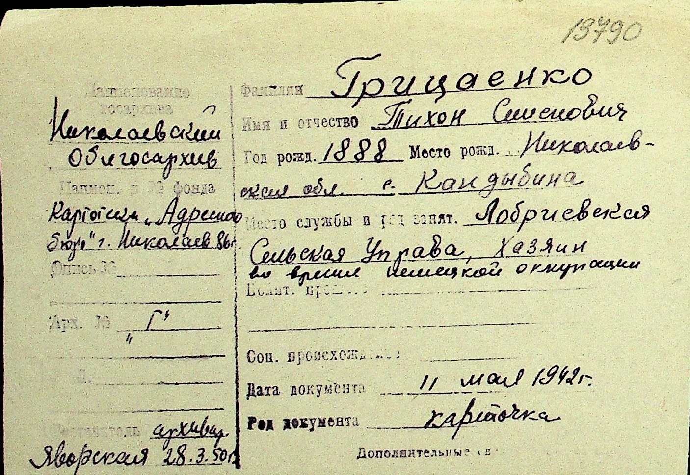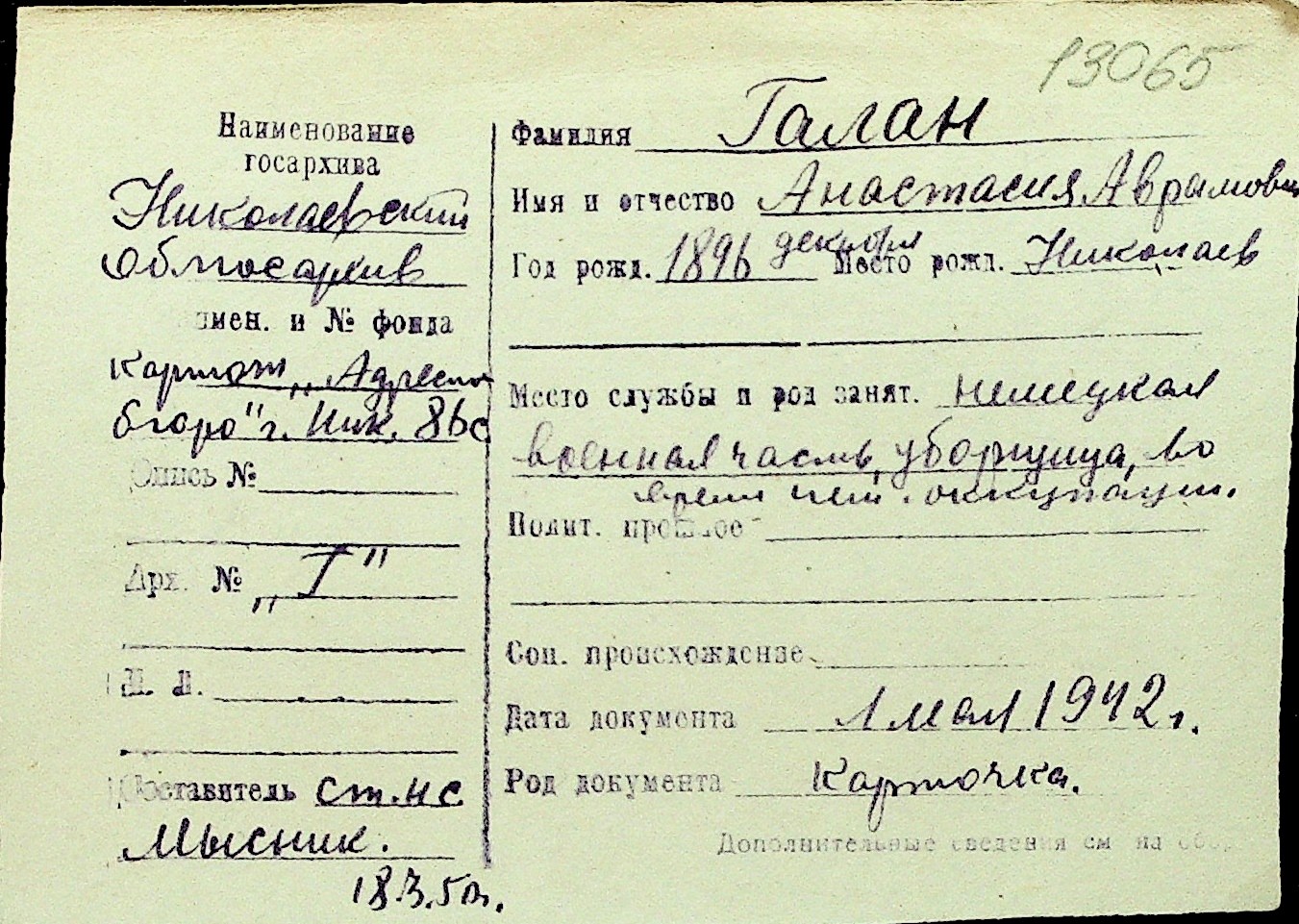 • • Перелік карток до фонду № Н-1016