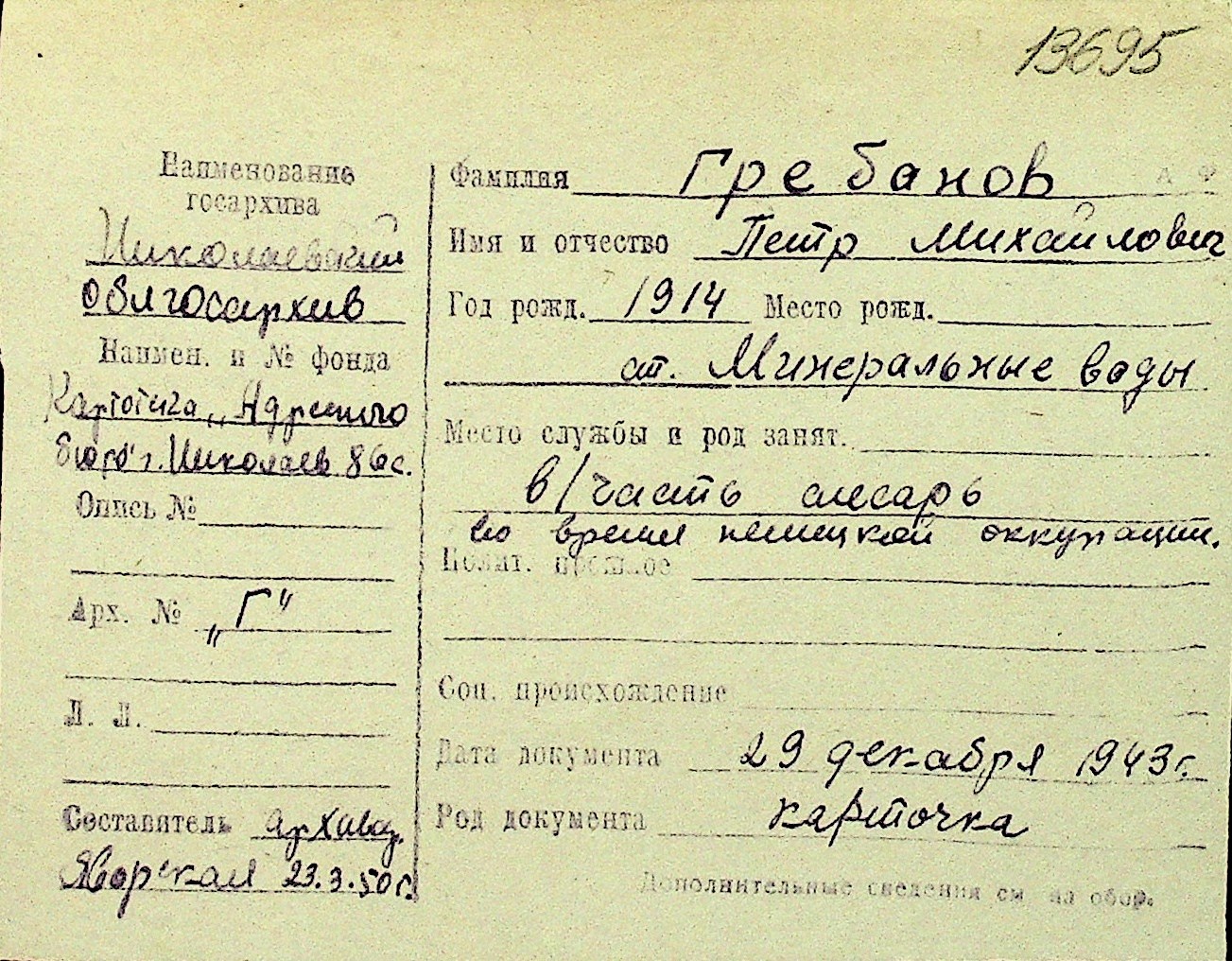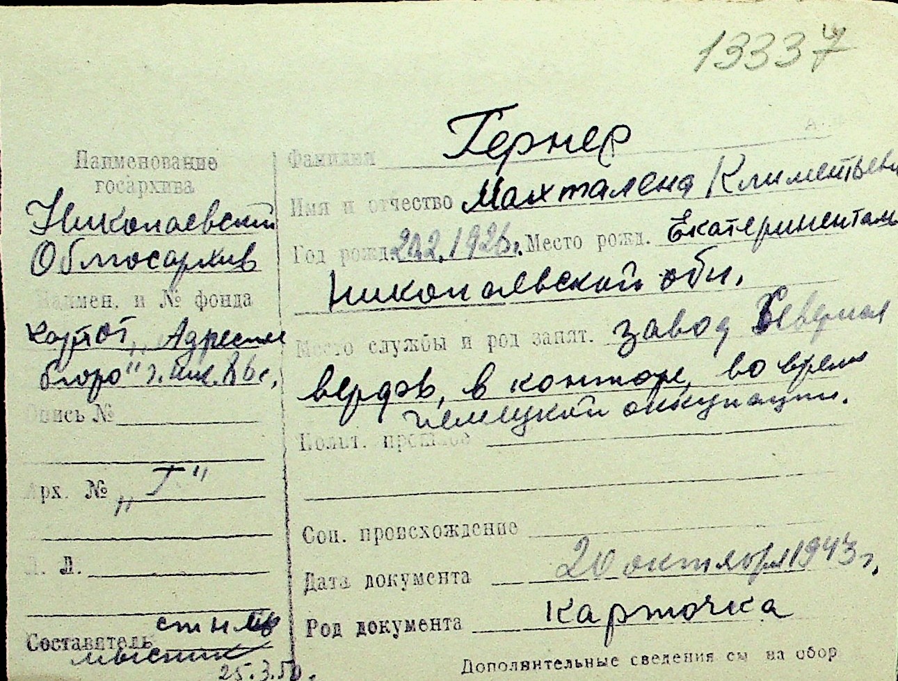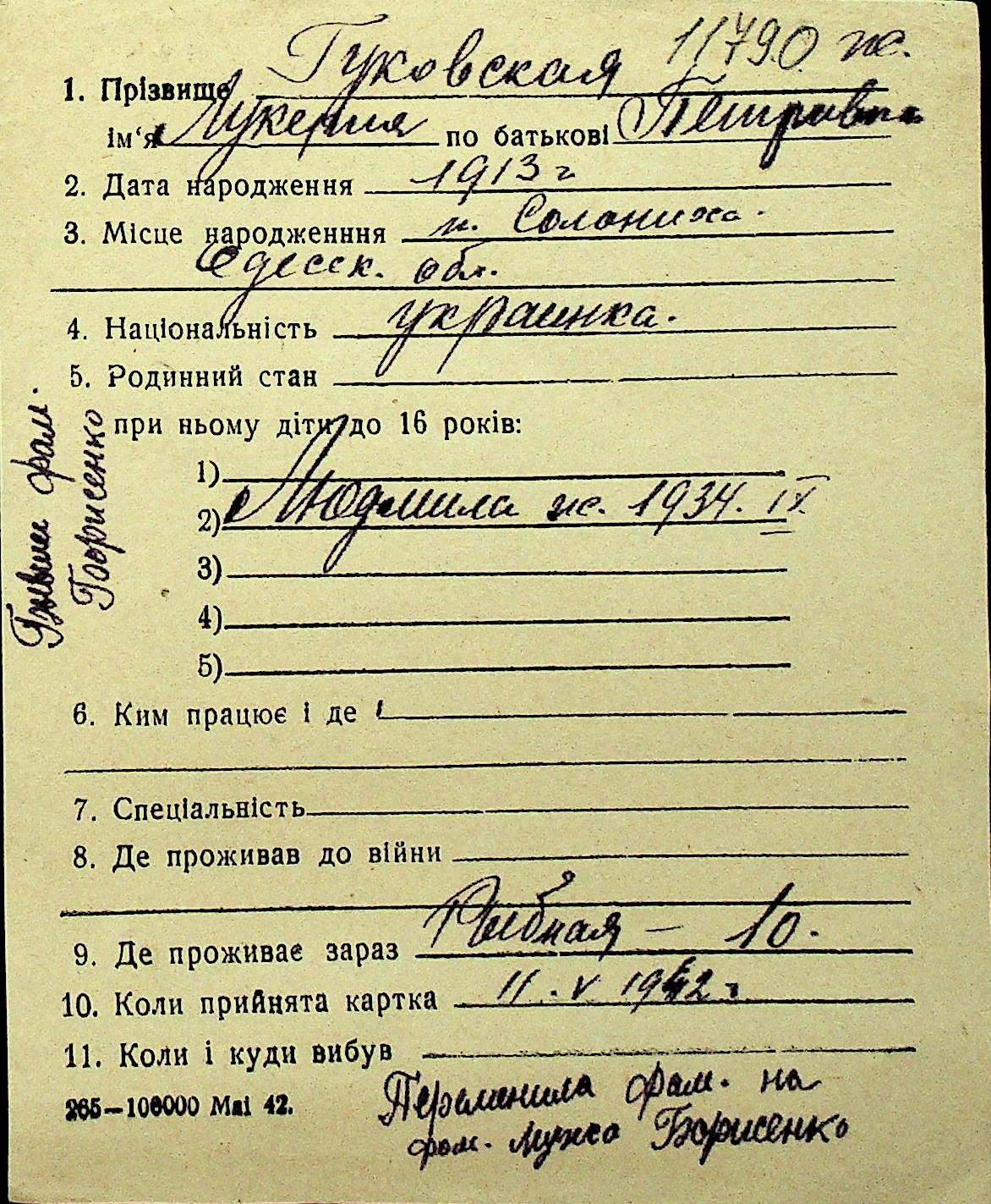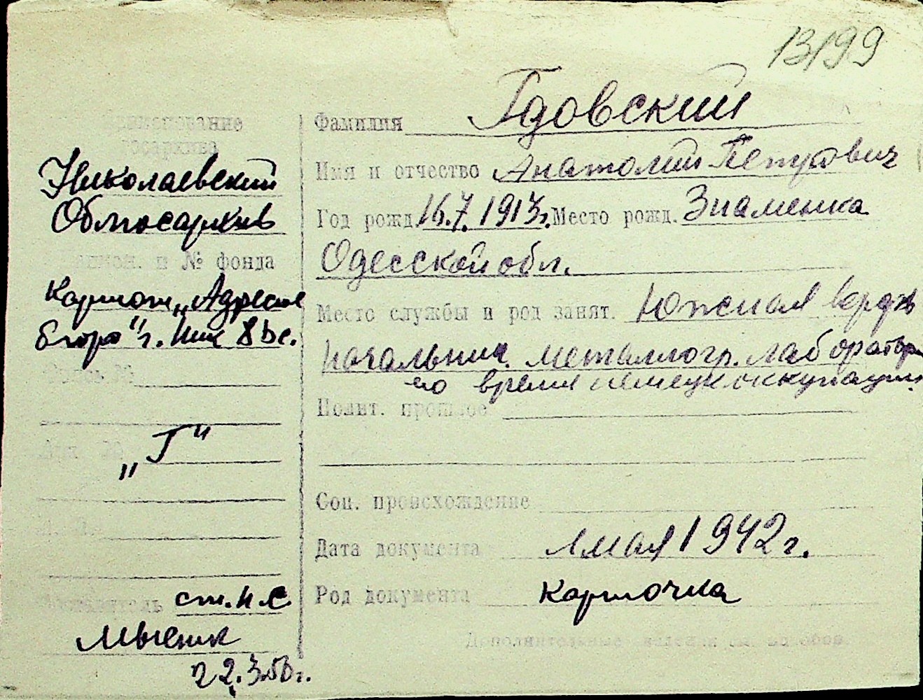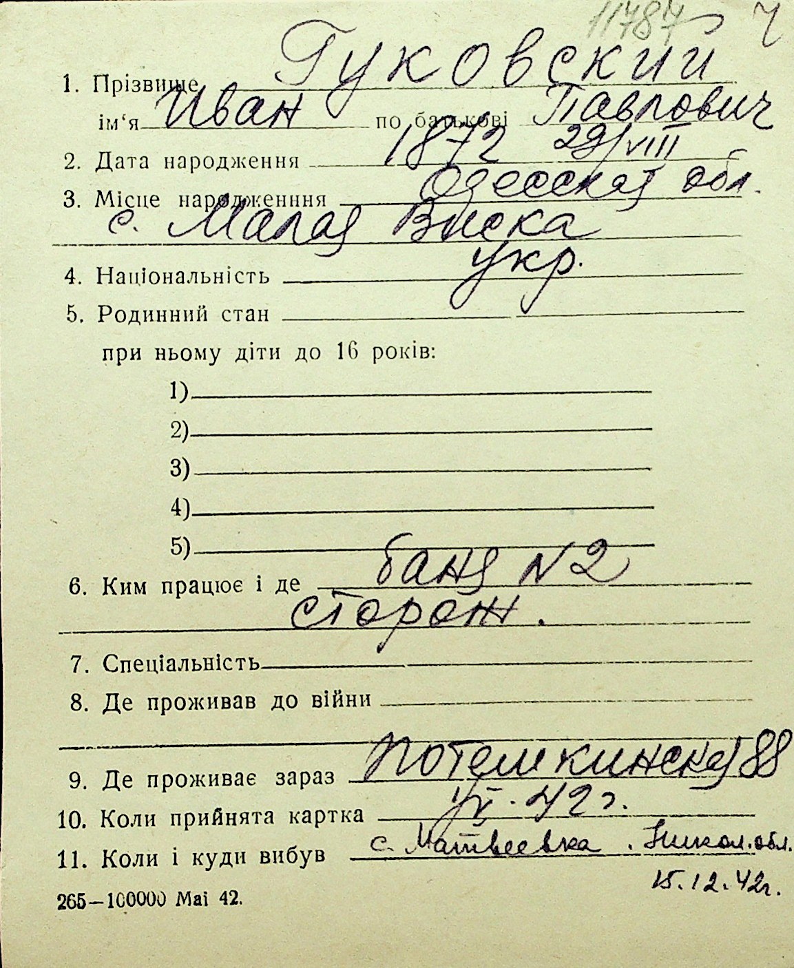 • • Перелік карток до фонду № Н-1016
