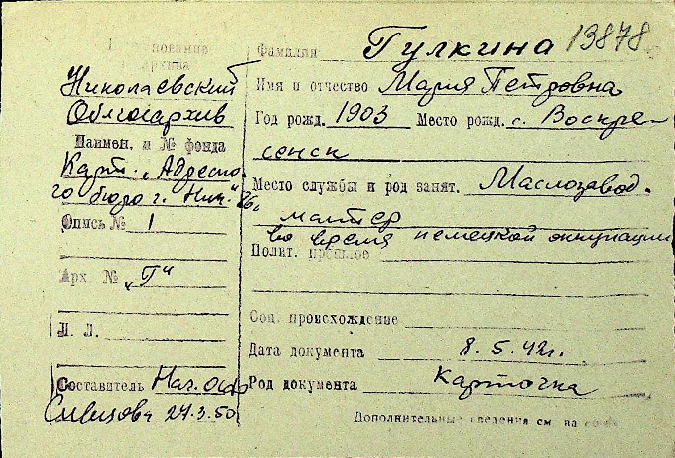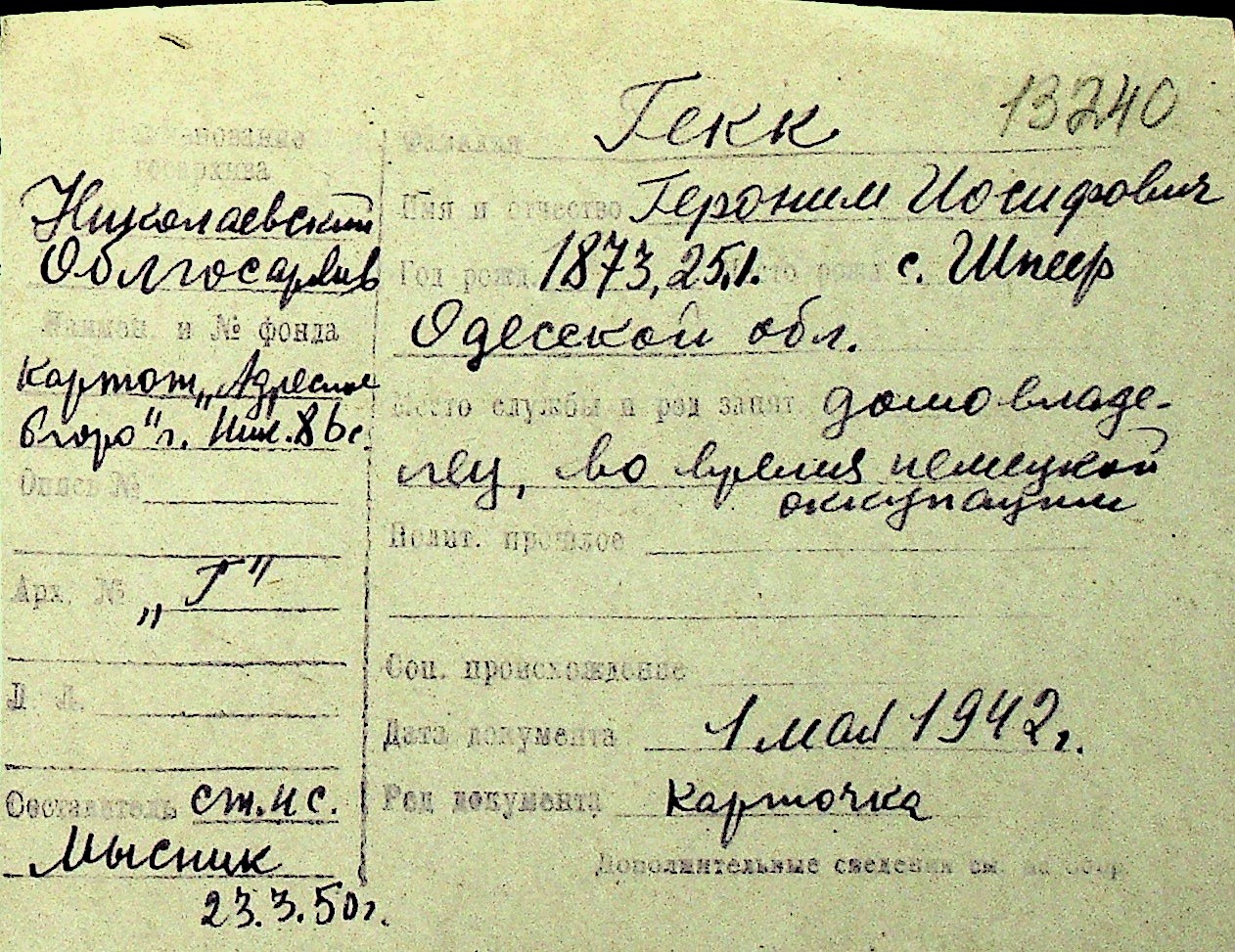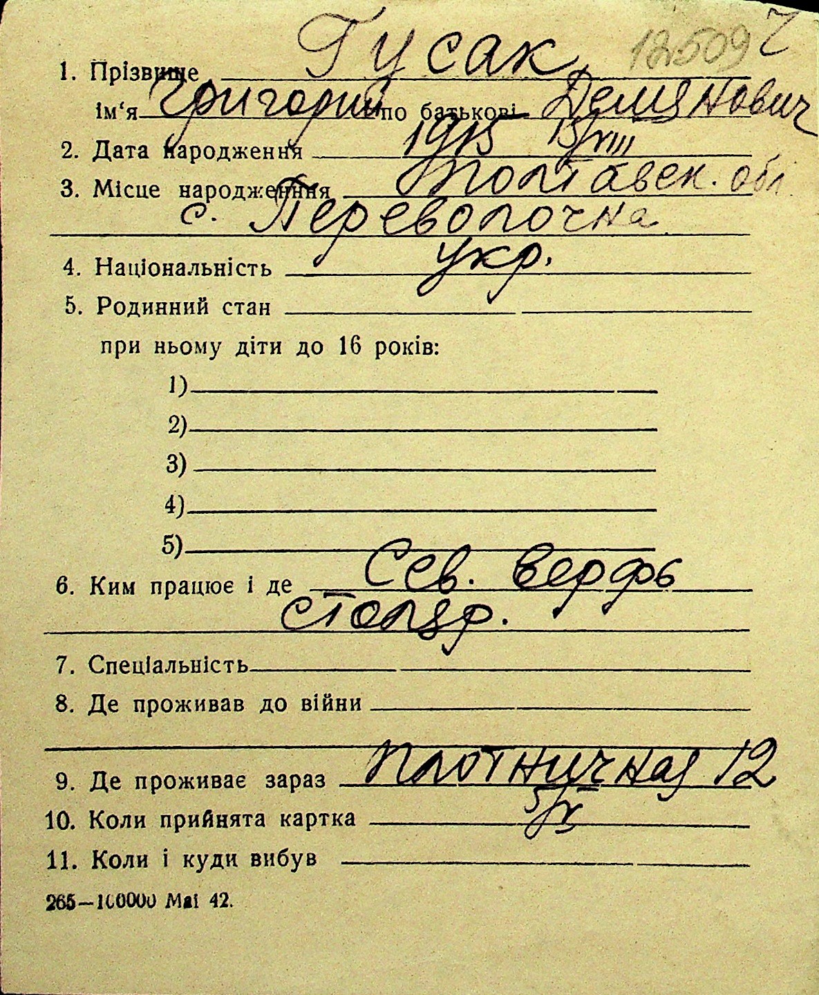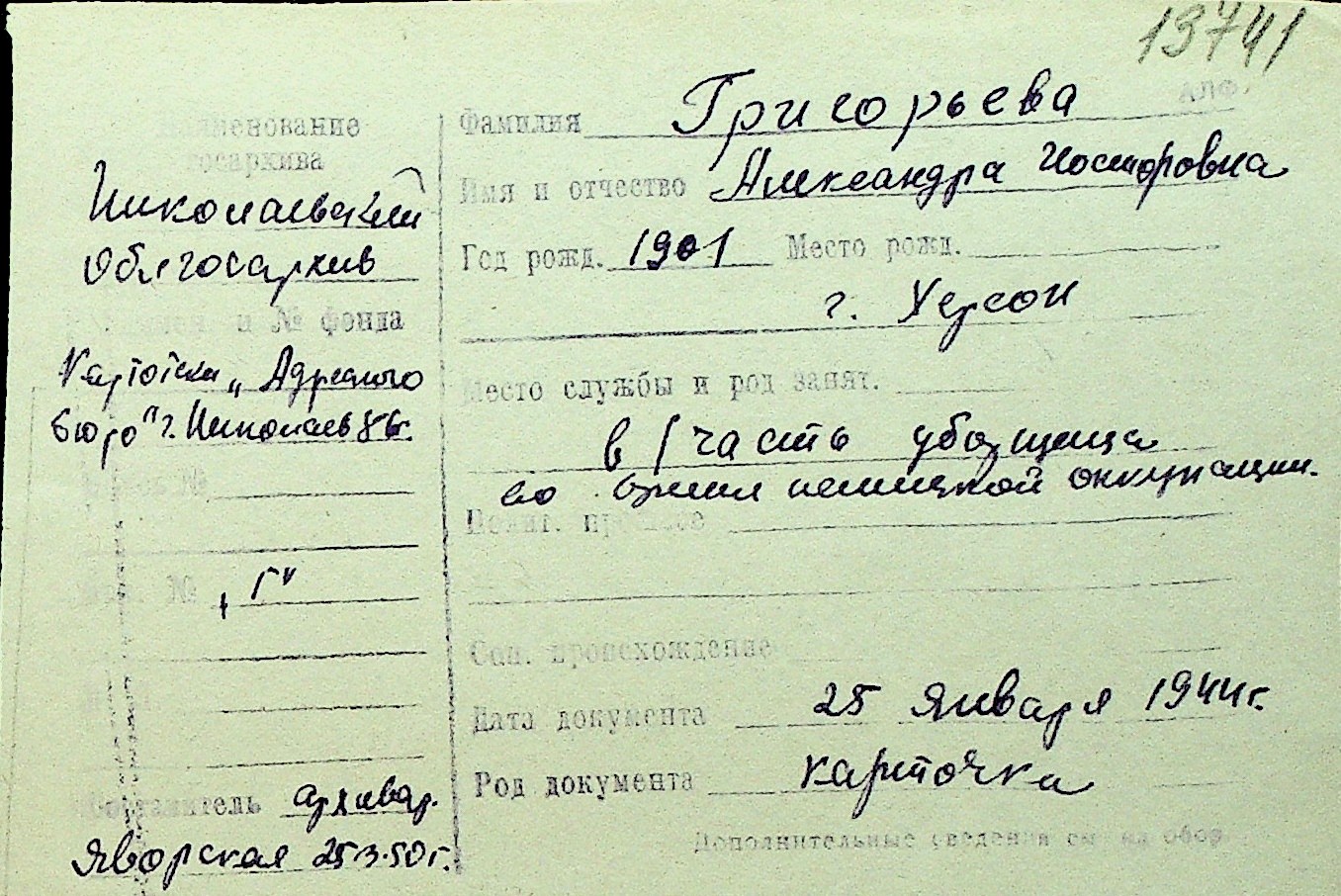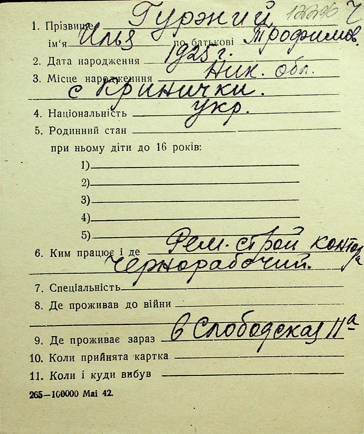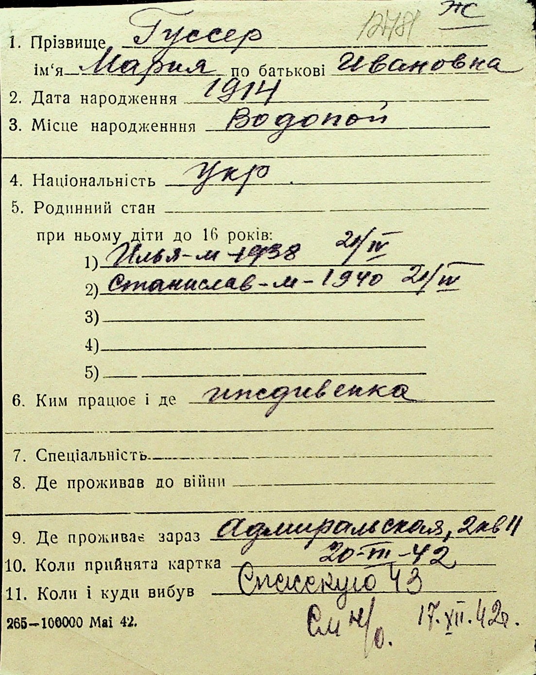 • • Перелік карток до фонду № Н-1016