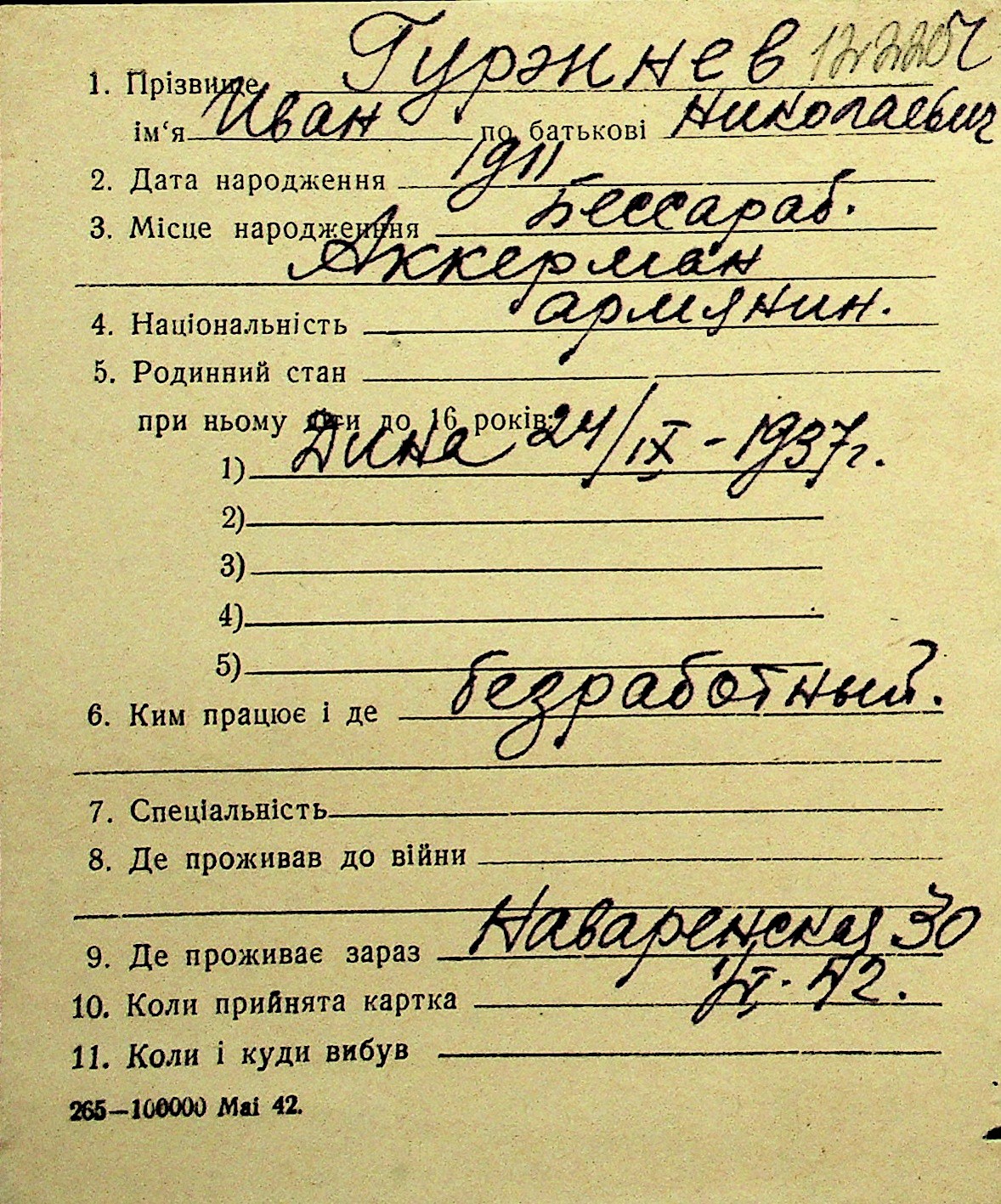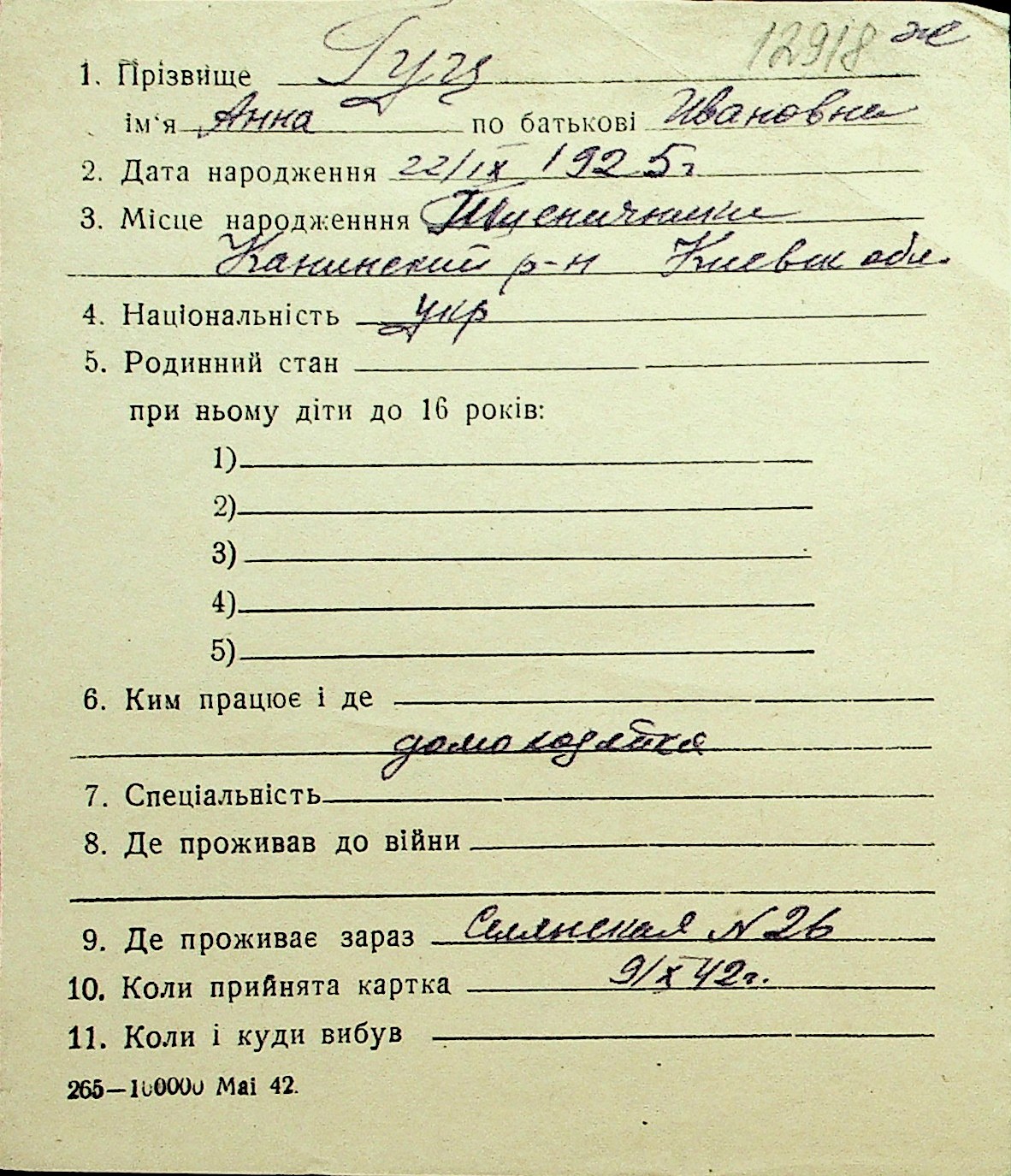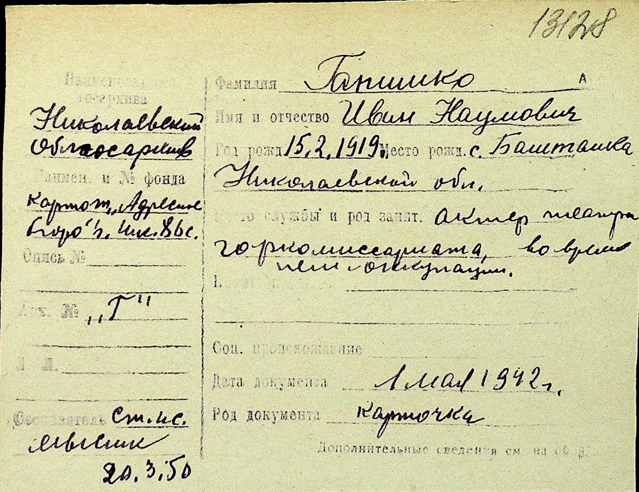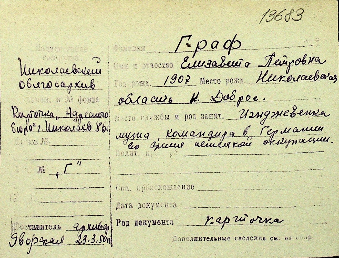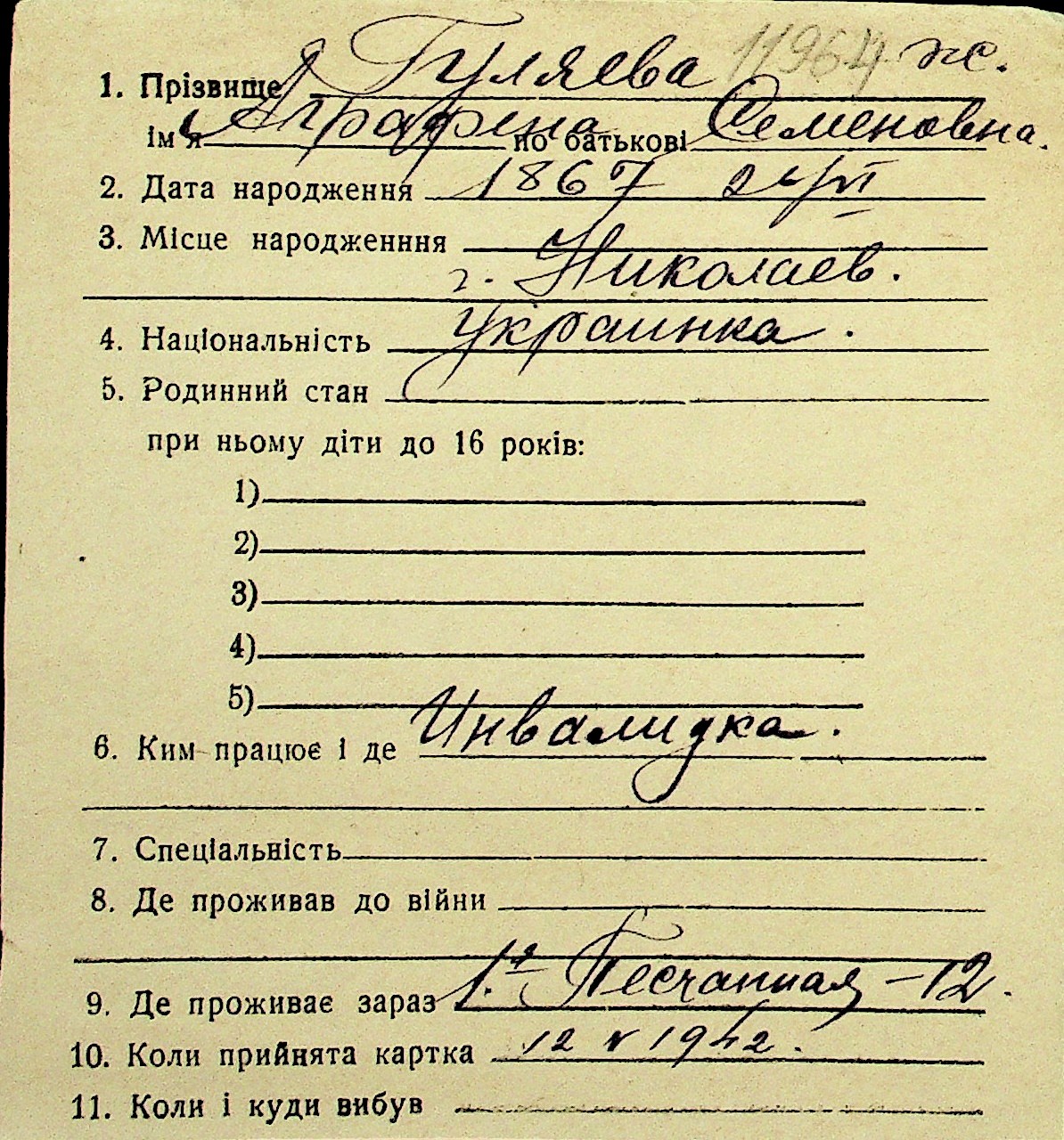 • • Перелік карток до фонду № Н-1016