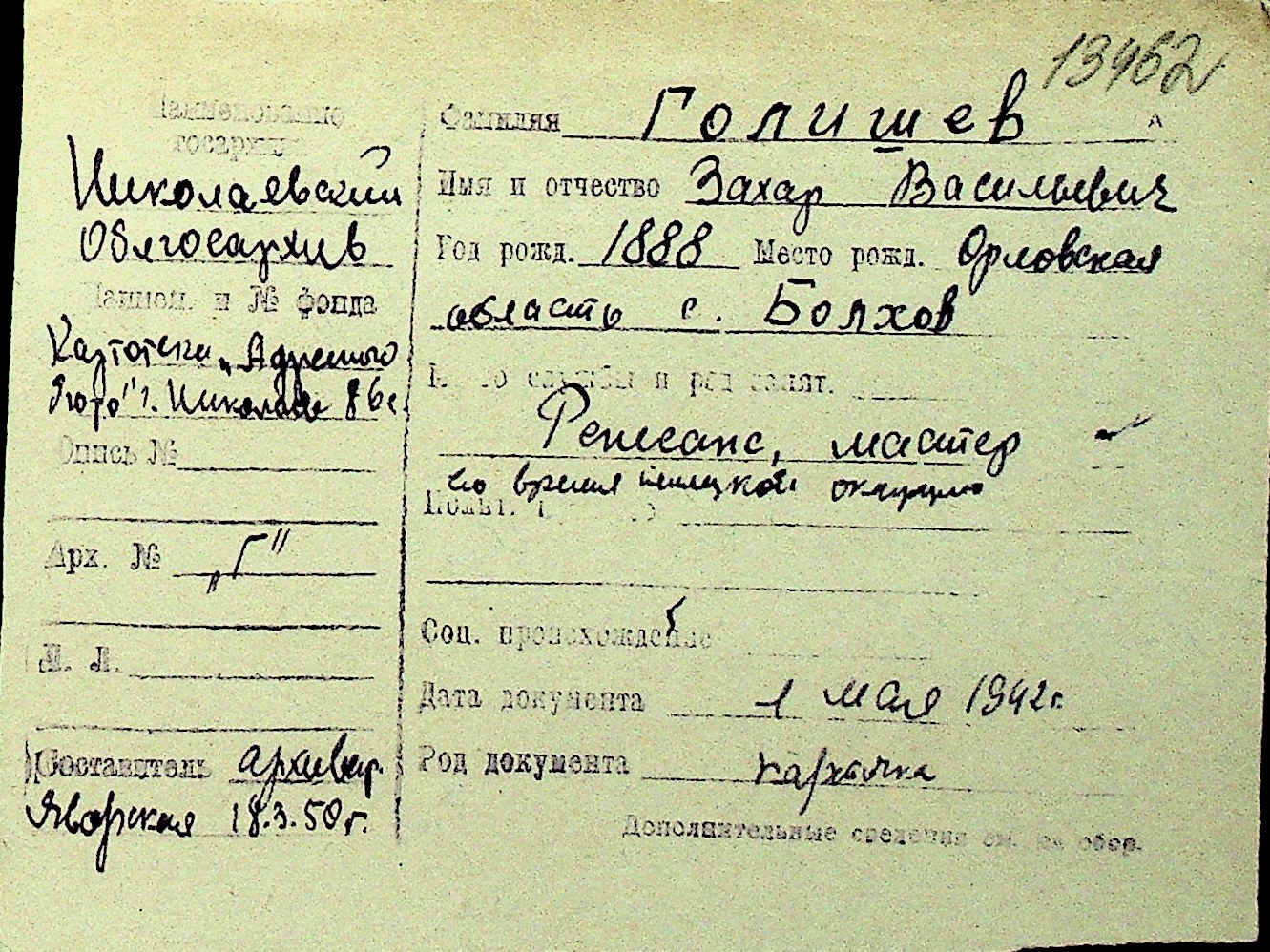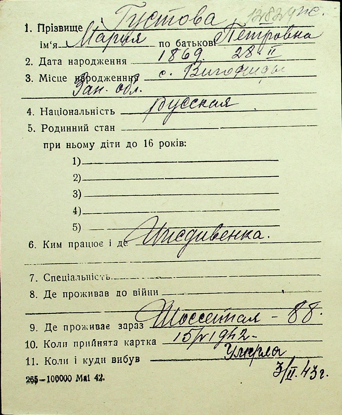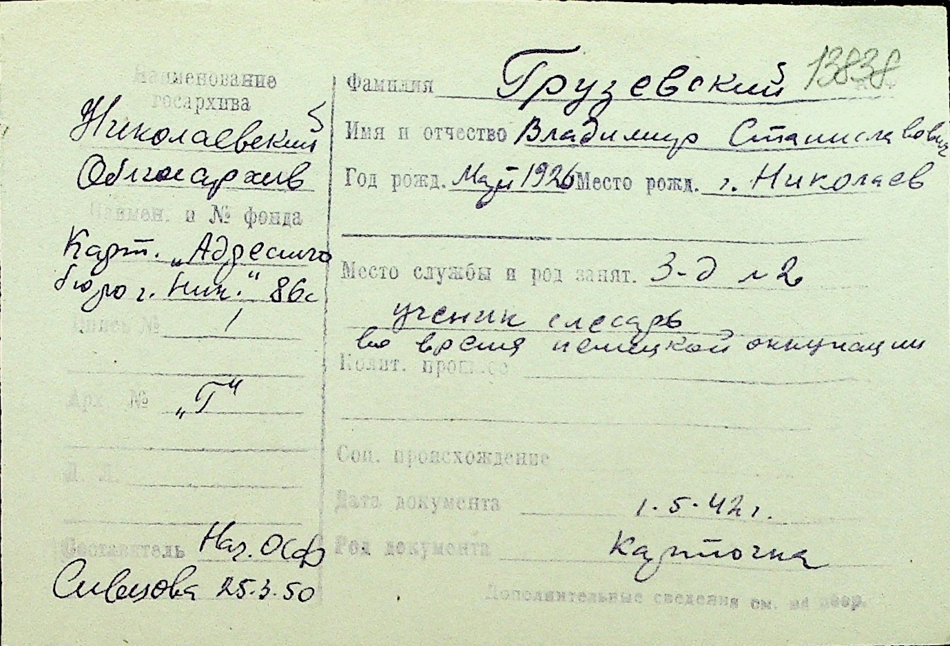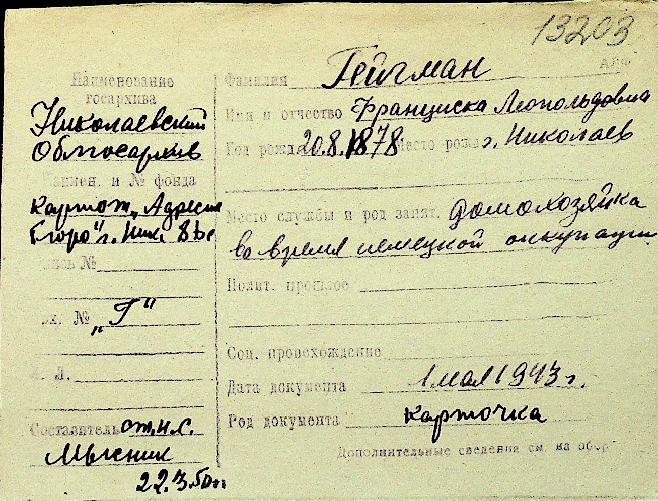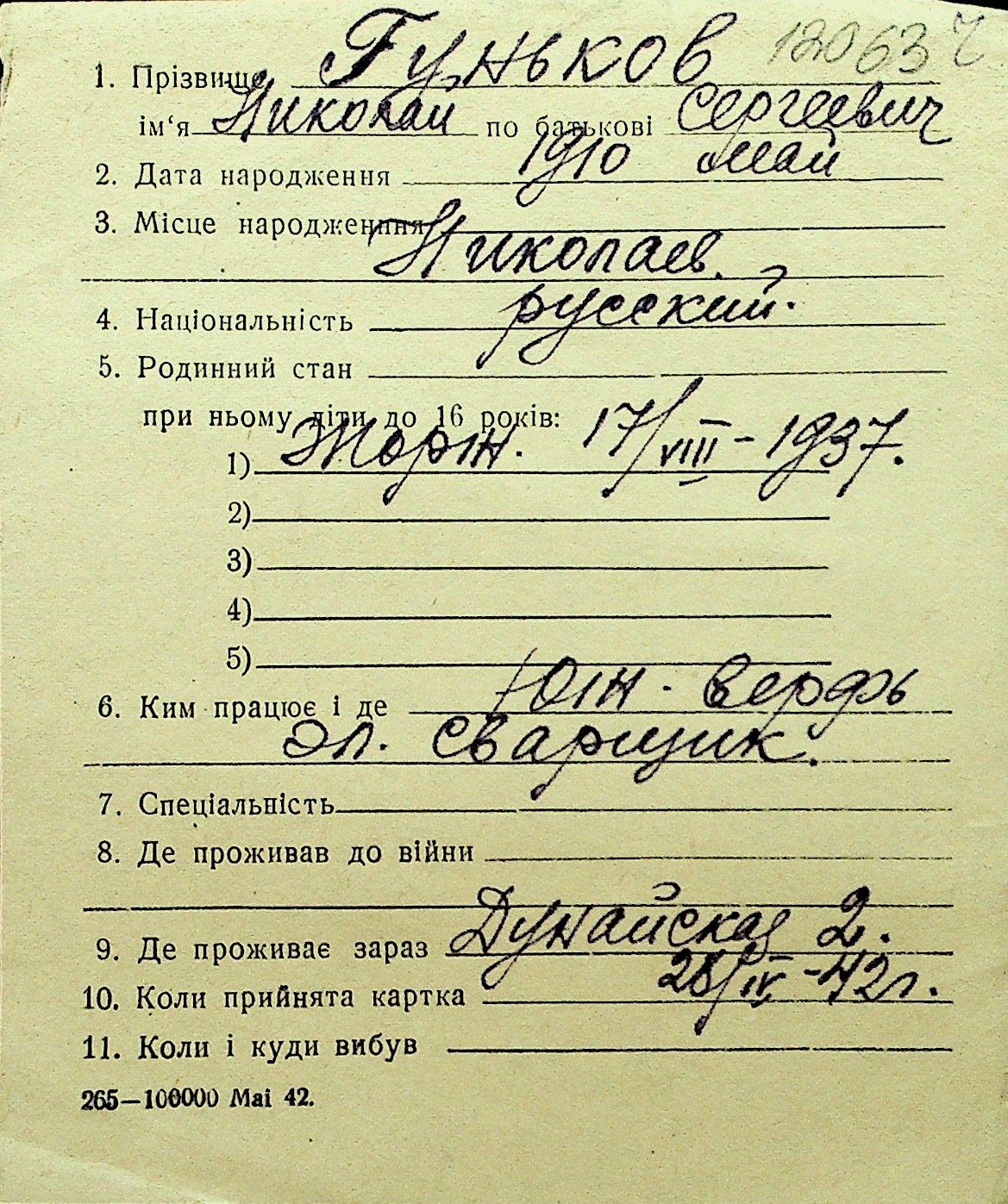 • • Перелік карток до фонду № Н-1016