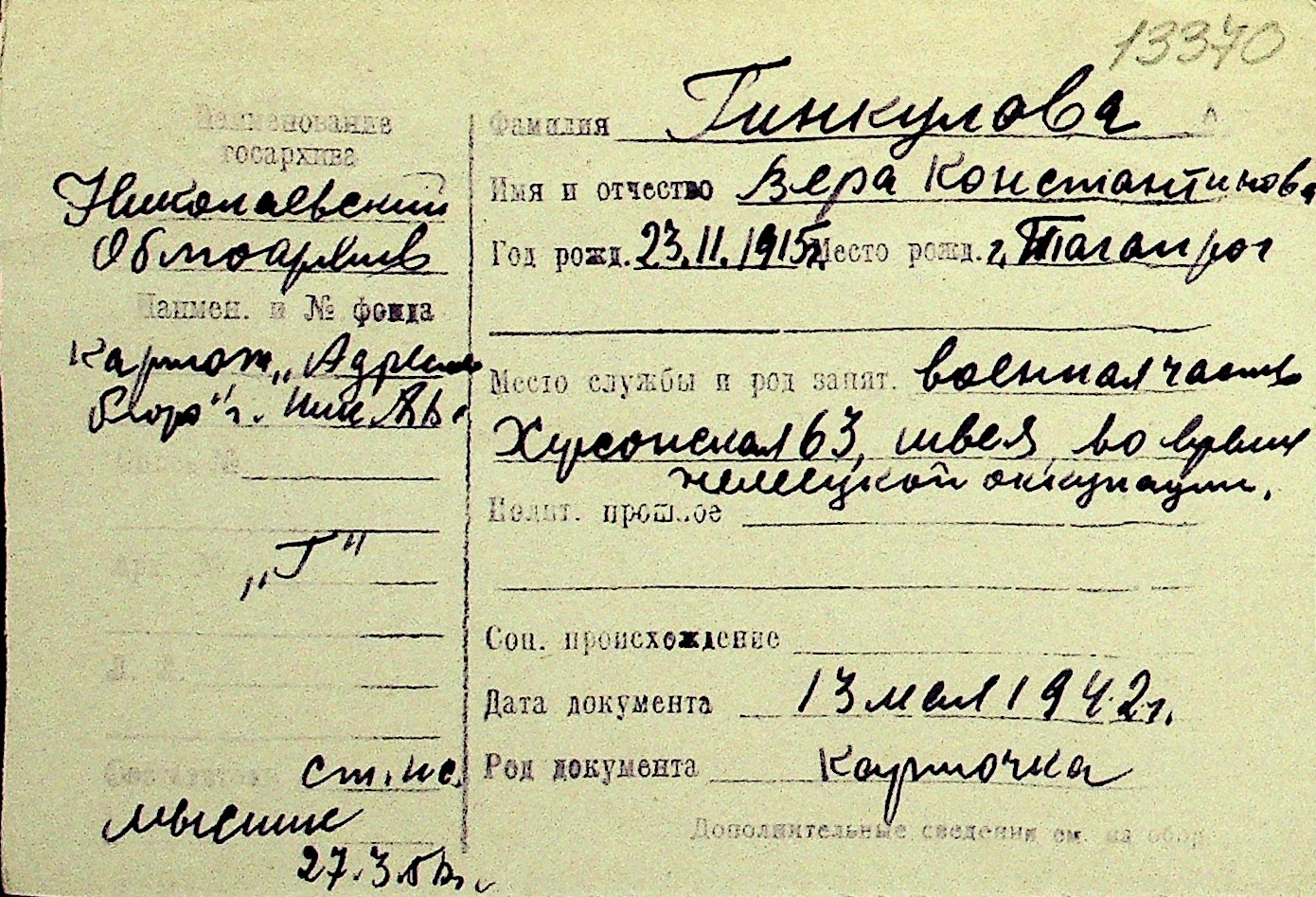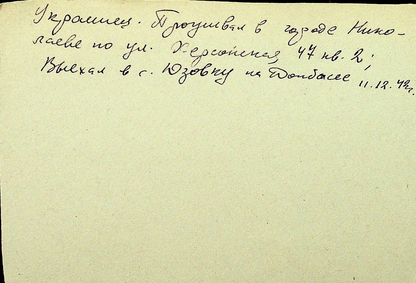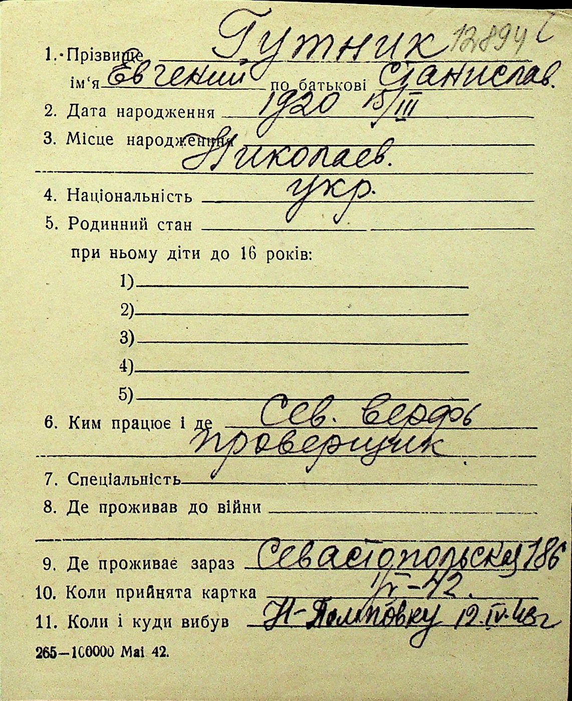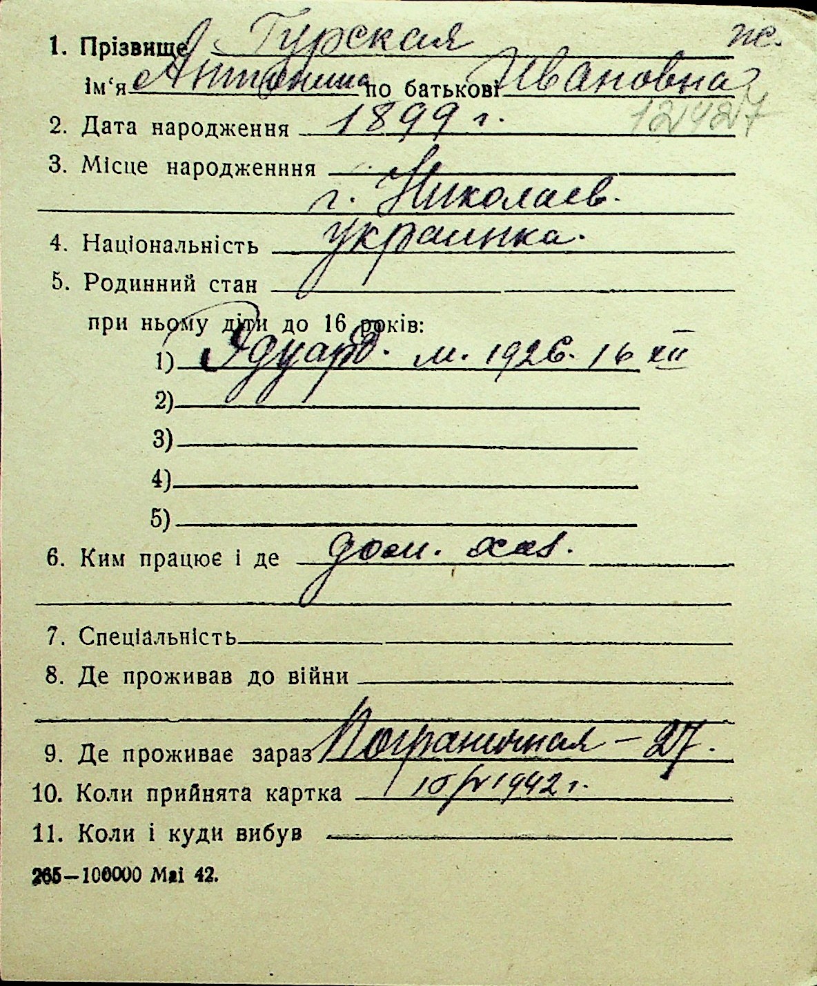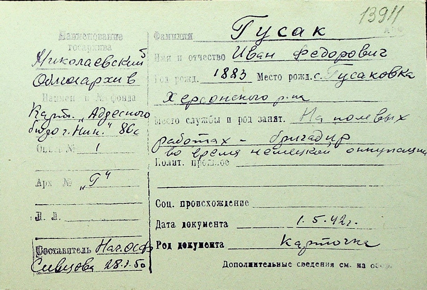 • • Перелік карток до фонду № Н-1016