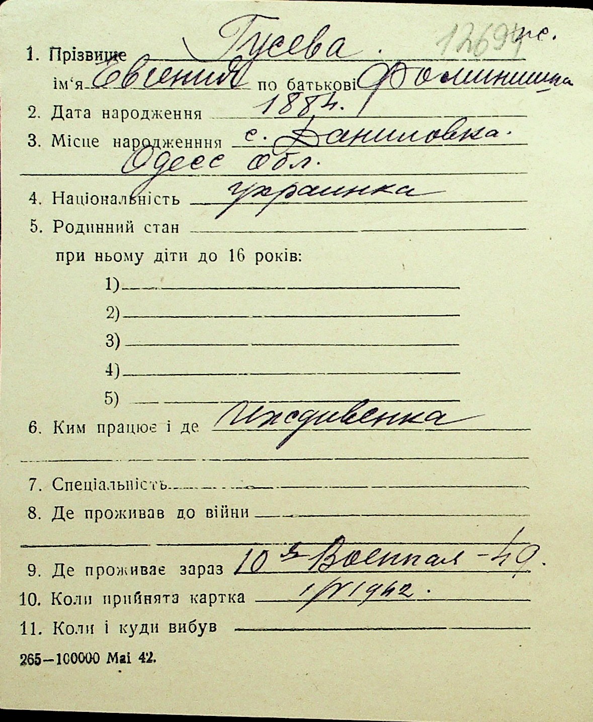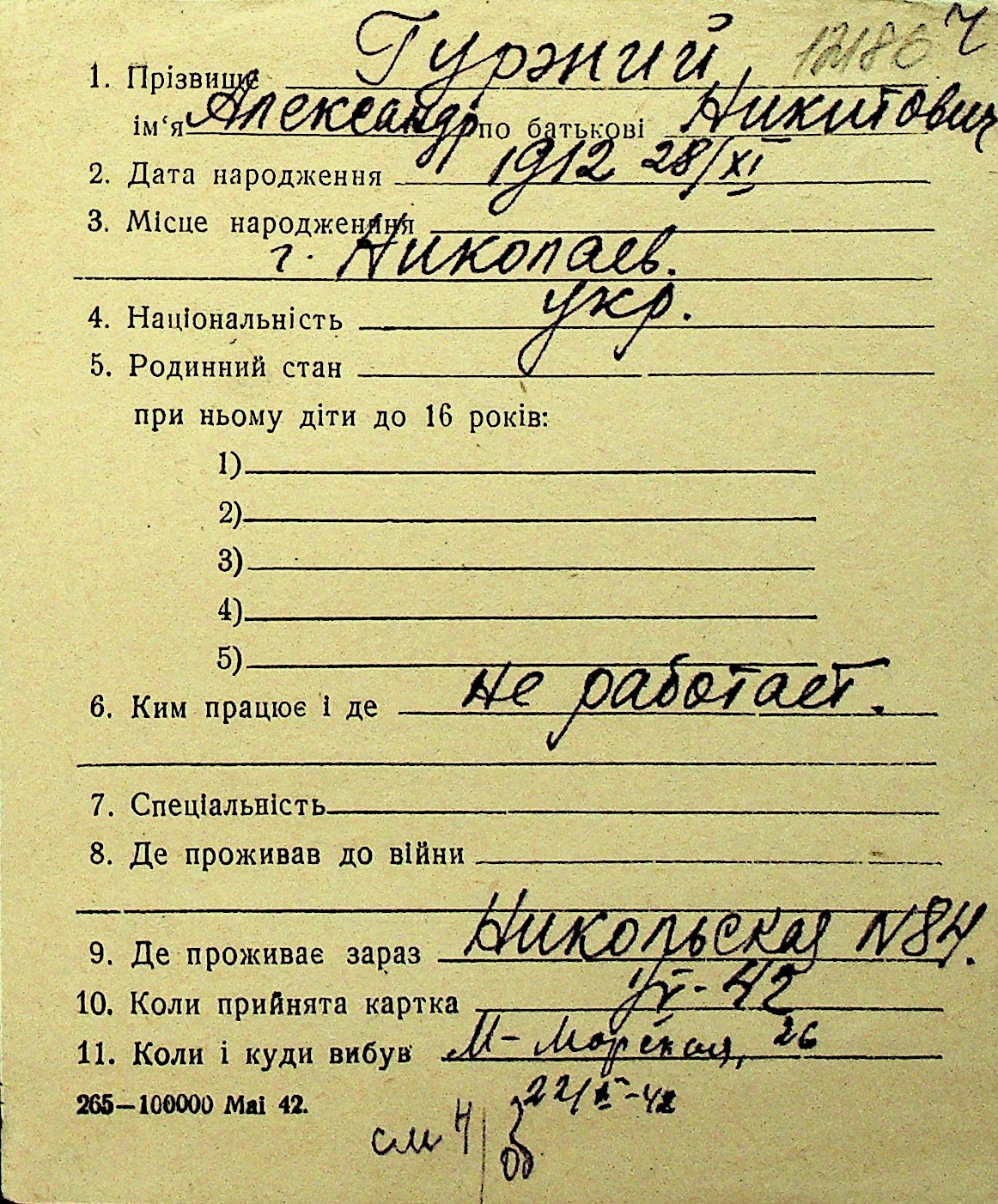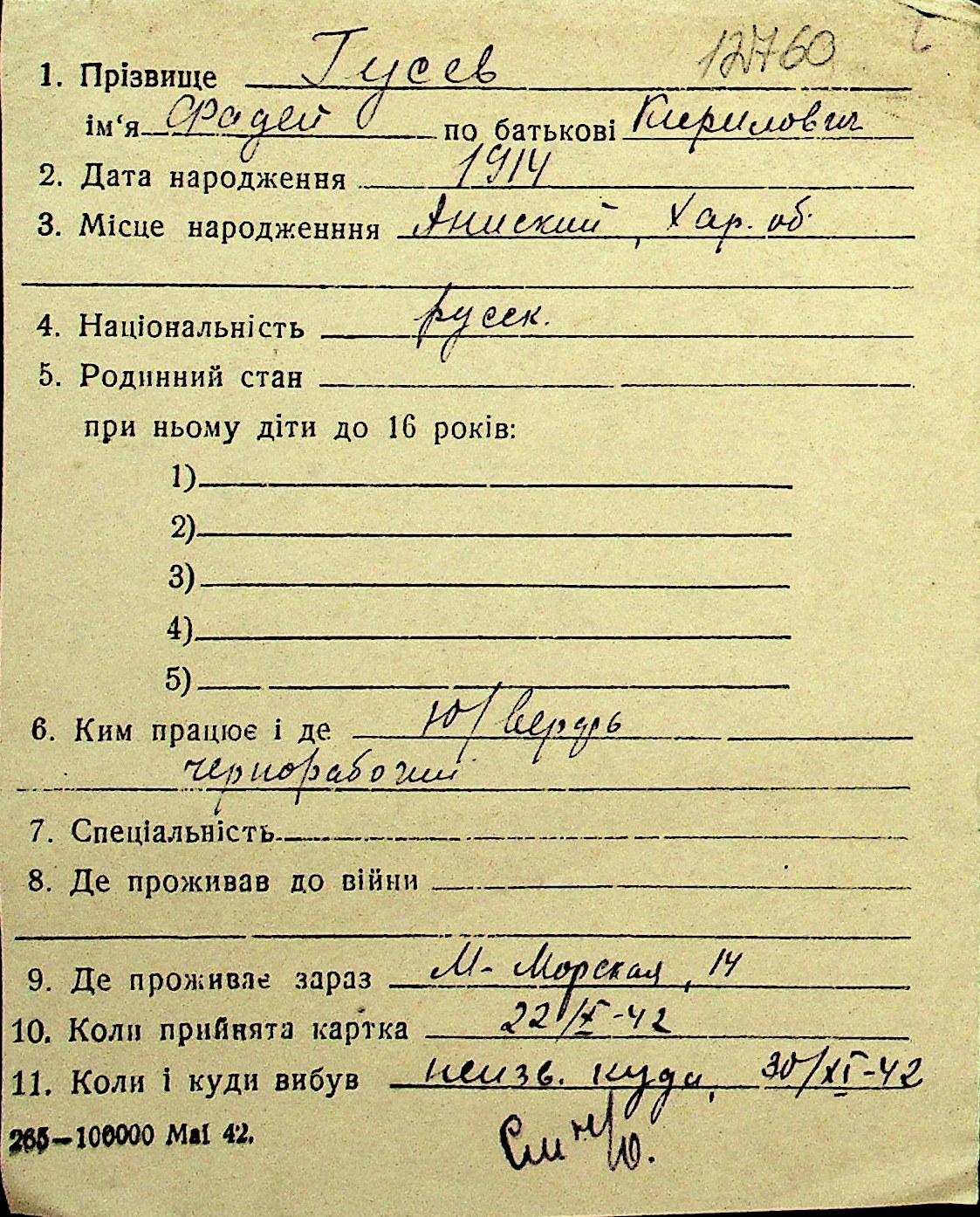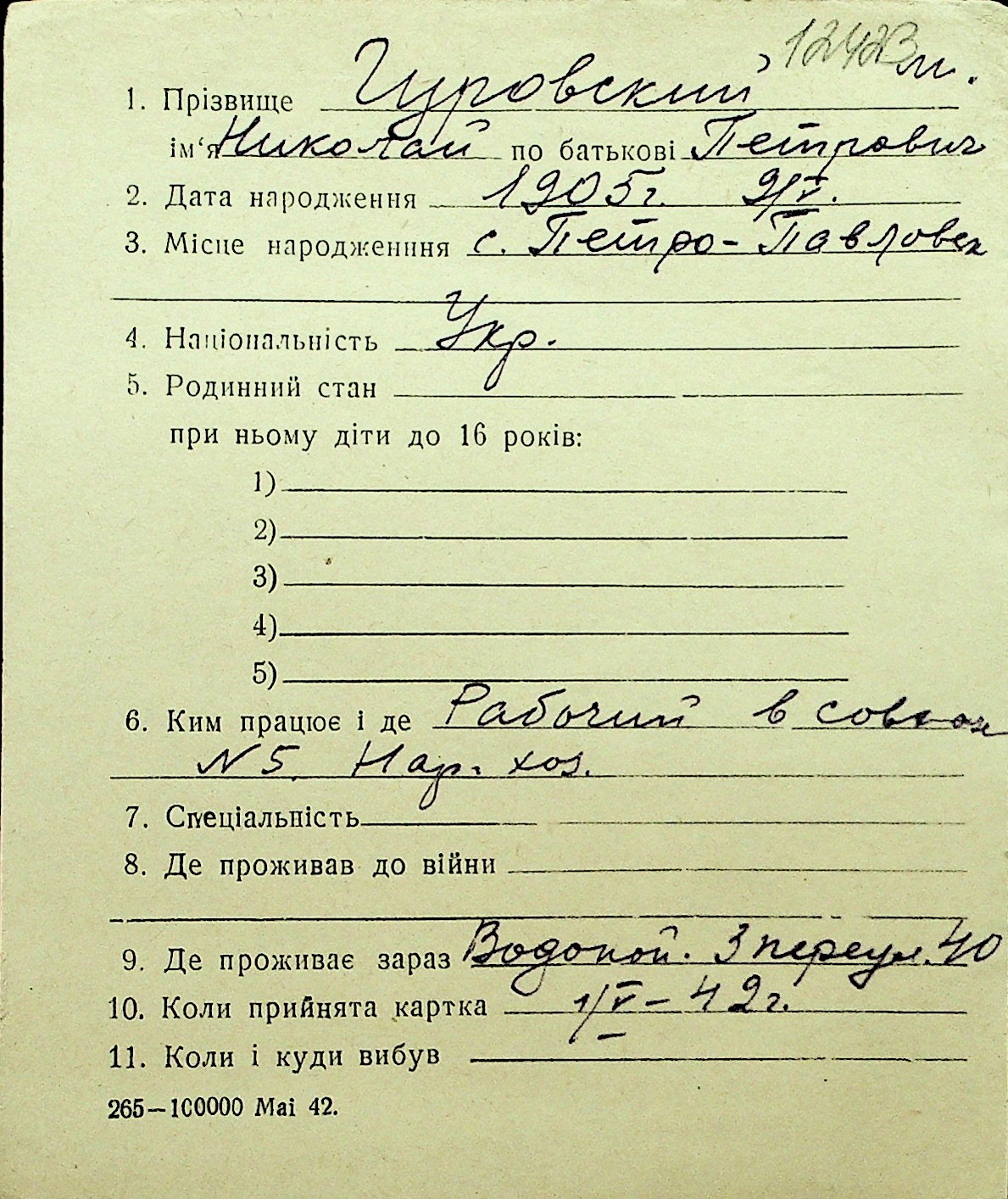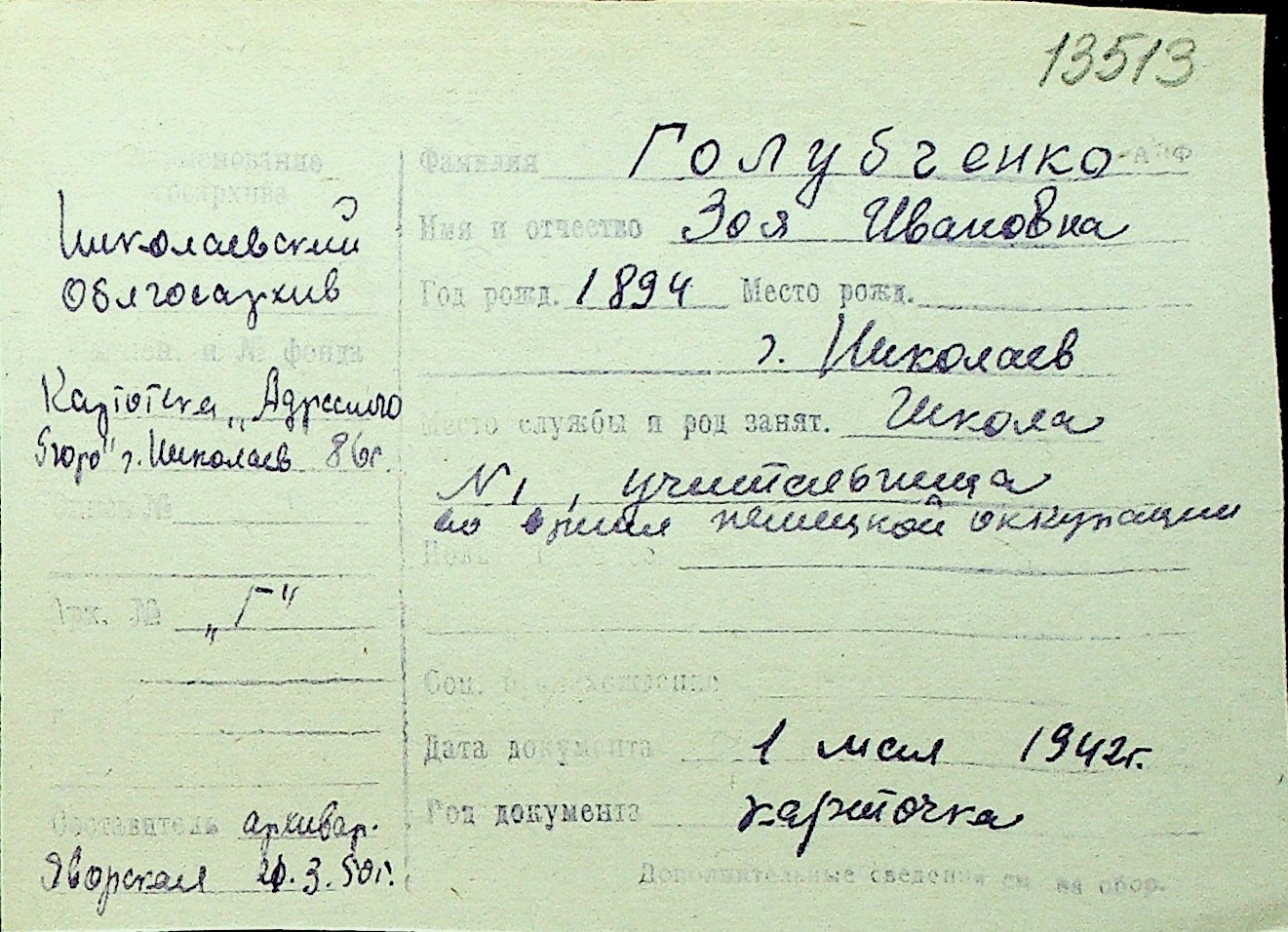 • • Перелік карток до фонду № Н-1016
