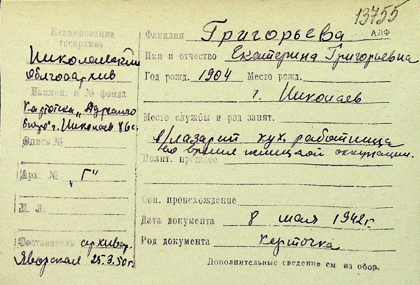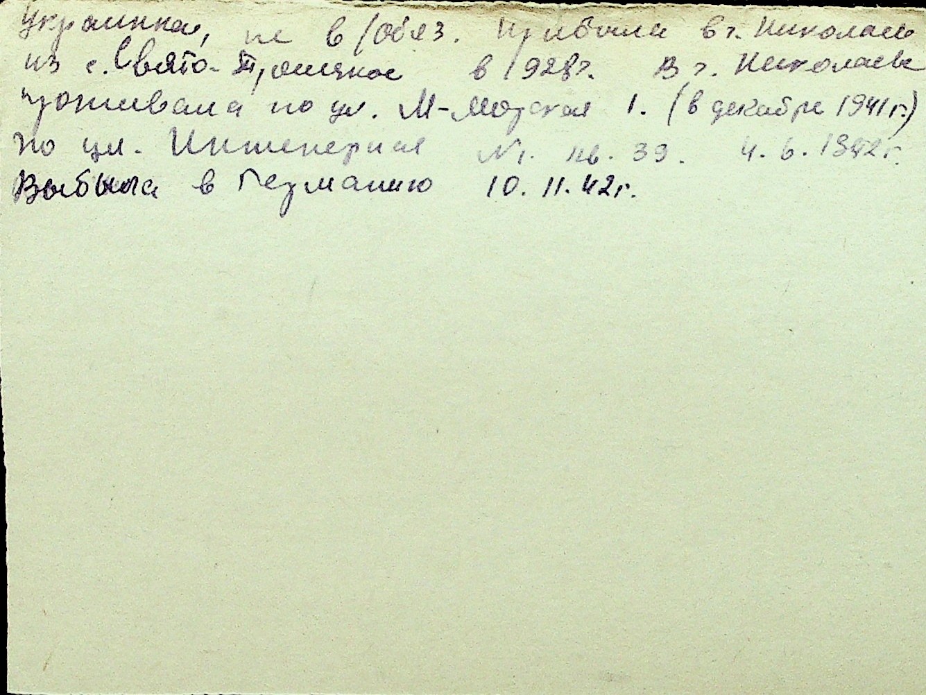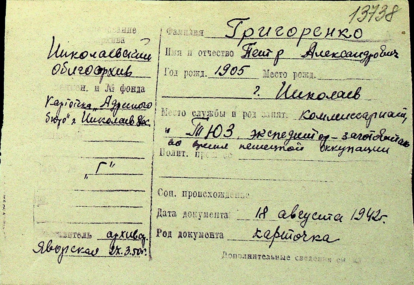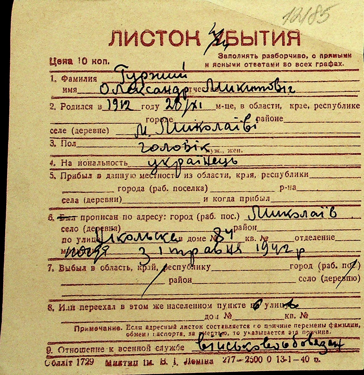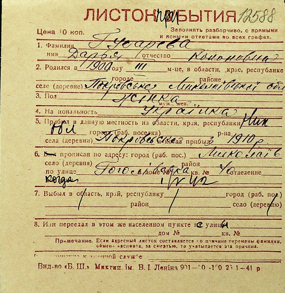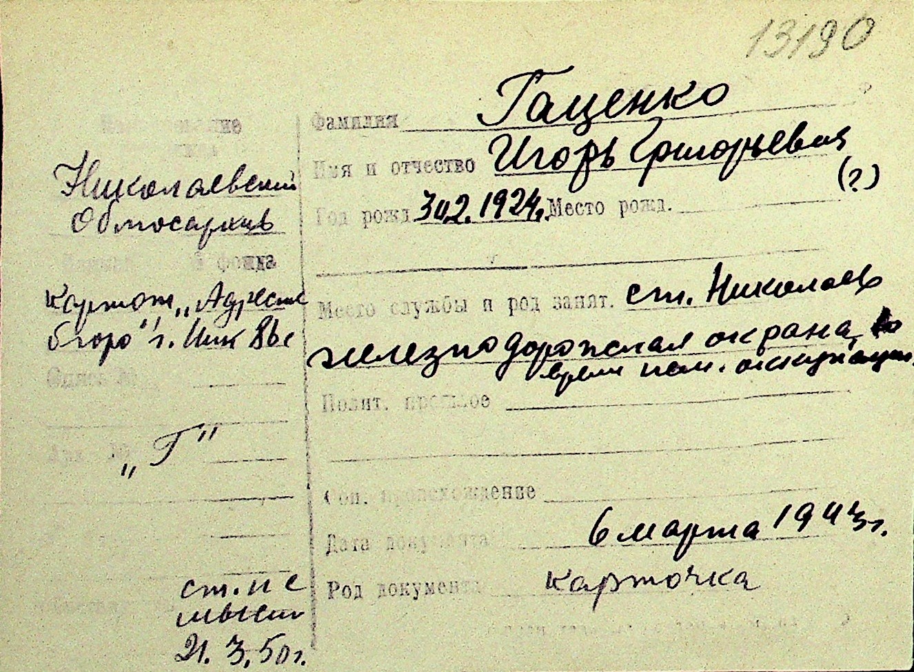 • • Перелік карток до фонду № Н-1016