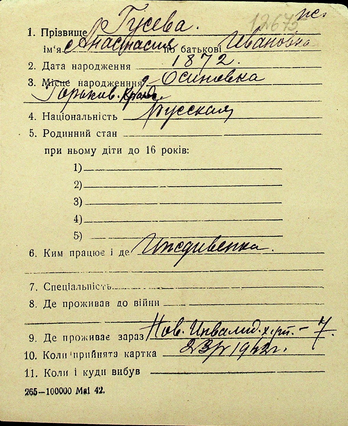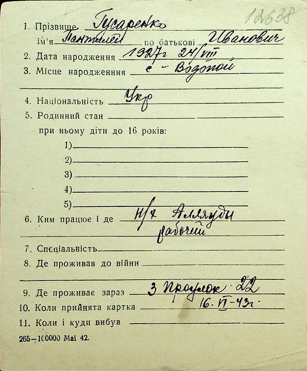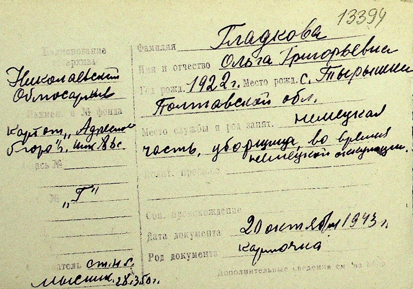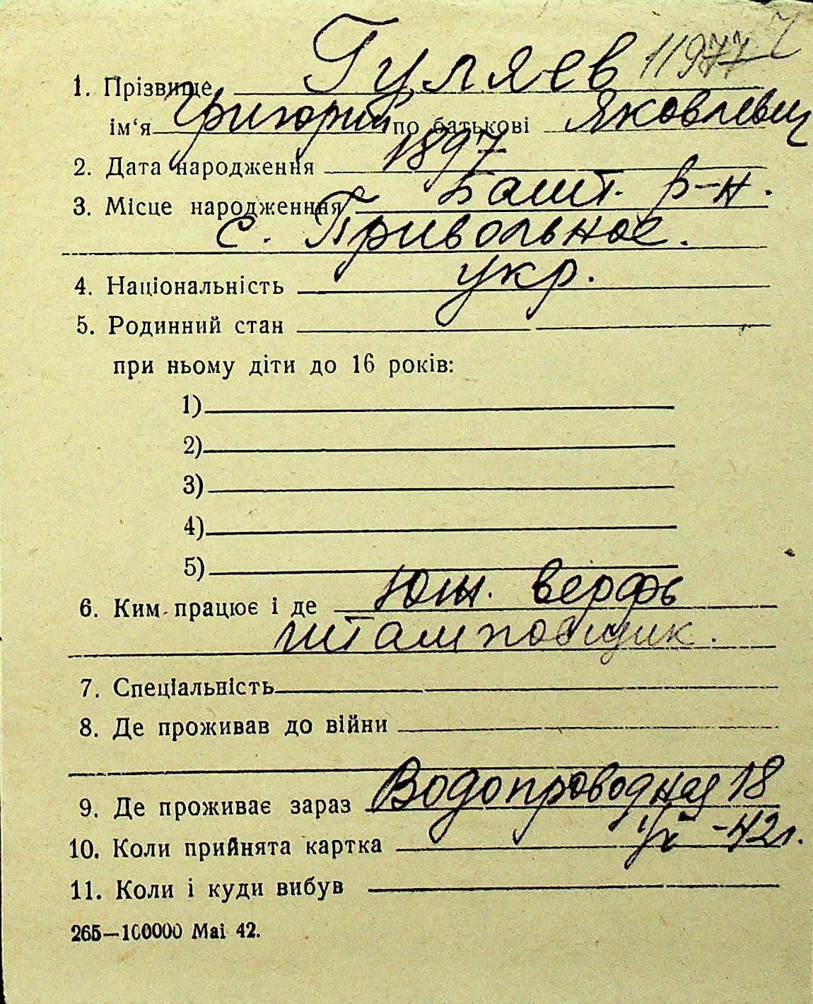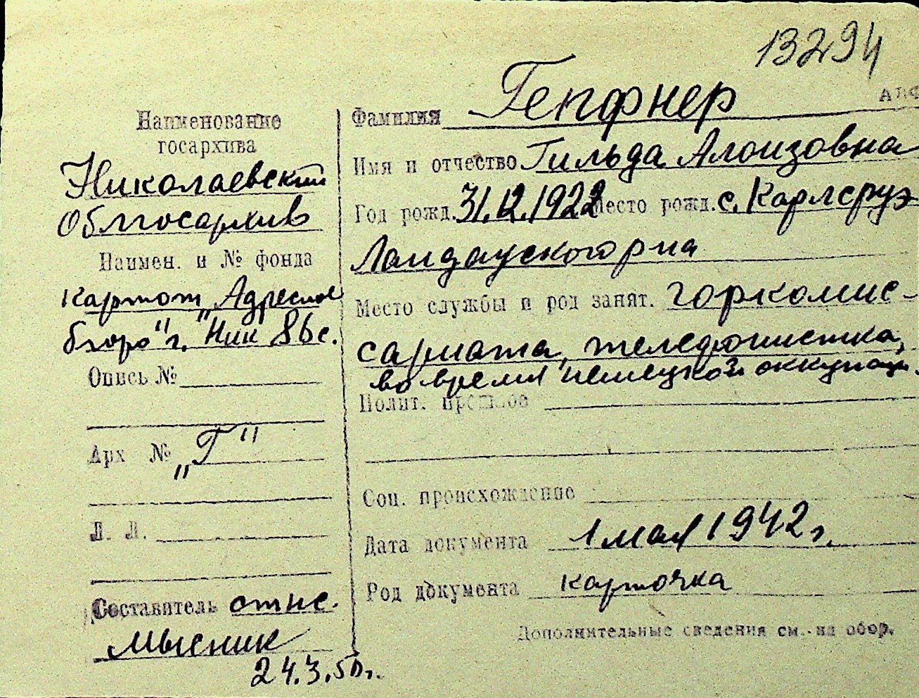 • • Перелік карток до фонду № Н-1016