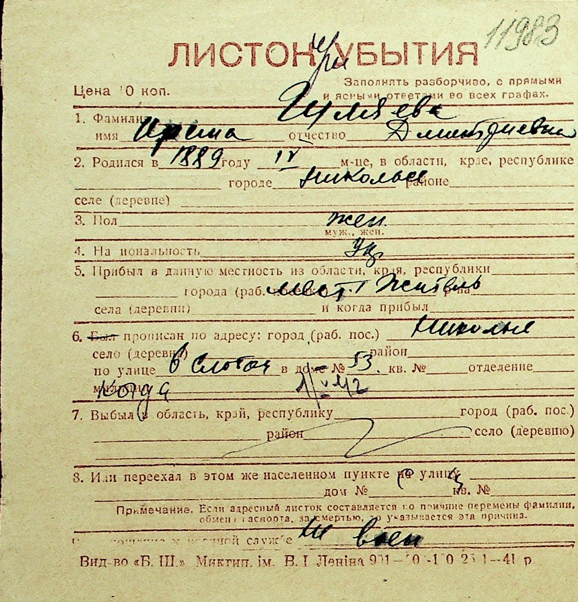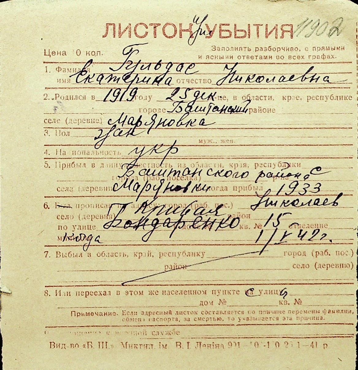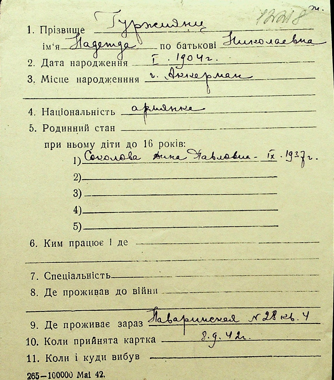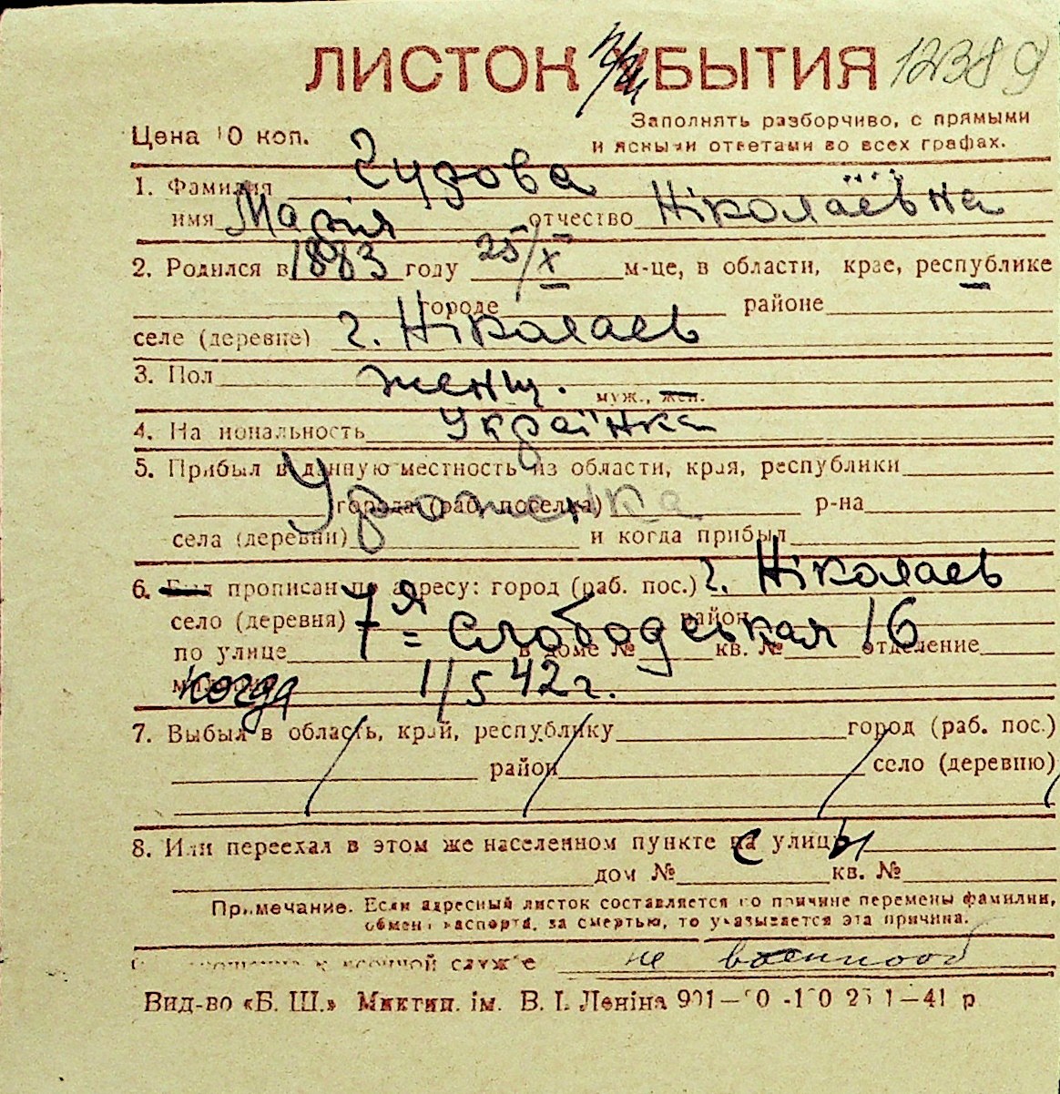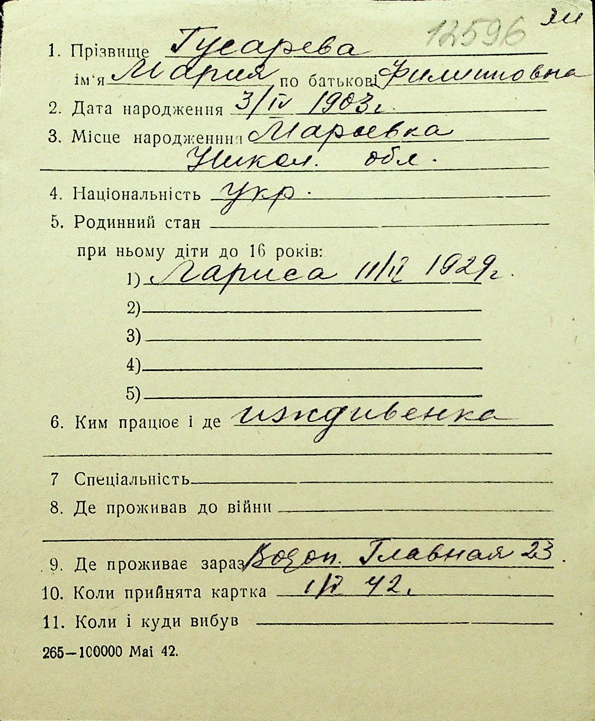 • • Перелік карток до фонду № Н-1016