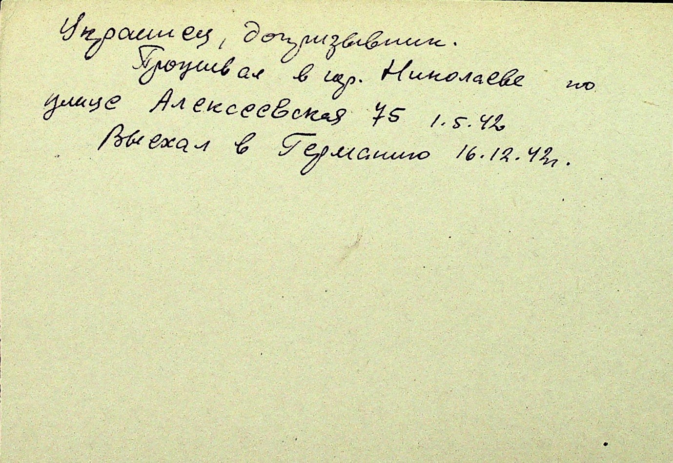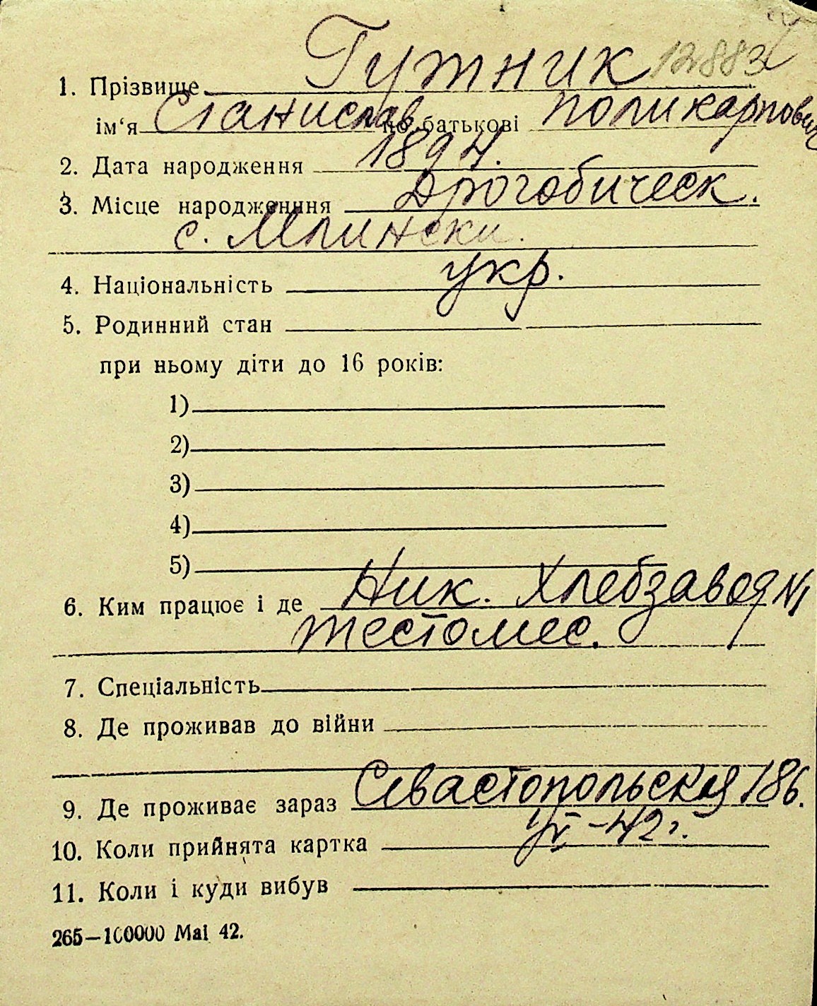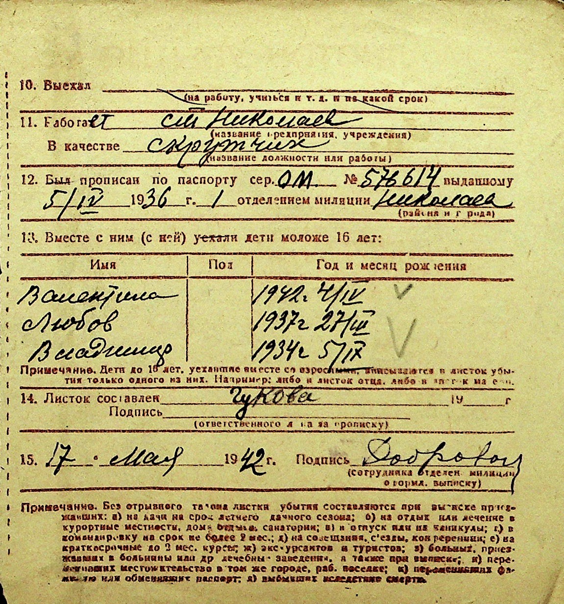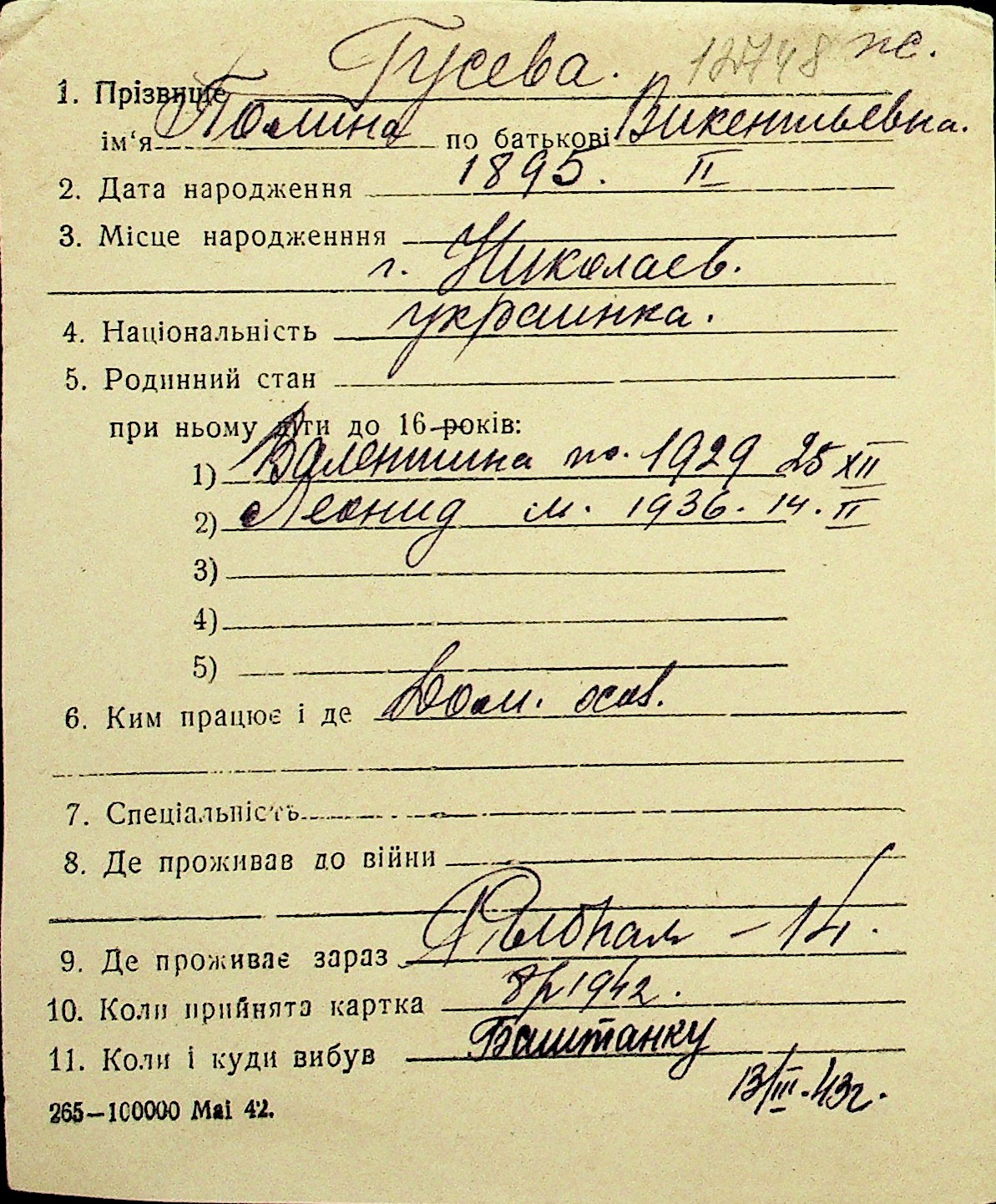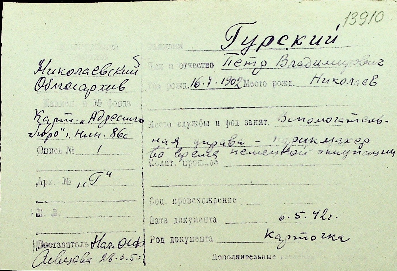 • • Перелік карток до фонду № Н-1016
