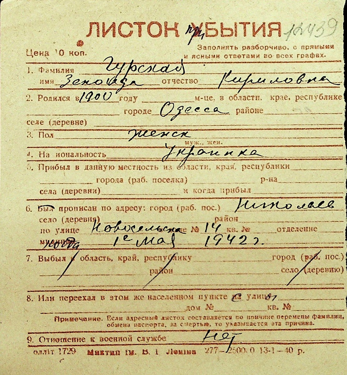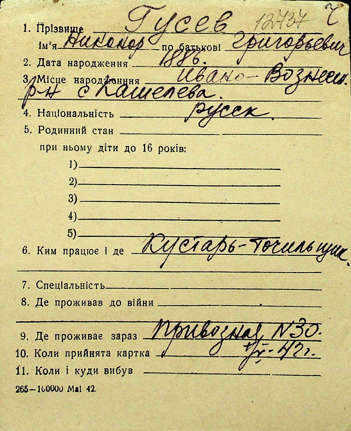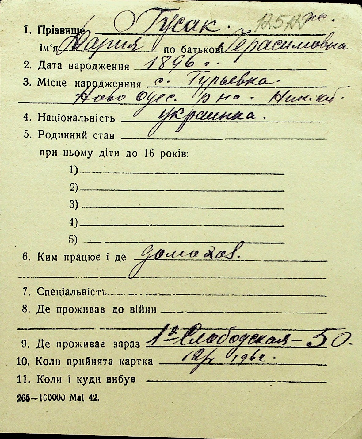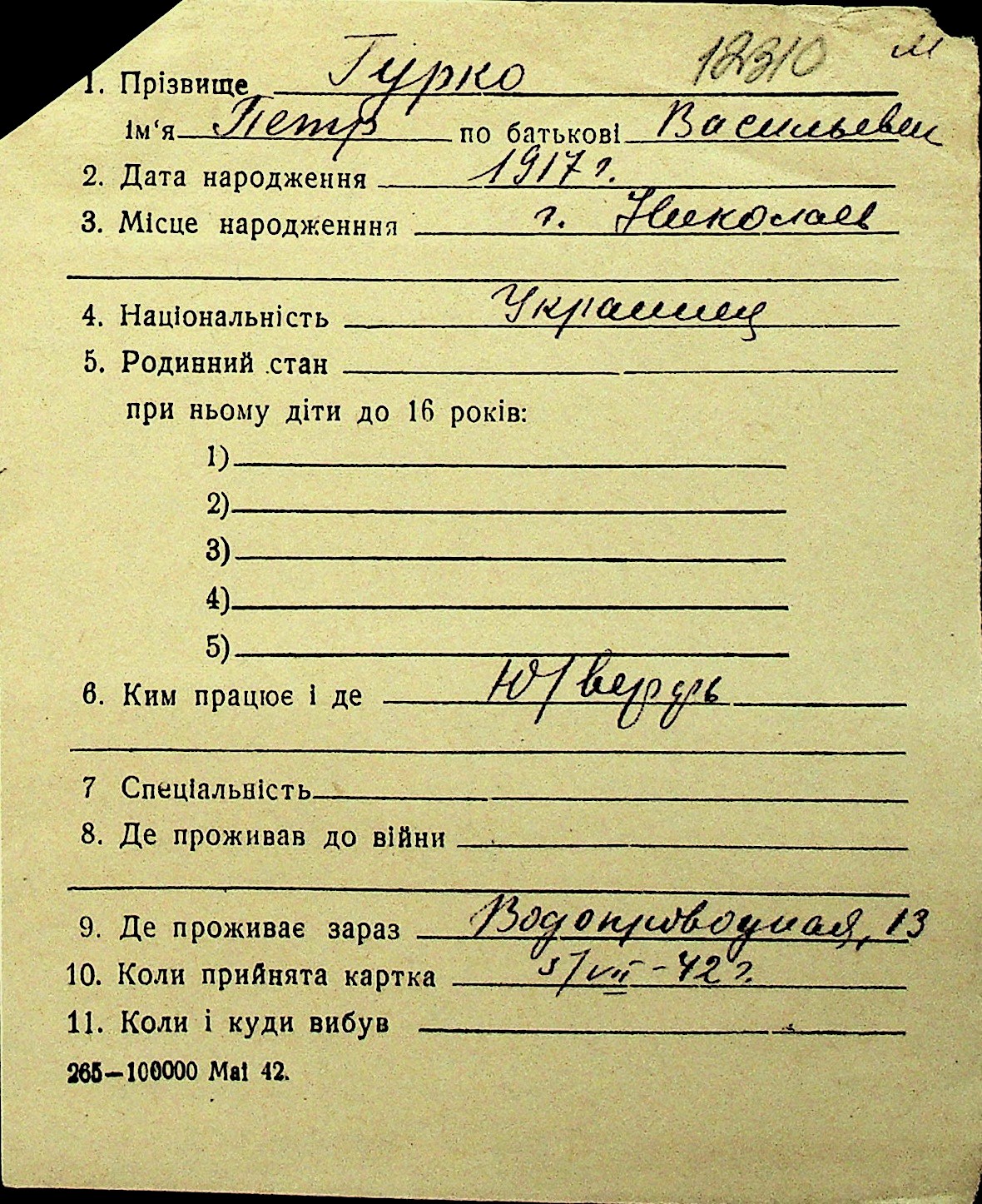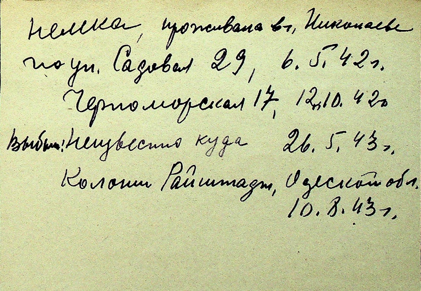 • • Перелік карток до фонду № Н-1016