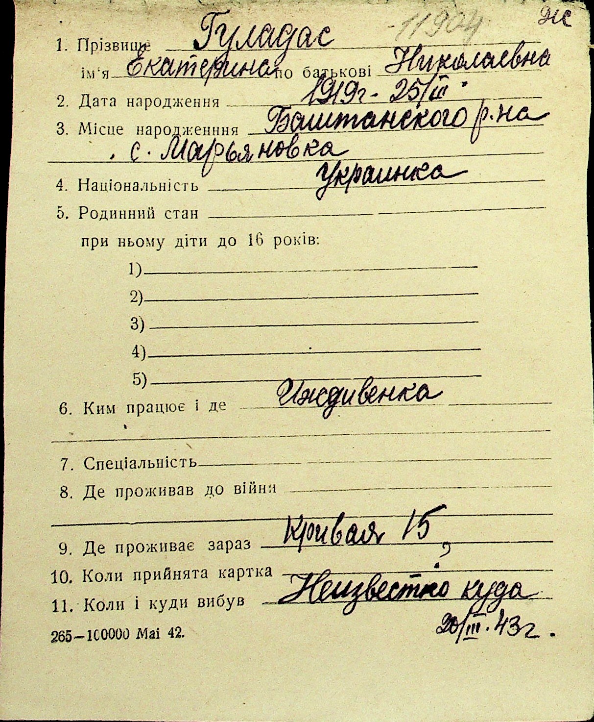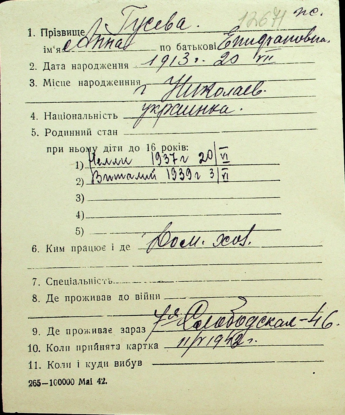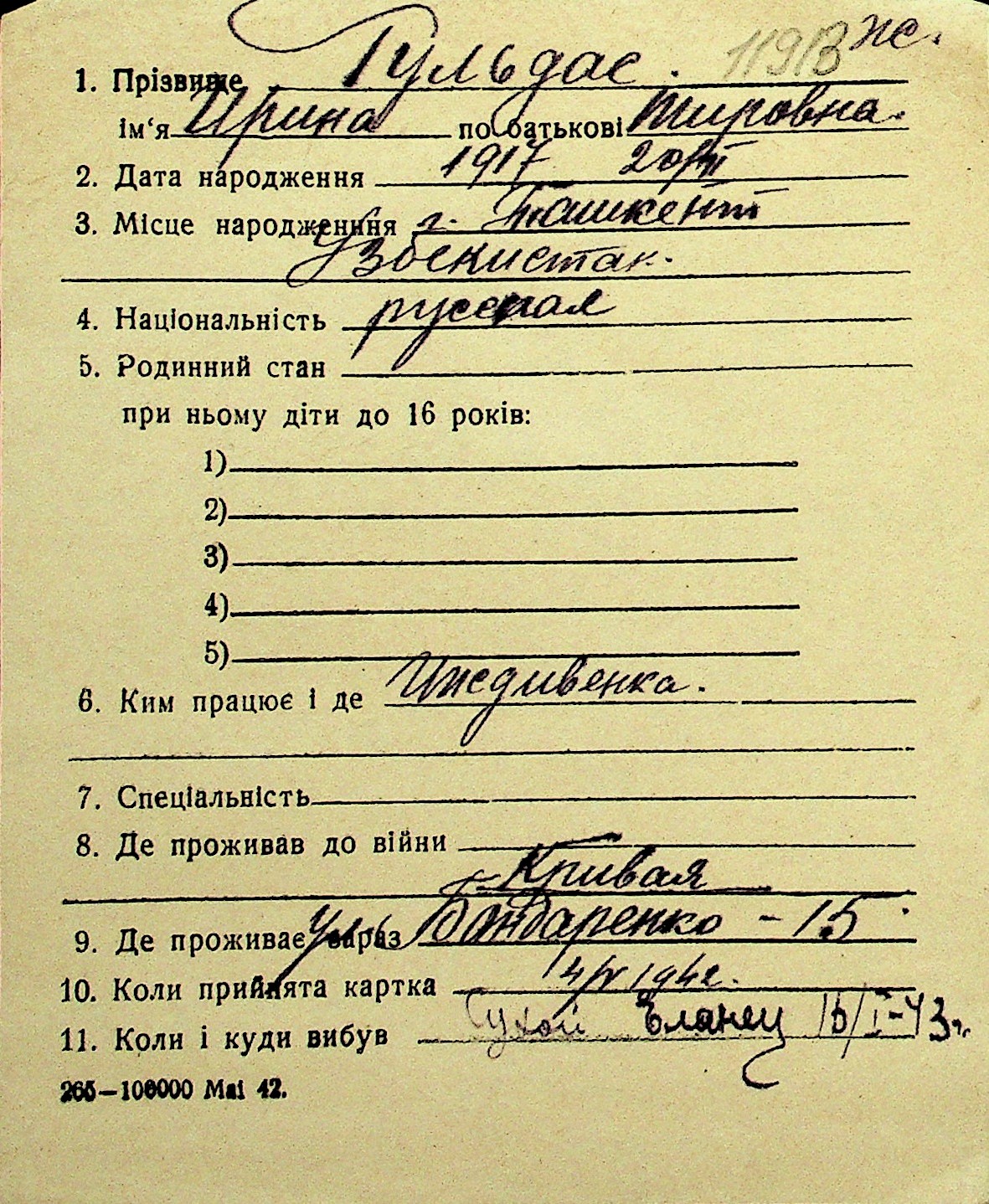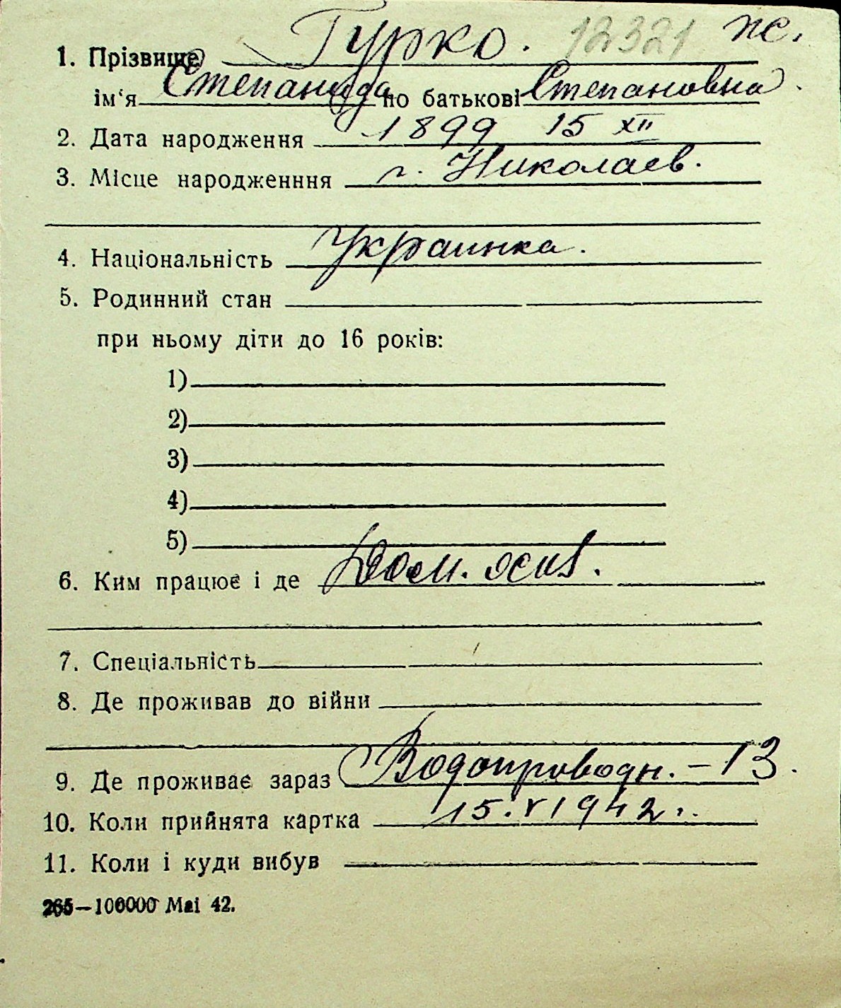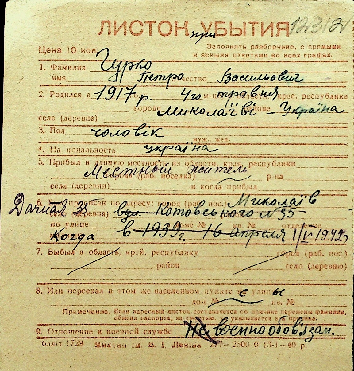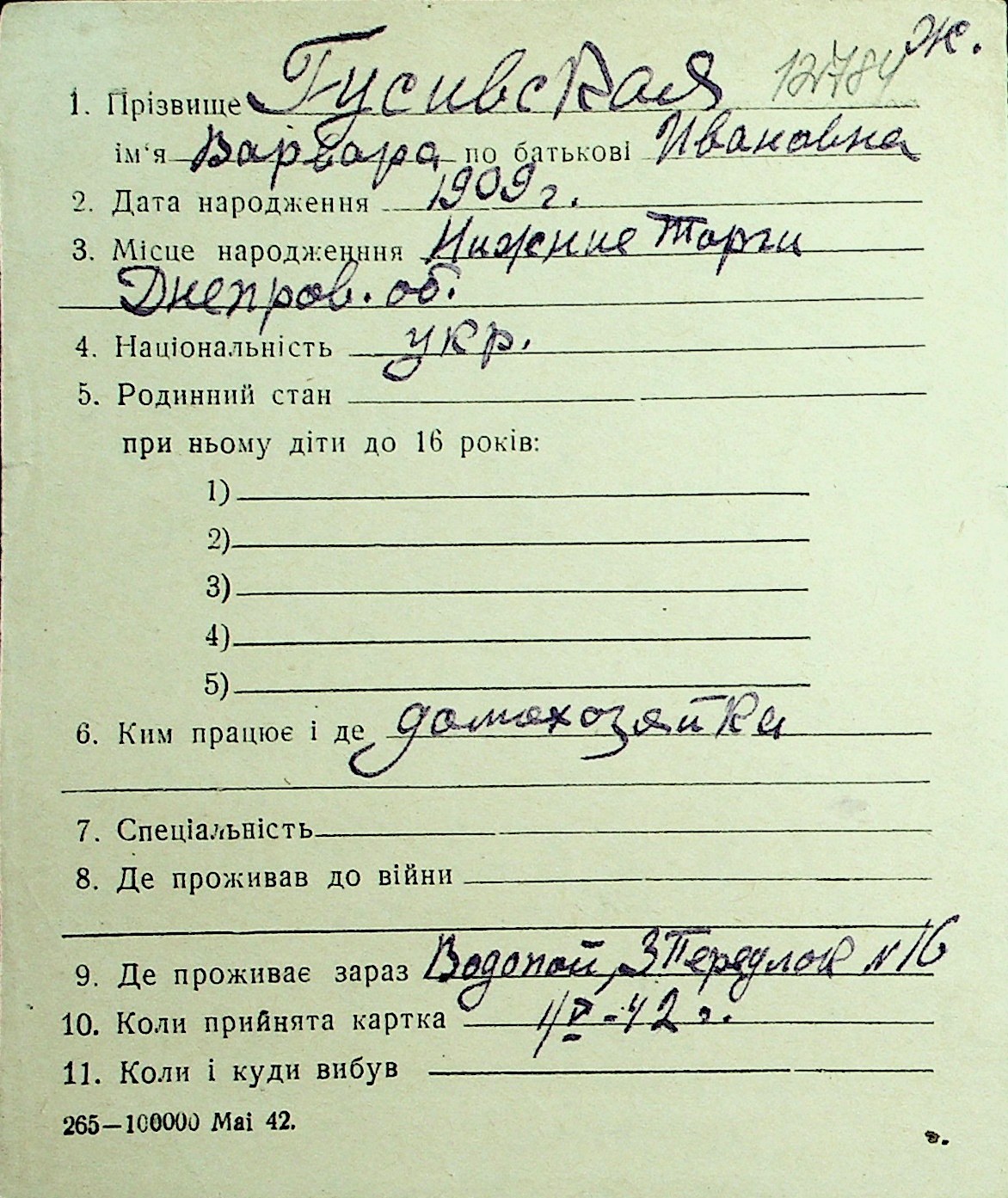 • • Перелік карток до фонду № Н-1016
