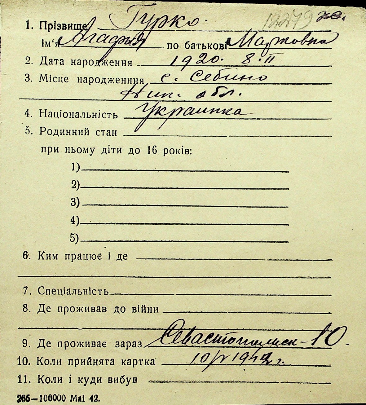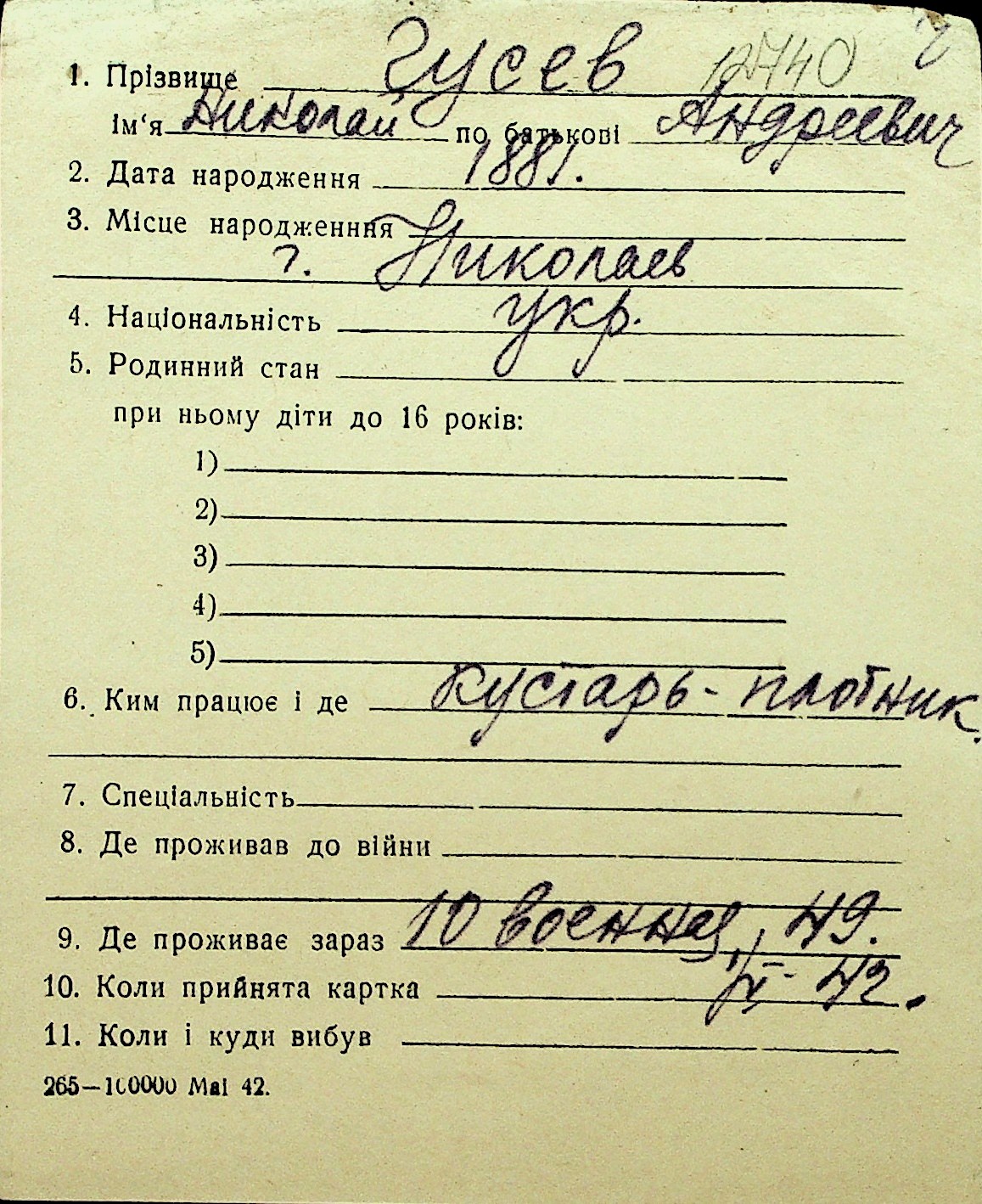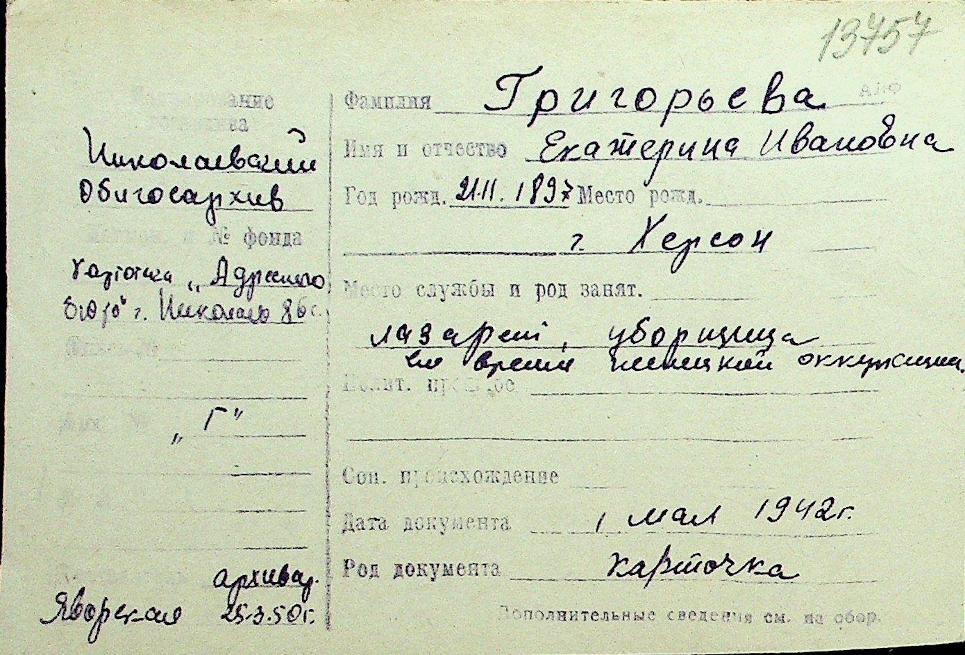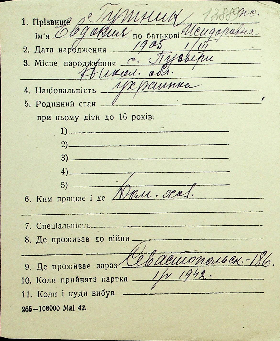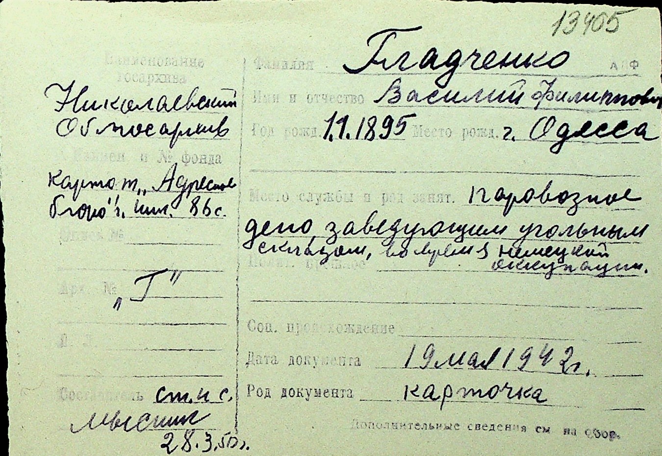 • • Перелік карток до фонду № Н-1016