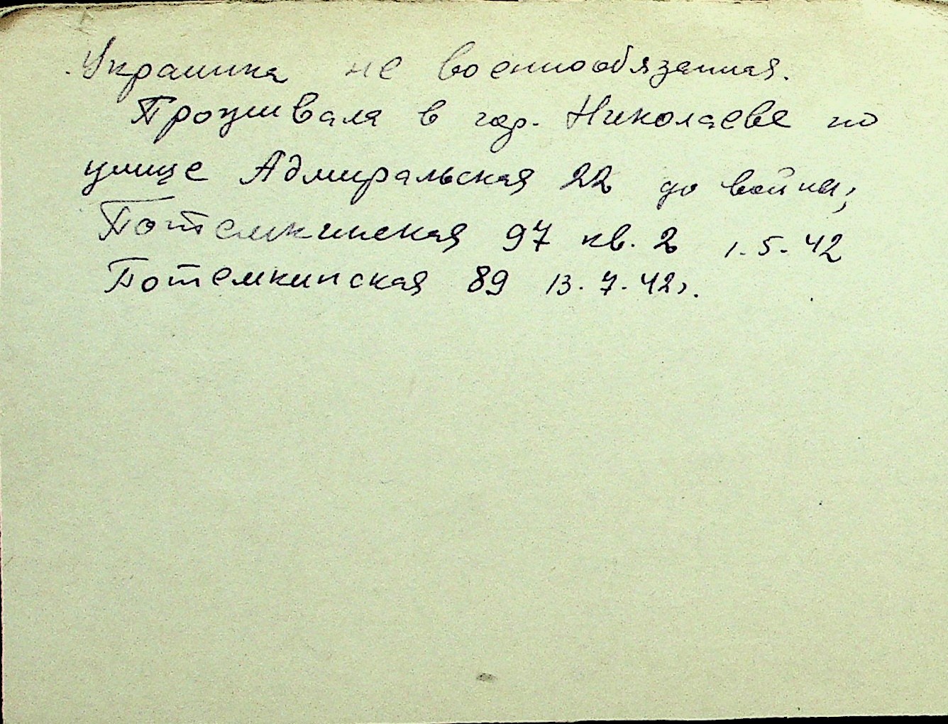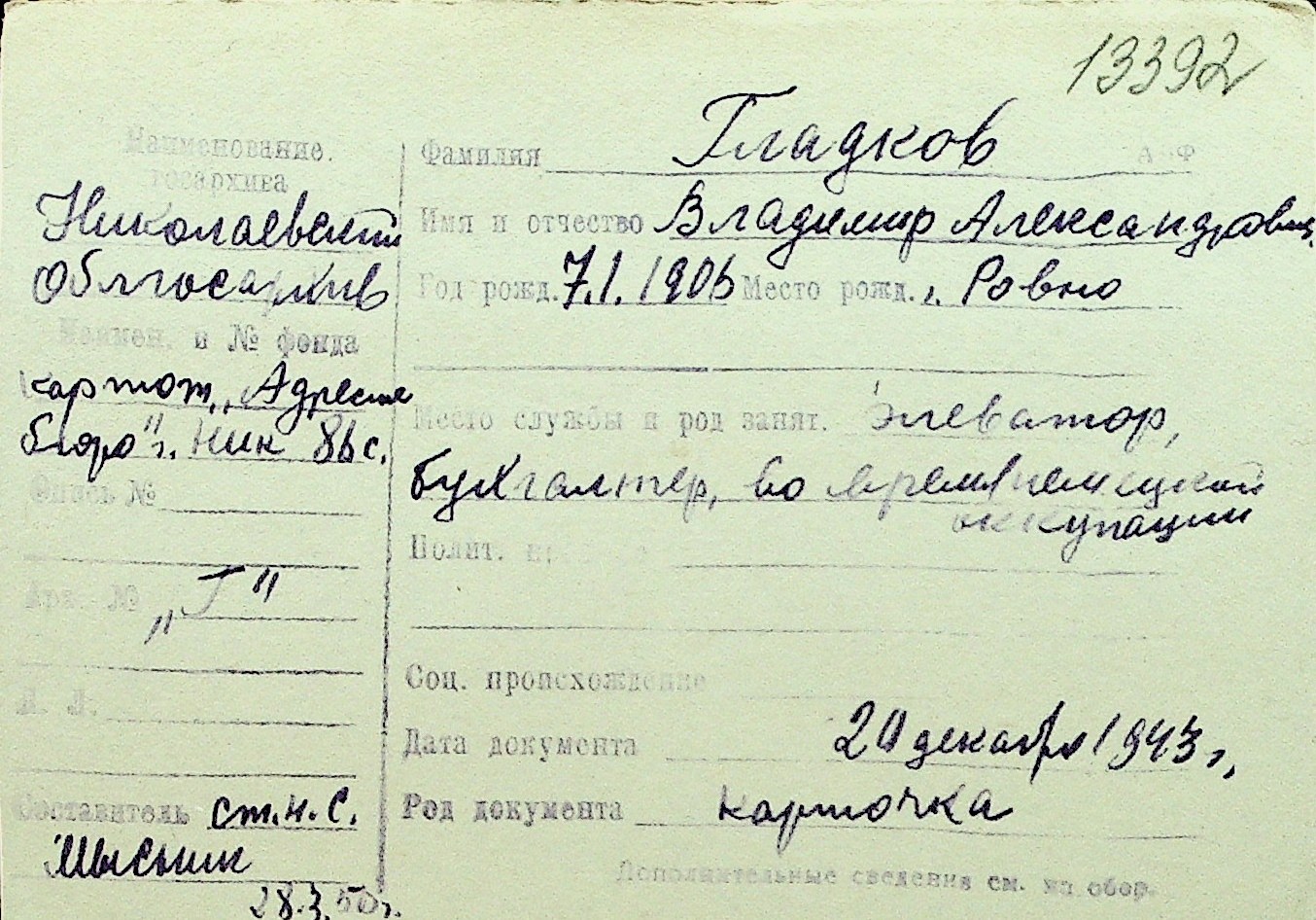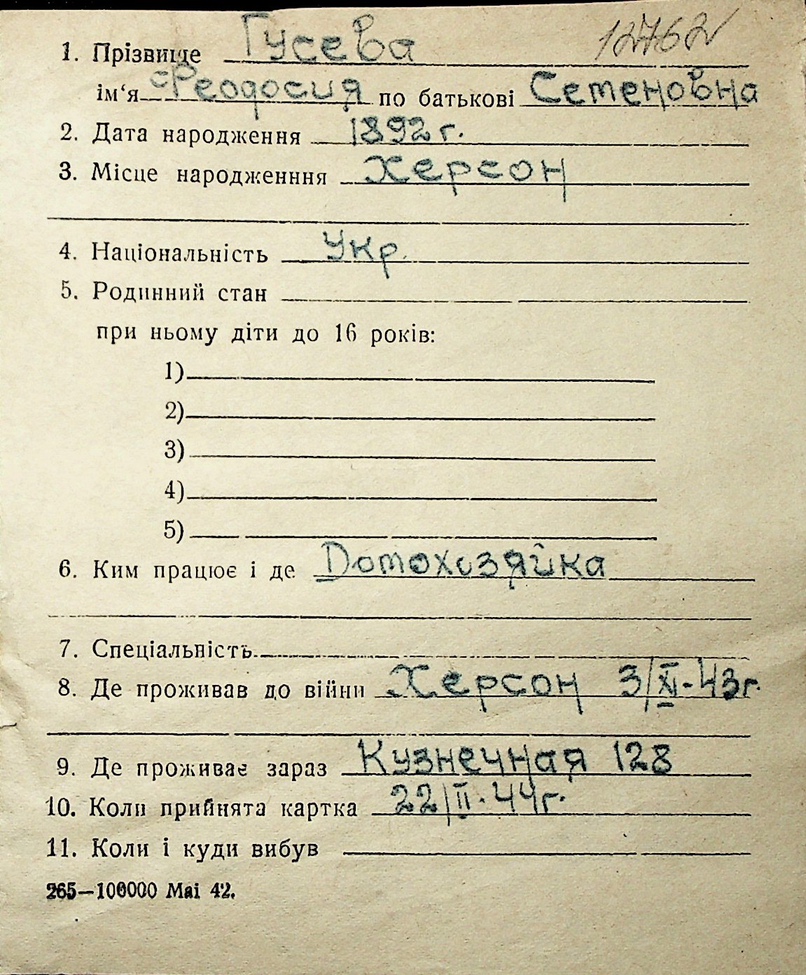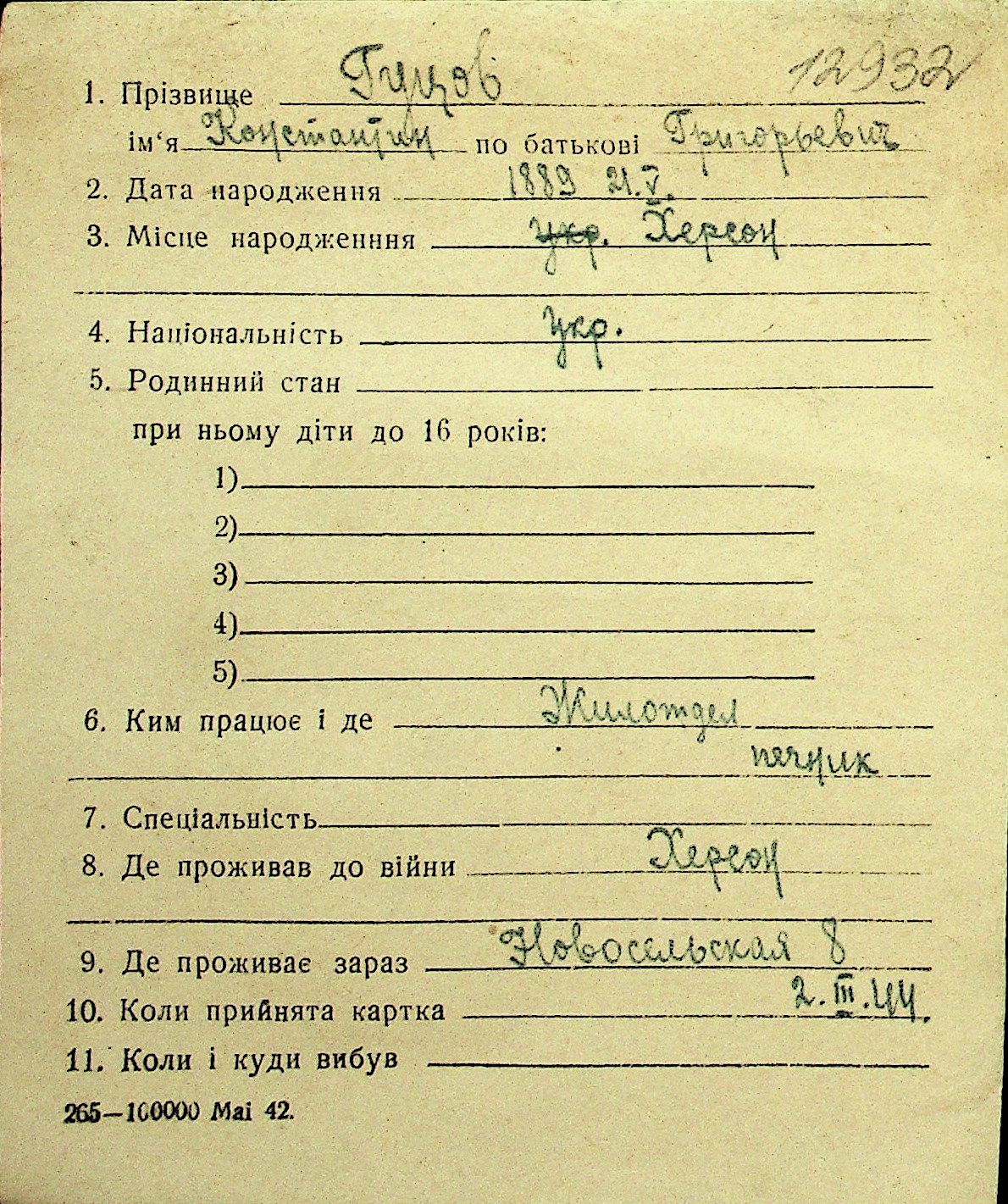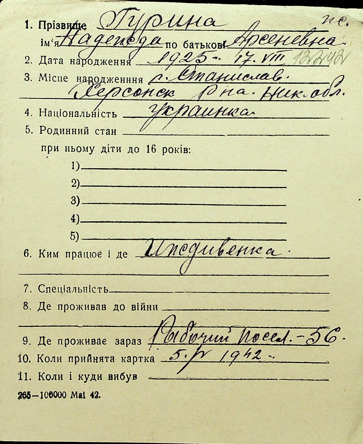 • • Перелік карток до фонду № Н-1016