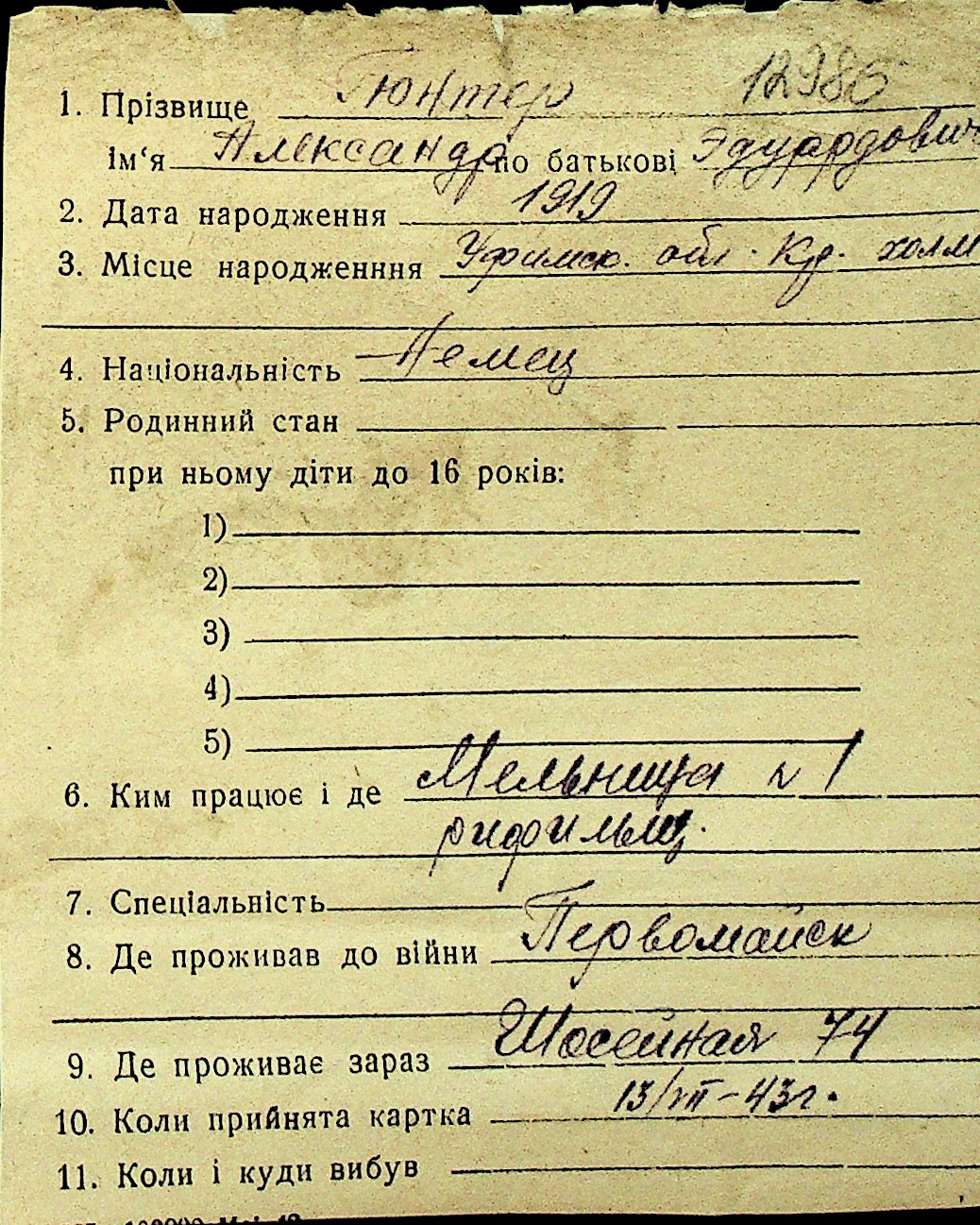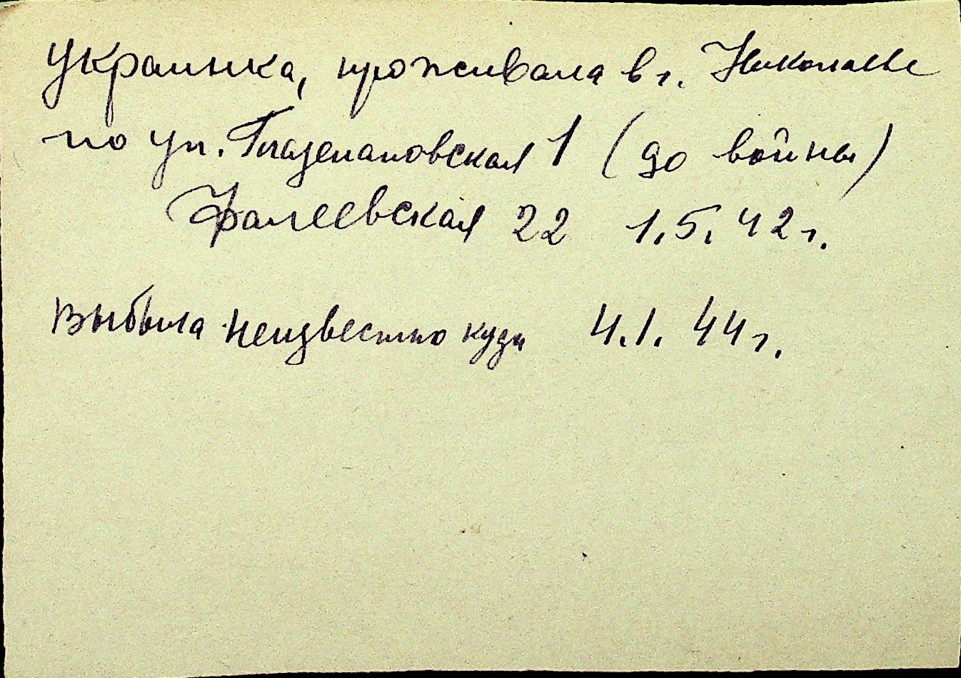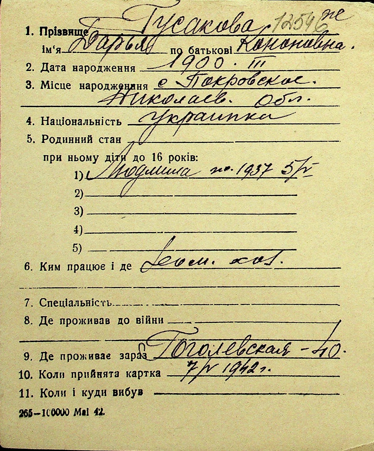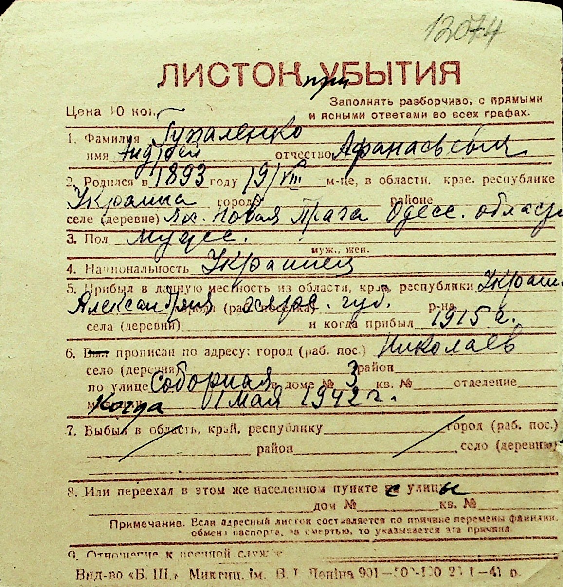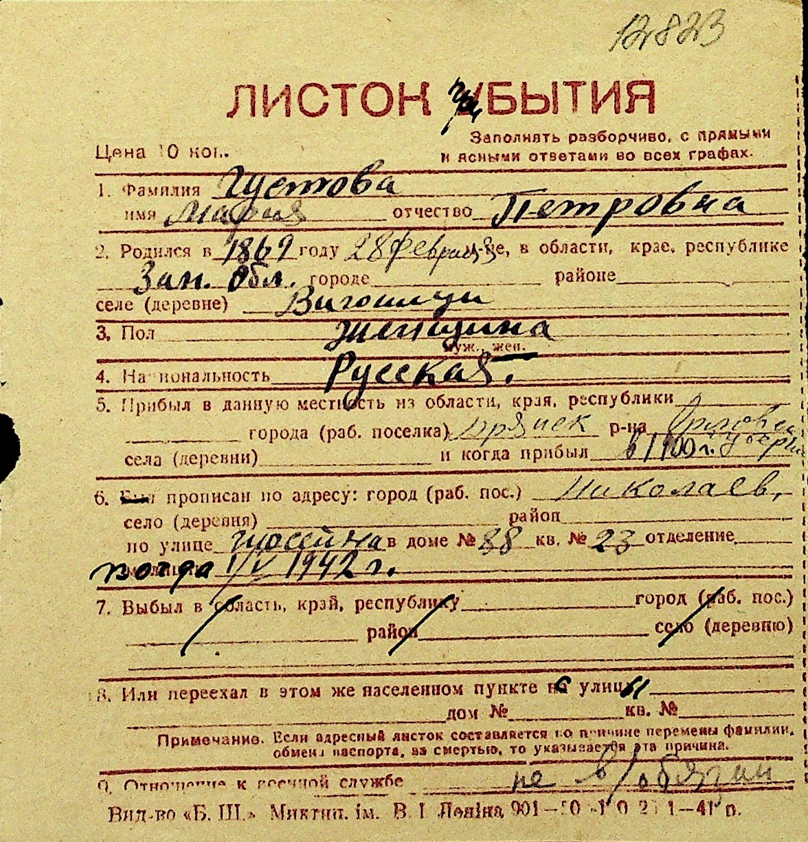 • • Перелік карток до фонду № Н-1016