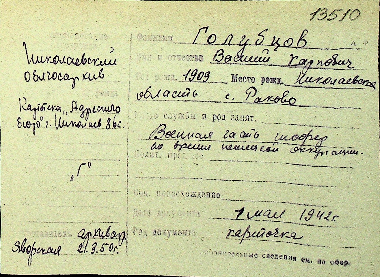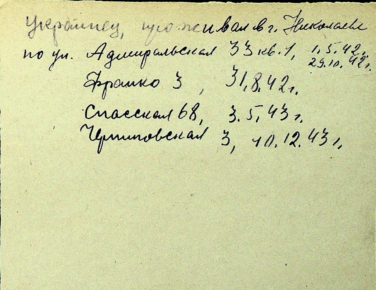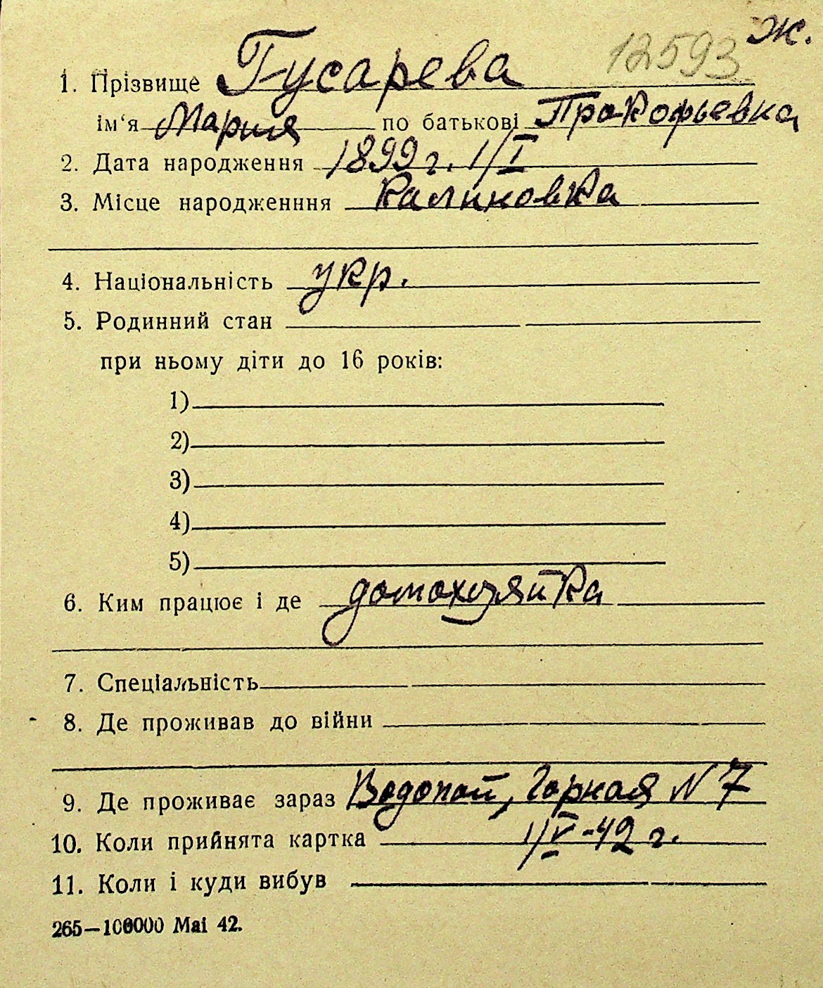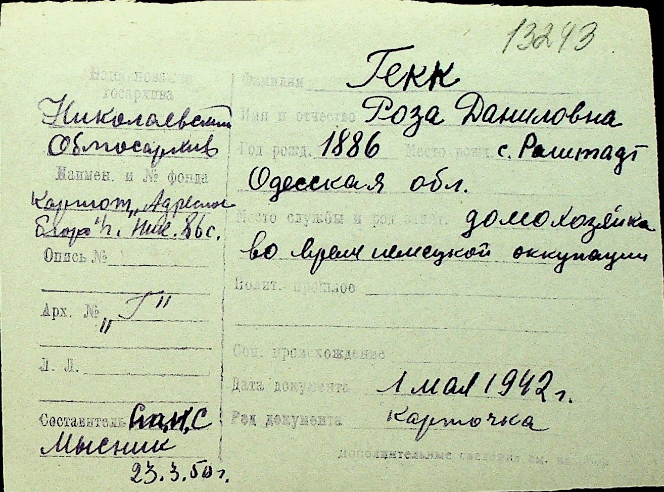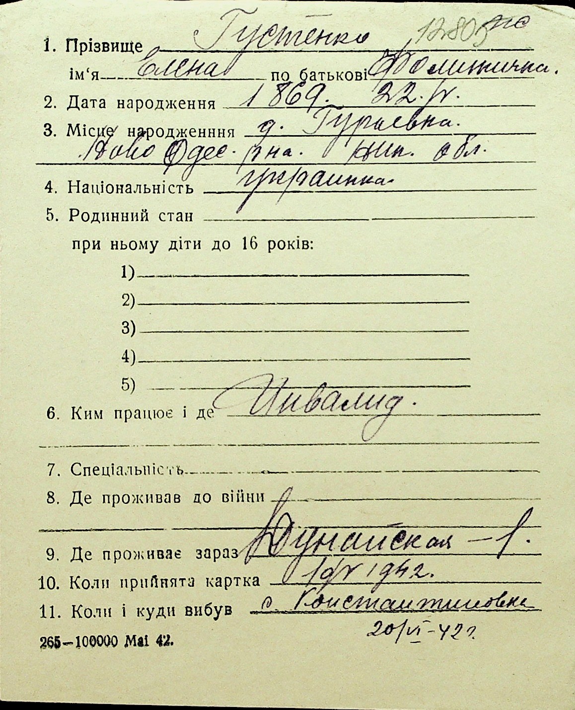 • • Перелік карток до фонду № Н-1016