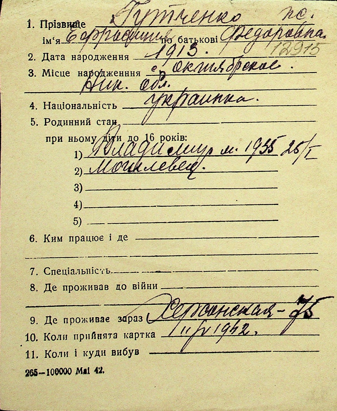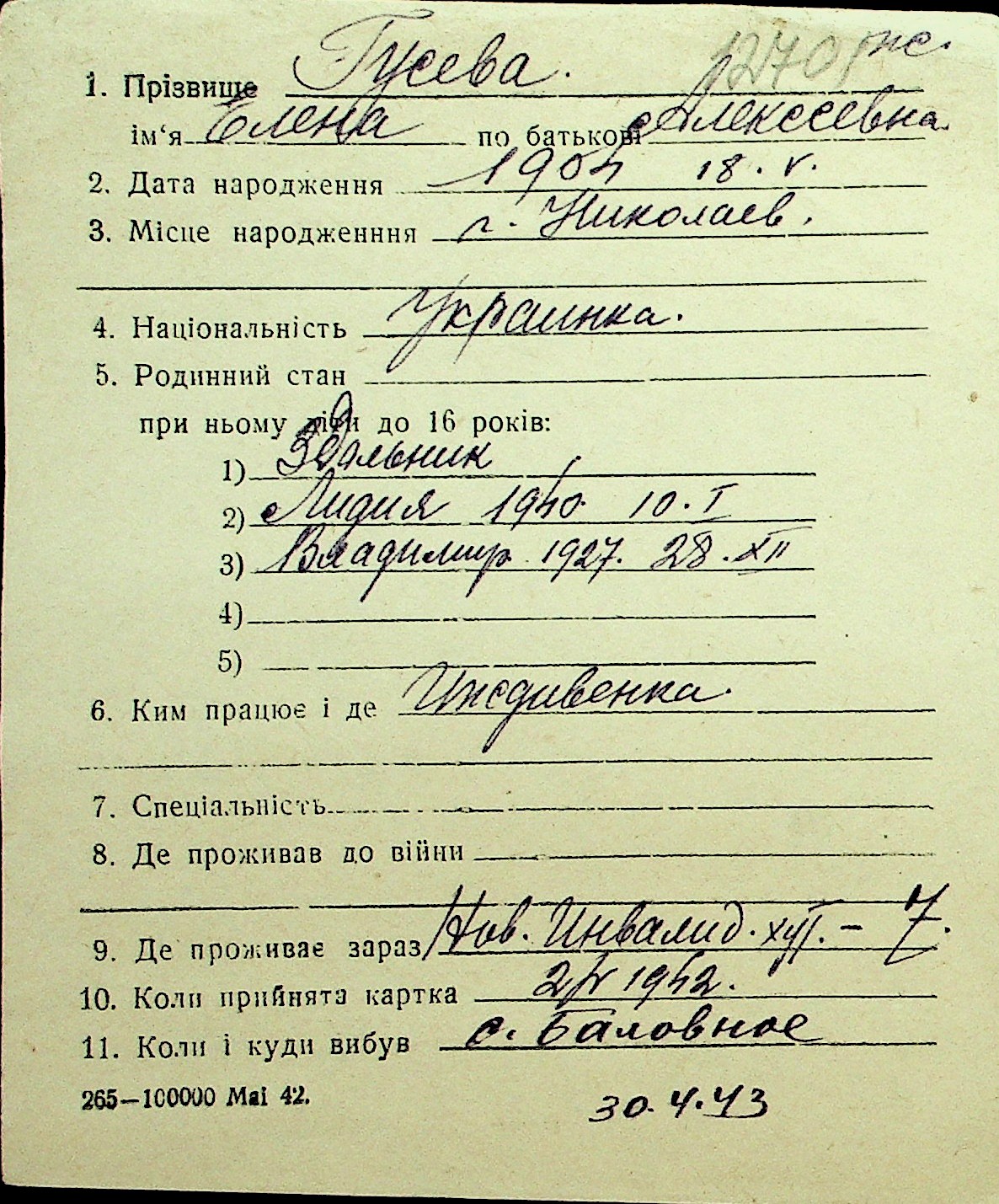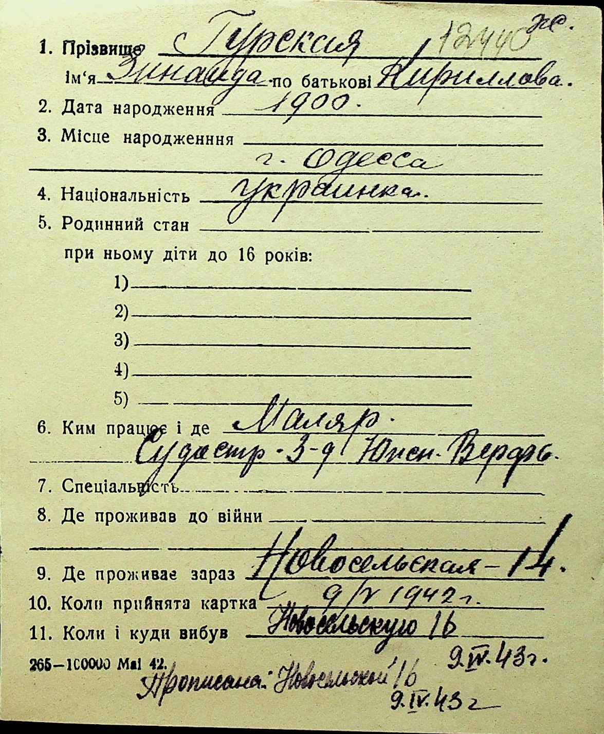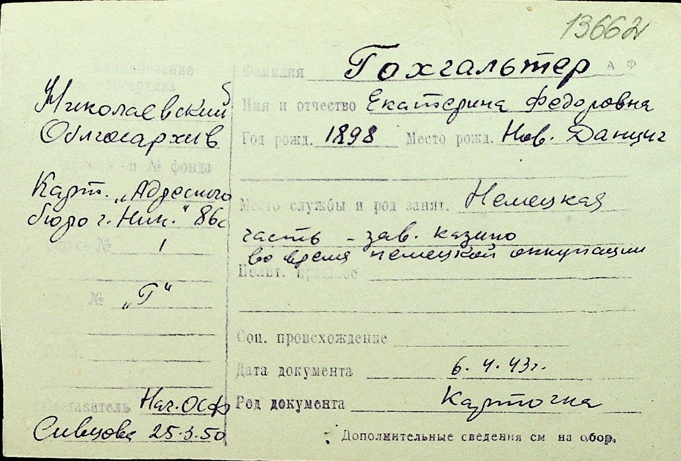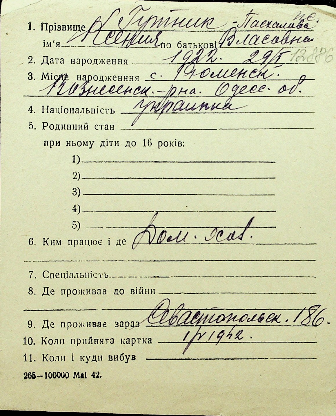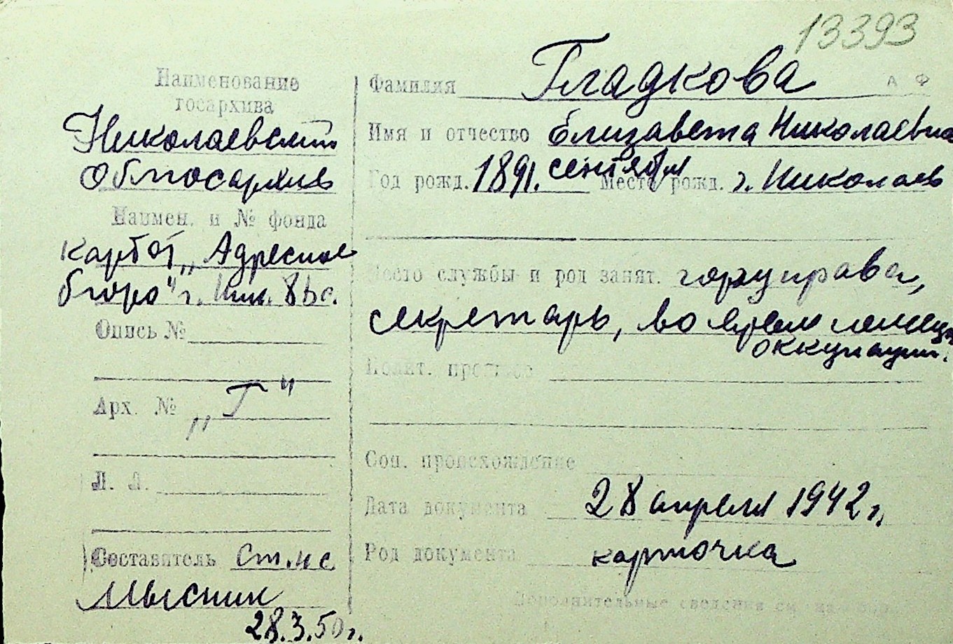 • • Перелік карток до фонду № Н-1016