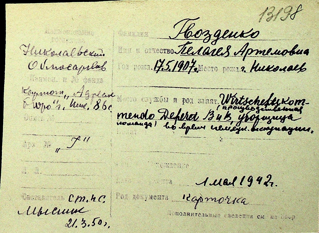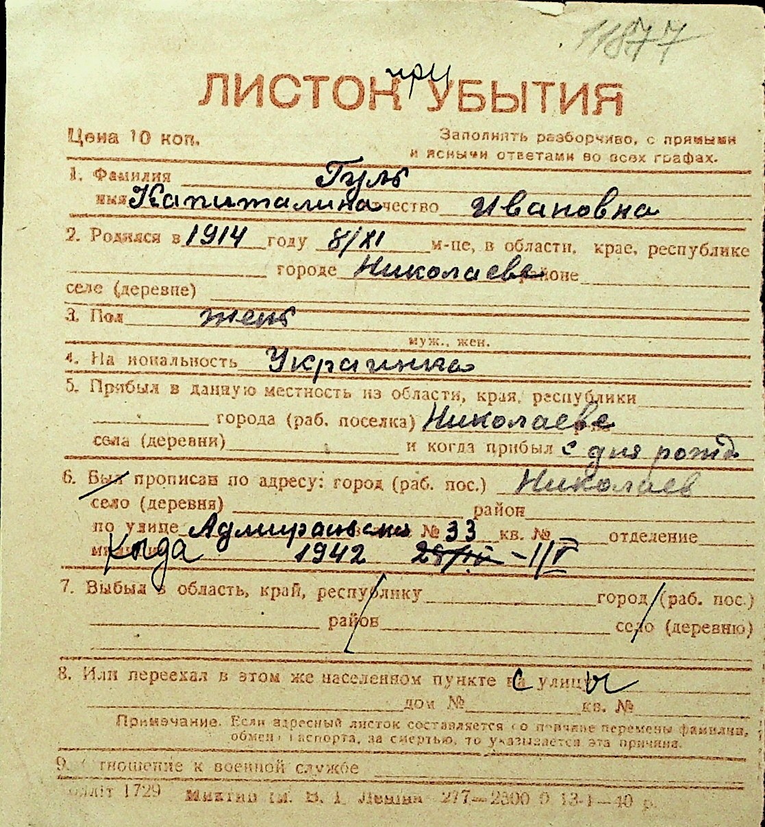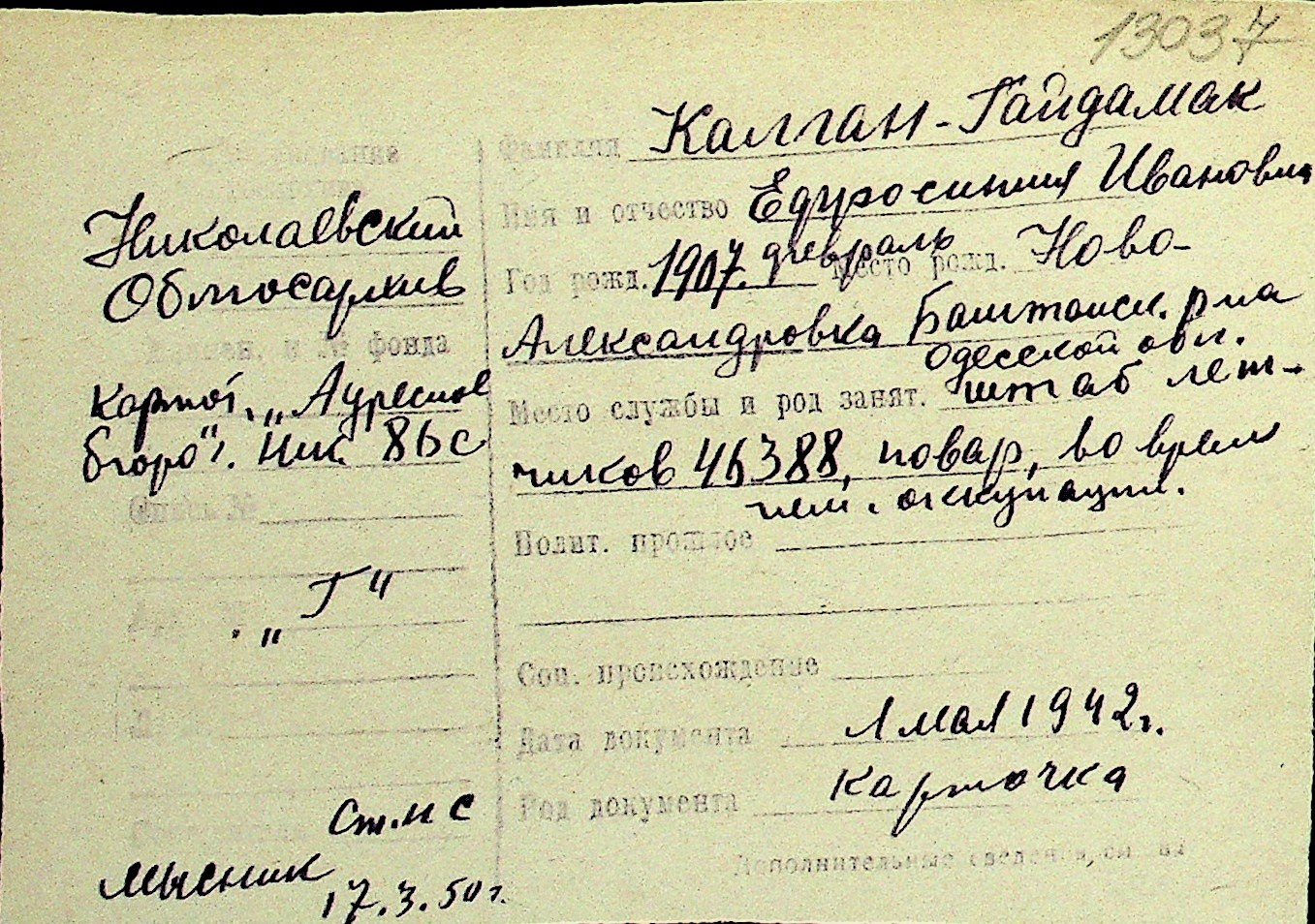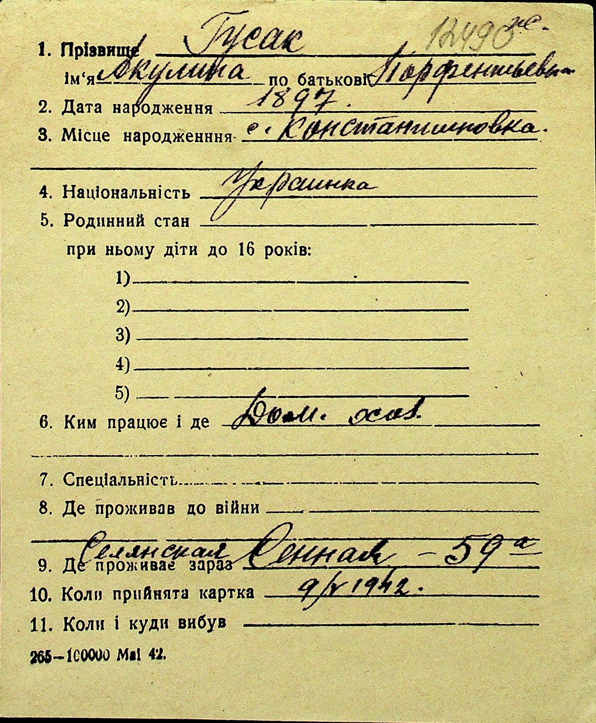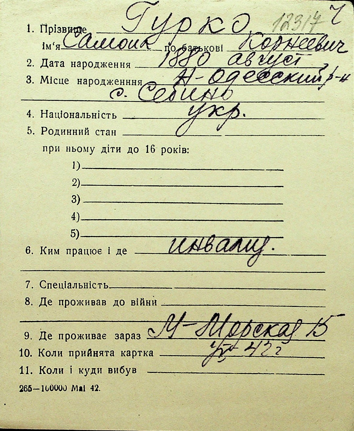 • • Перелік карток до фонду № Н-1016