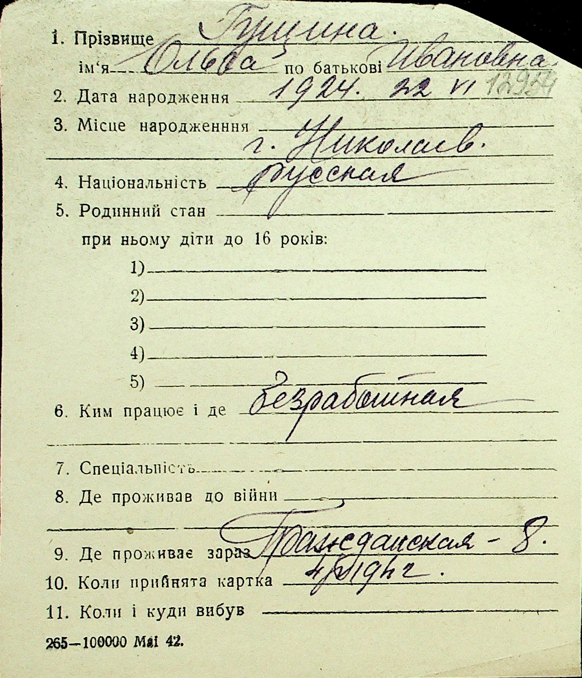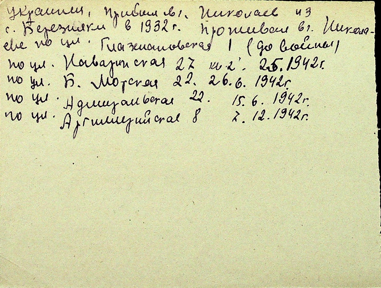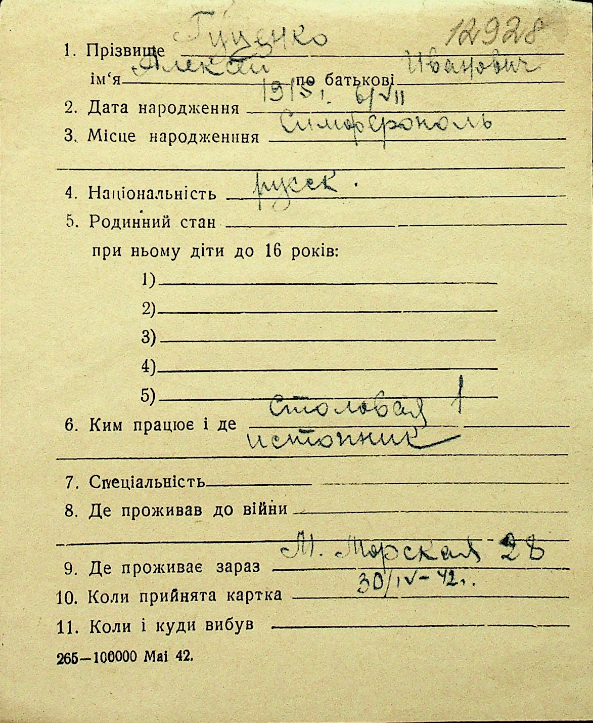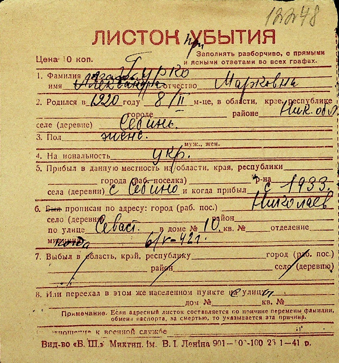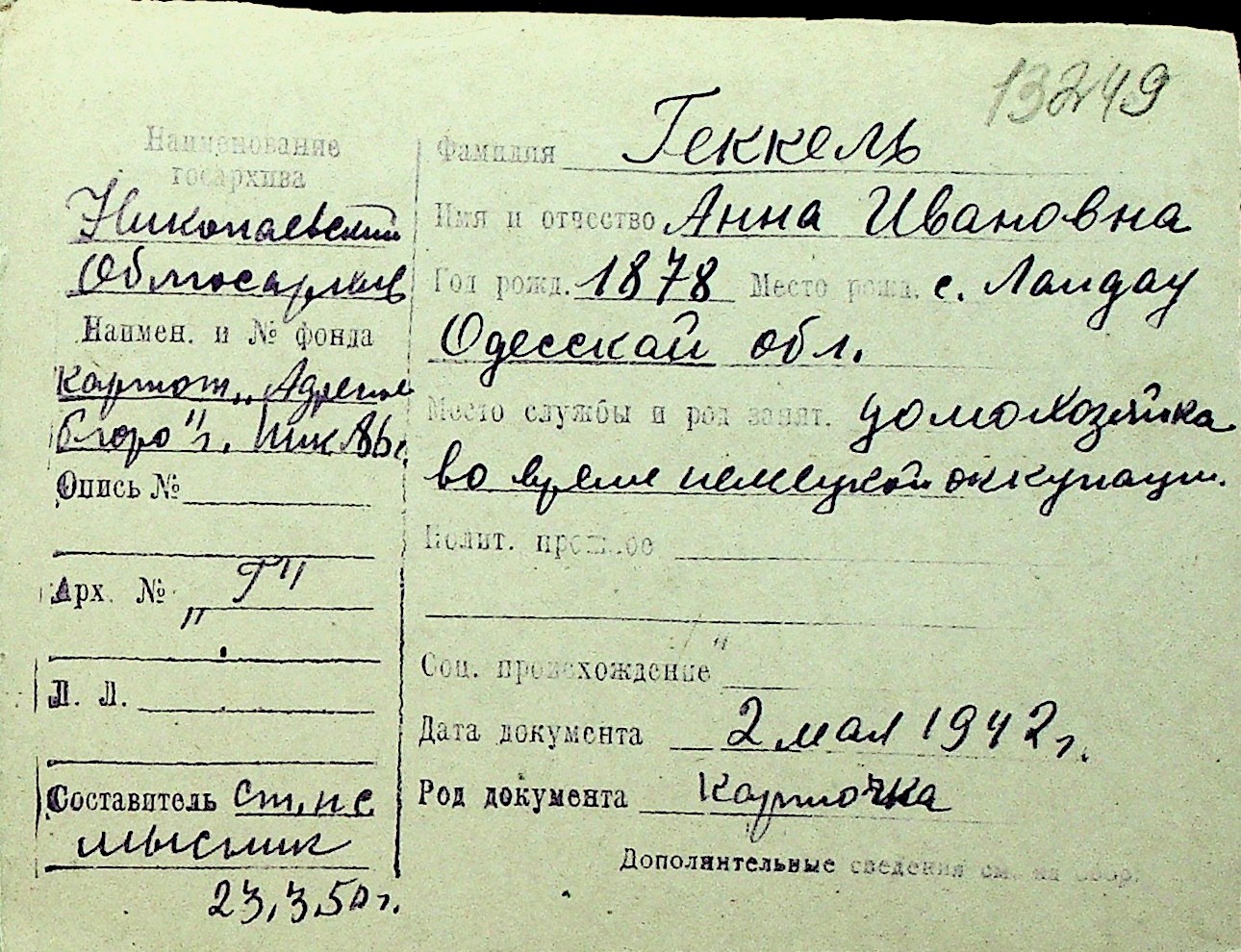 • • Перелік карток до фонду № Н-1016