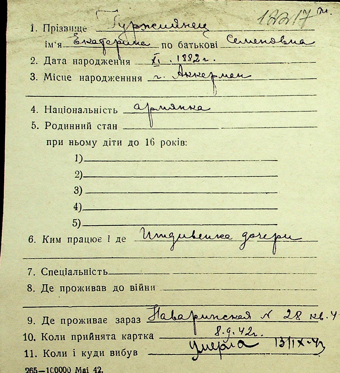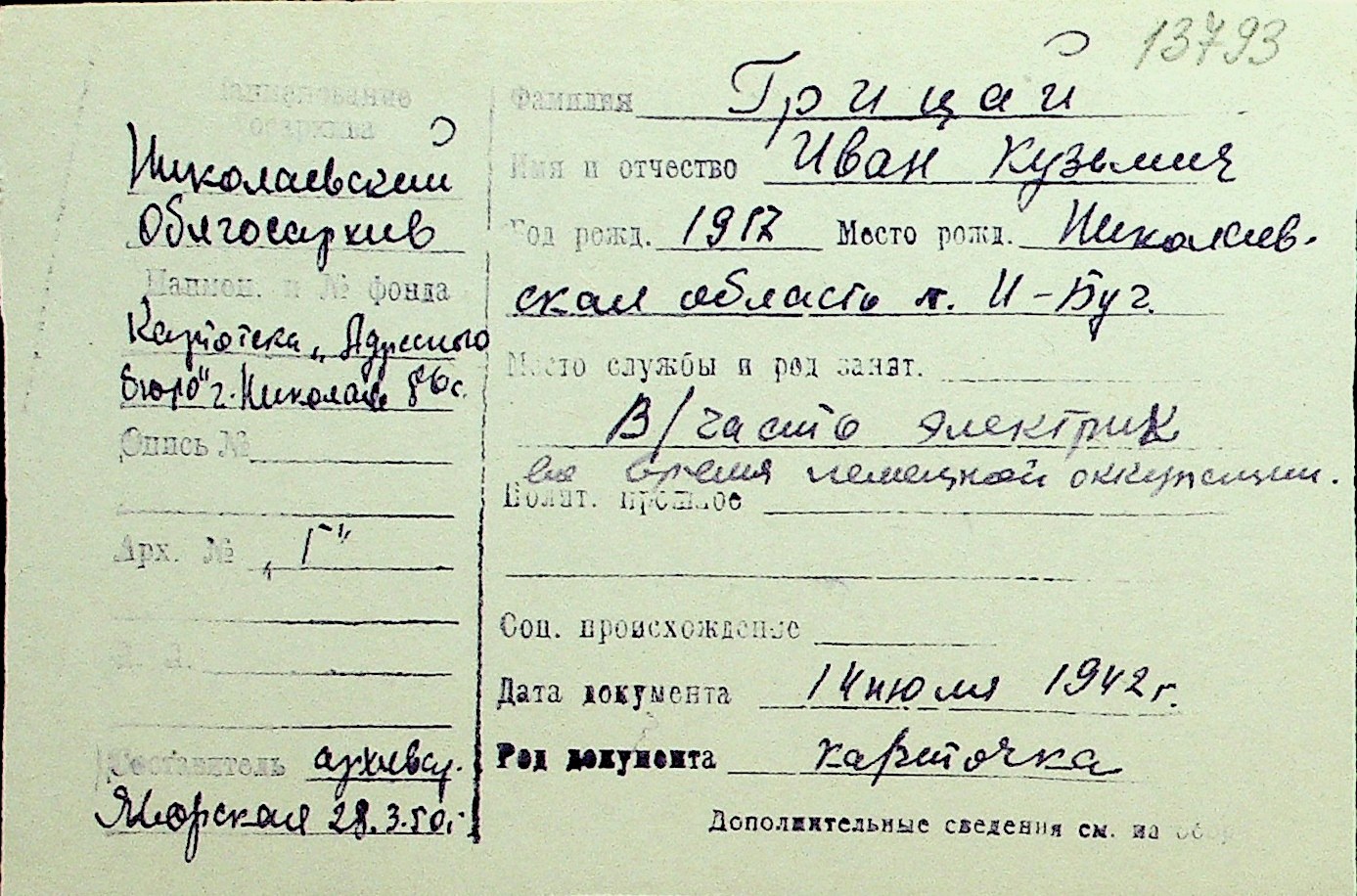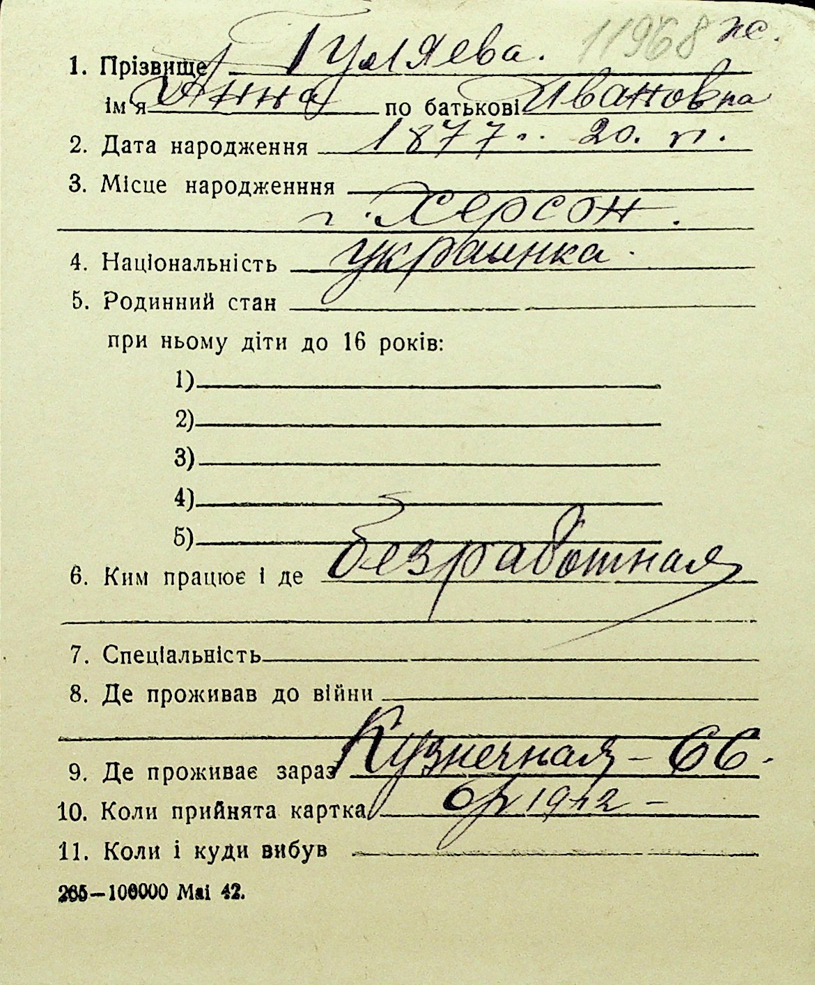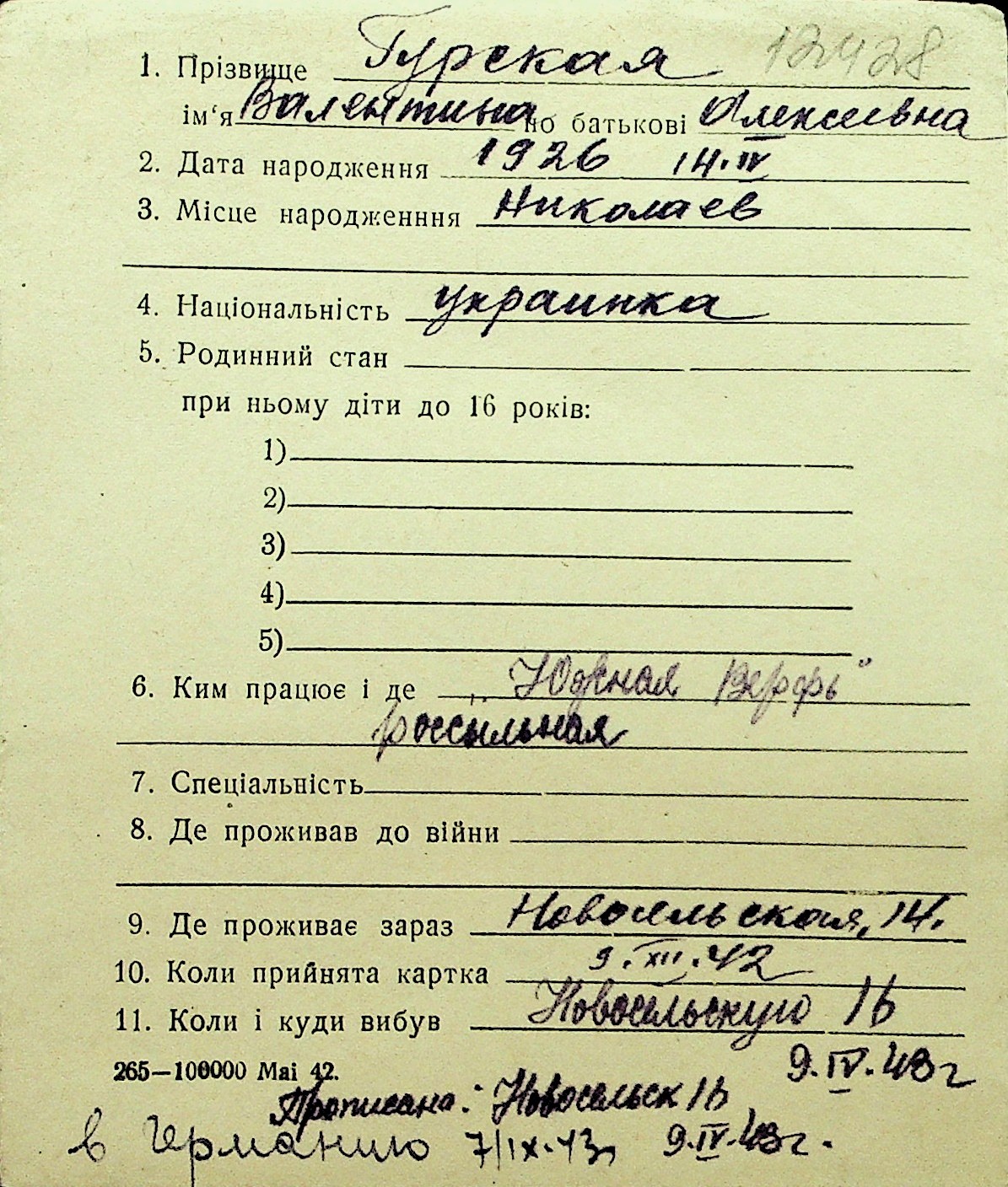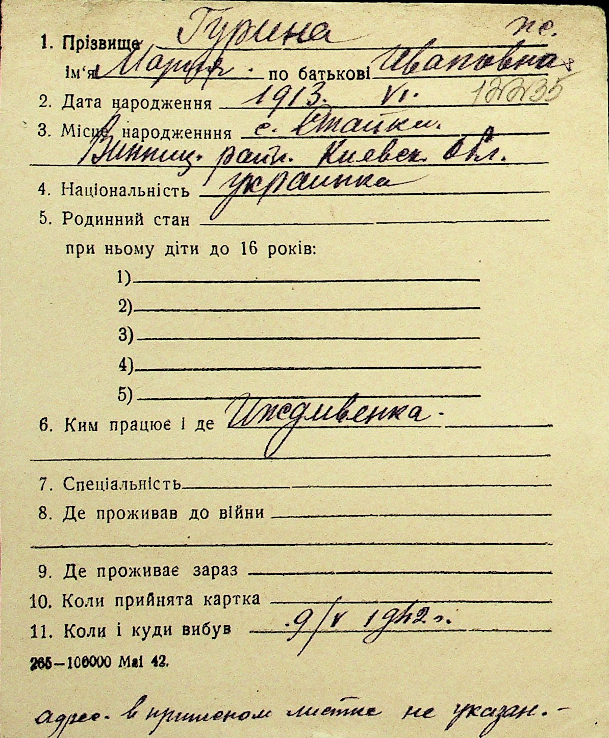 • • Перелік карток до фонду № Н-1016