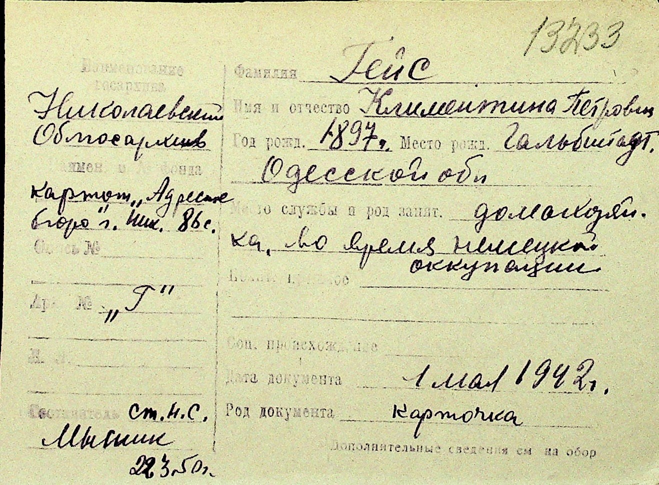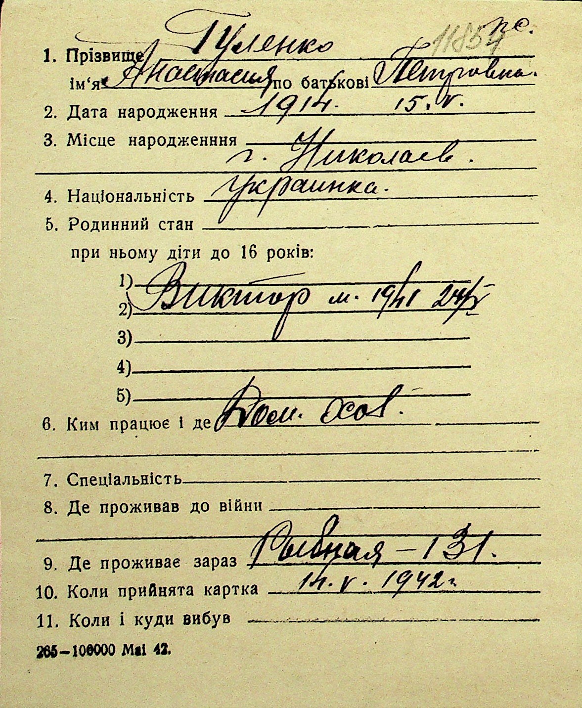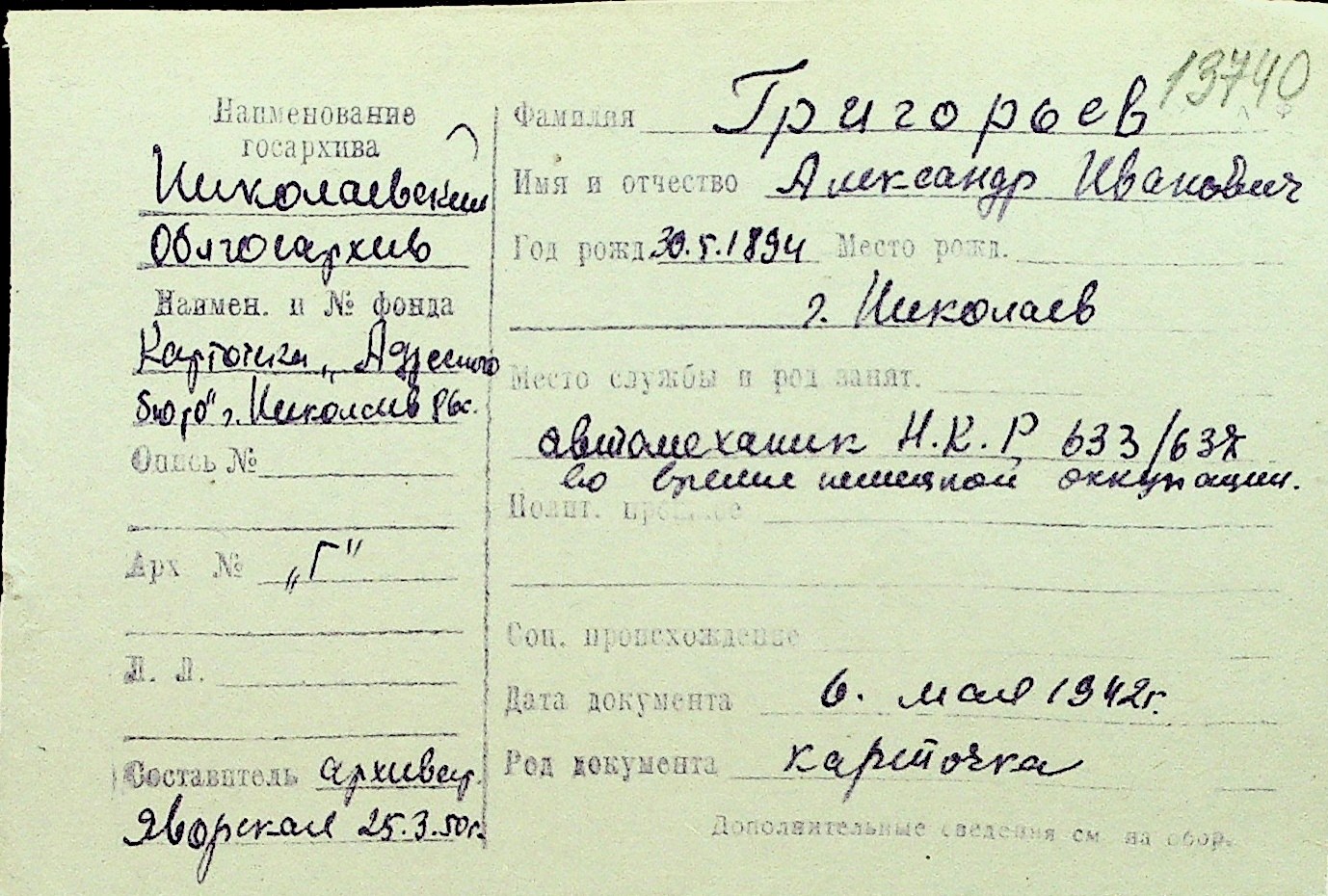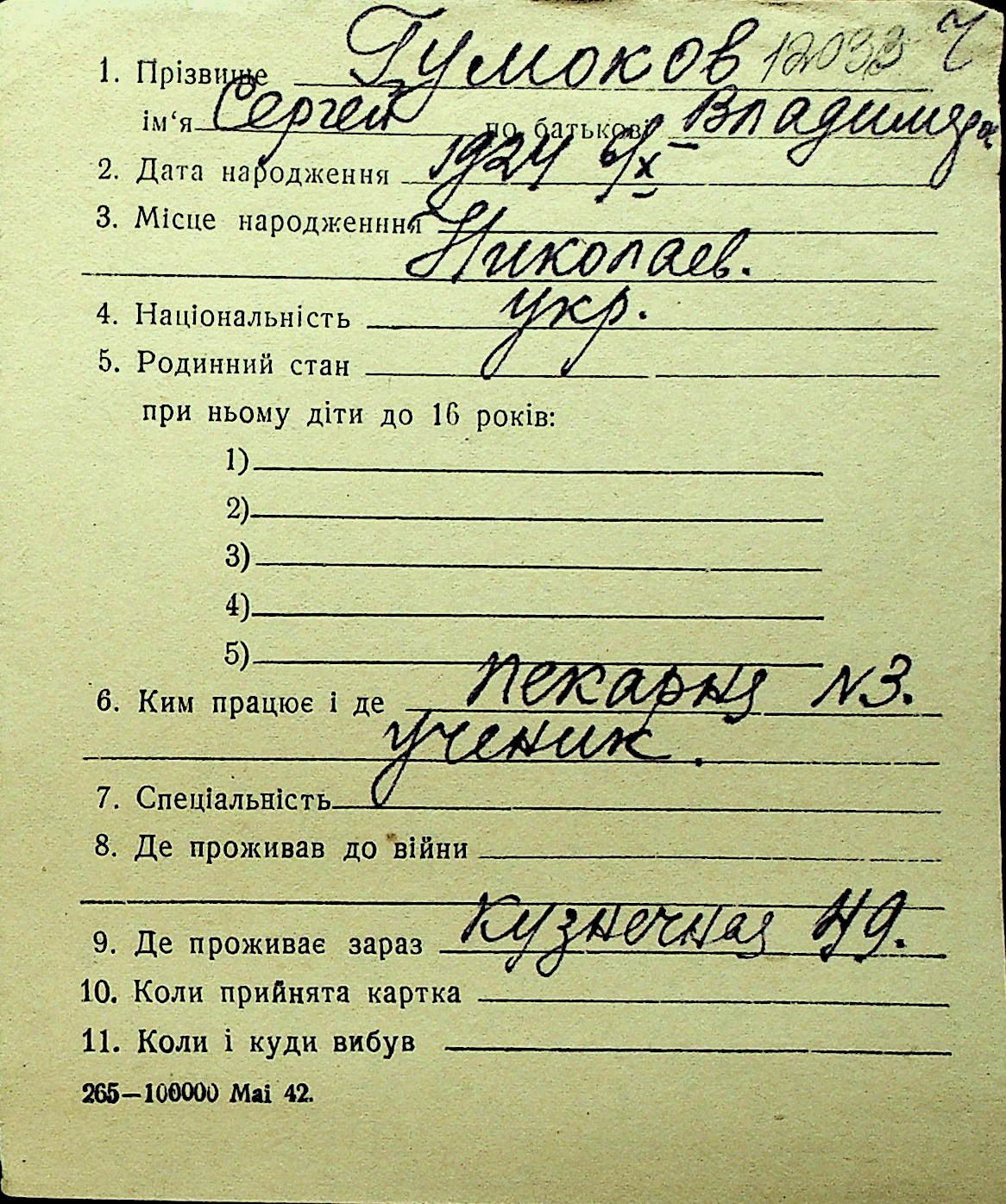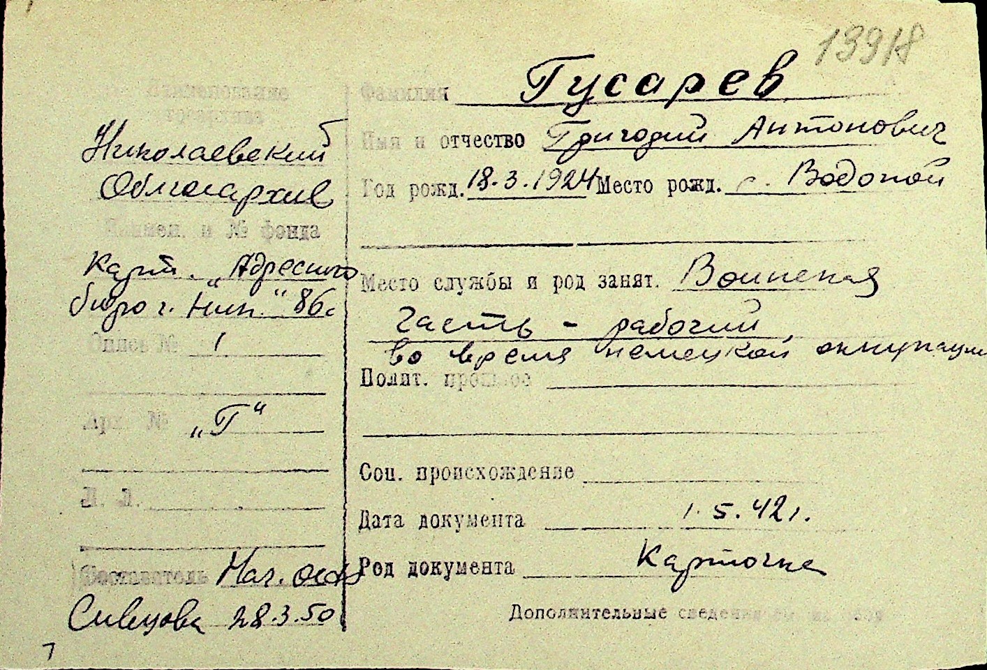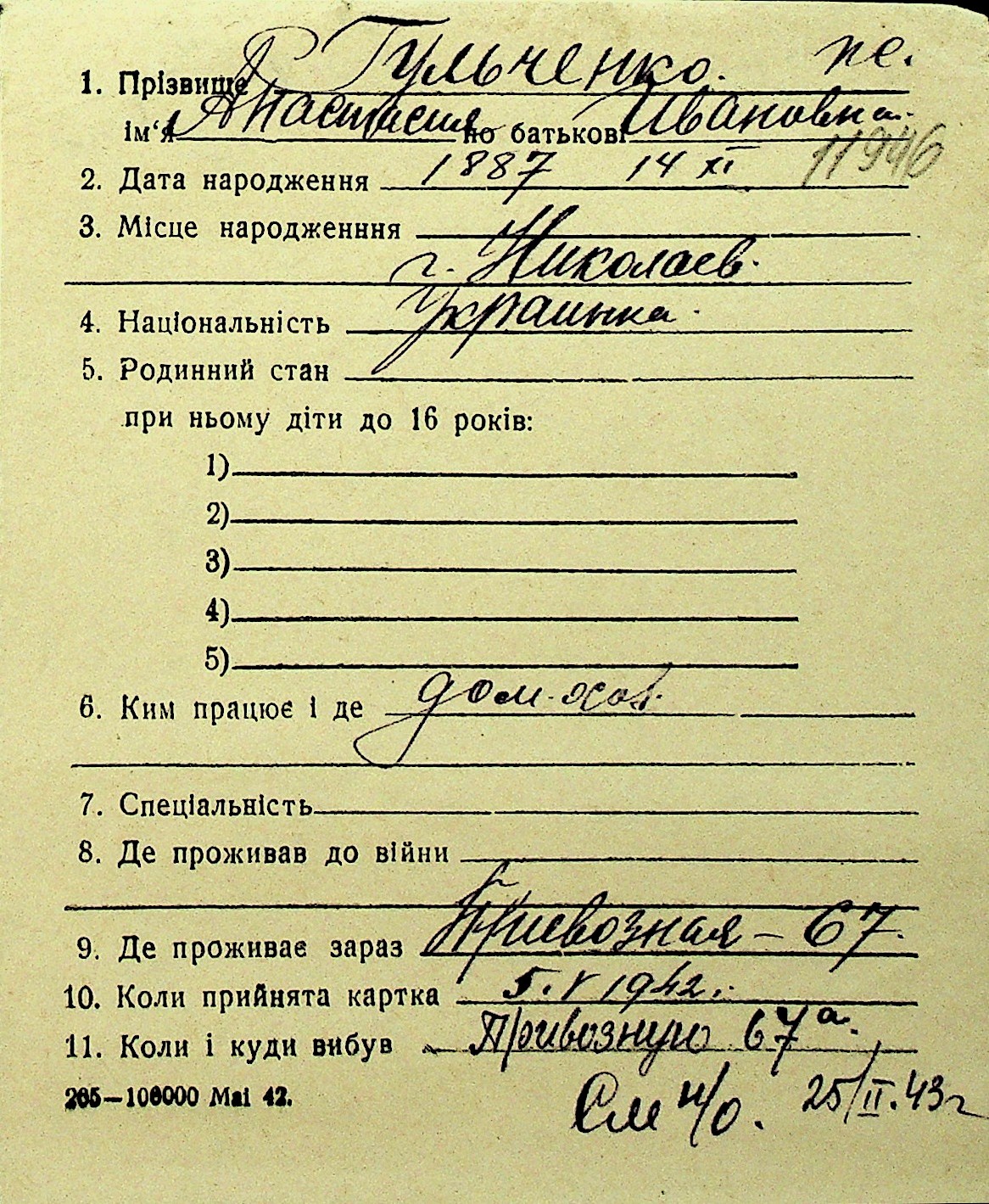• • Перелік карток до фонду № Н-1016