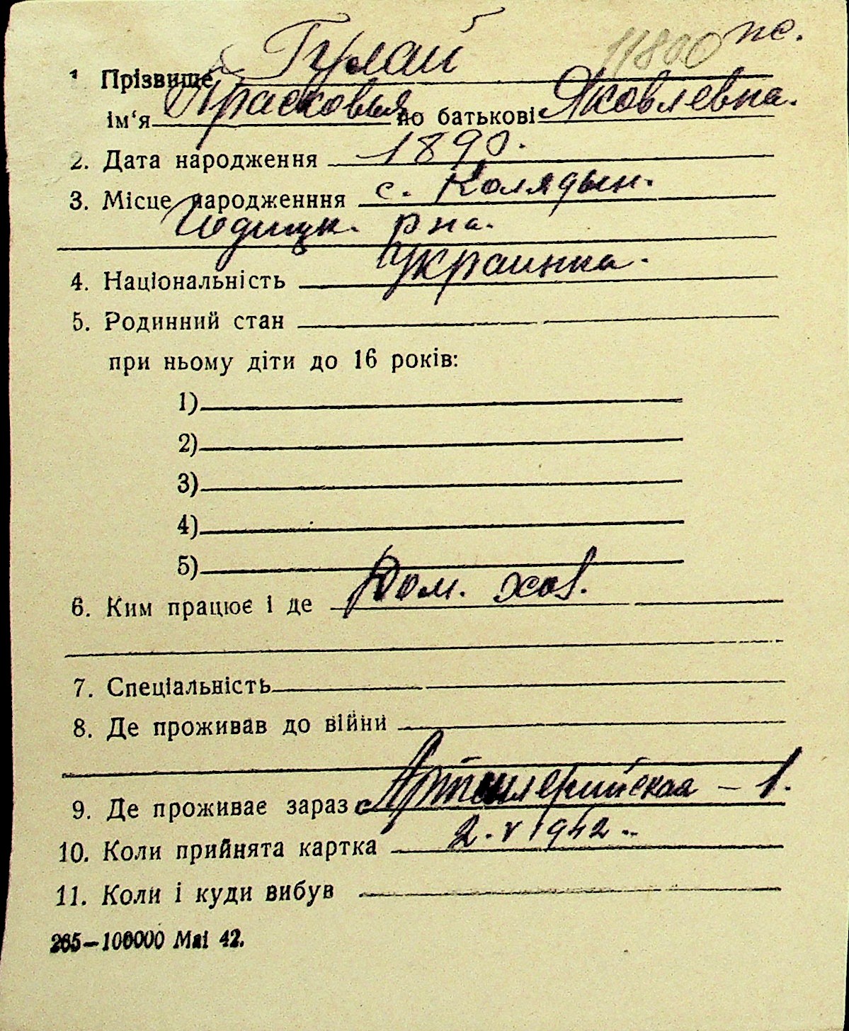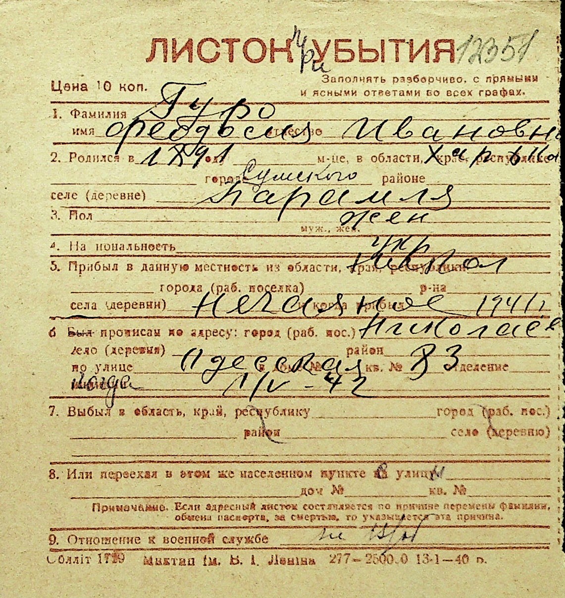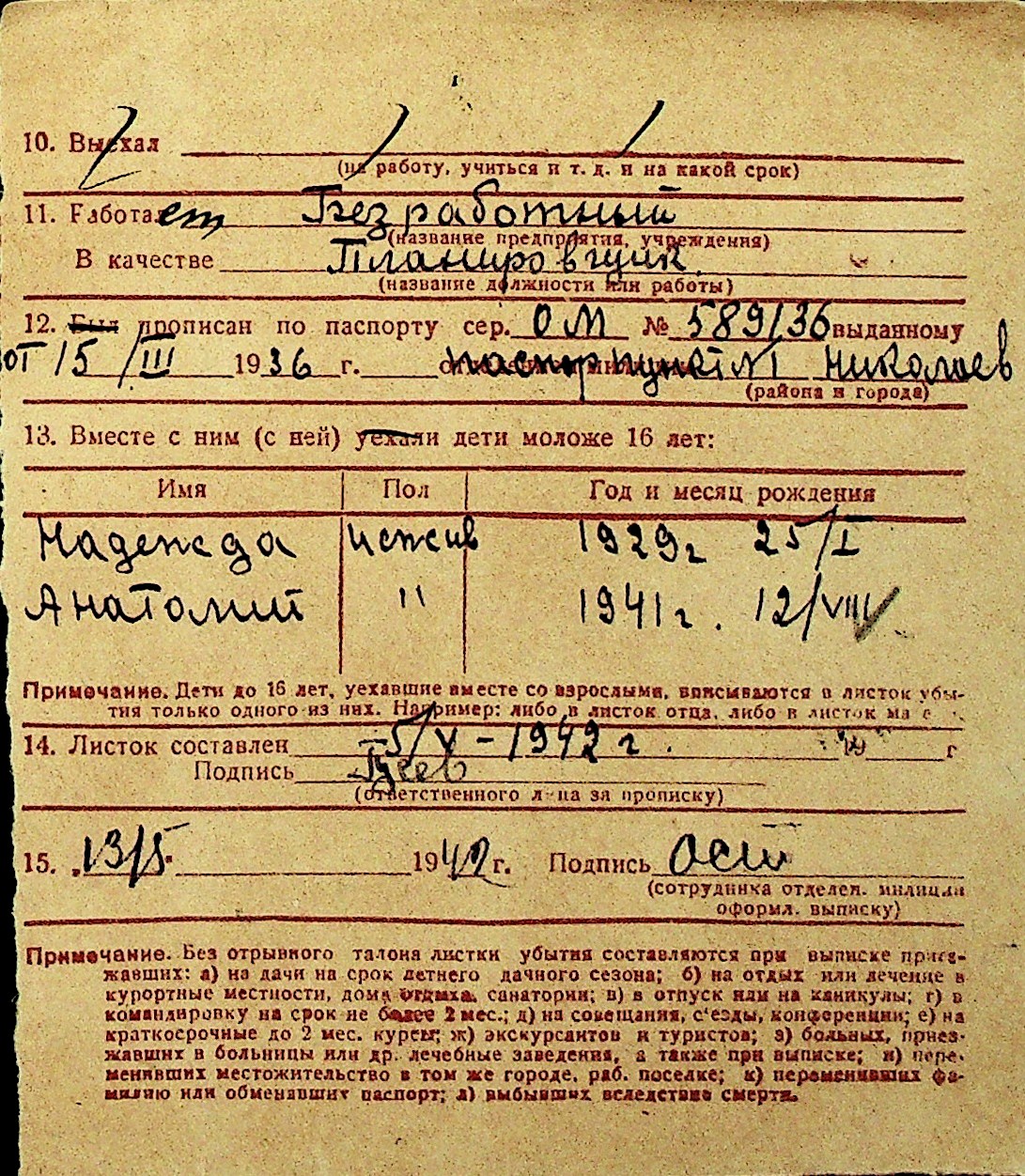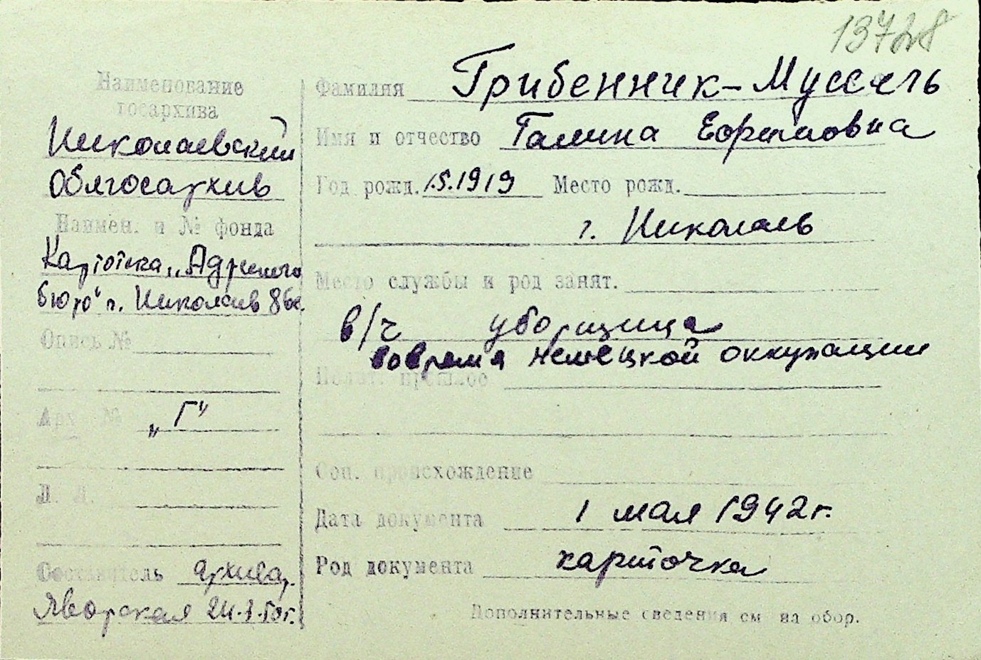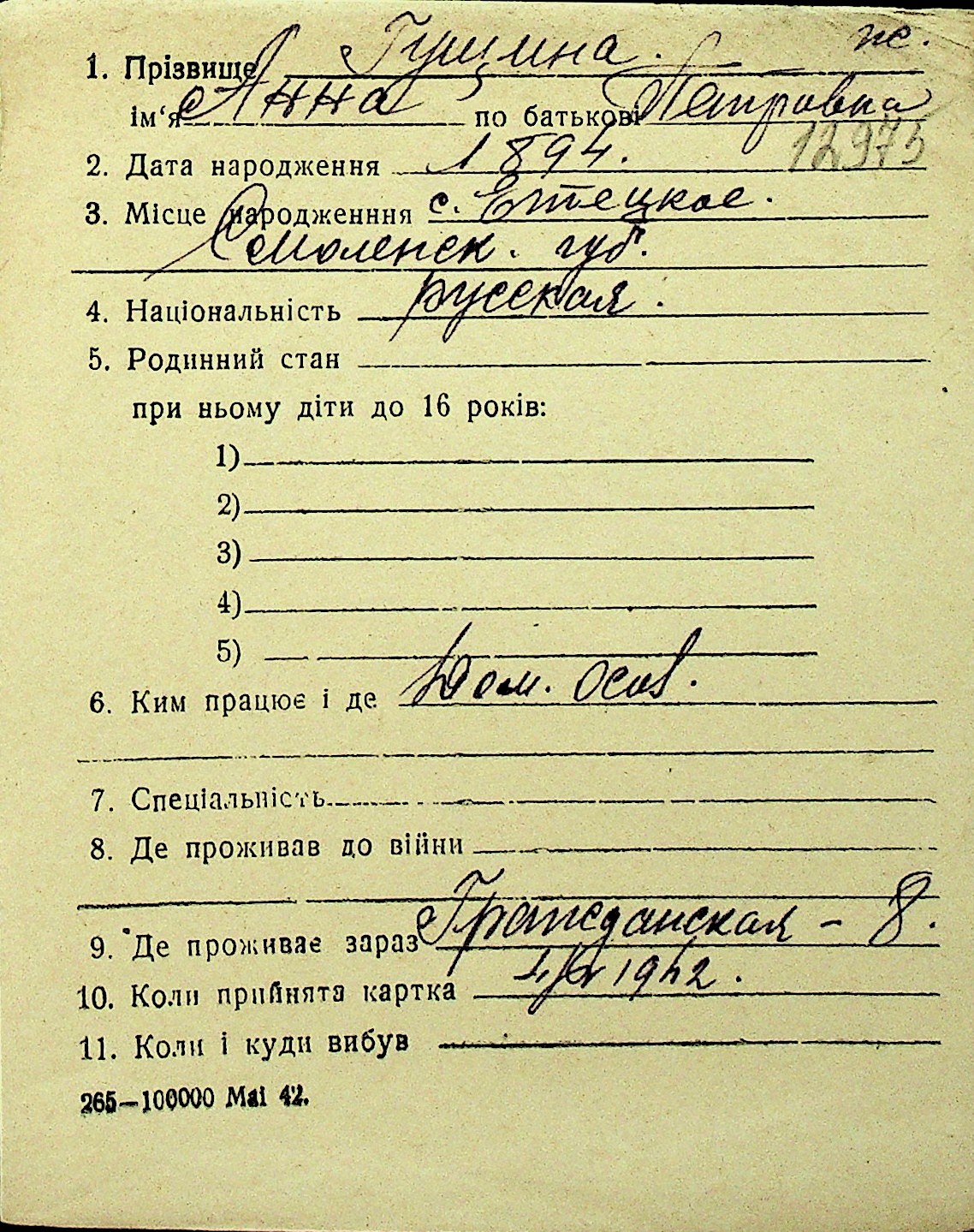 • • Перелік карток до фонду № Н-1016