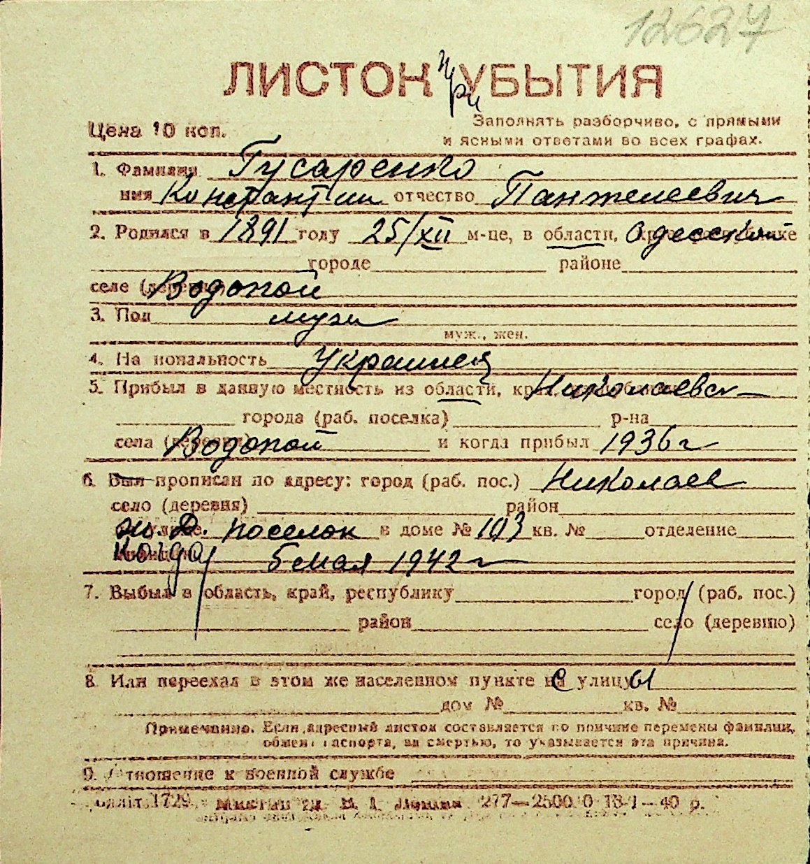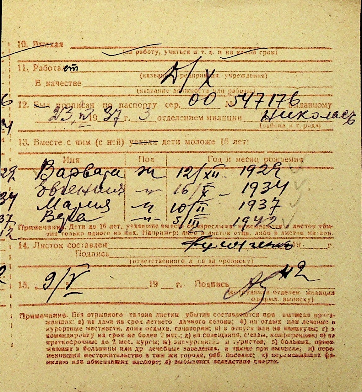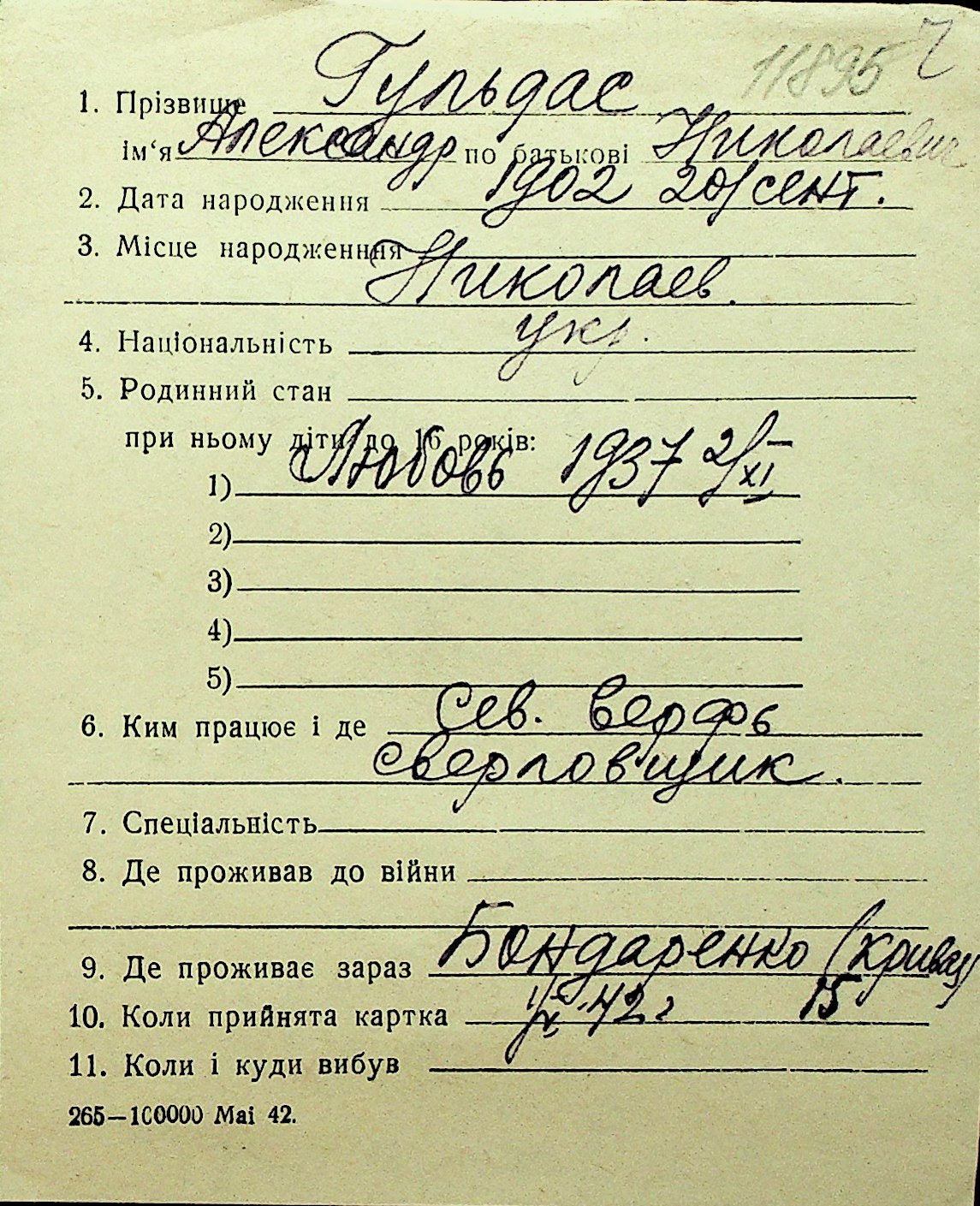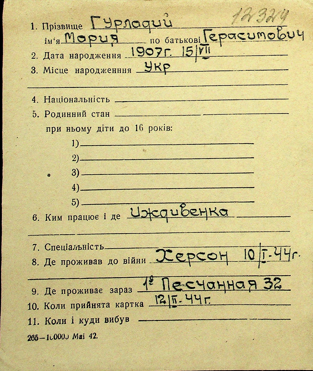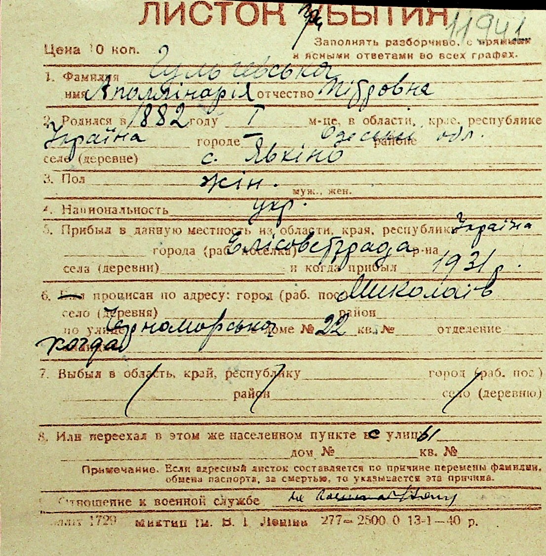 • • Перелік карток до фонду № Н-1016