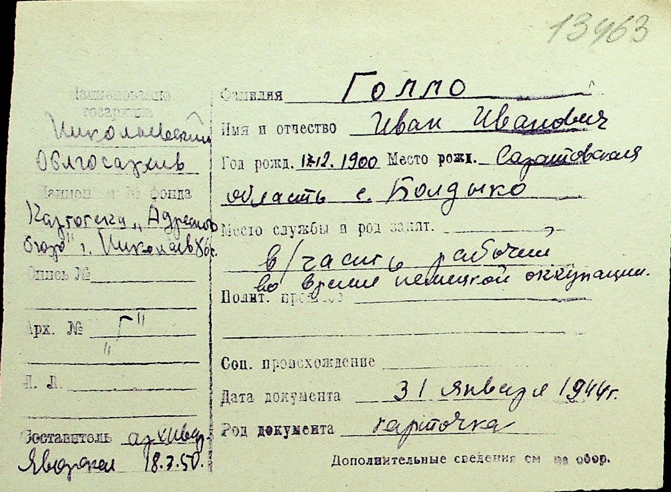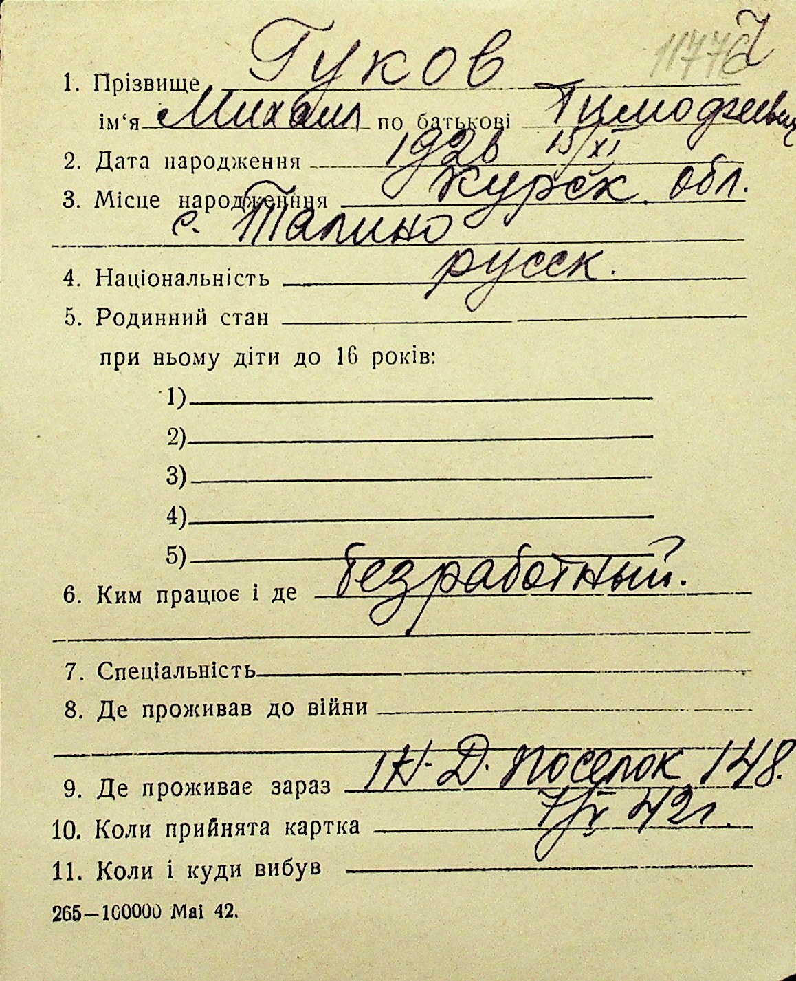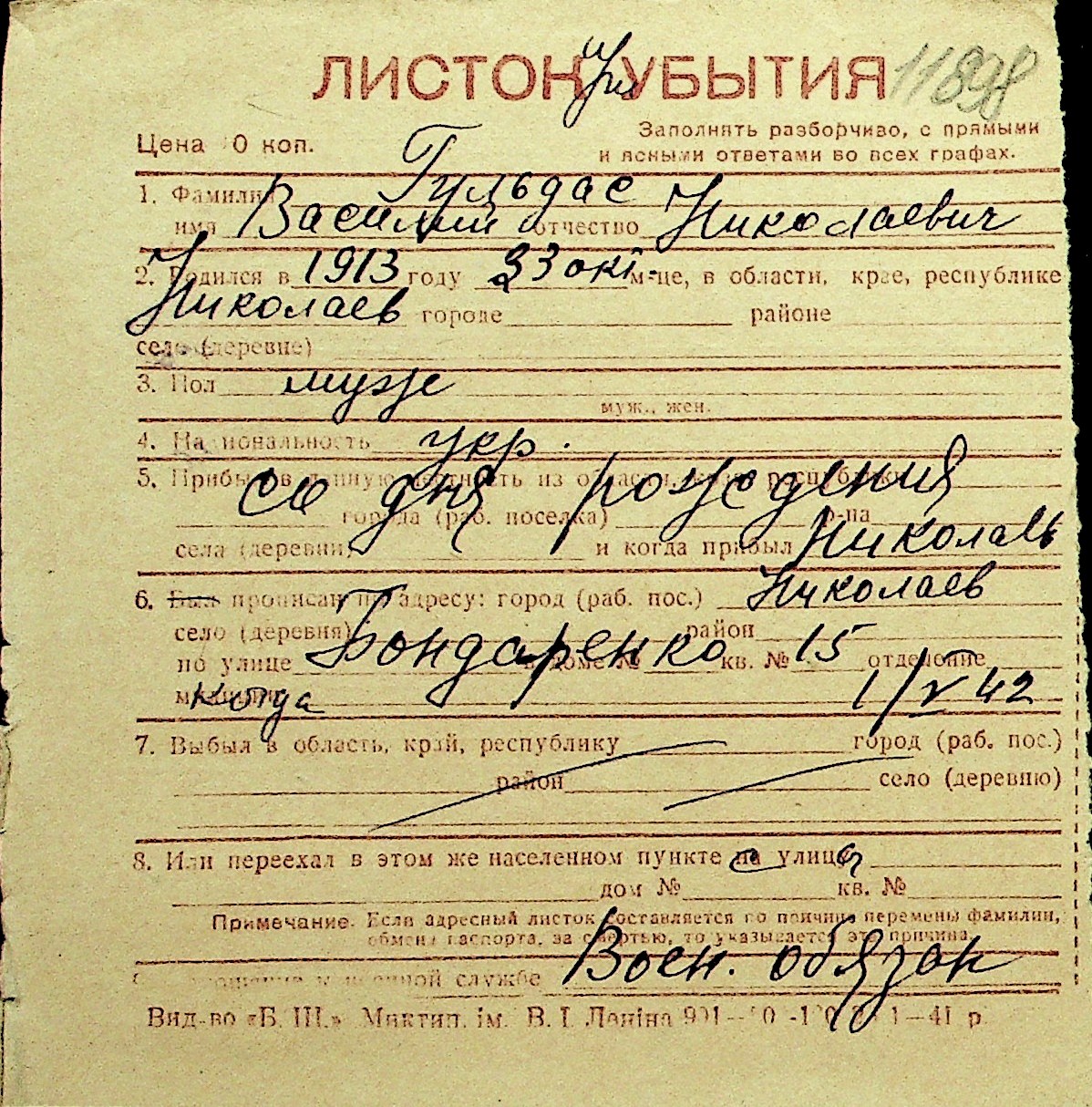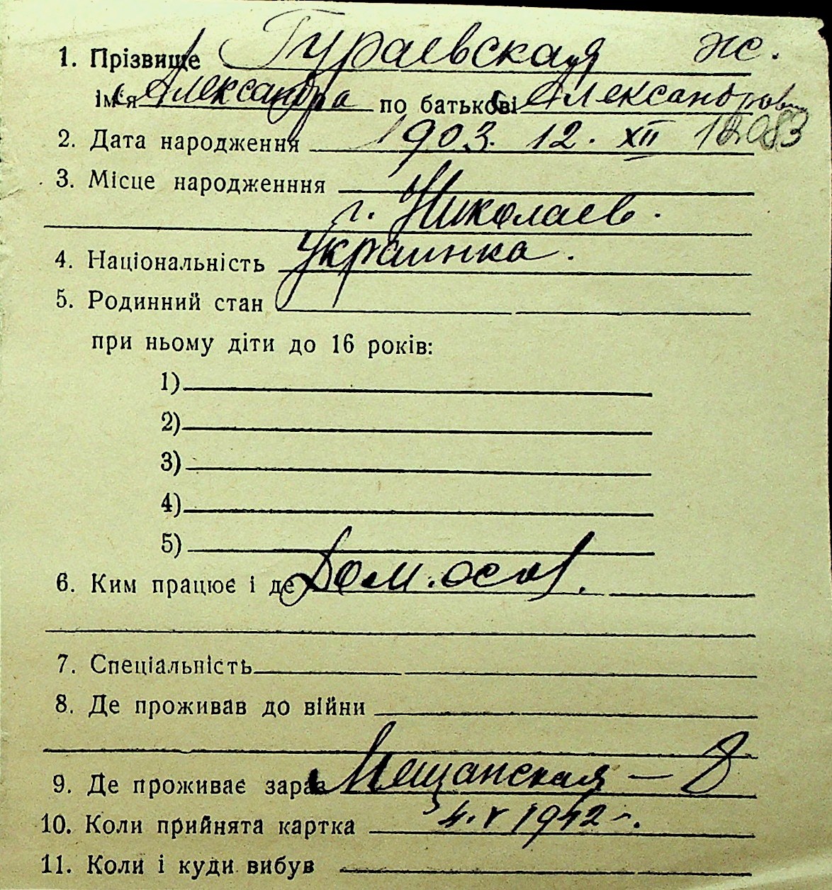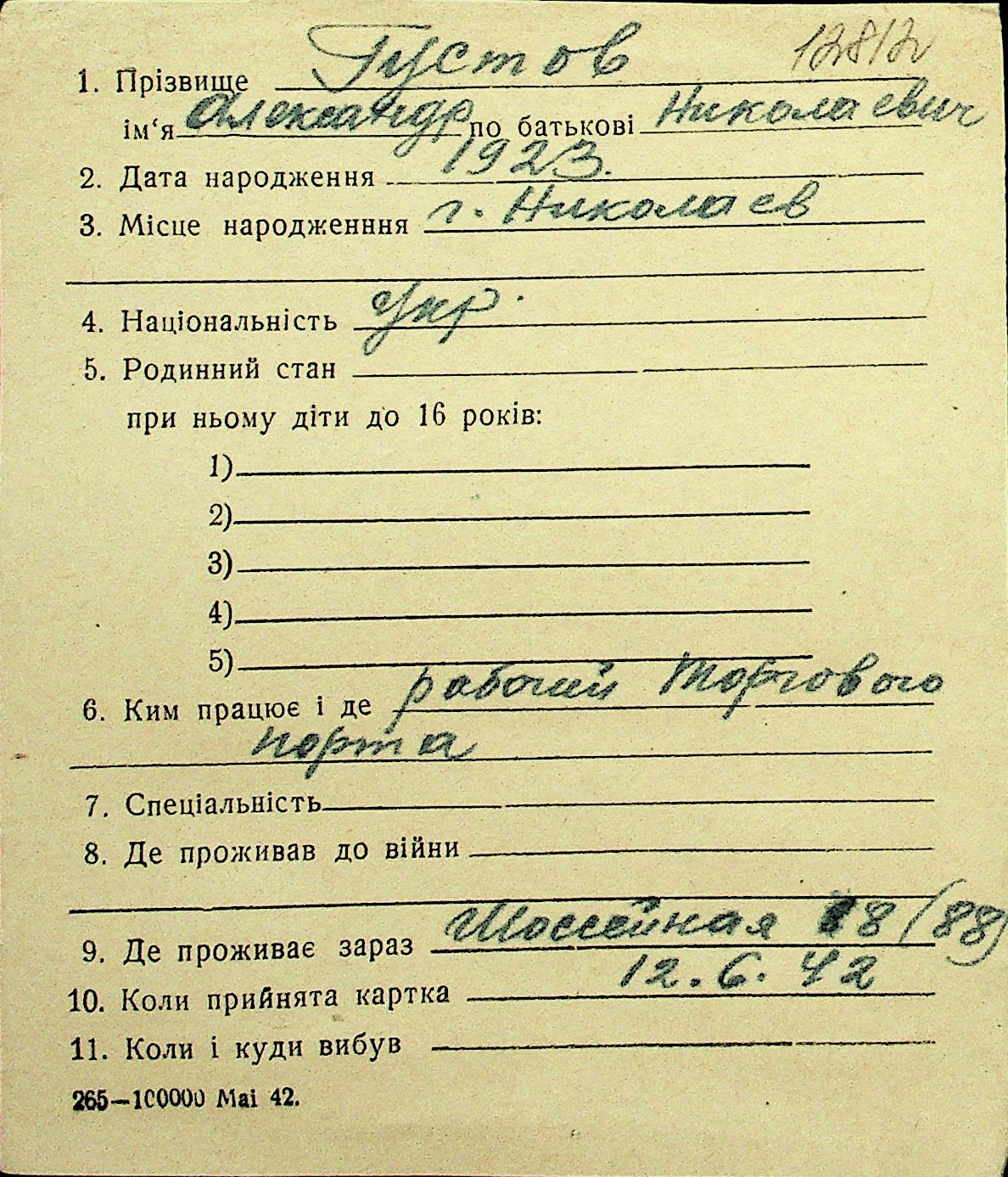 • • Перелік карток до фонду № Н-1016