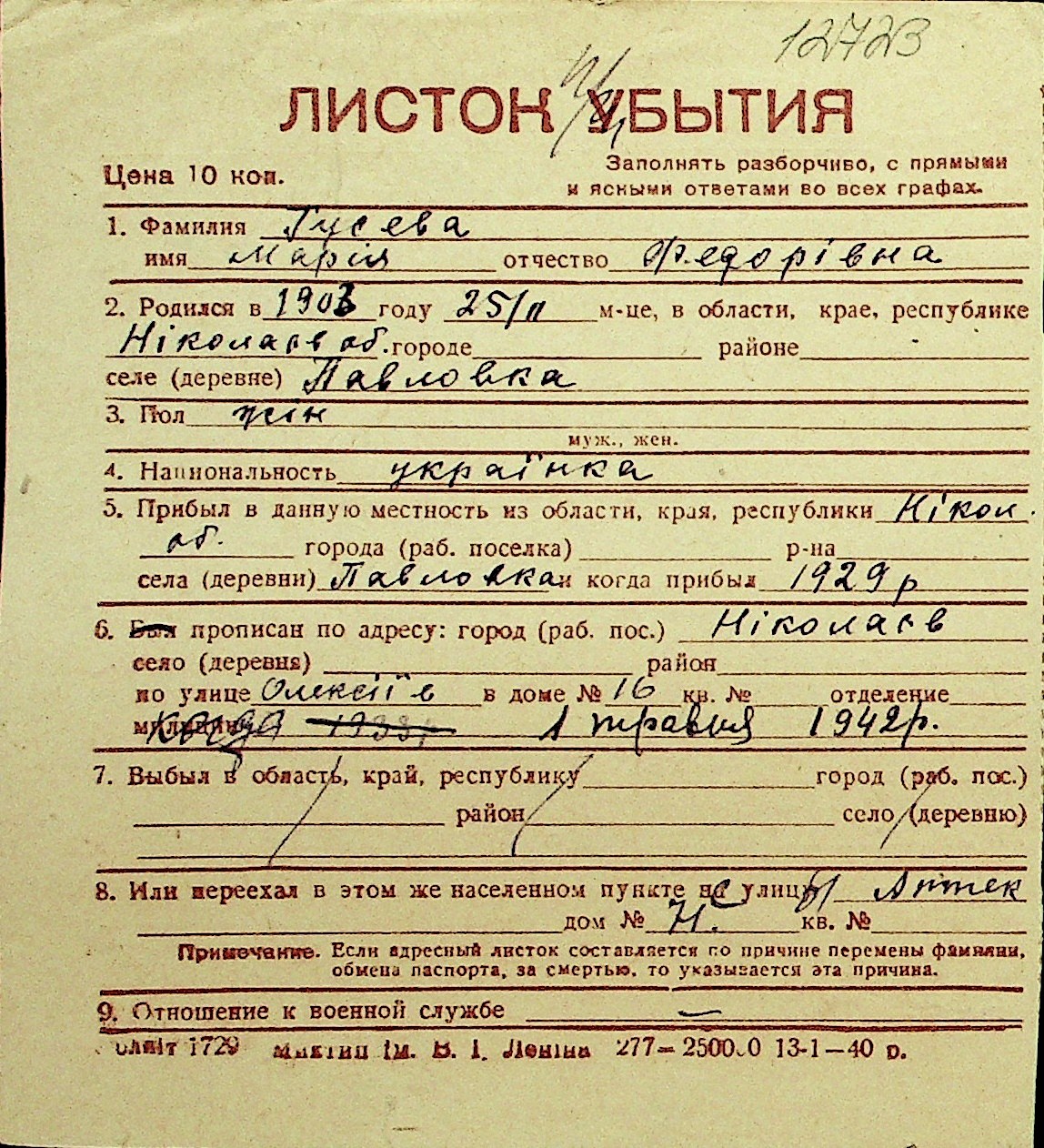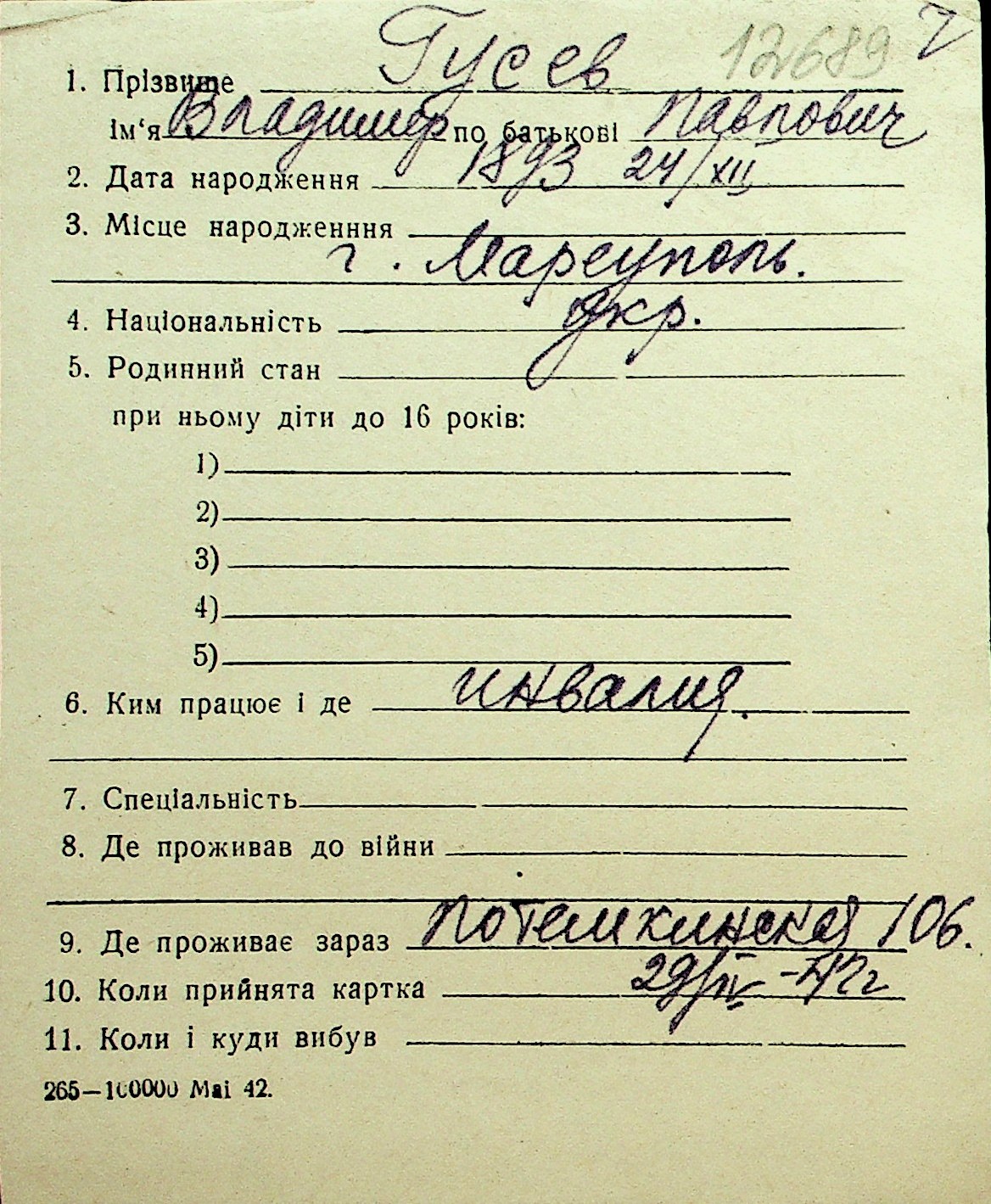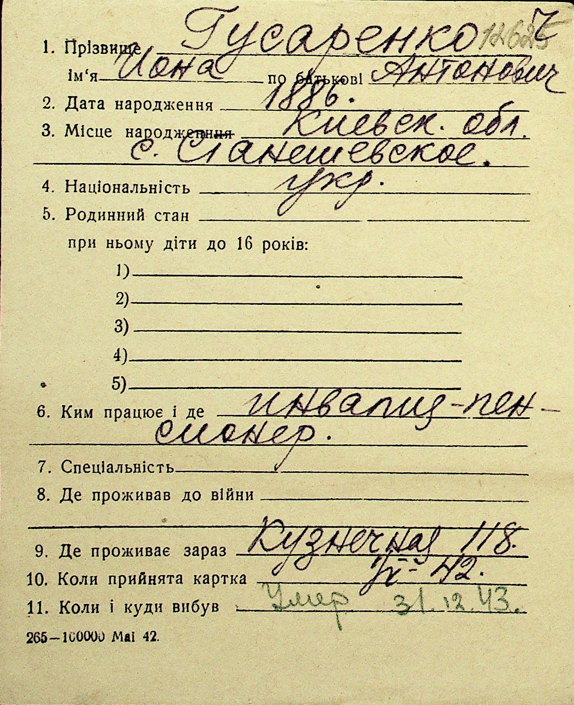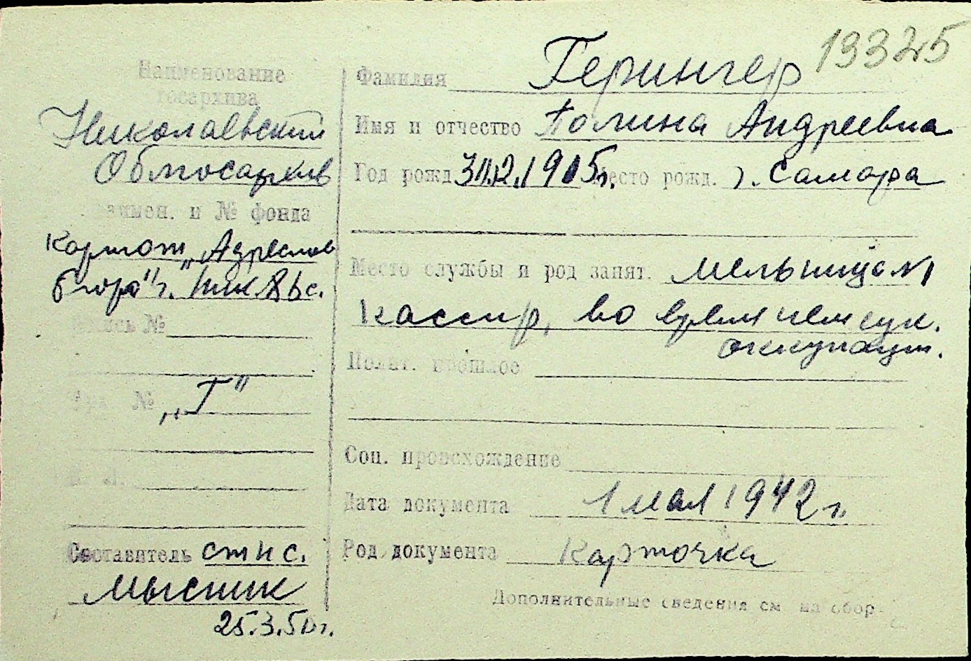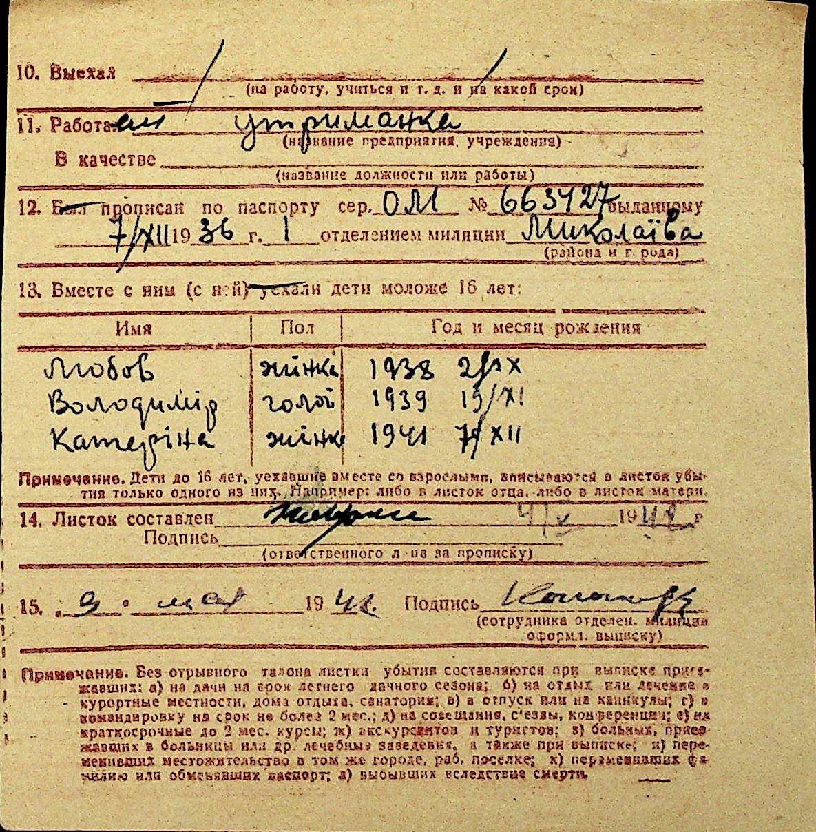• • Перелік карток до фонду № Н-1016
