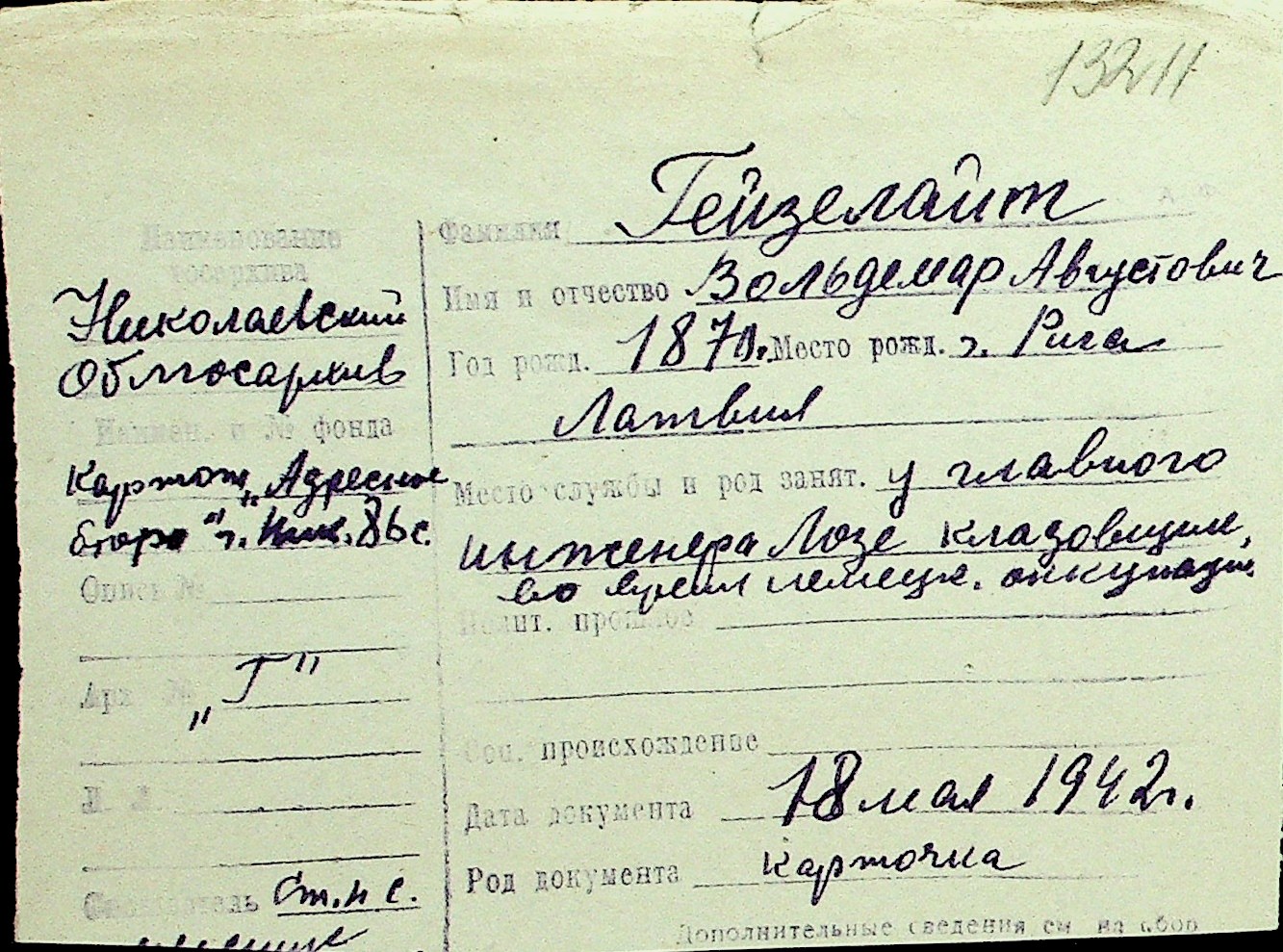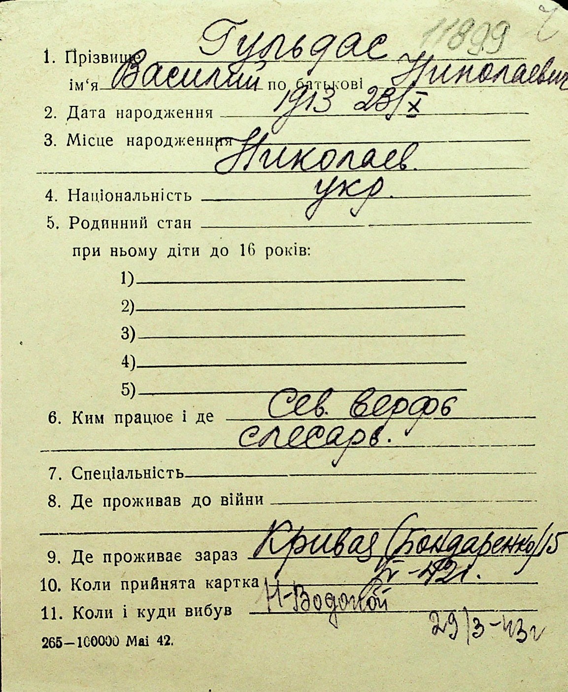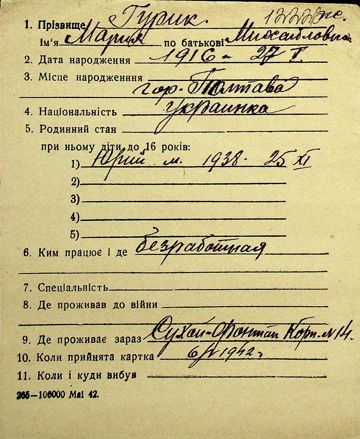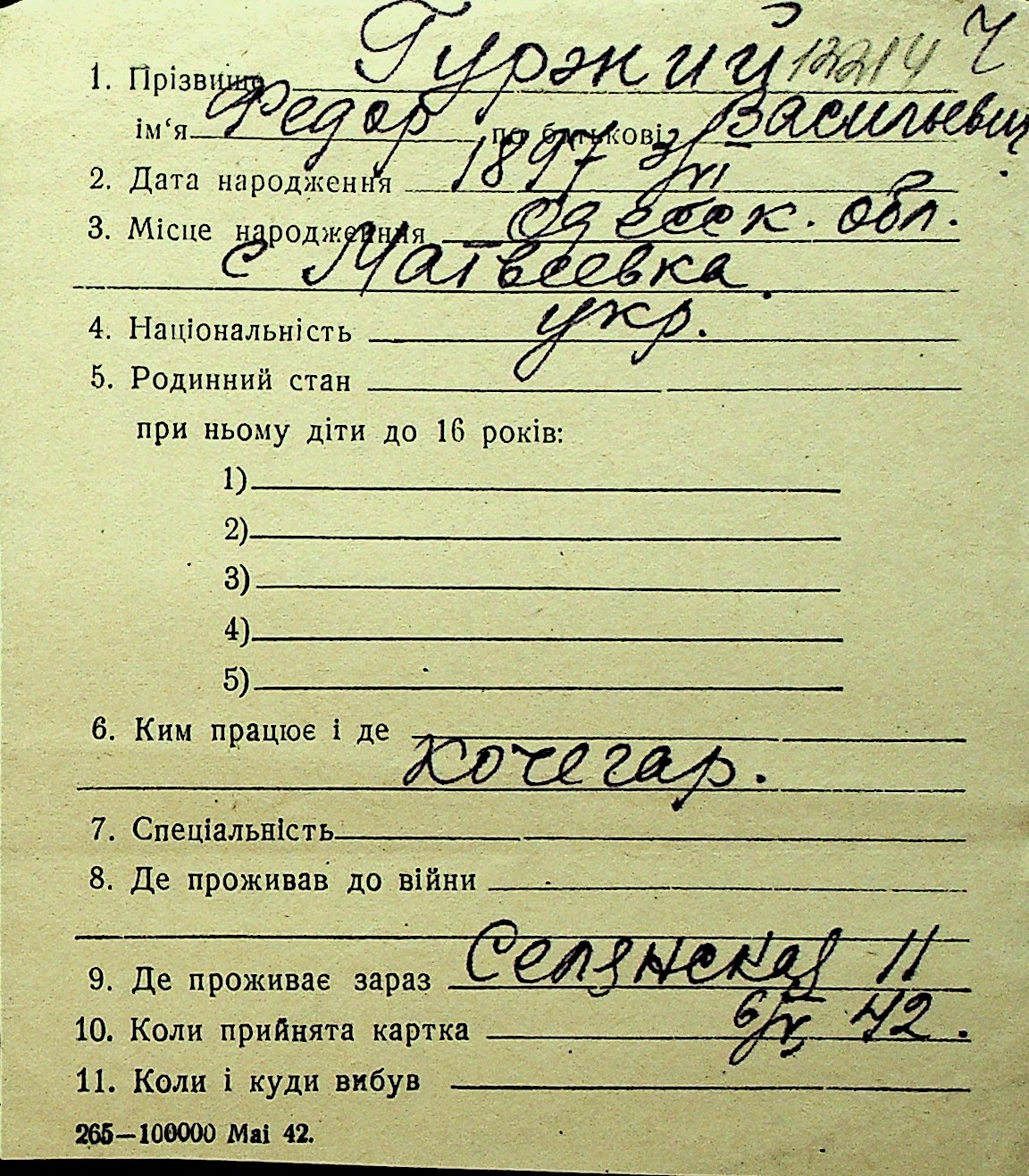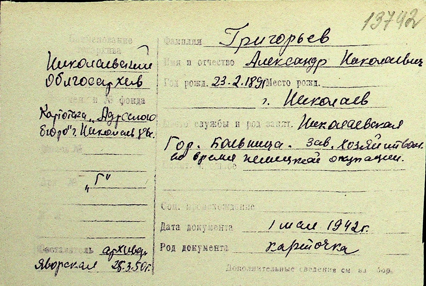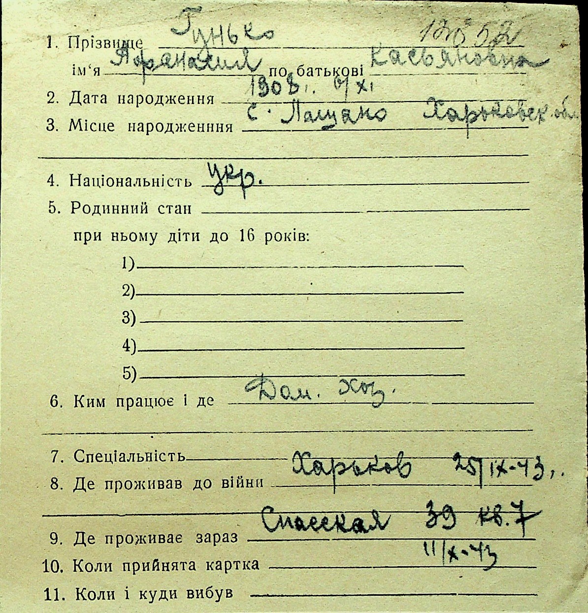 • • Перелік карток до фонду № Н-1016