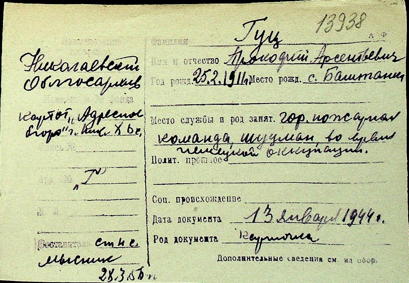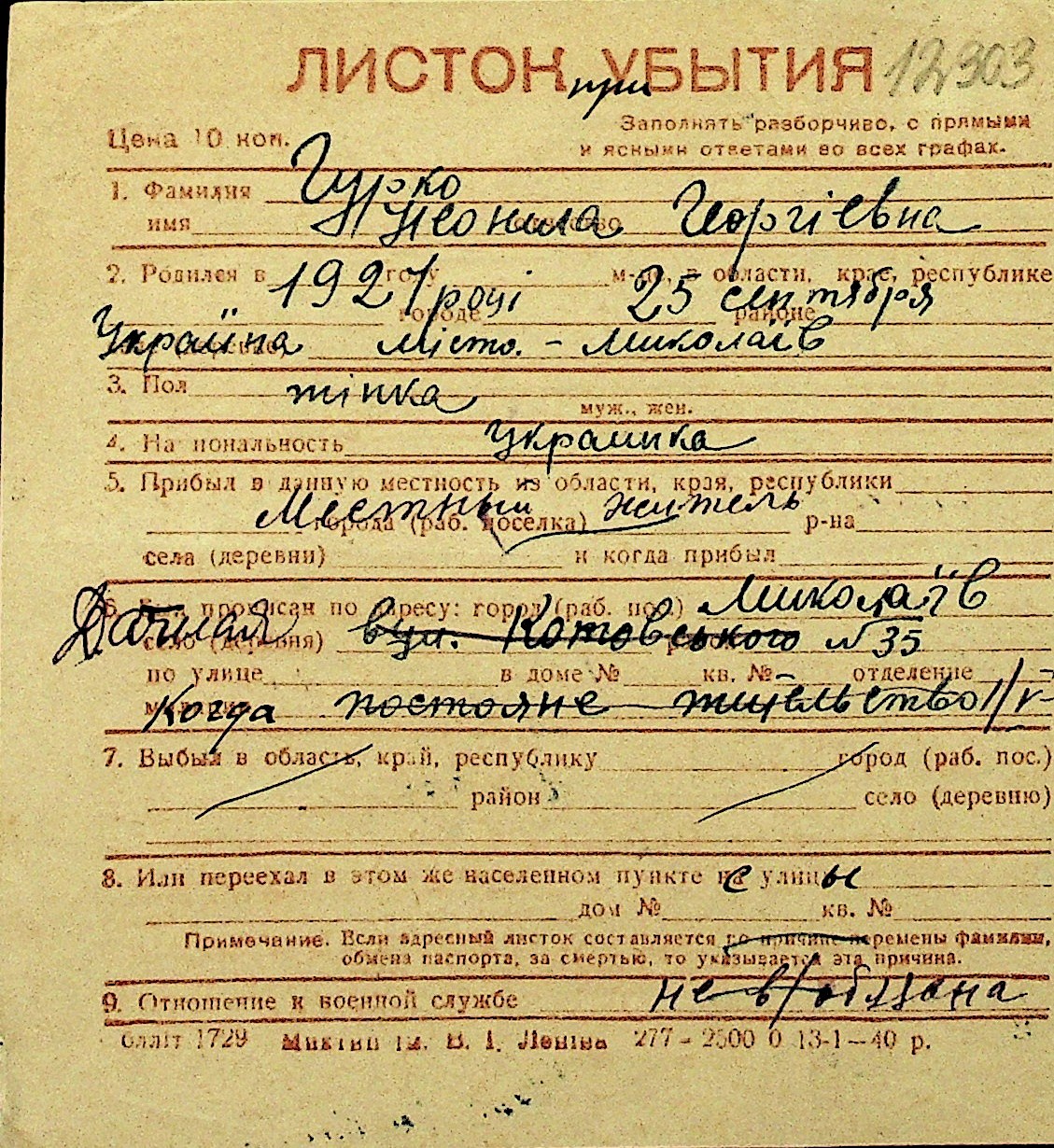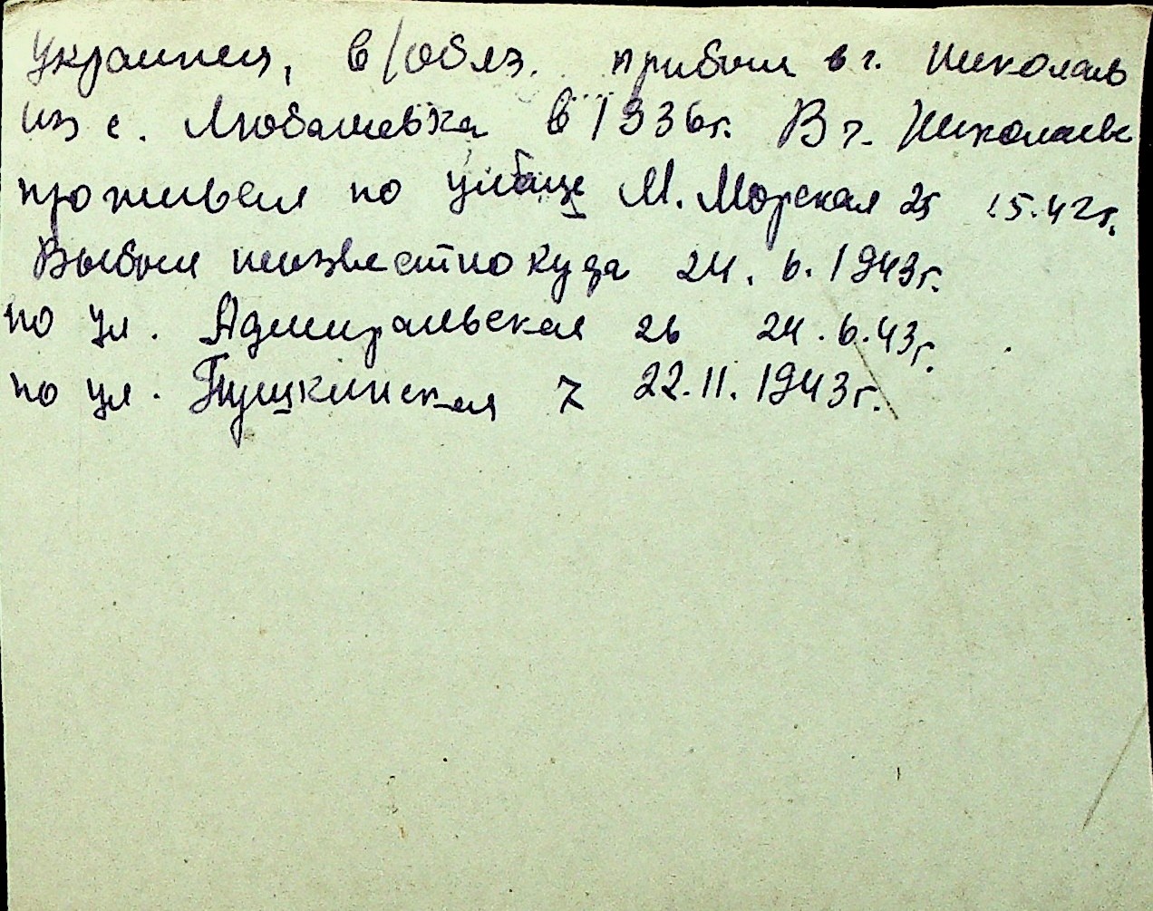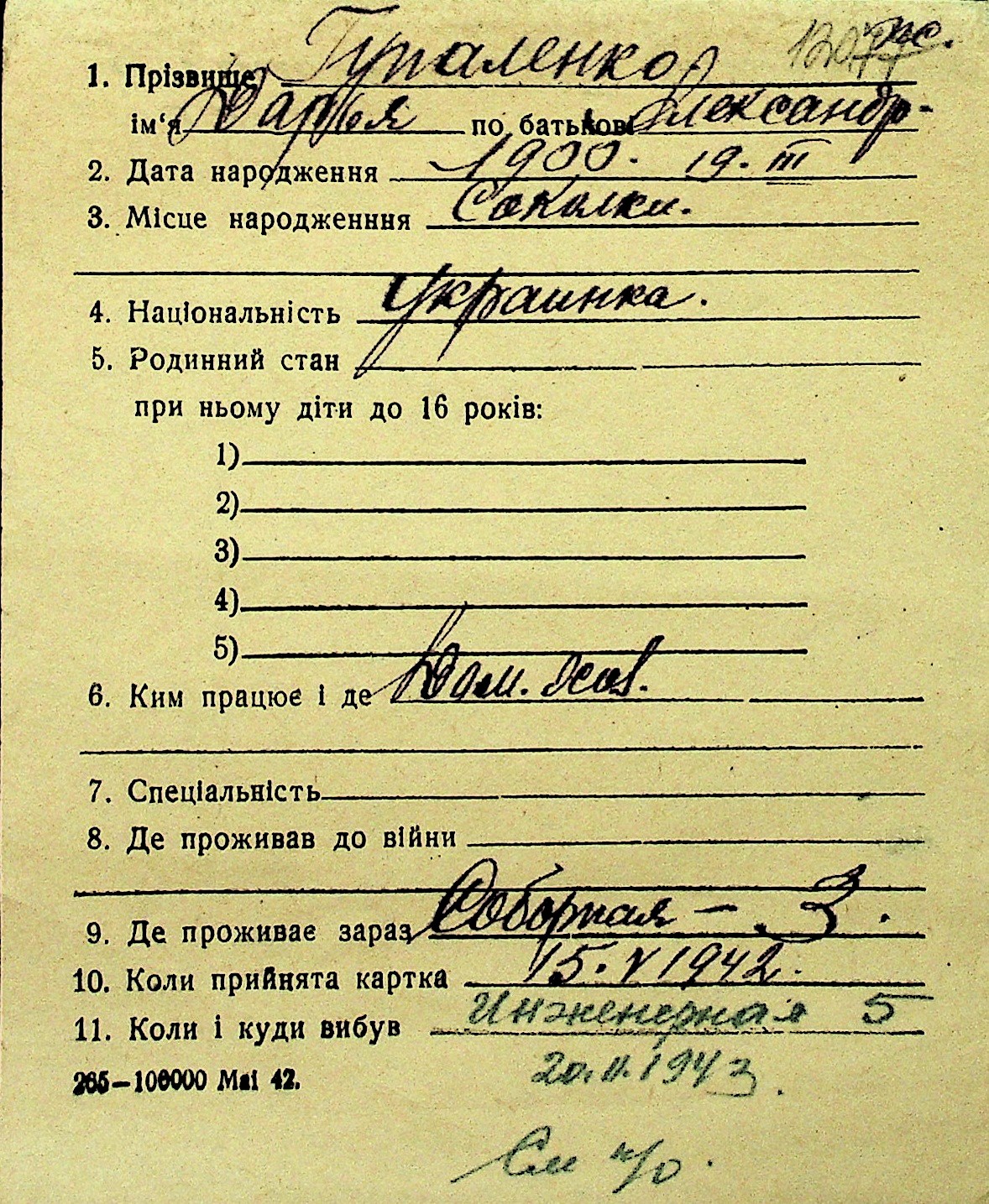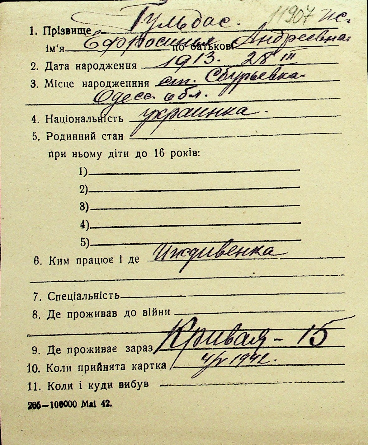 • • Перелік карток до фонду № Н-1016