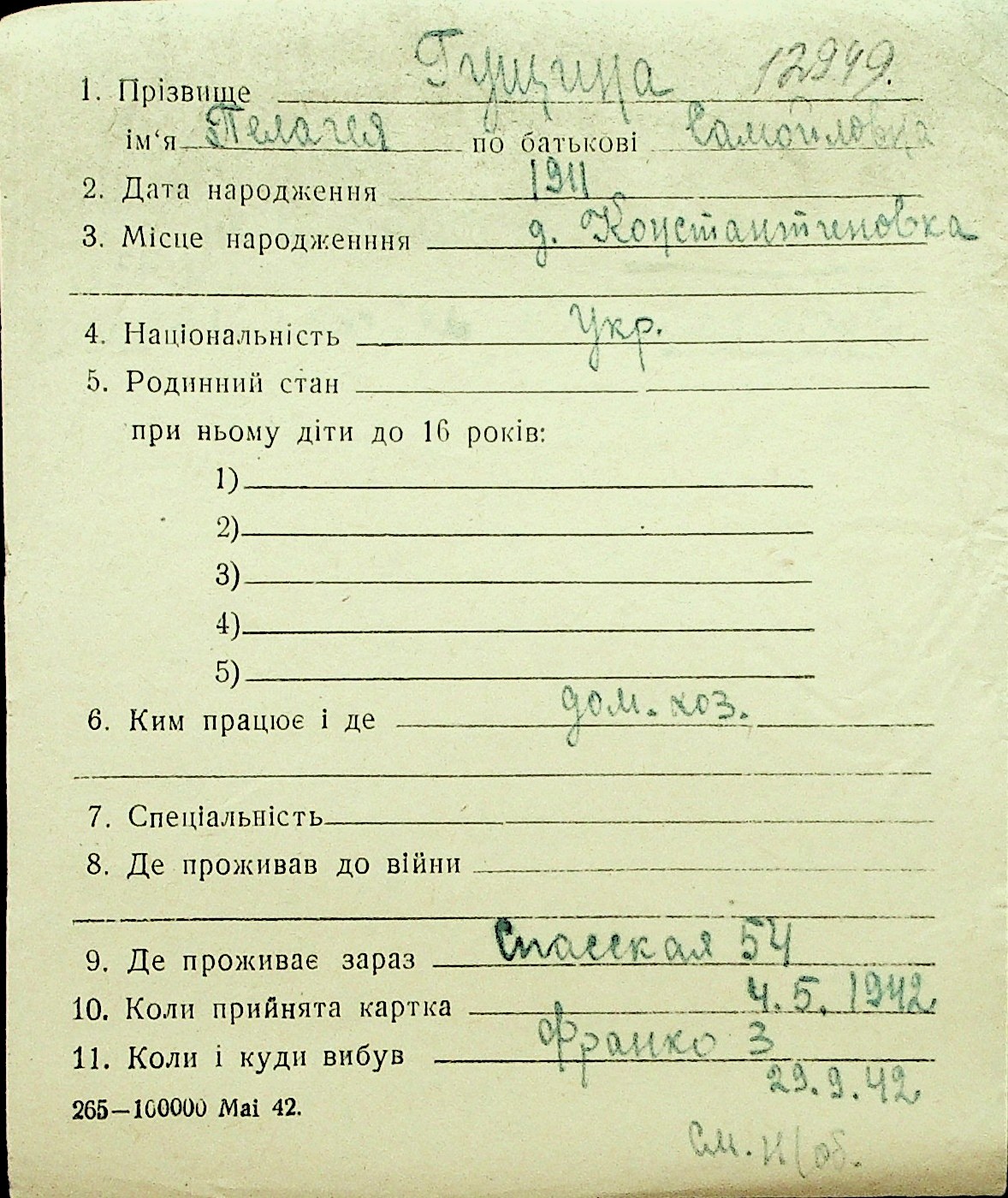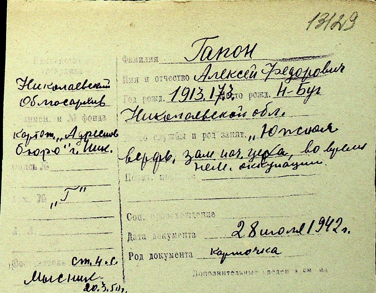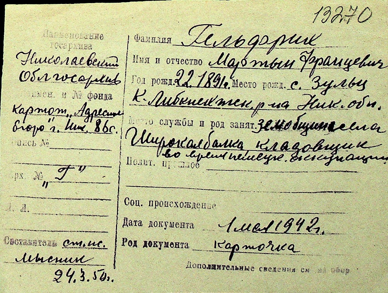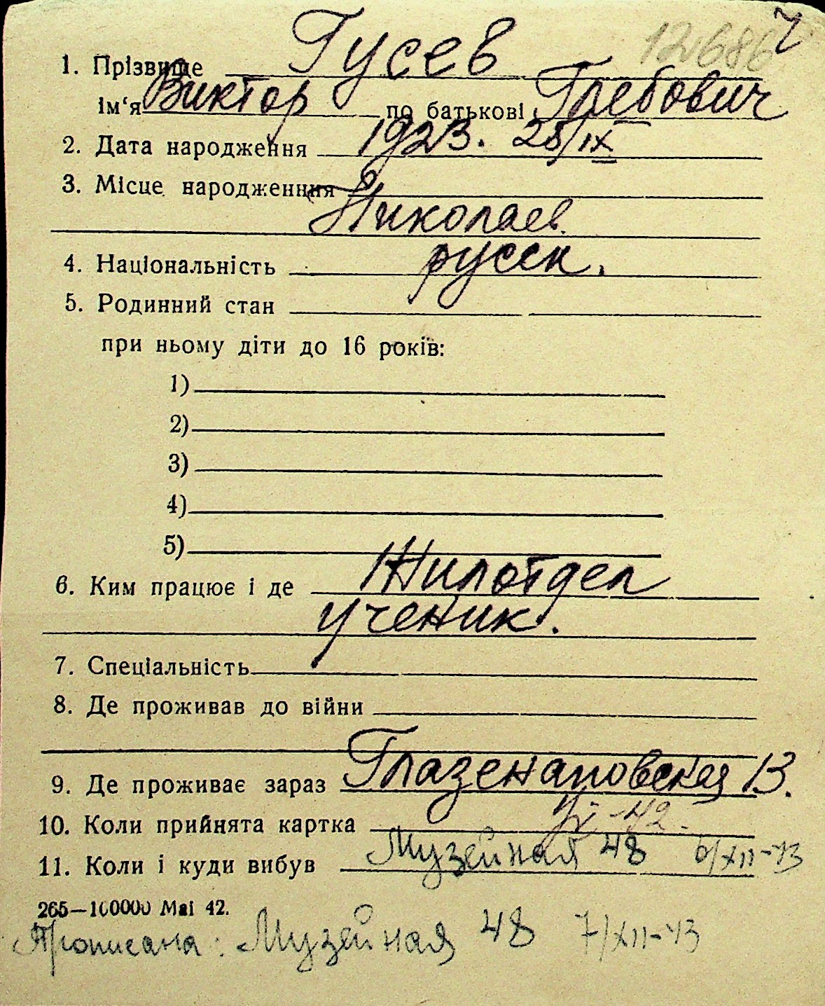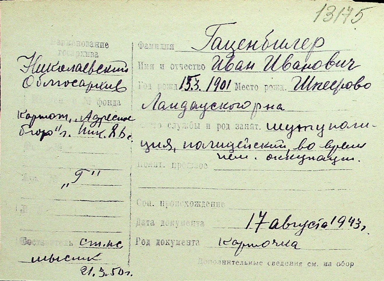 • • Перелік карток до фонду № Н-1016
