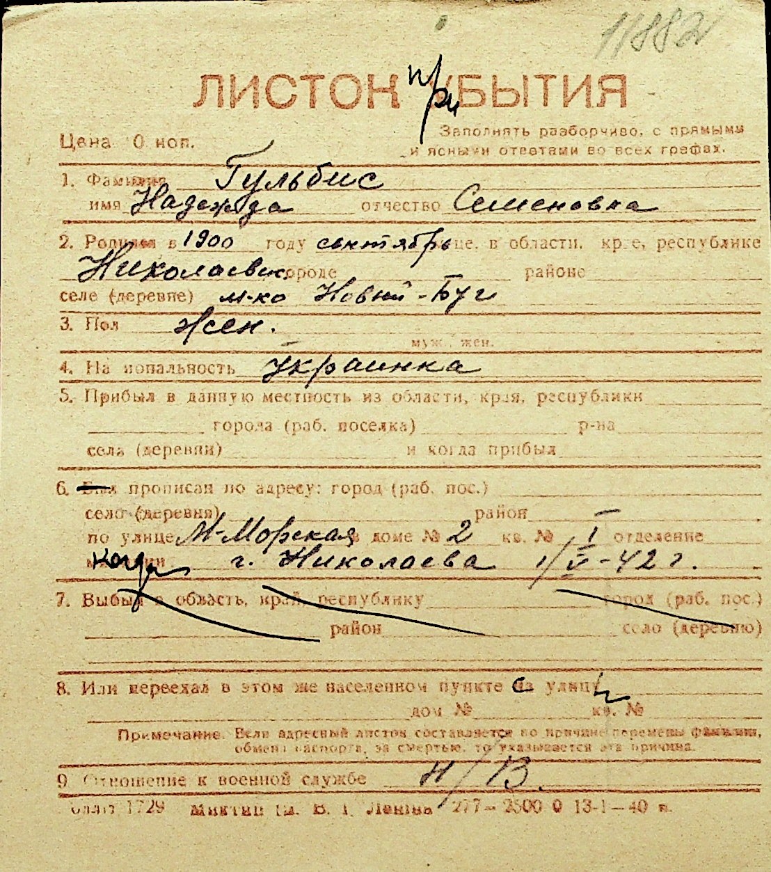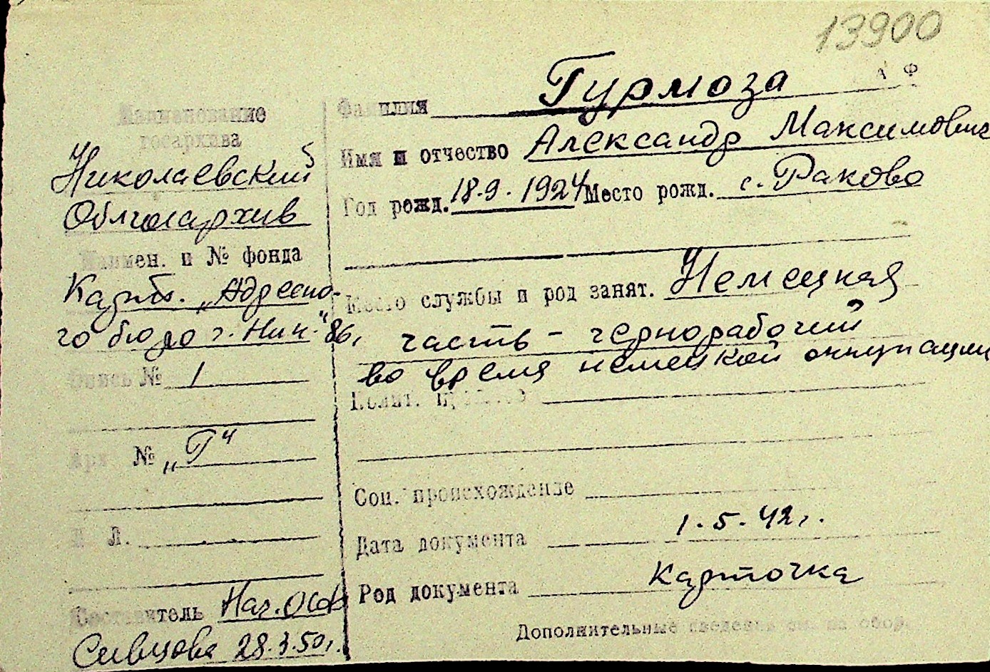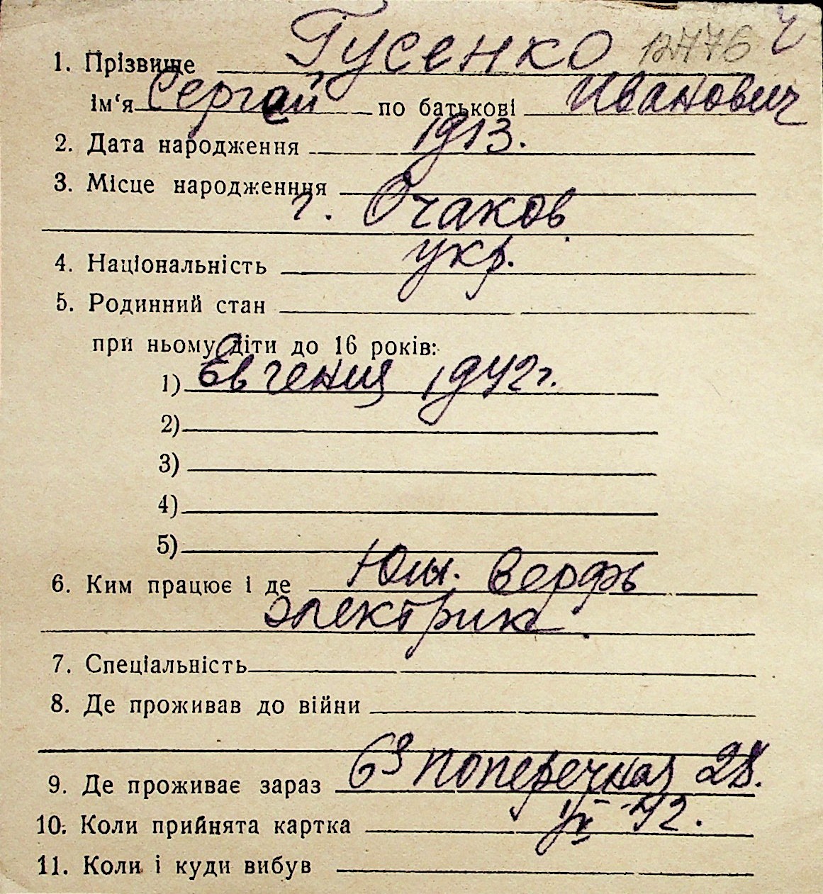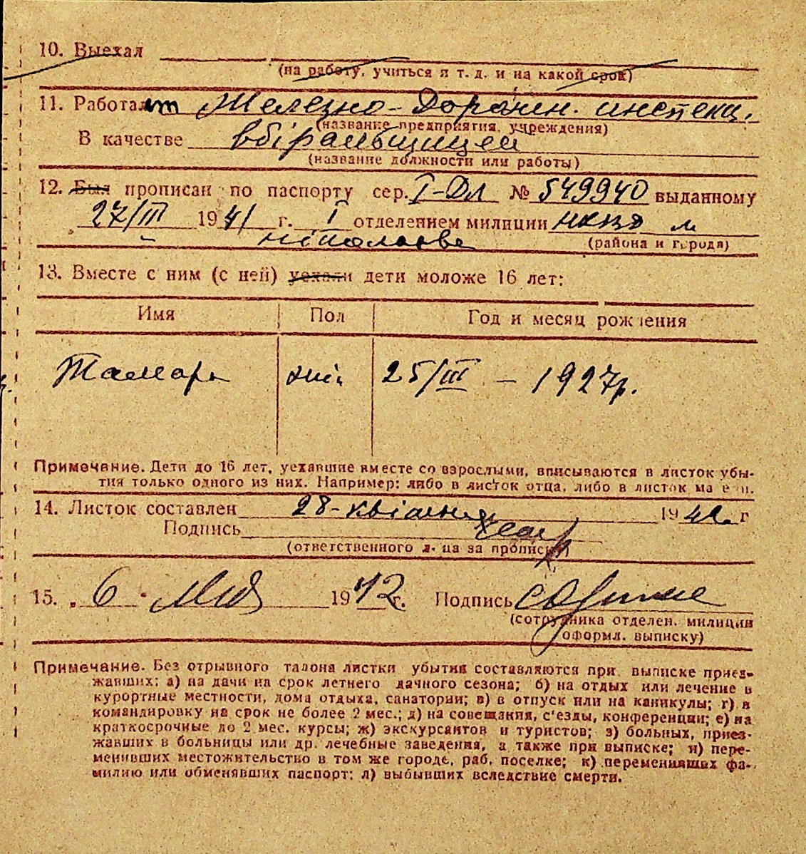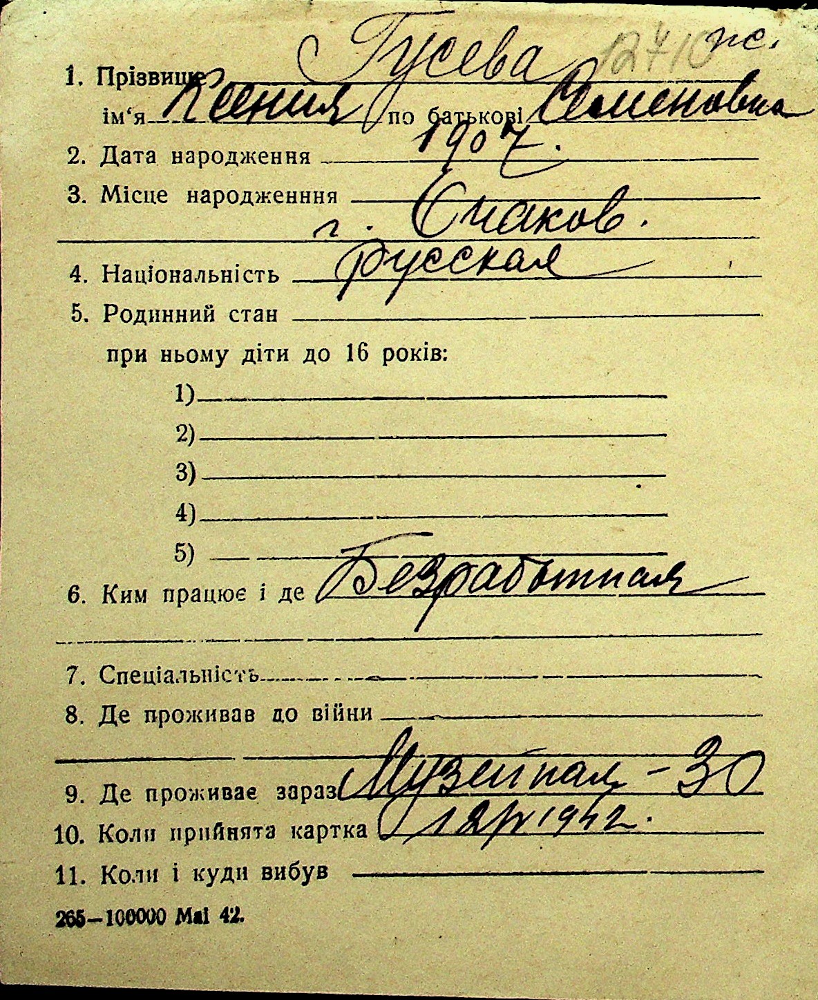 • • Перелік карток до фонду № Н-1016