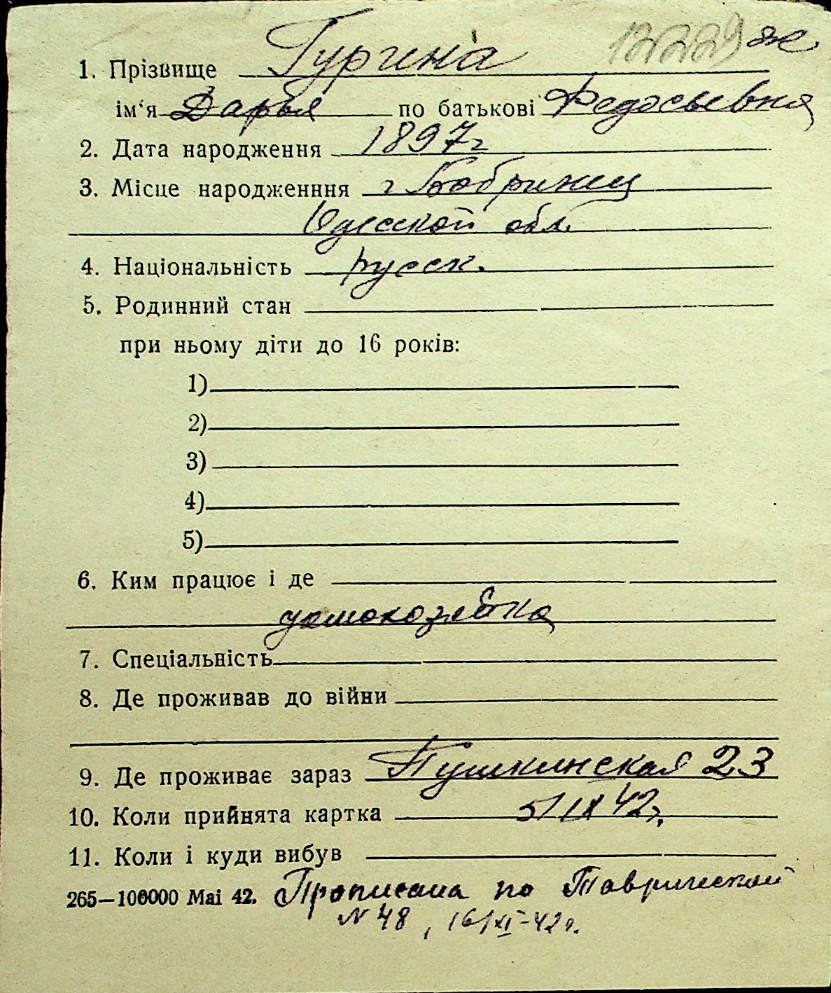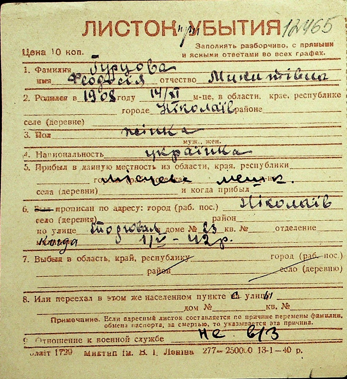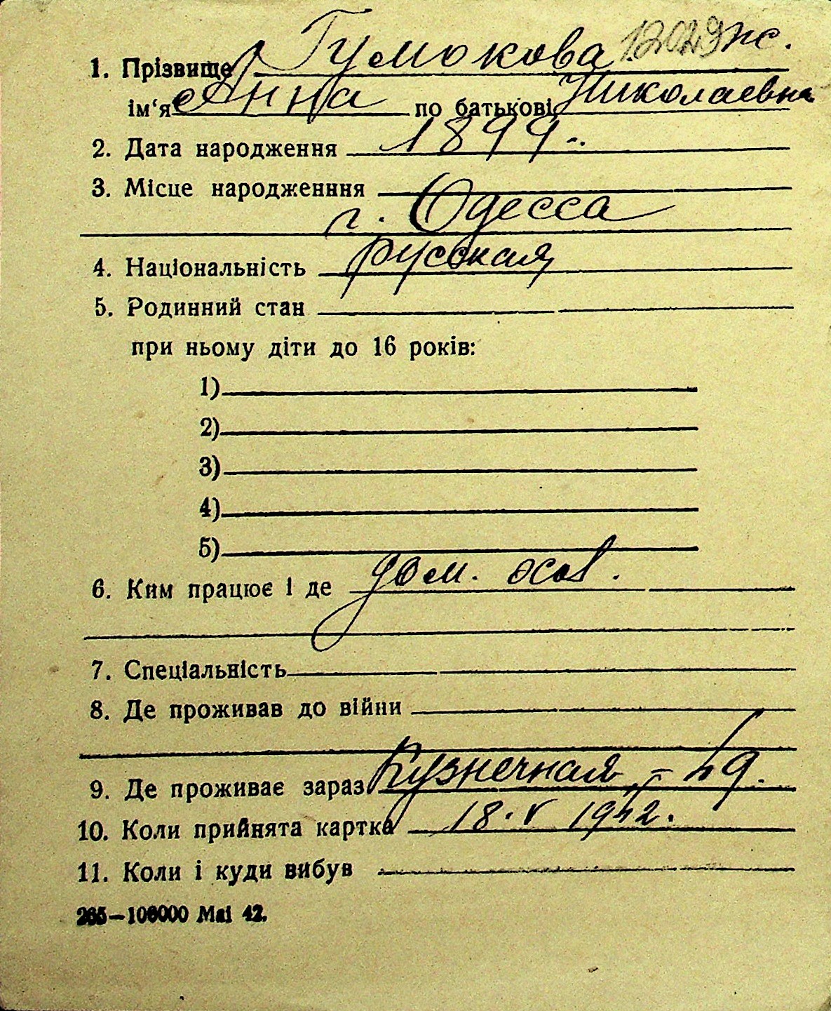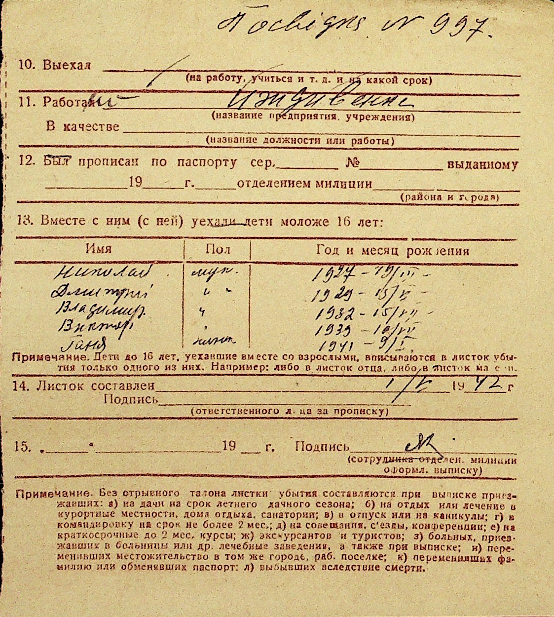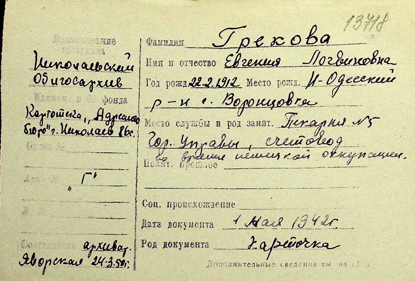 • • Перелік карток до фонду № Н-1016