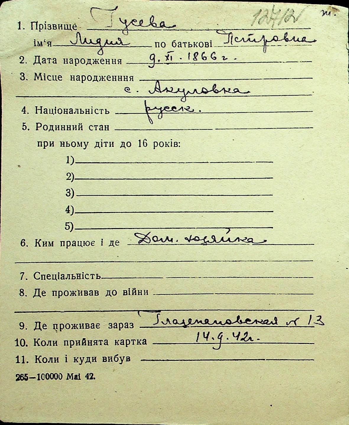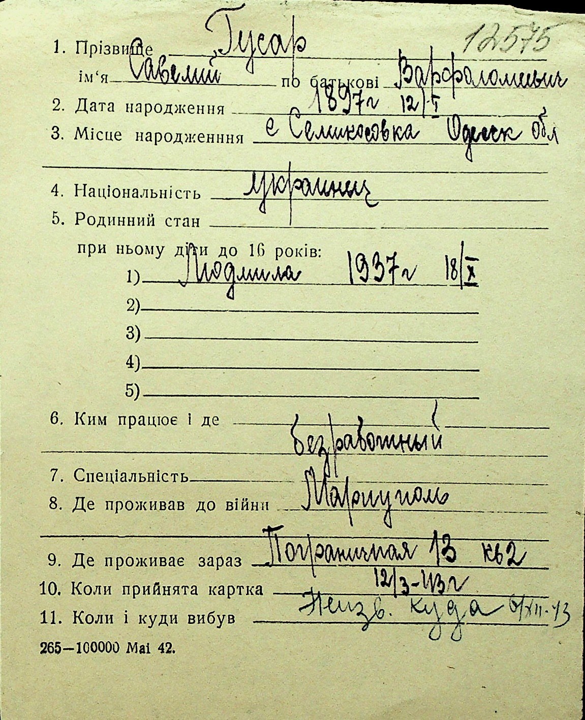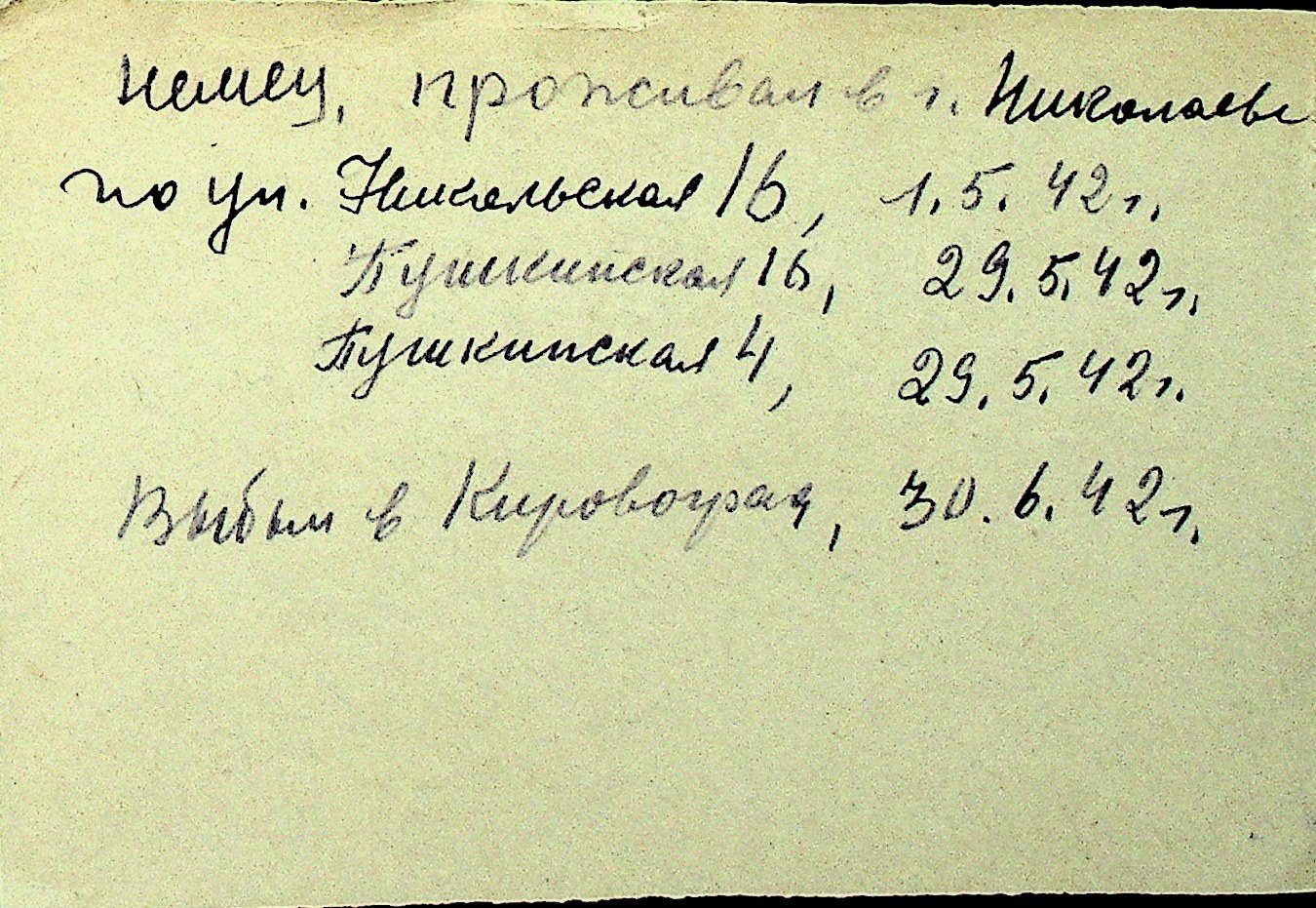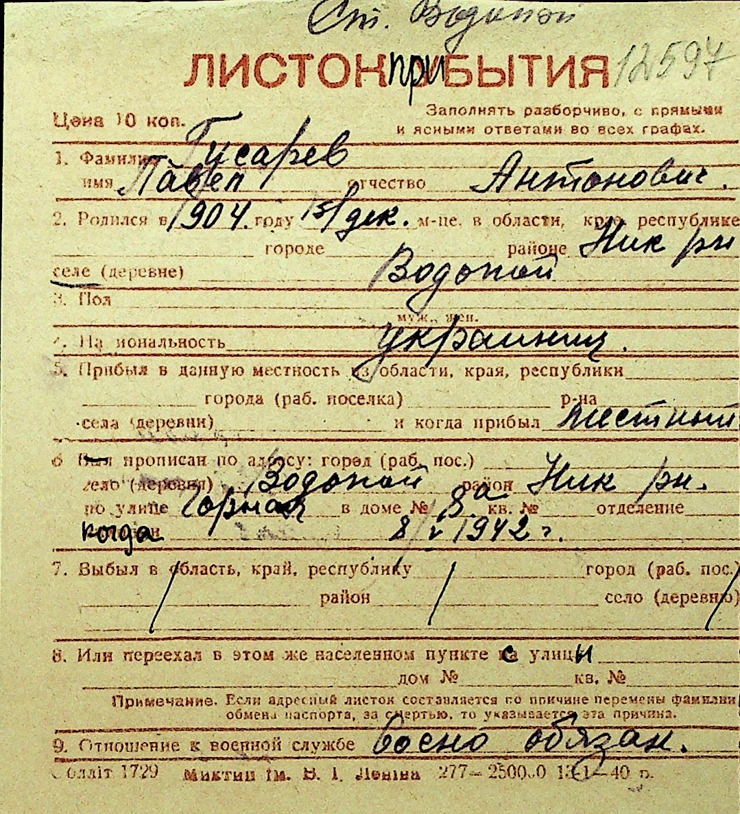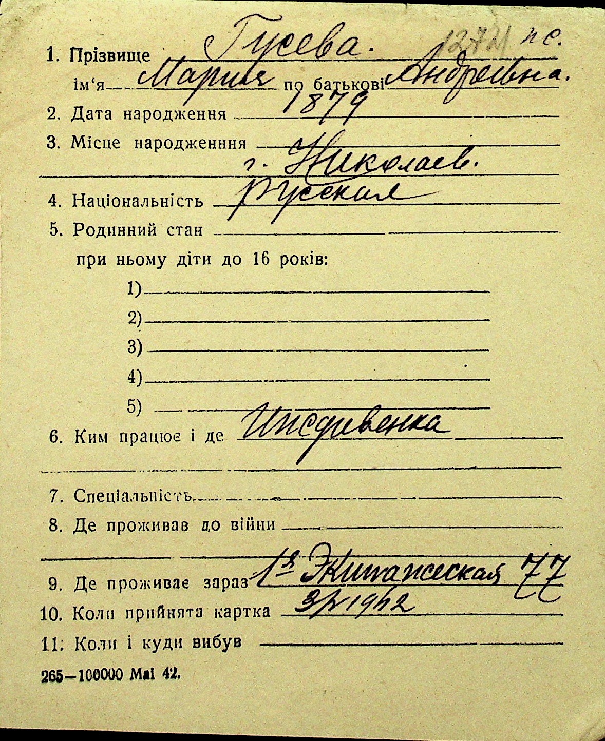 • • Перелік карток до фонду № Н-1016