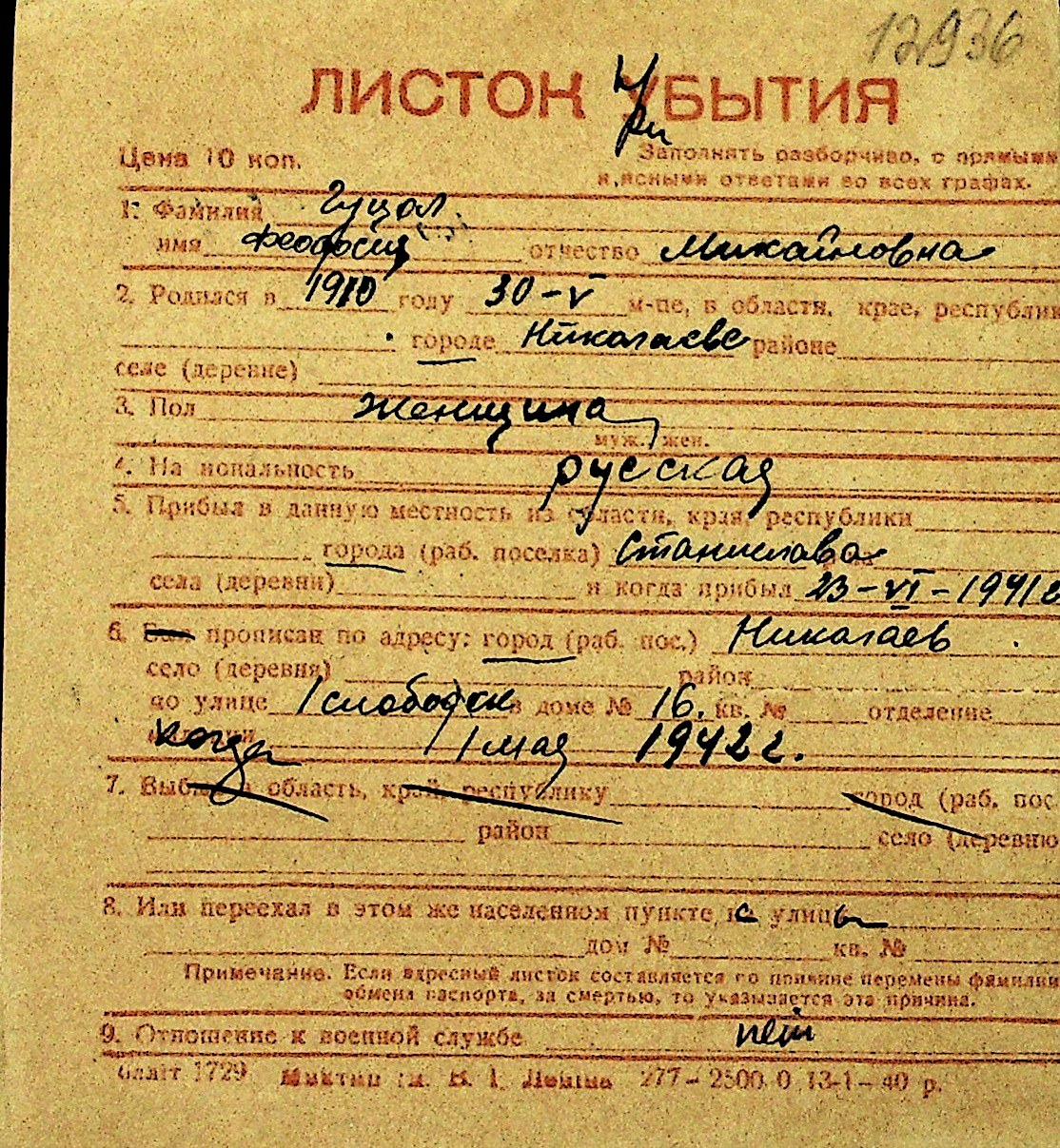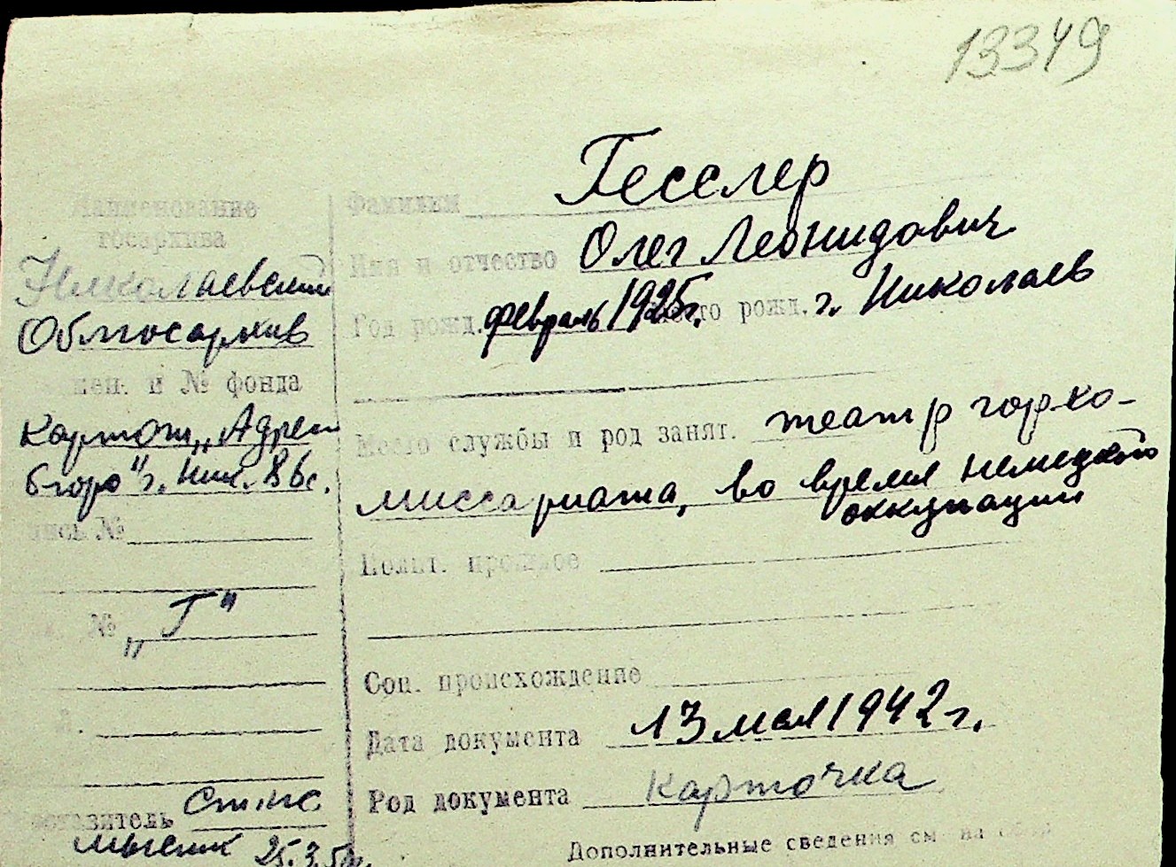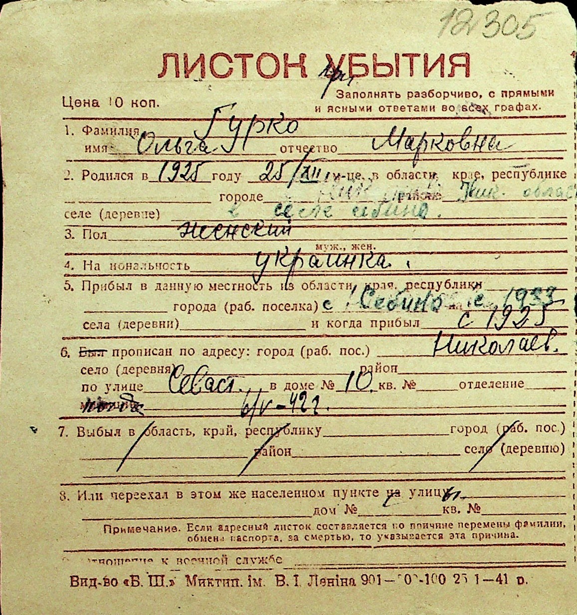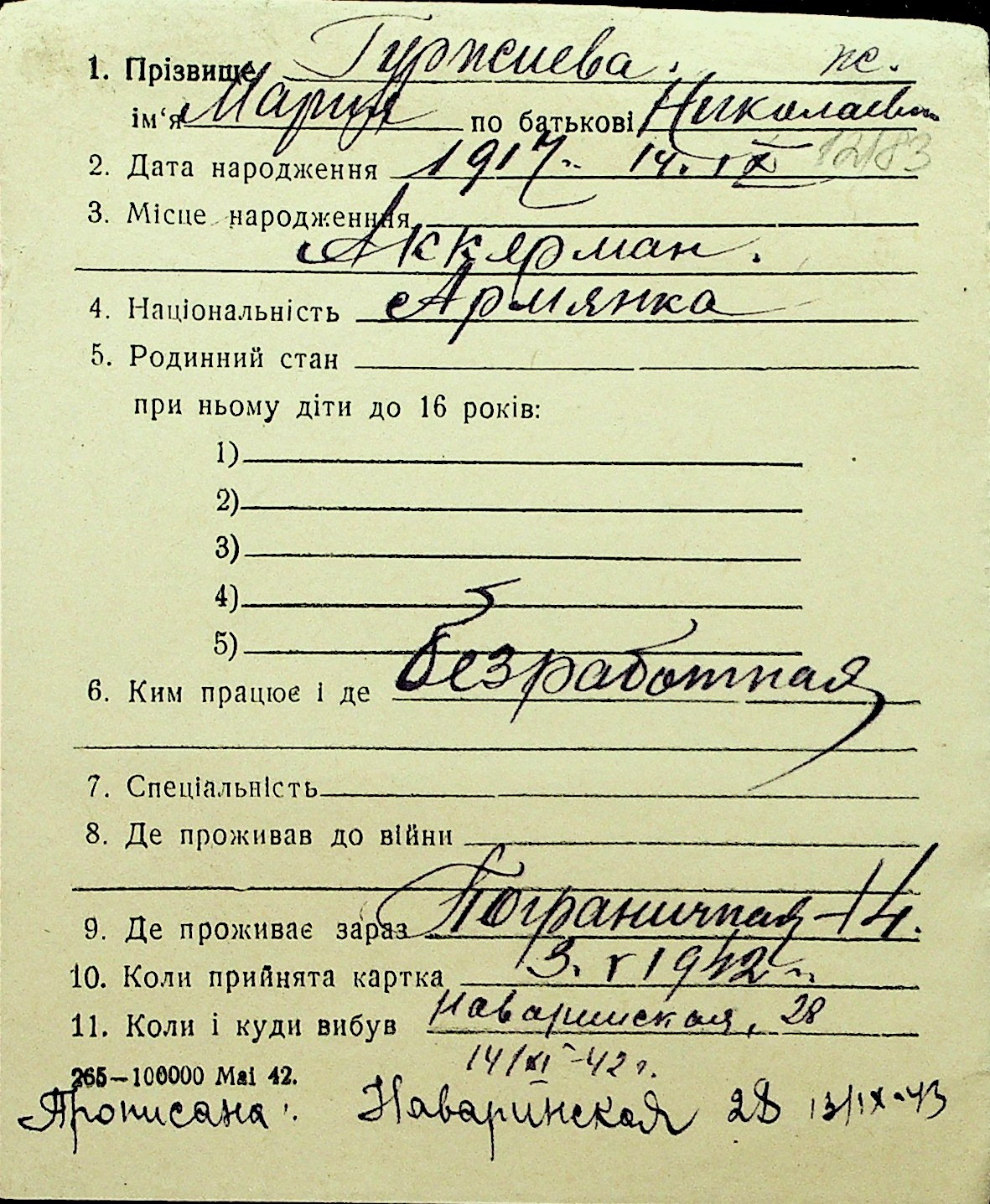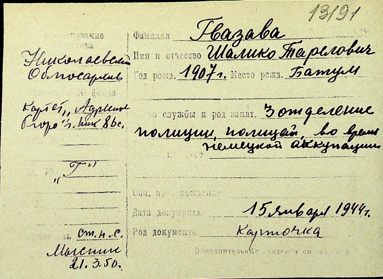 • • Перелік карток до фонду № Н-1016
