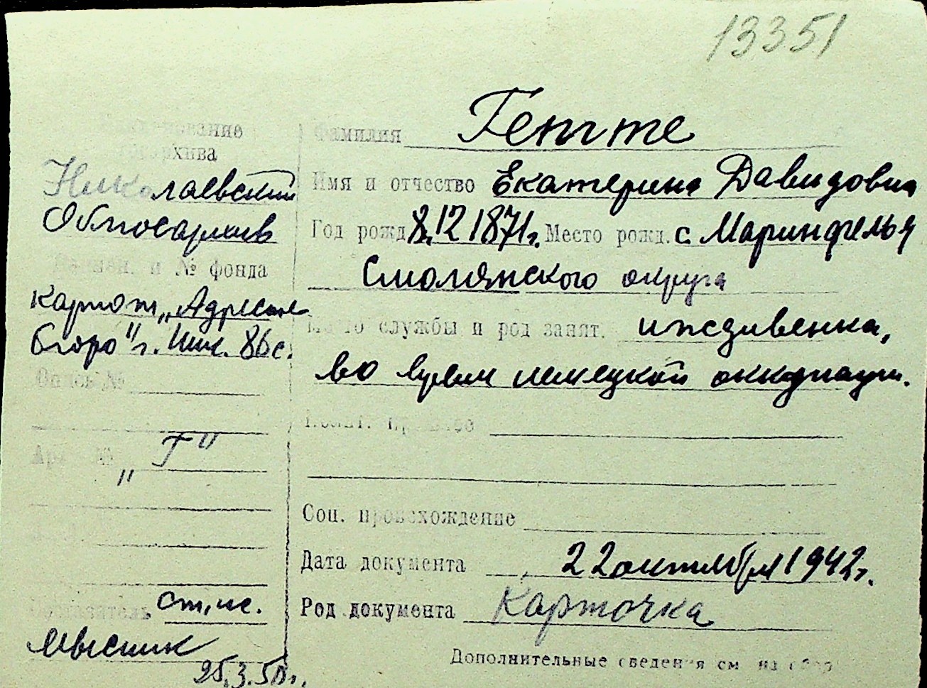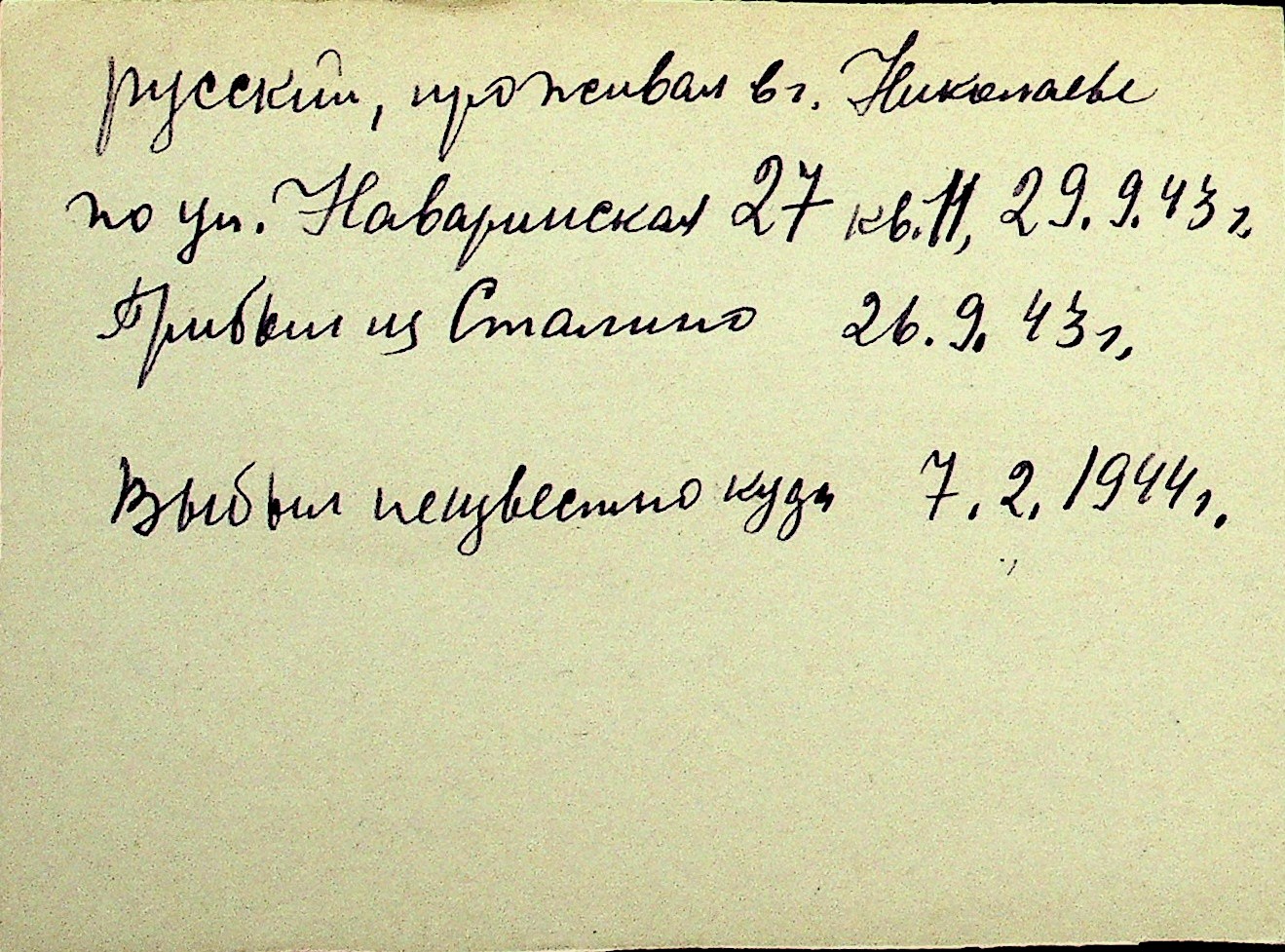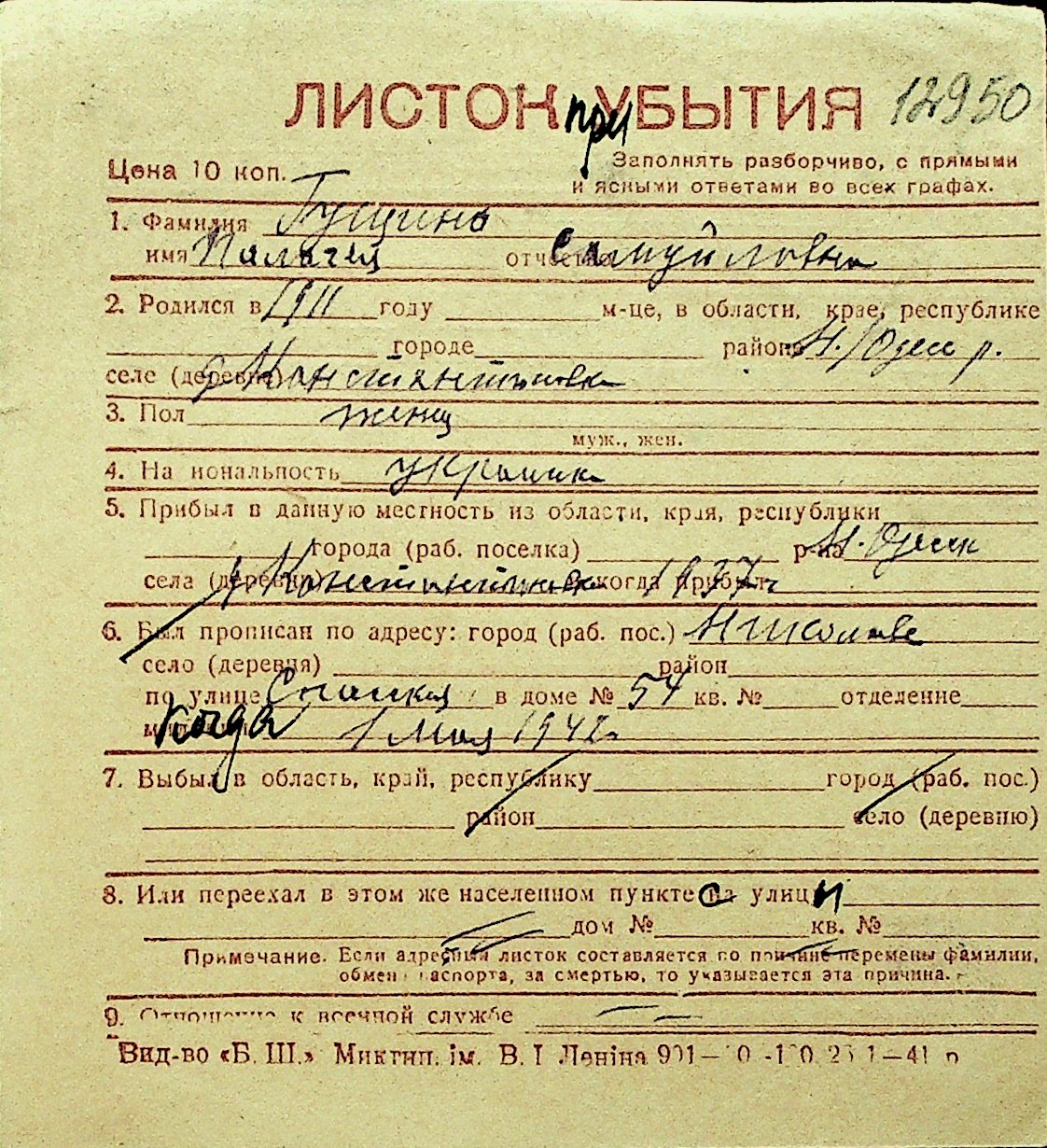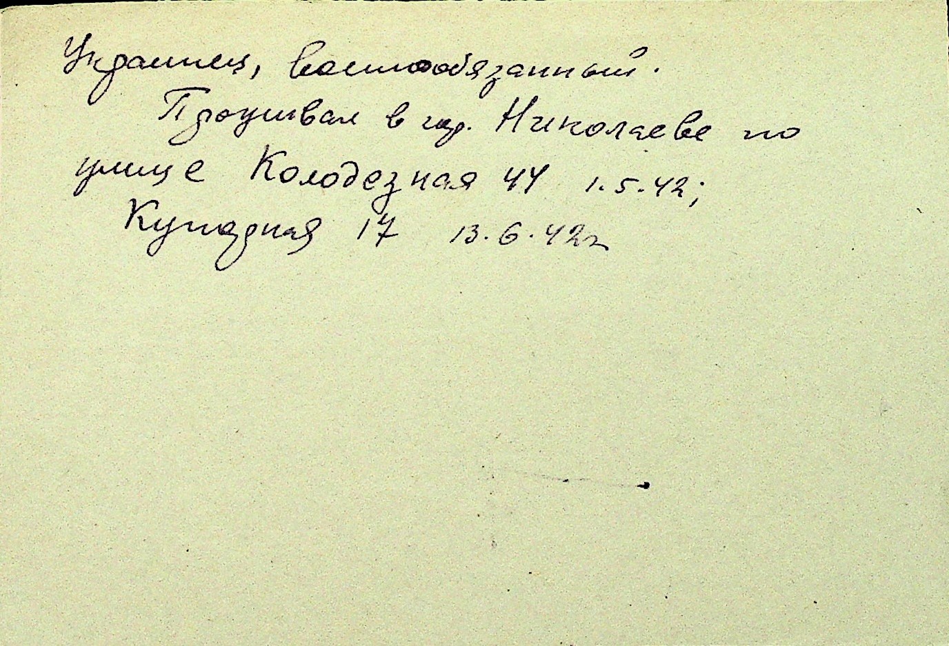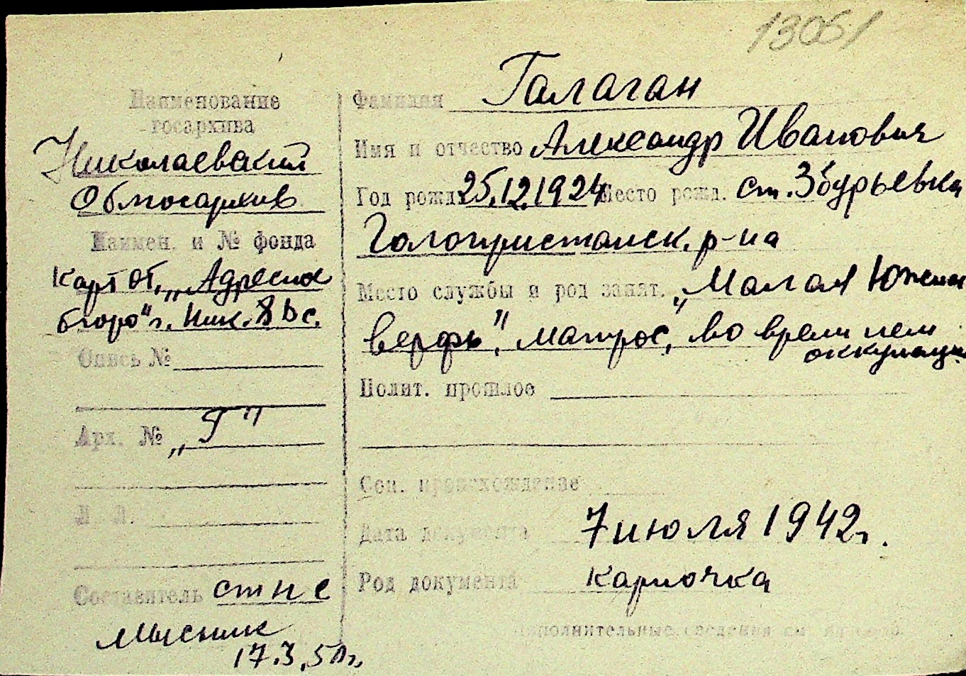 • • Перелік карток до фонду № Н-1016