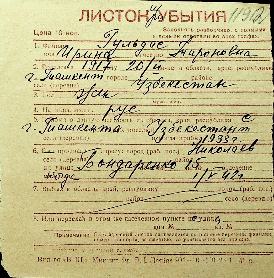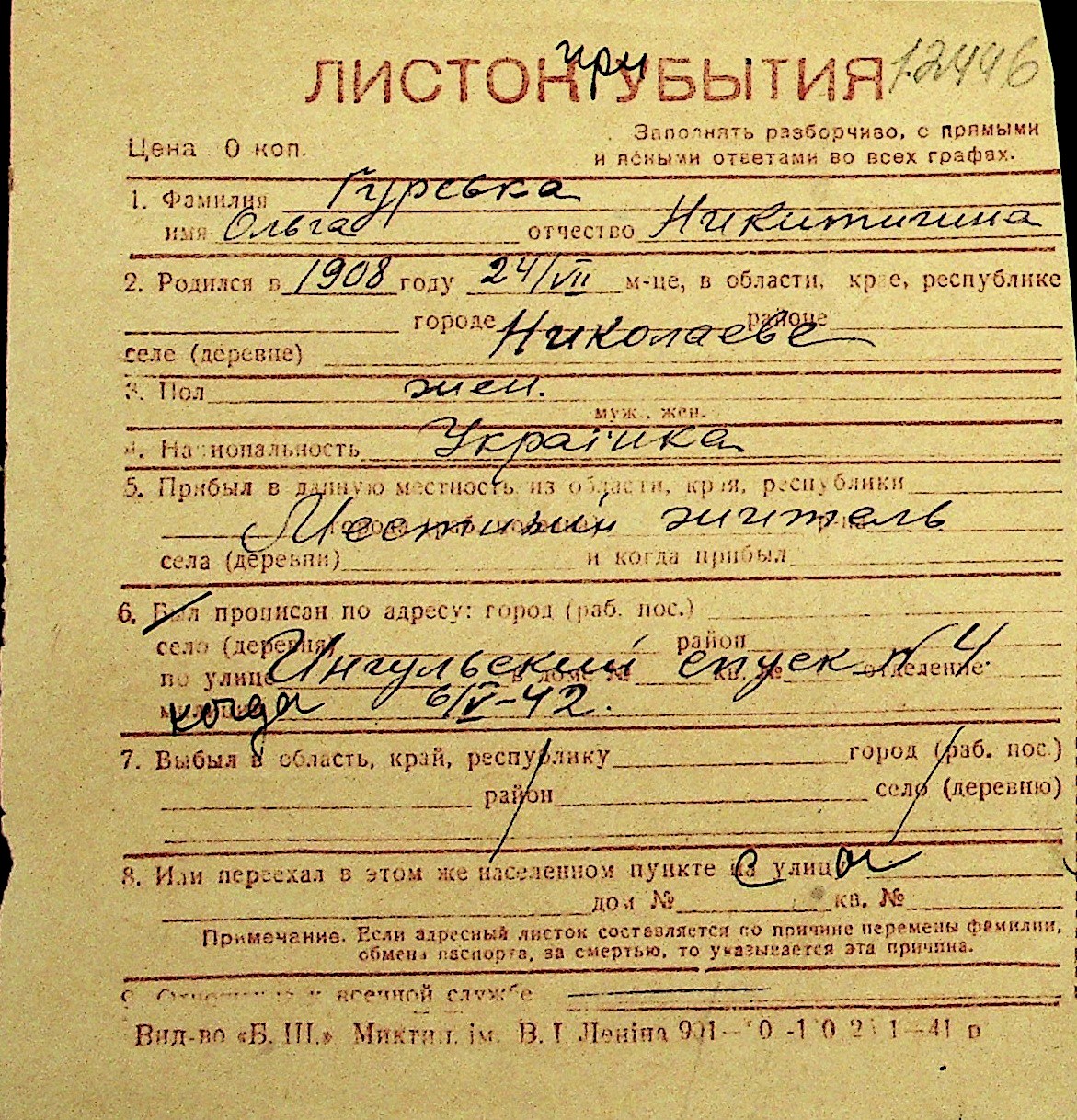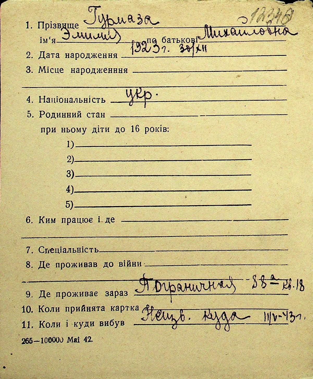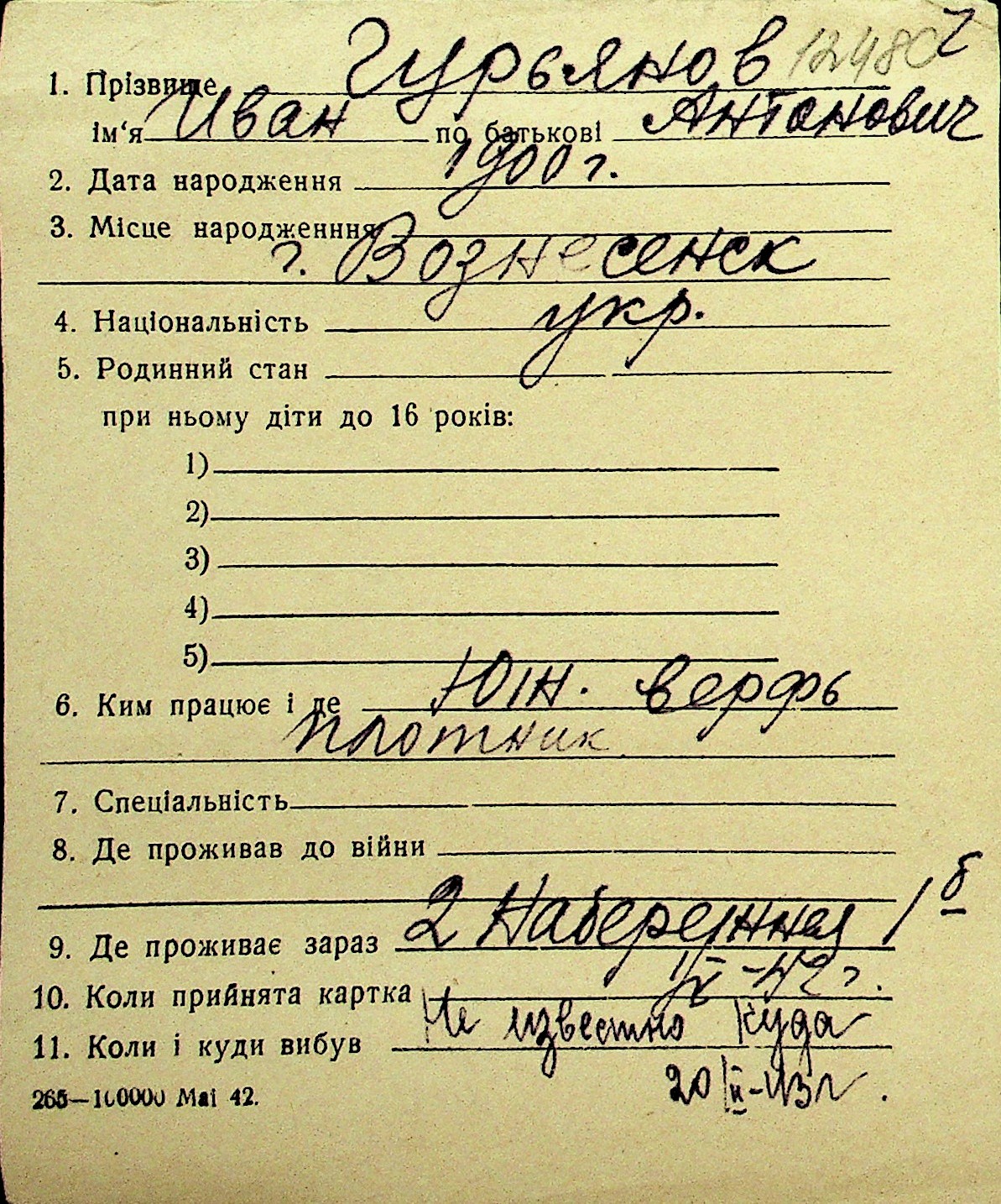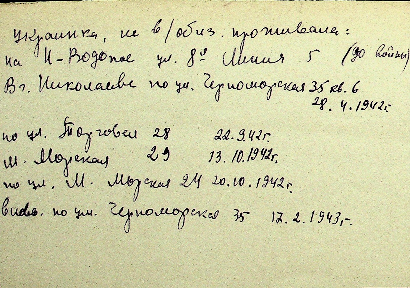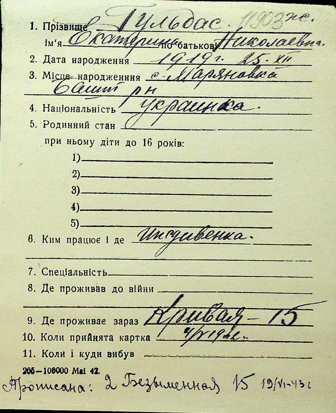 • • Перелік карток до фонду № Н-1016