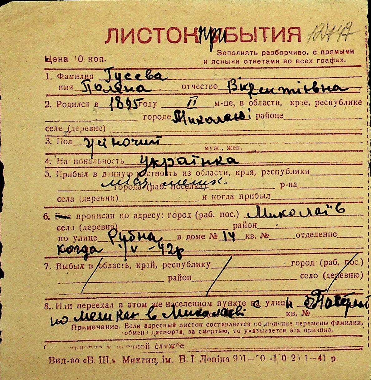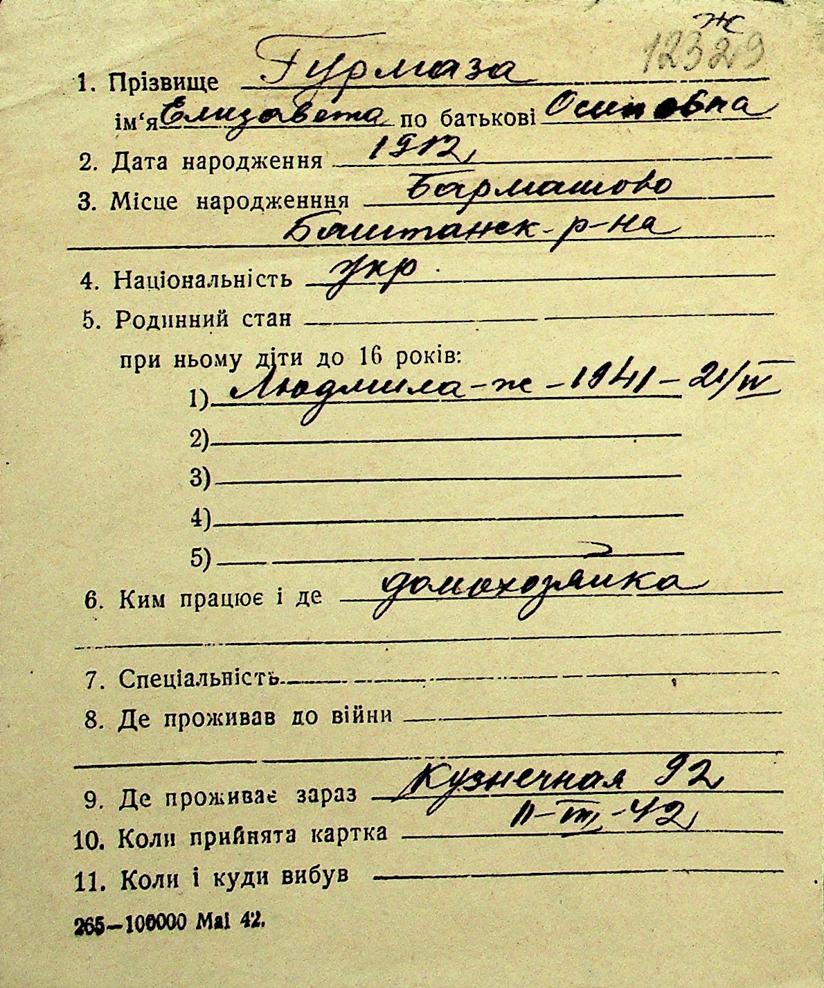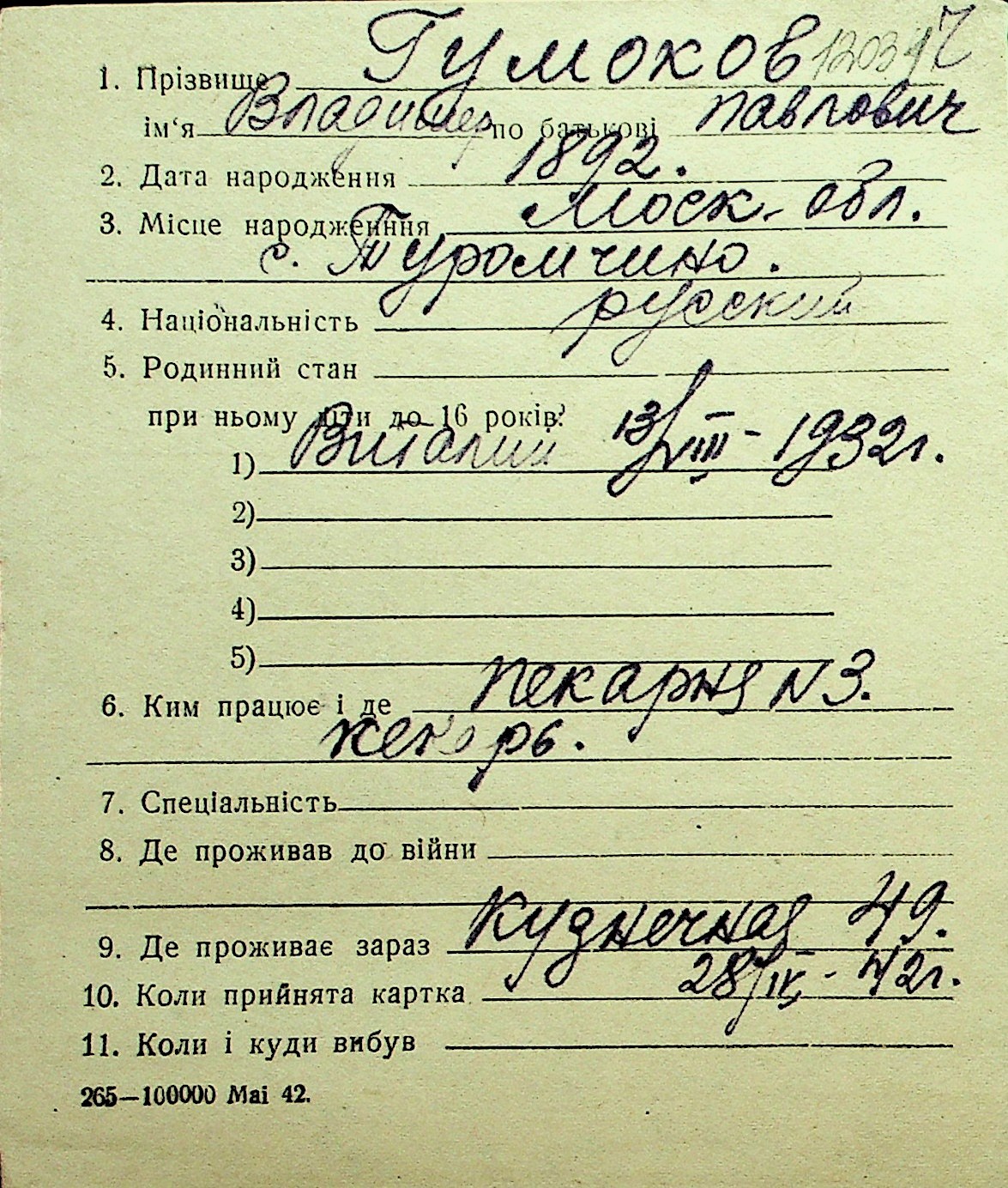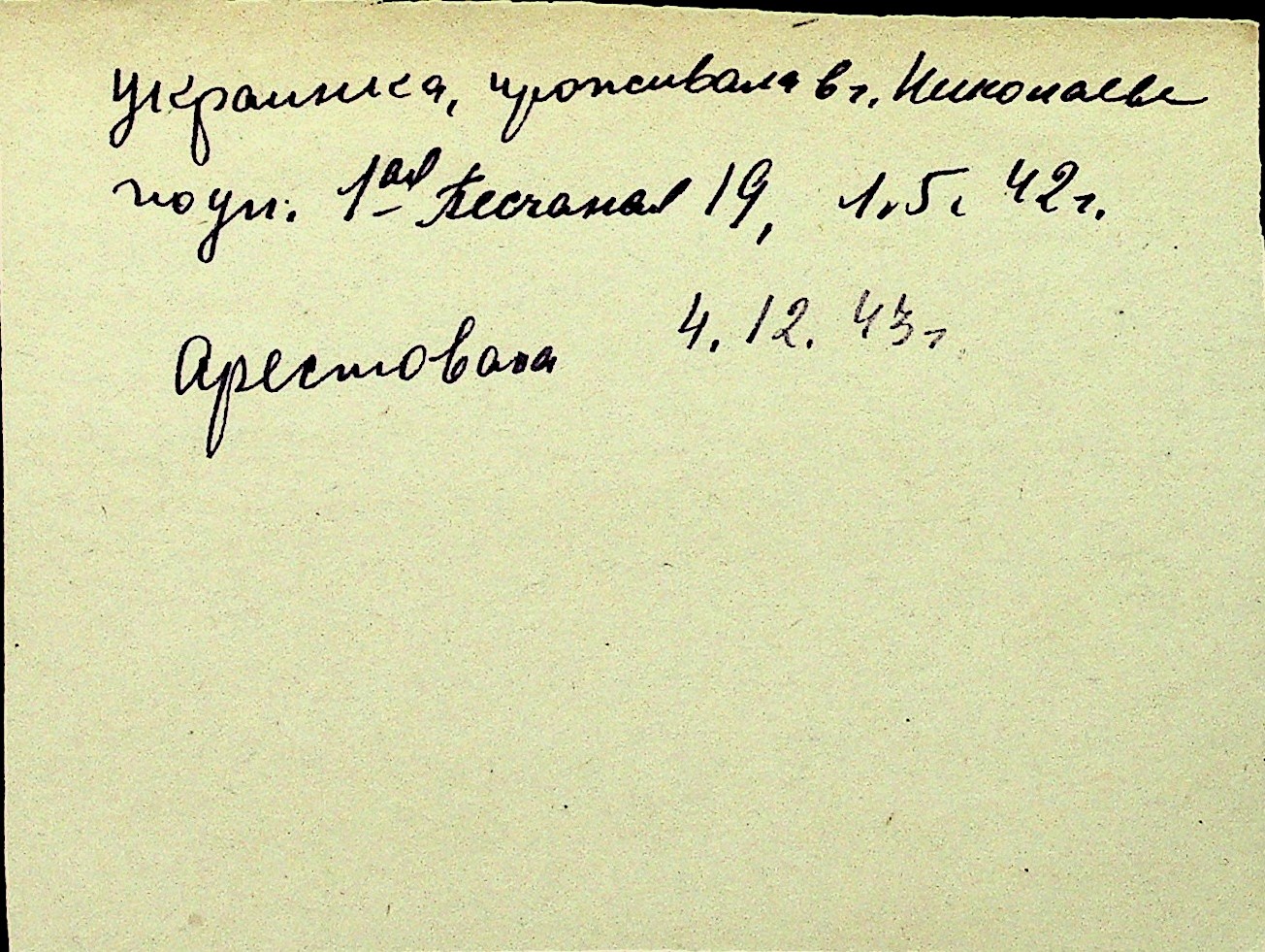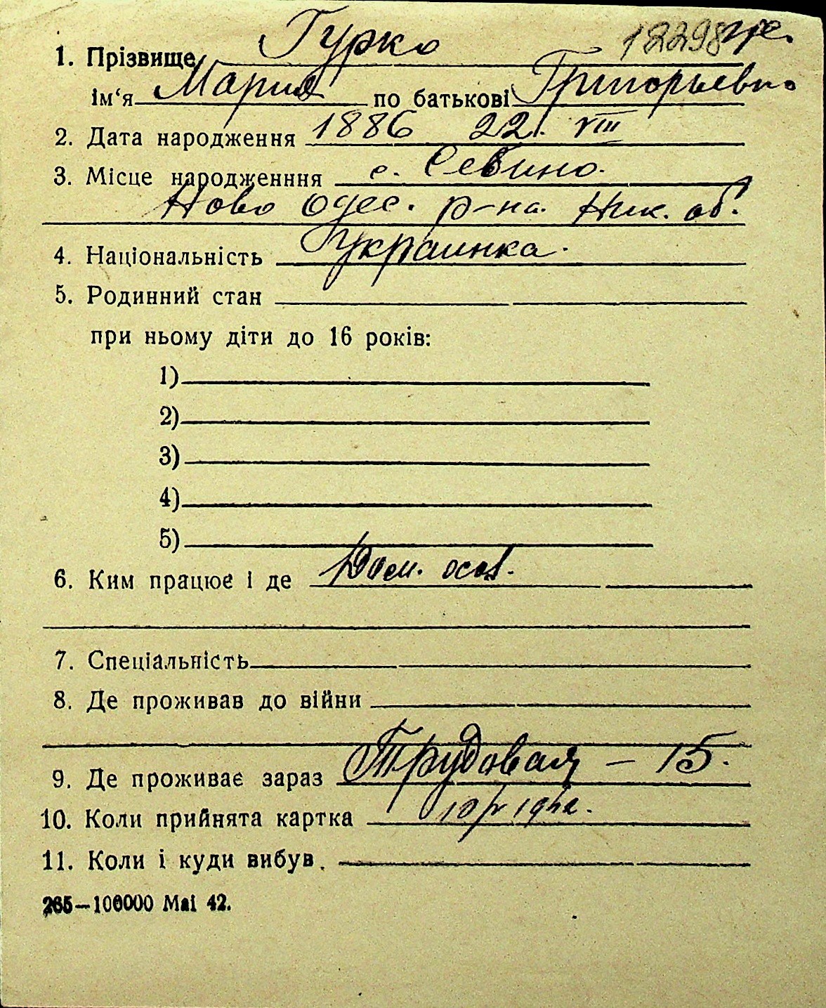 • • Перелік карток до фонду № Н-1016