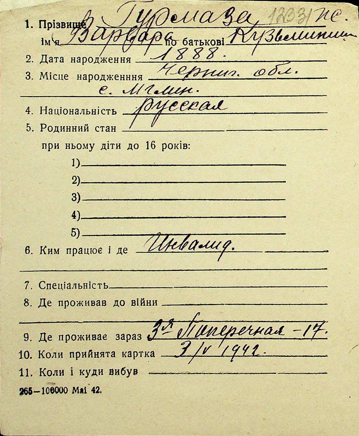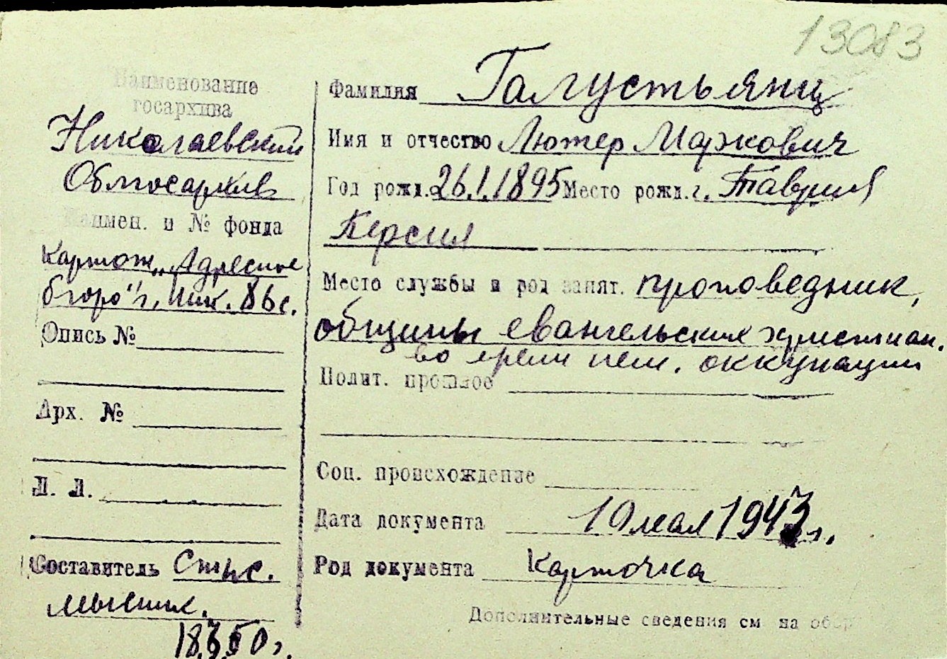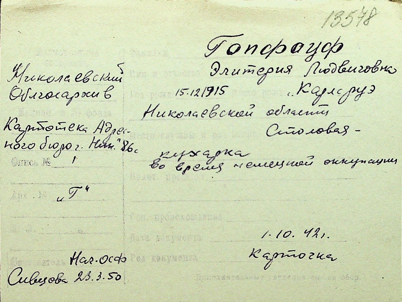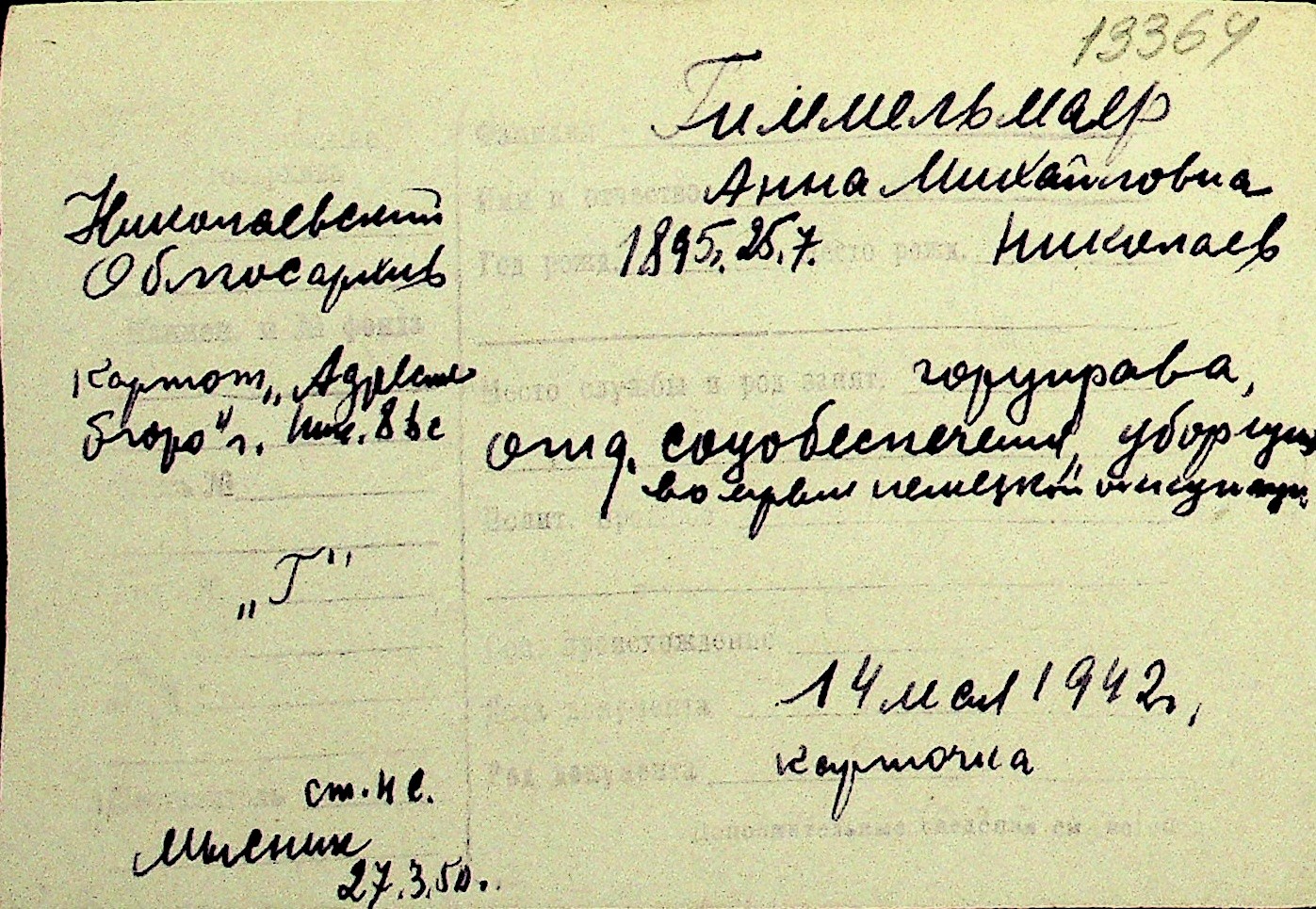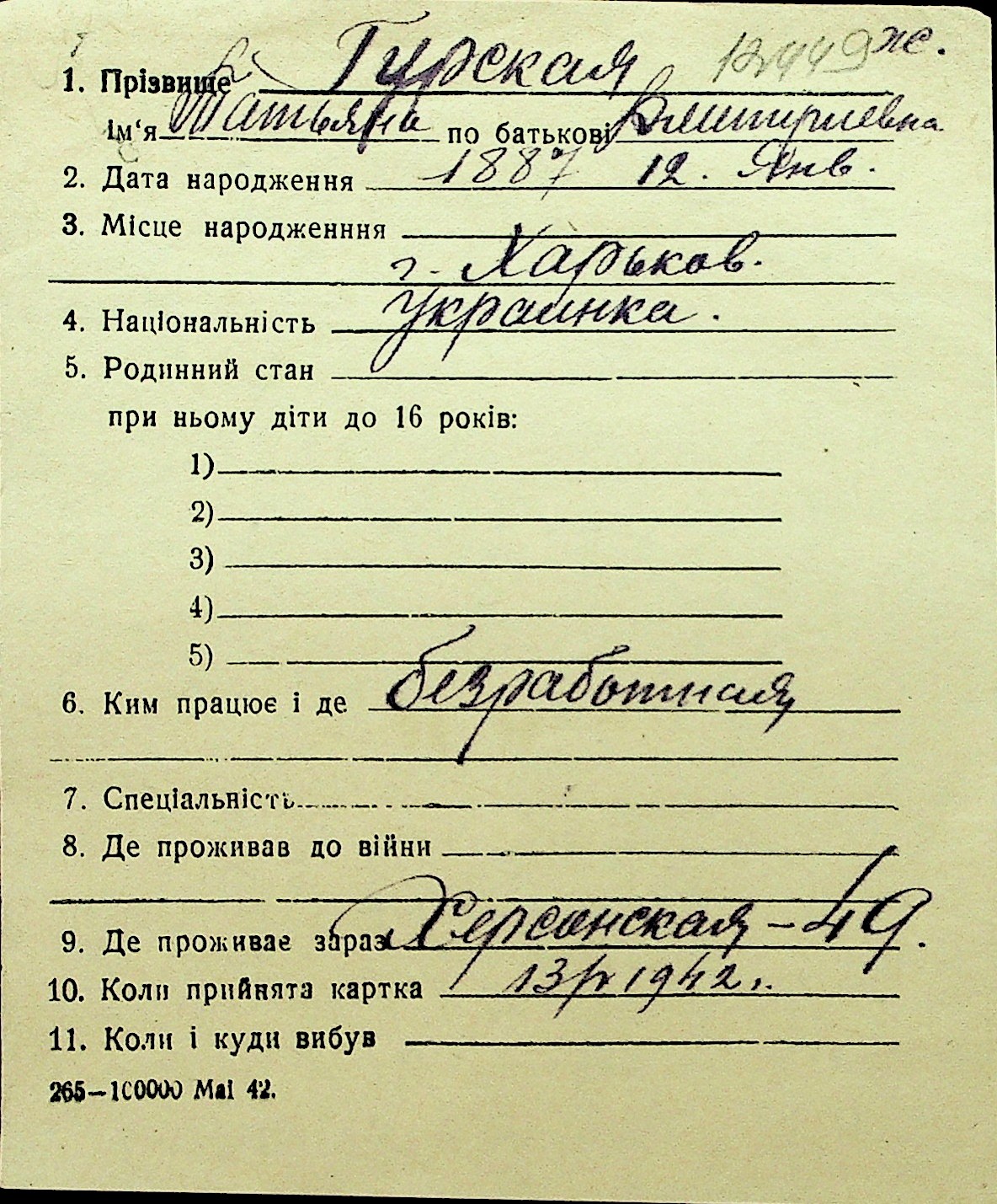 • • Перелік карток до фонду № Н-1016
