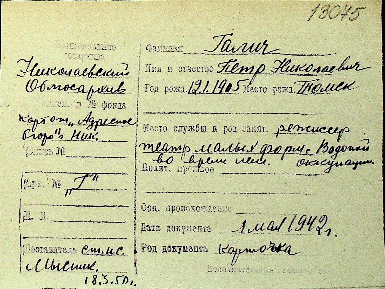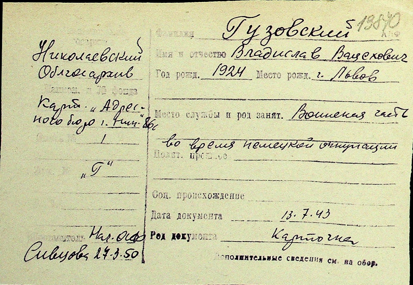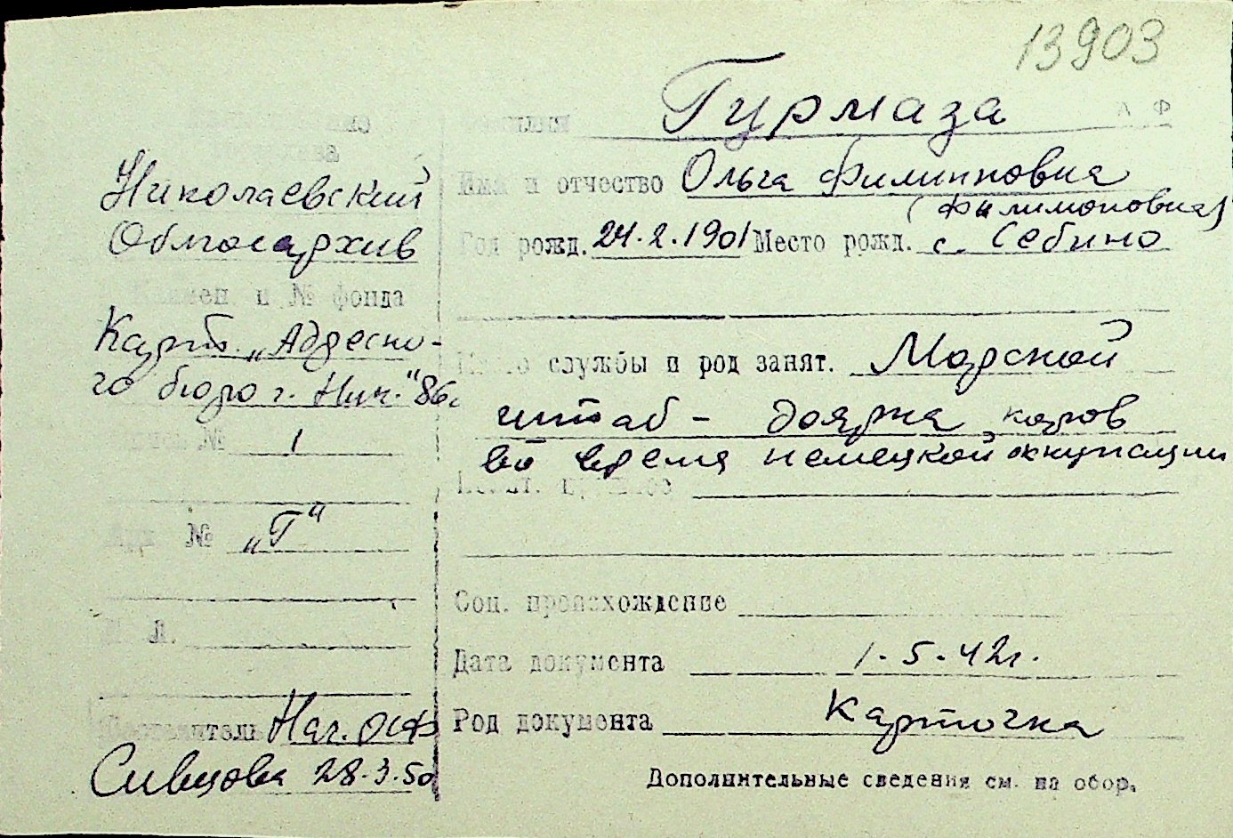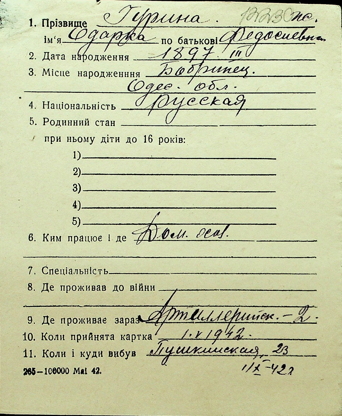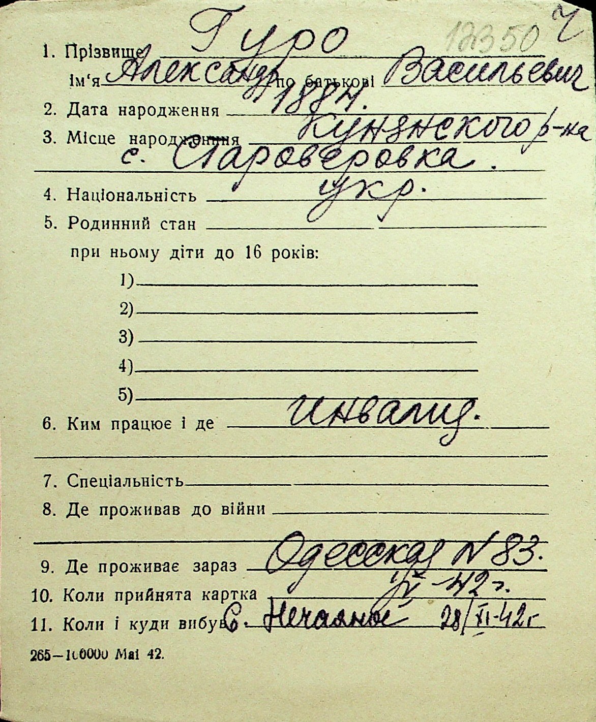 • • Перелік карток до фонду № Н-1016