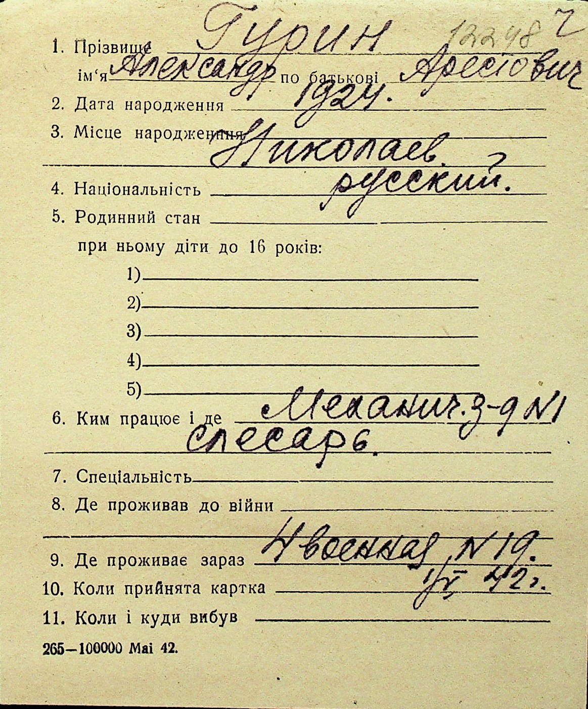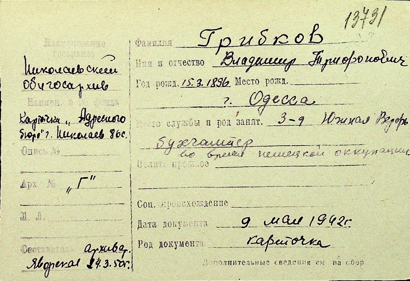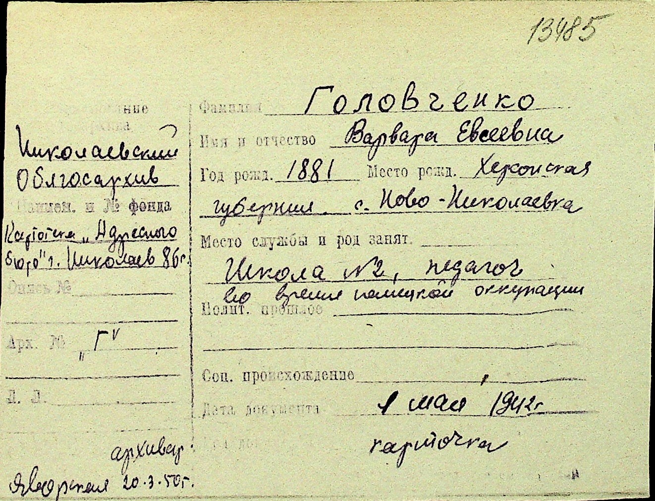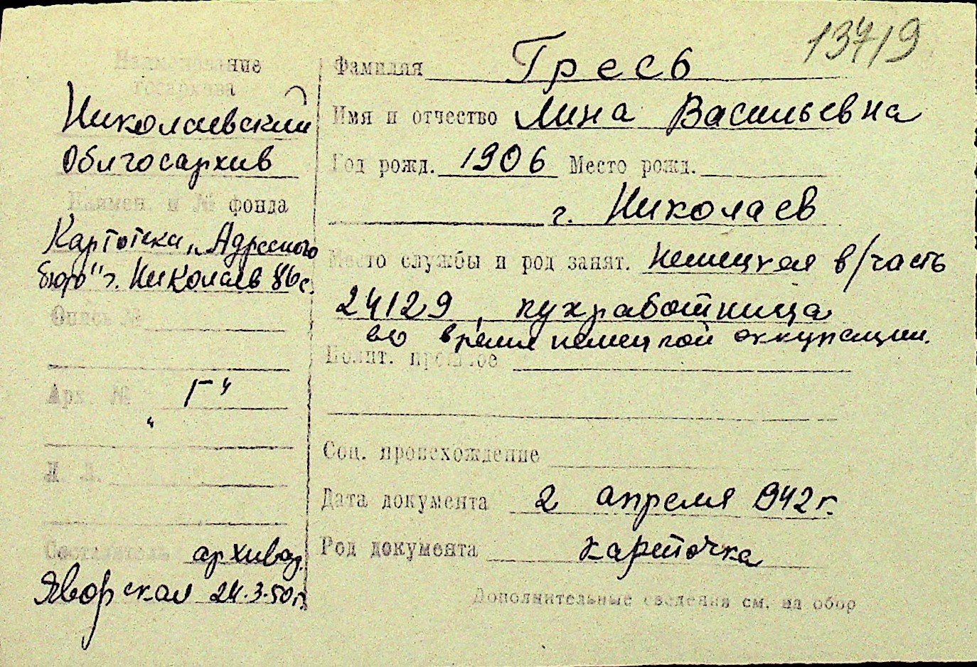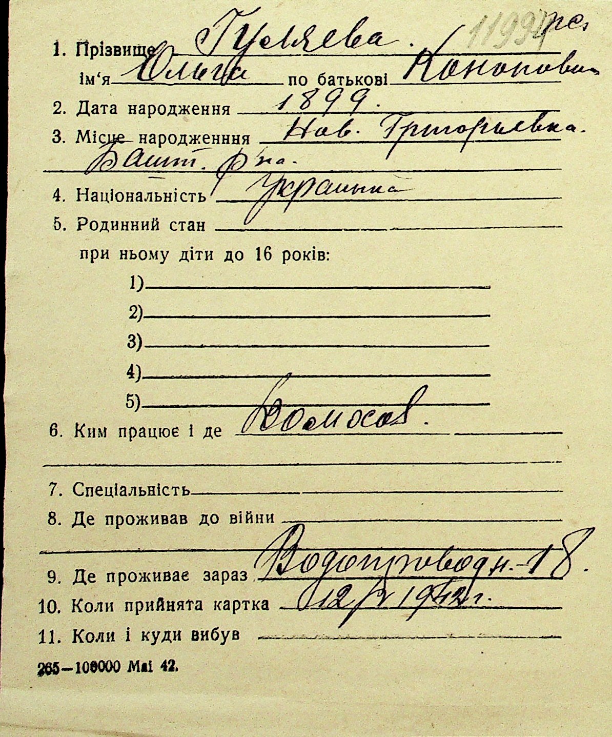 • • Перелік карток до фонду № Н-1016
