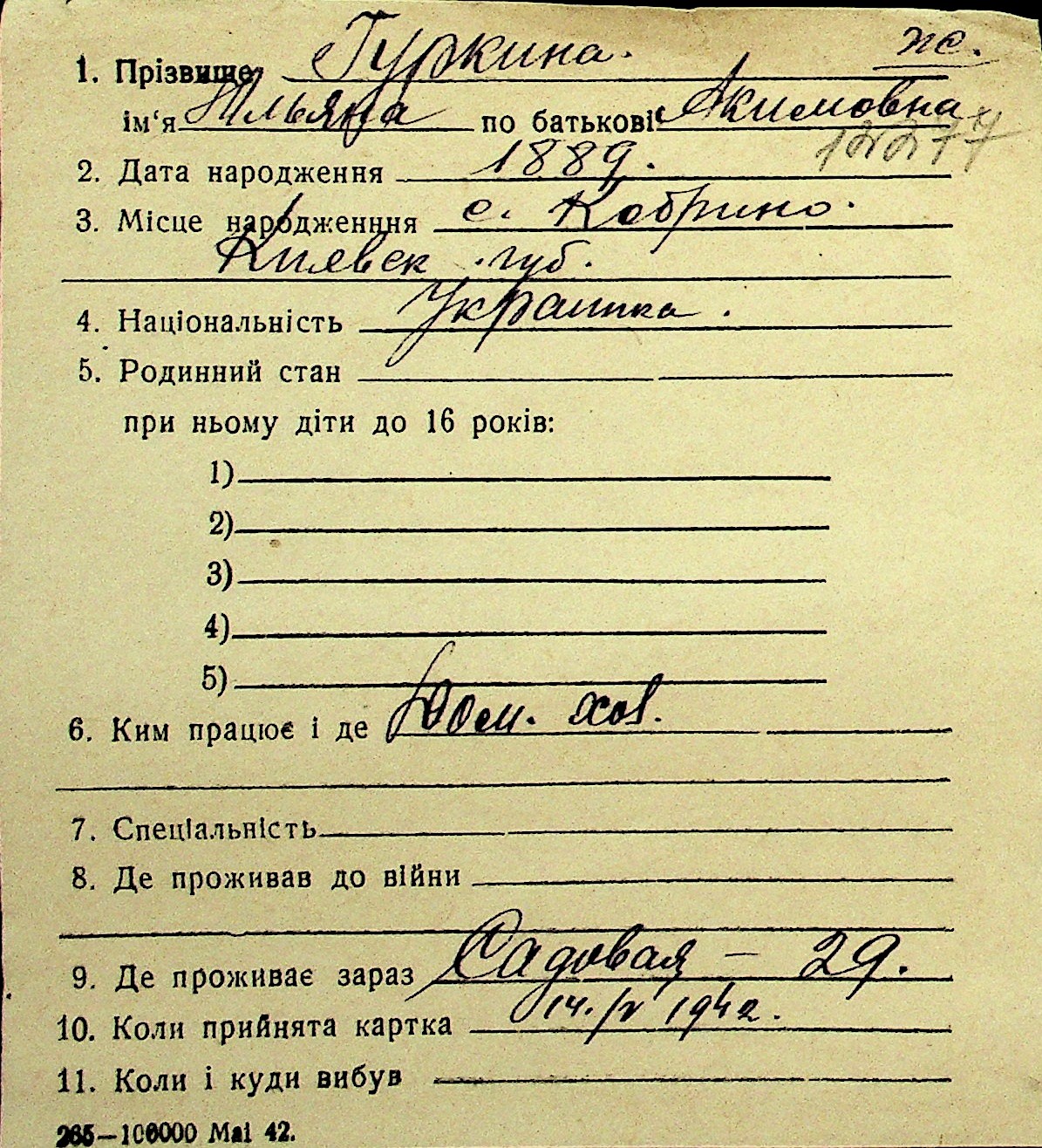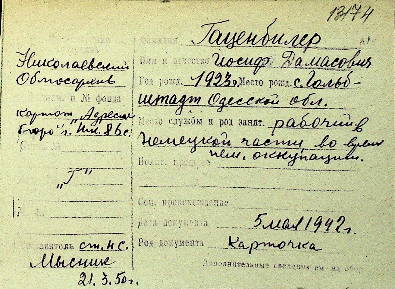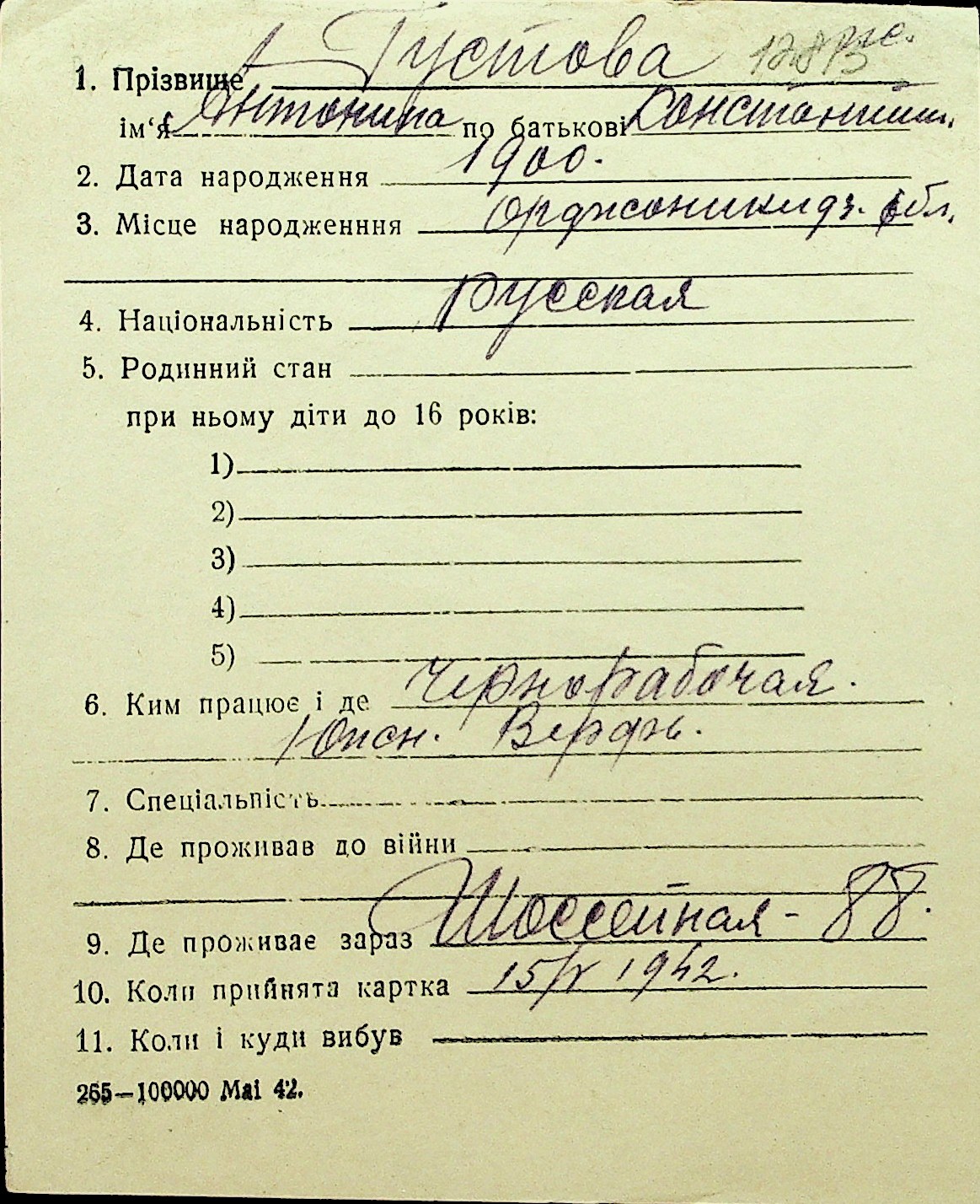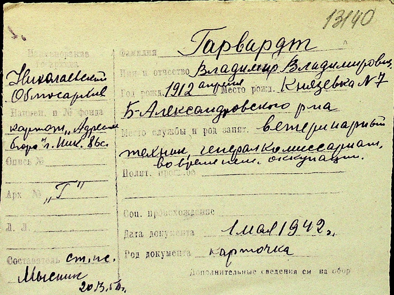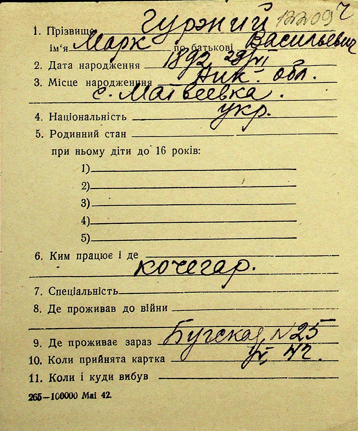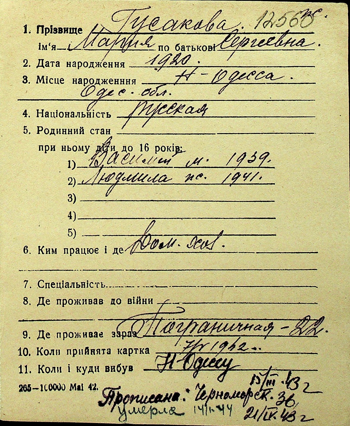 • • Перелік карток до фонду № Н-1016